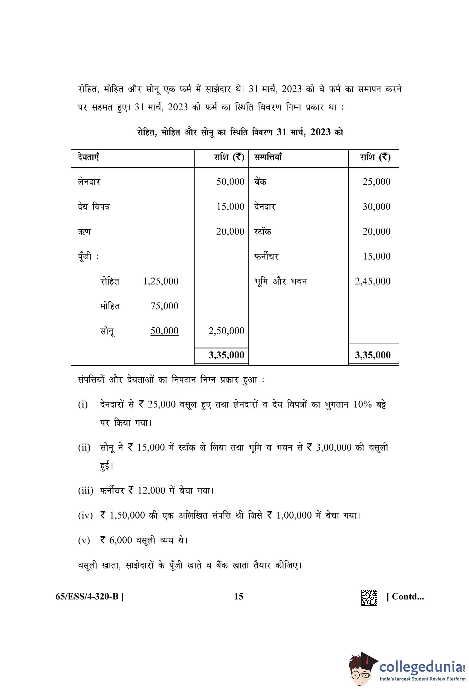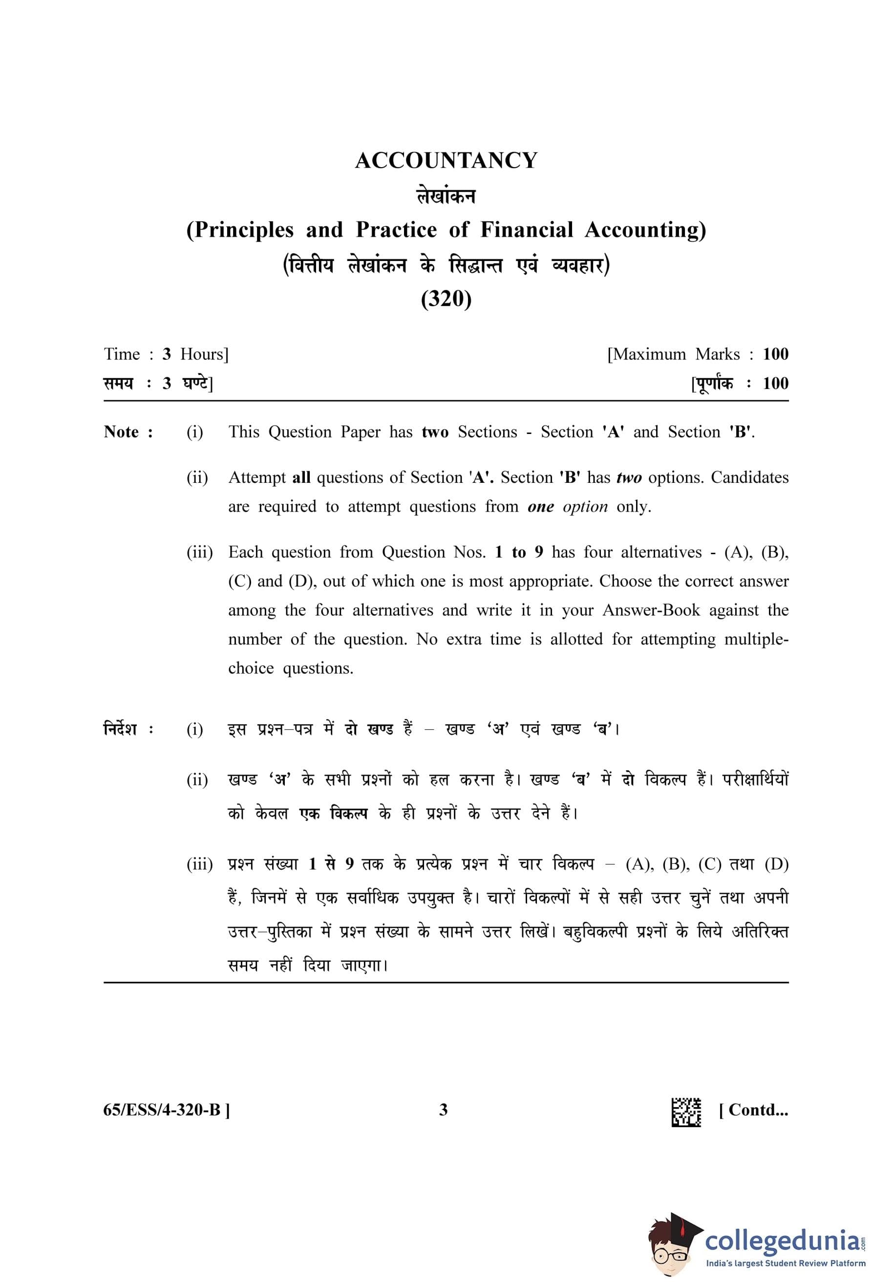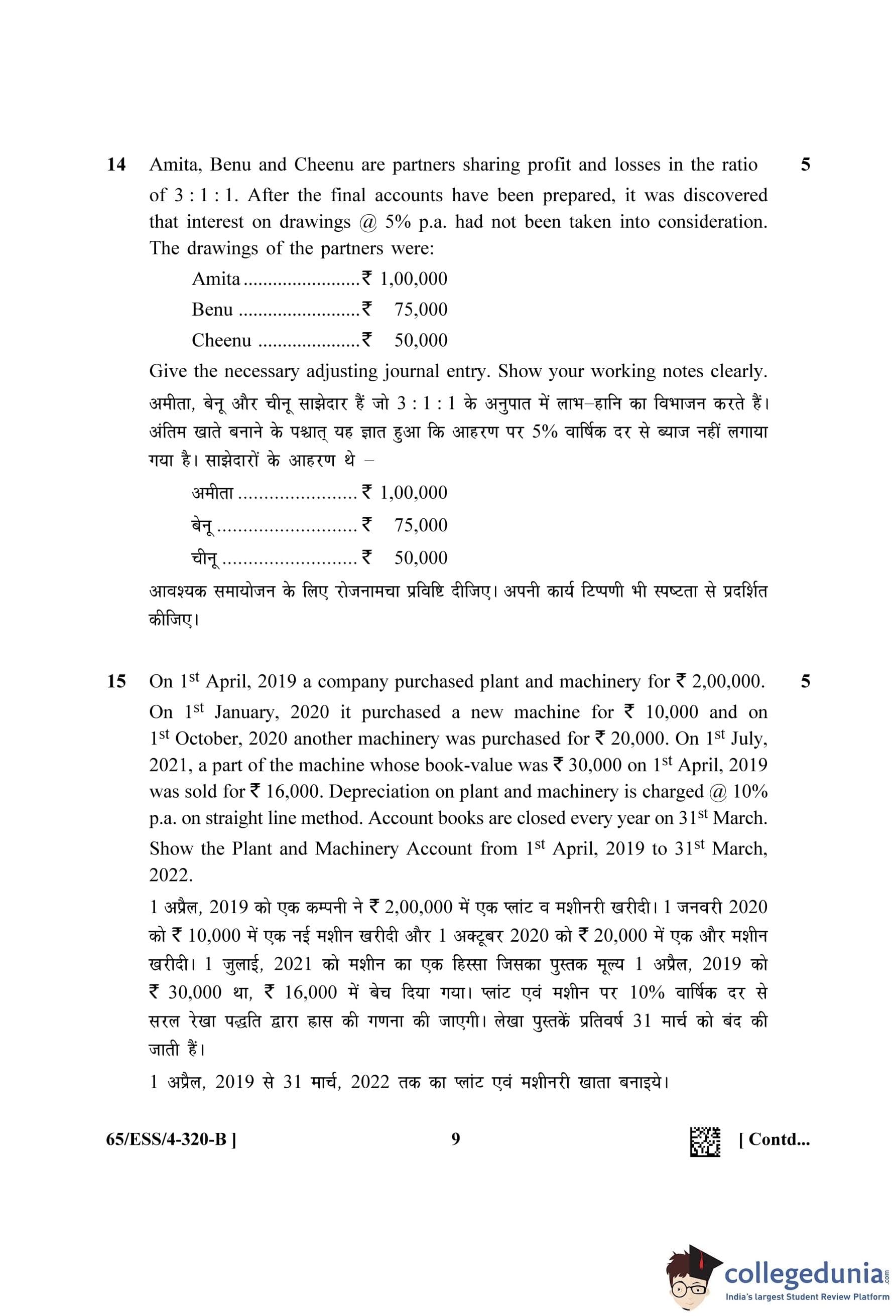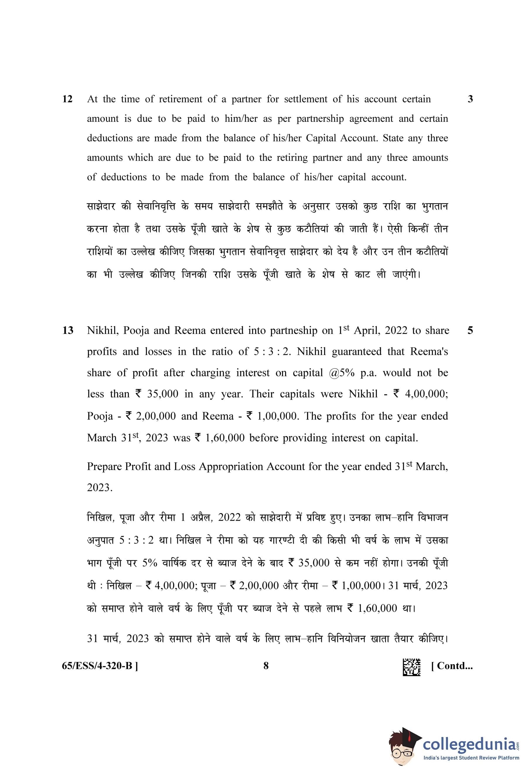 NIOS Class 12 Accountancy (Set B - ESS) Question Paper 2023 with Answer Key
