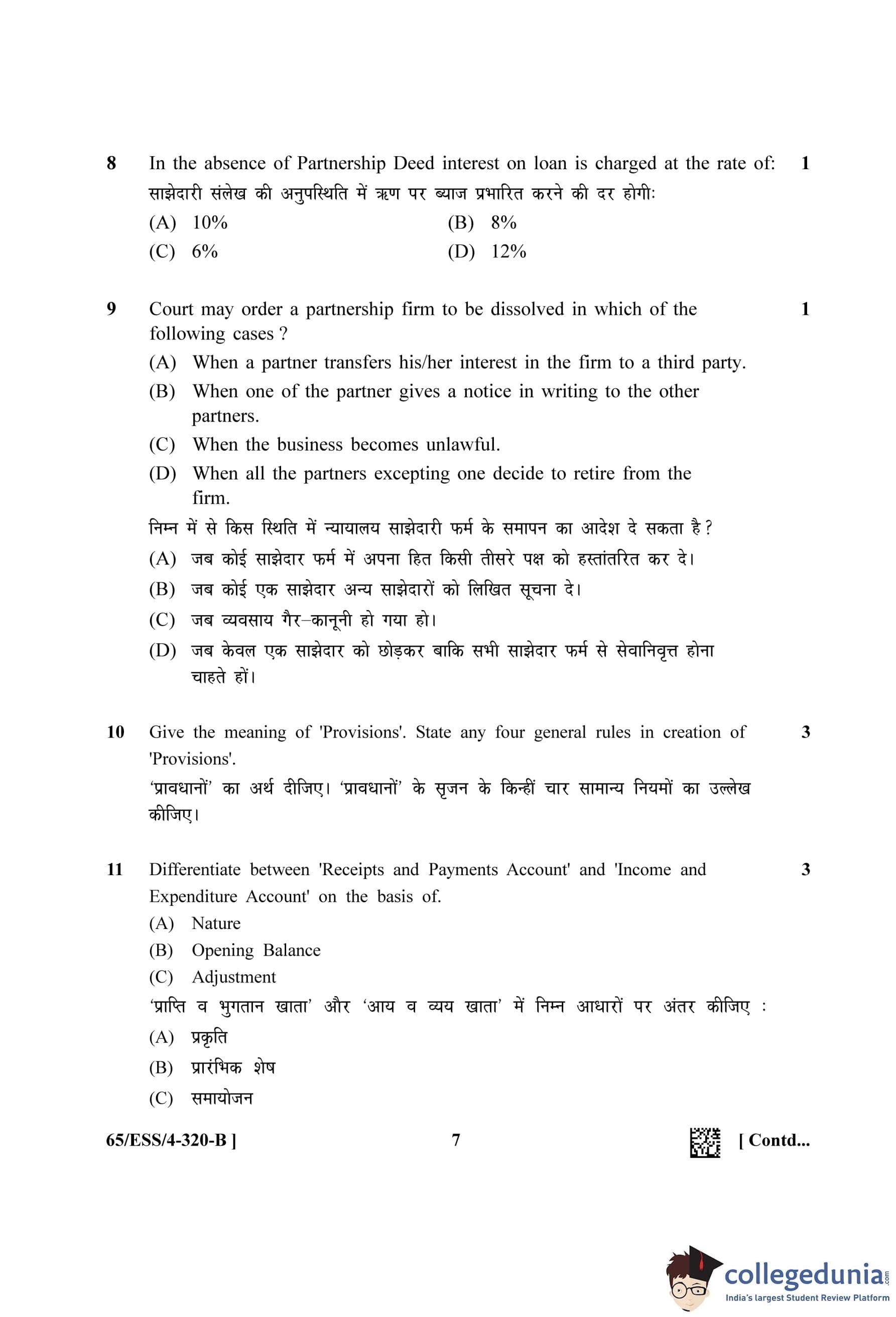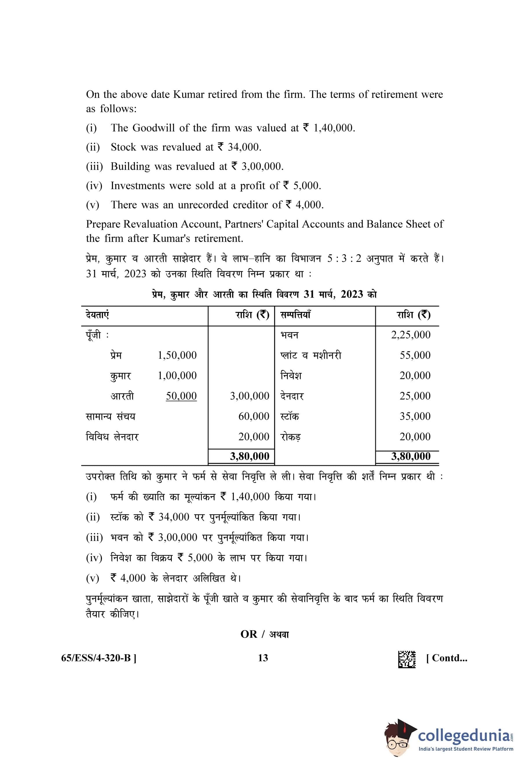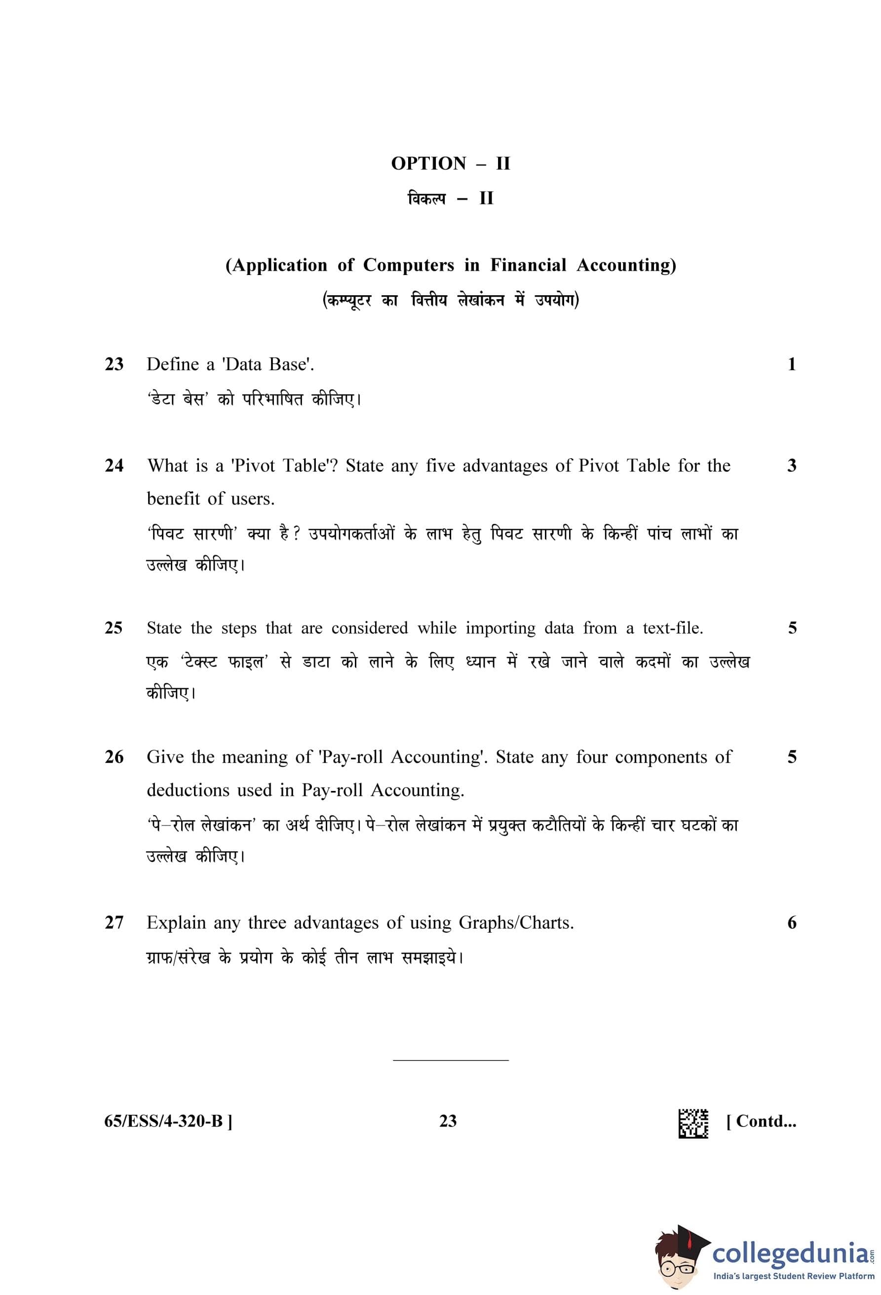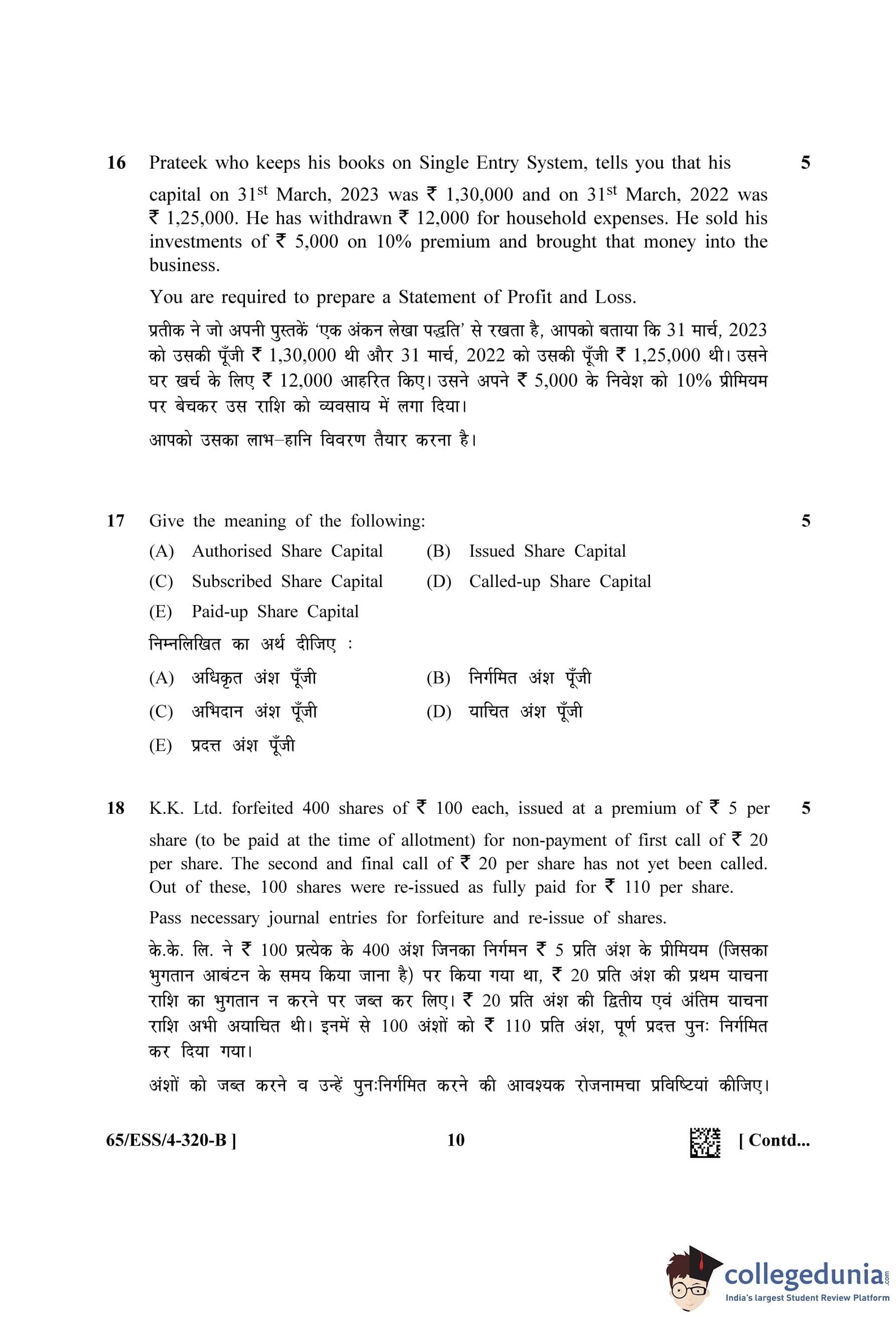NIOS Class 12 Accountancy (Set B - ESS) Question Paper 2023 with Answer Key