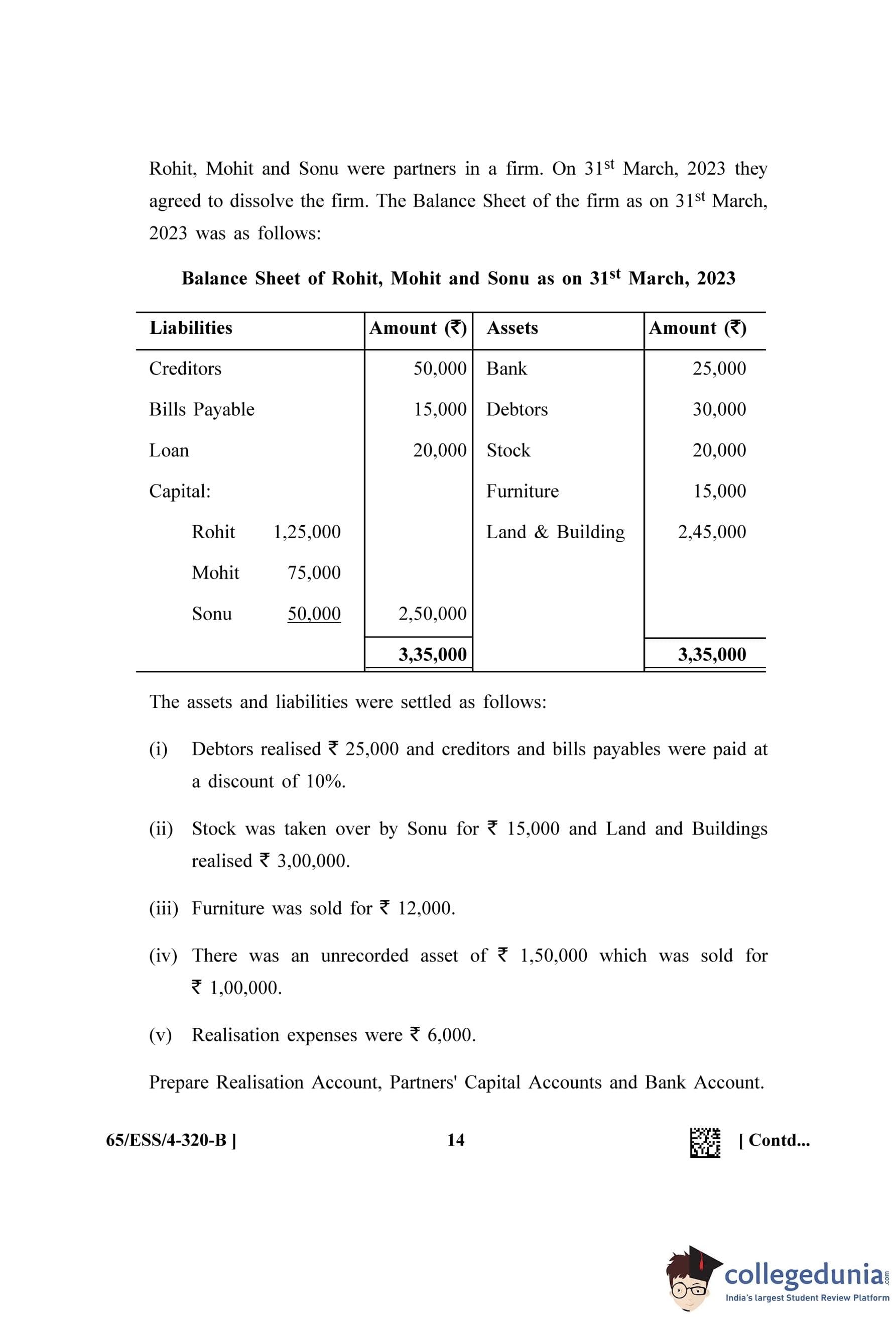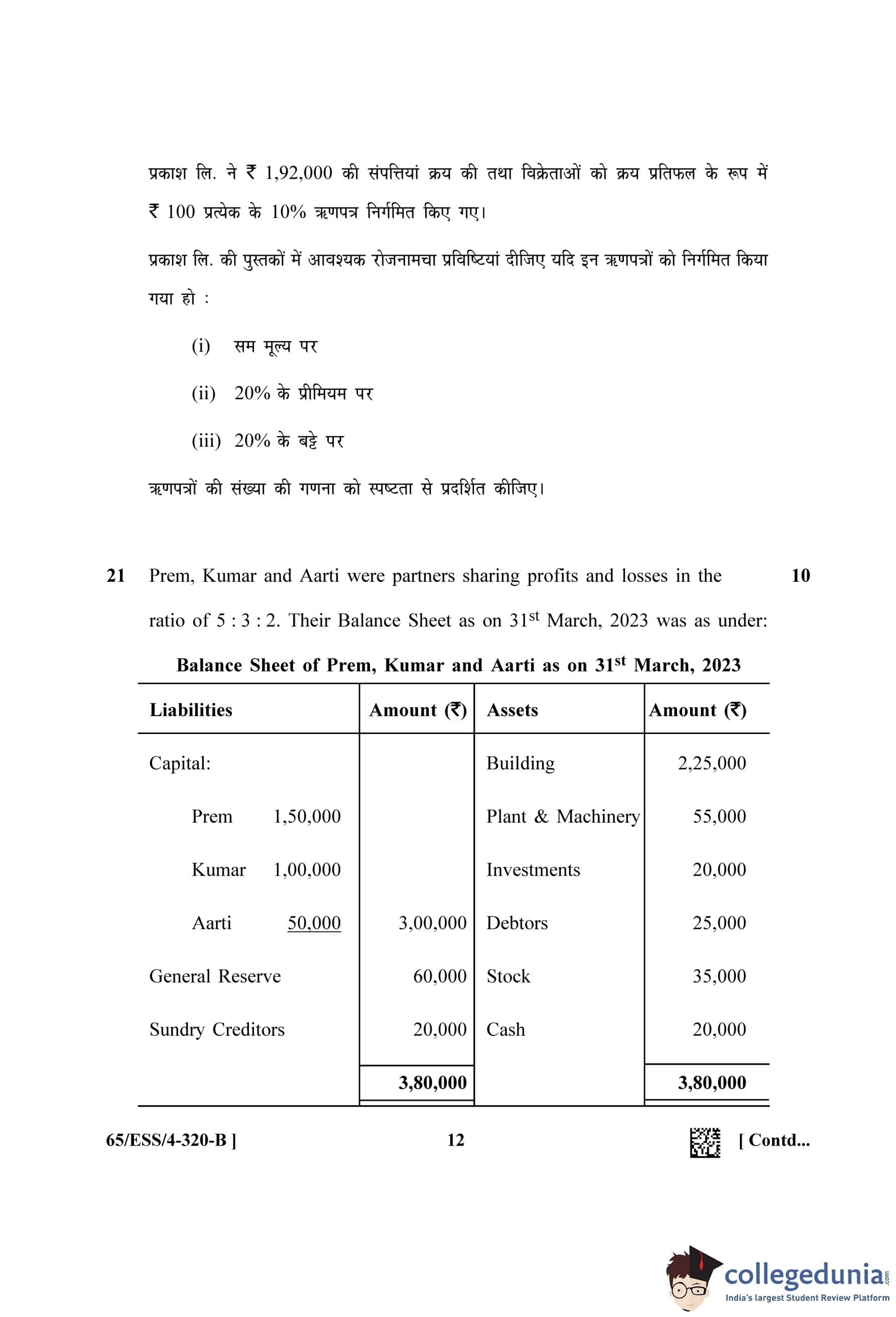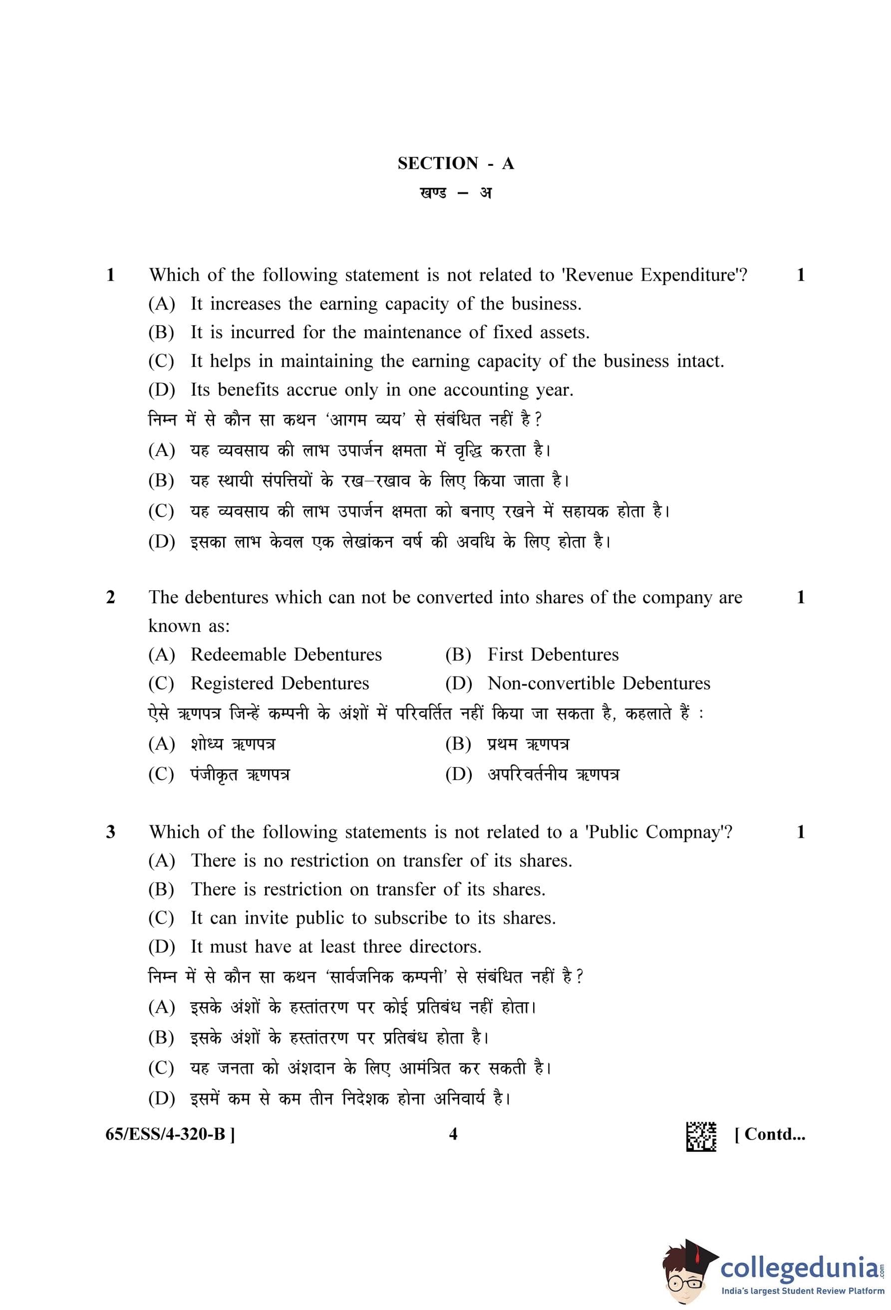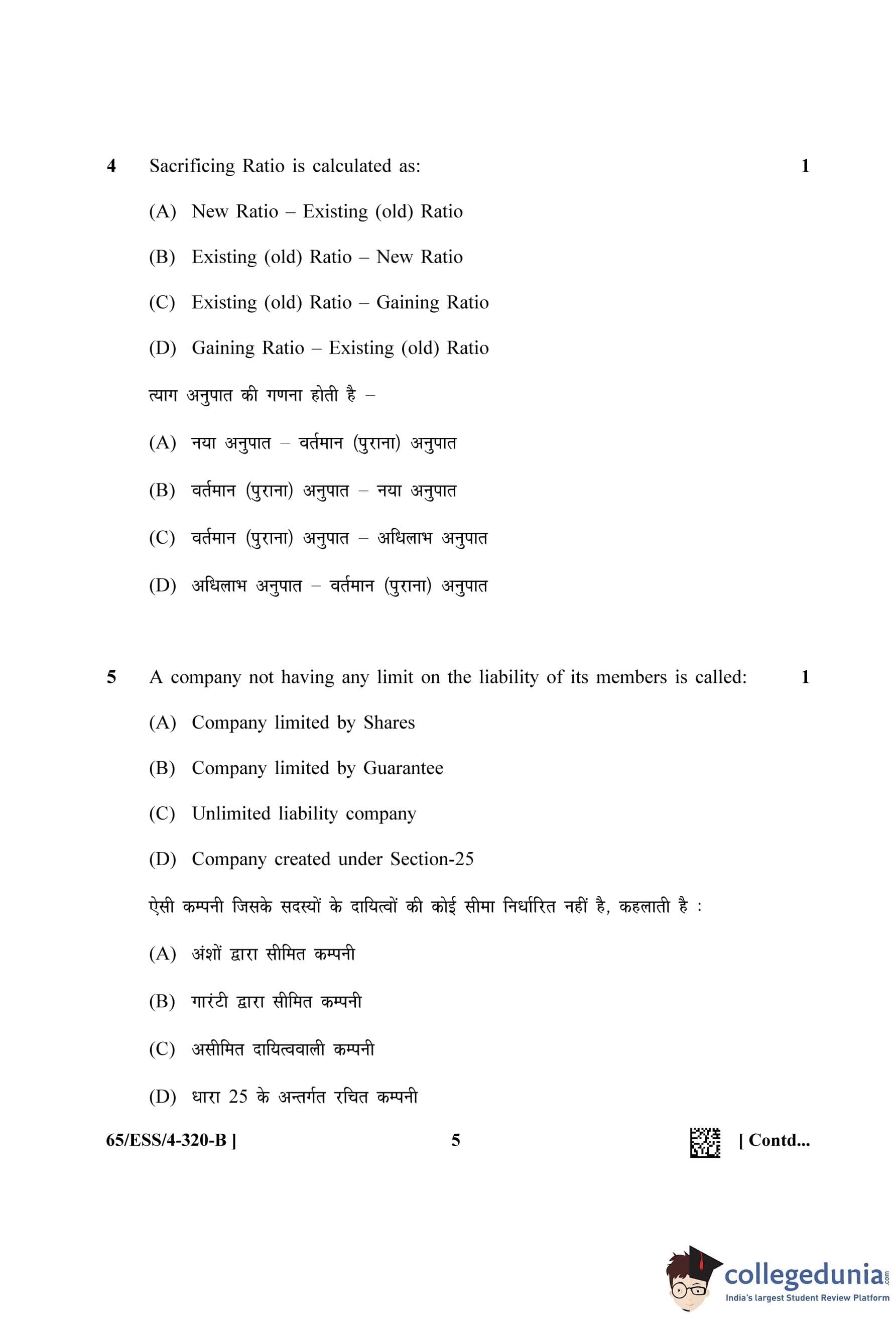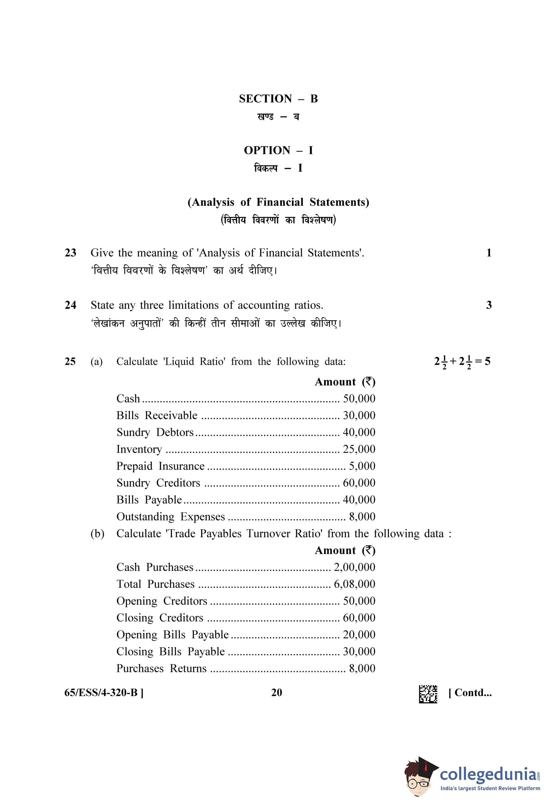 NIOS Class 12 Accountancy (Set B - ESS) Question Paper 2023 with Answer Key