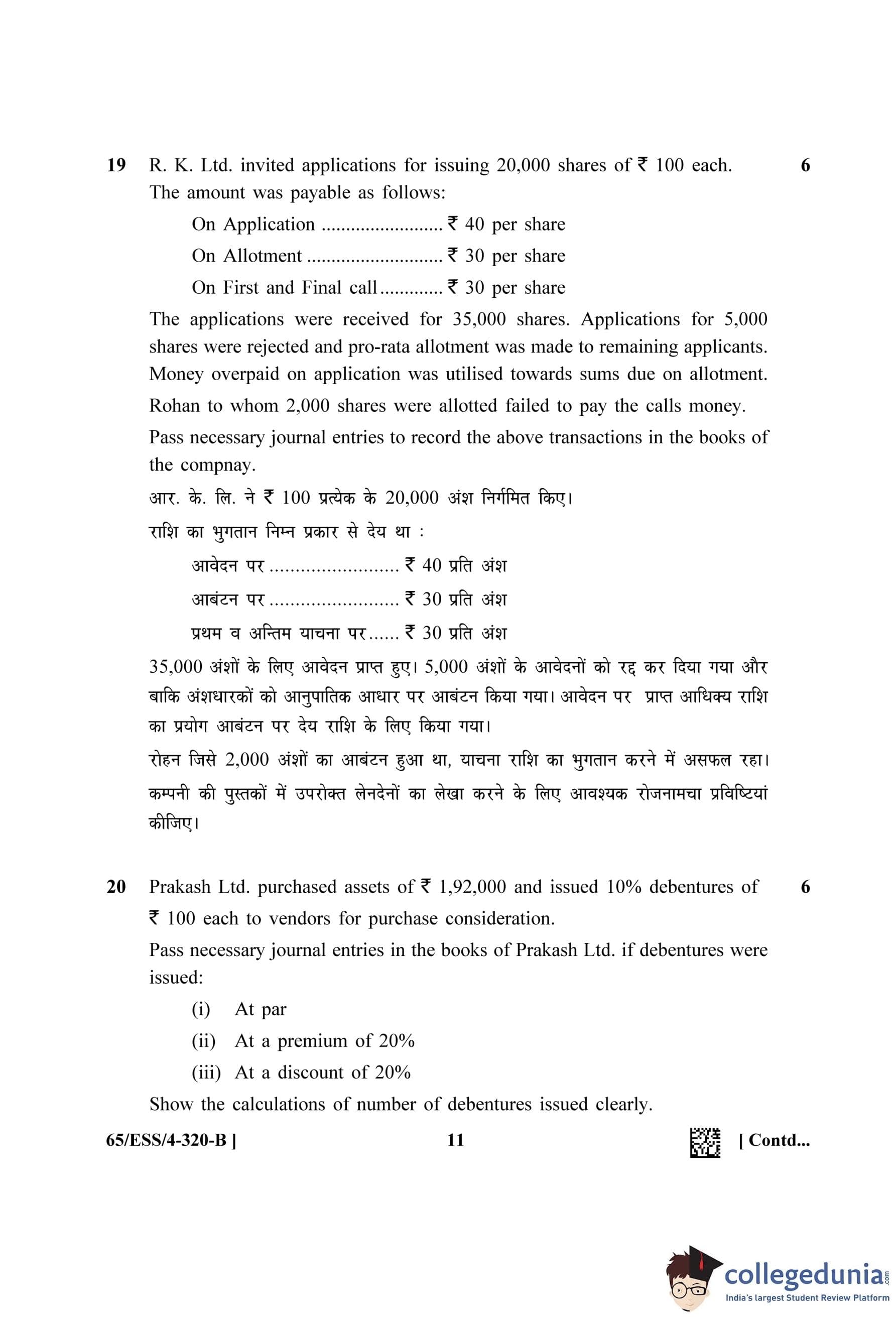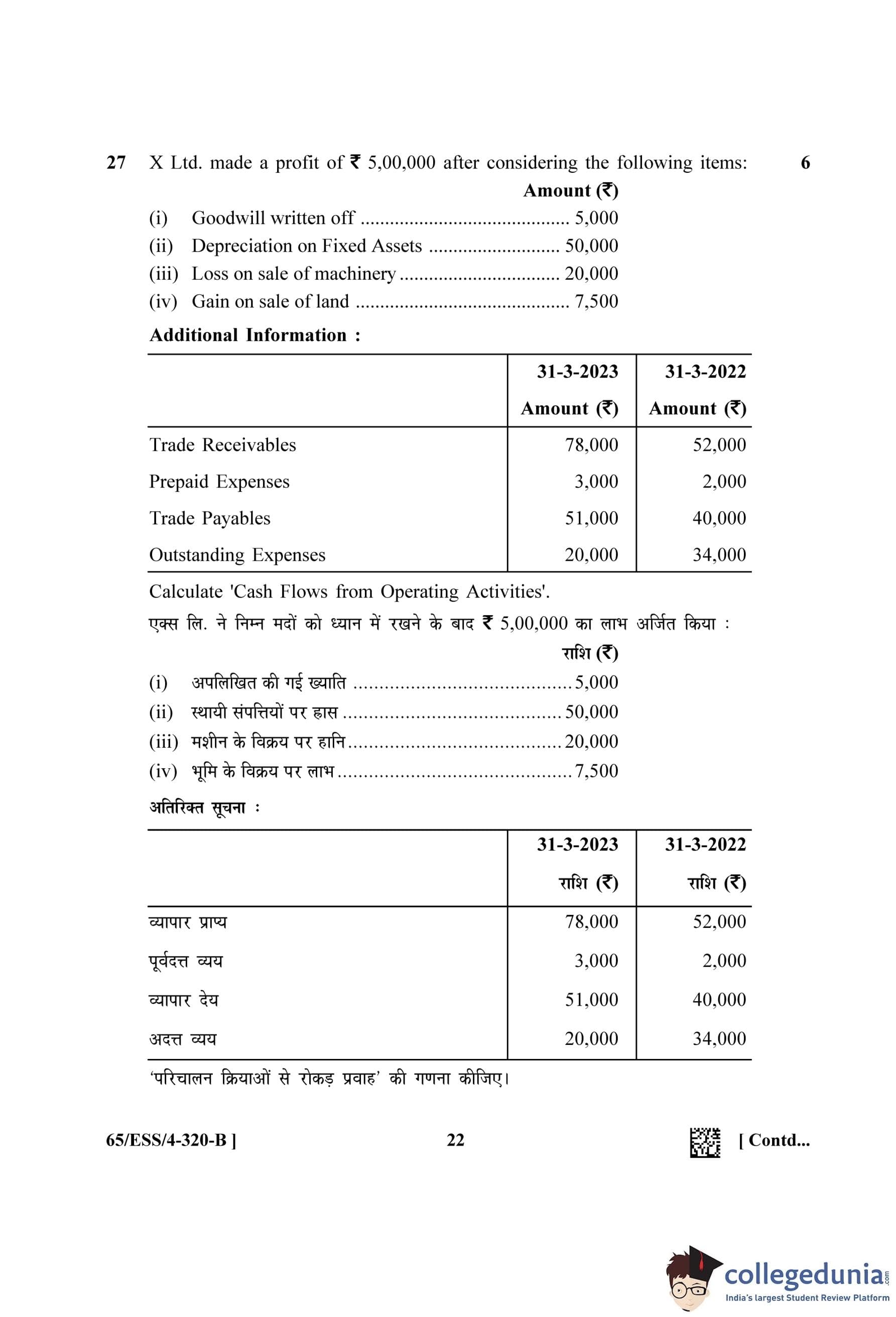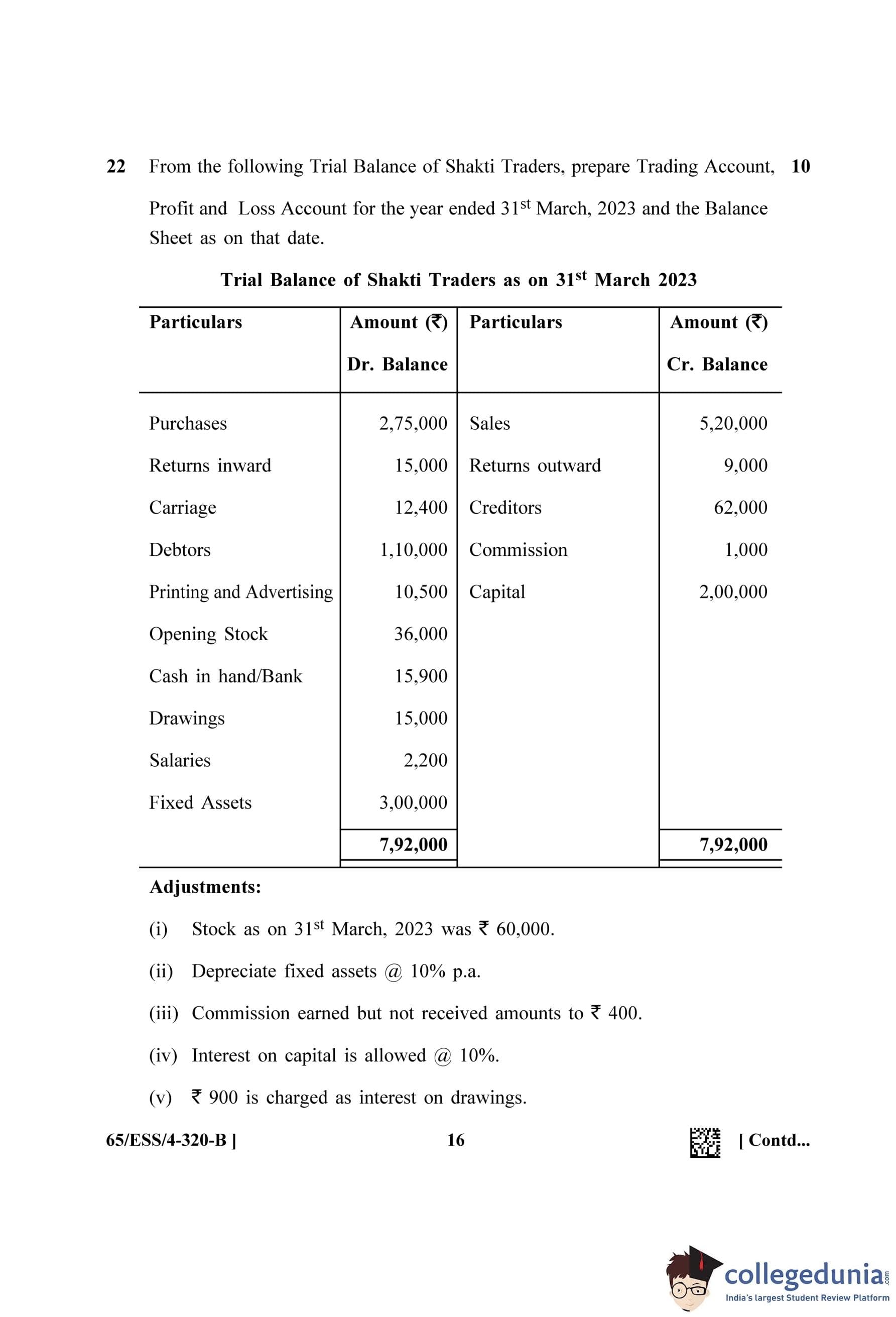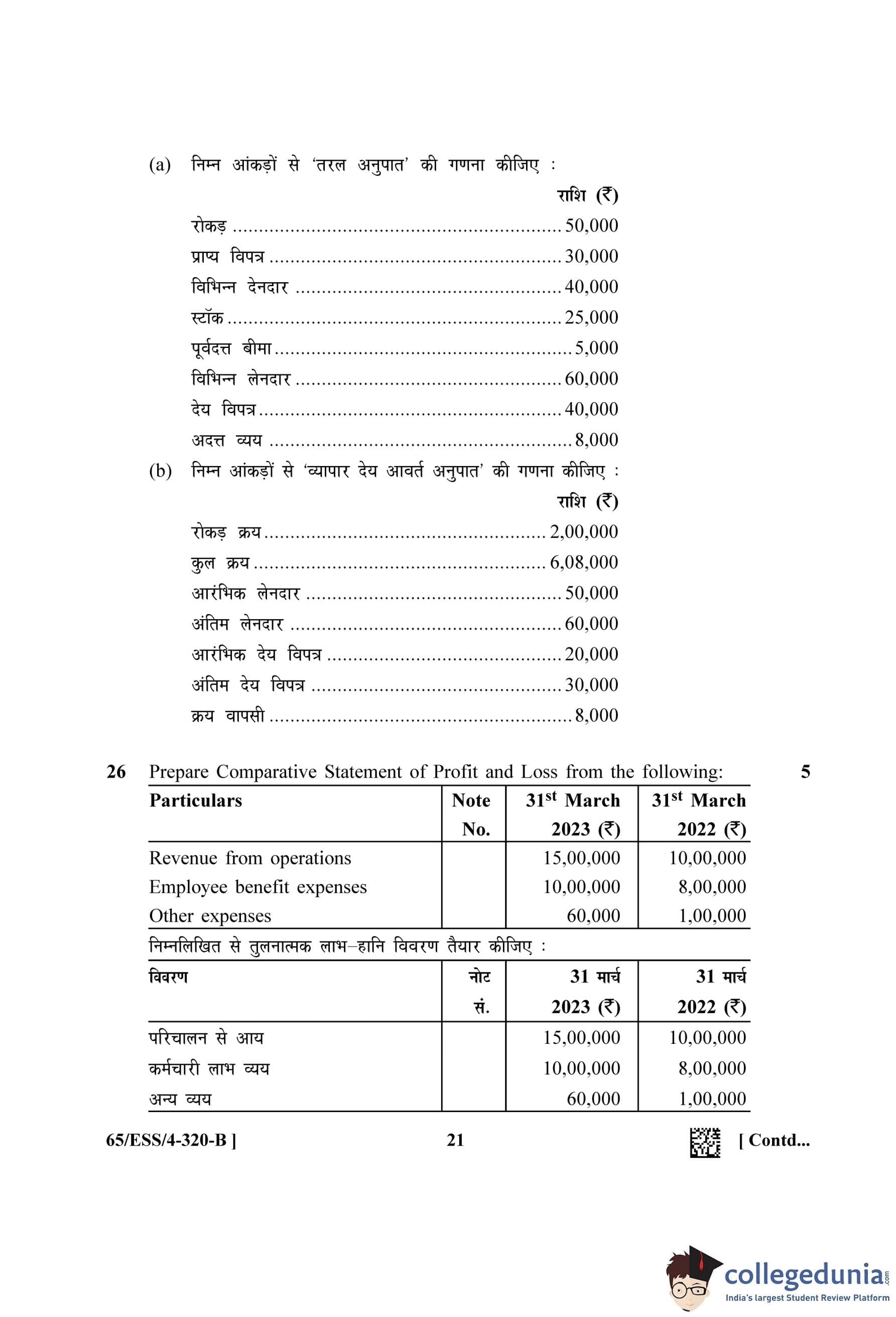 NIOS Class 12 Accountancy (Set B - ESS) Question Paper 2023 with Answer Key