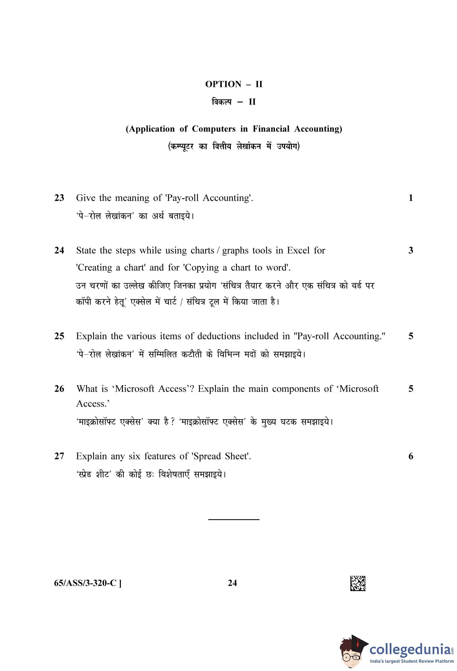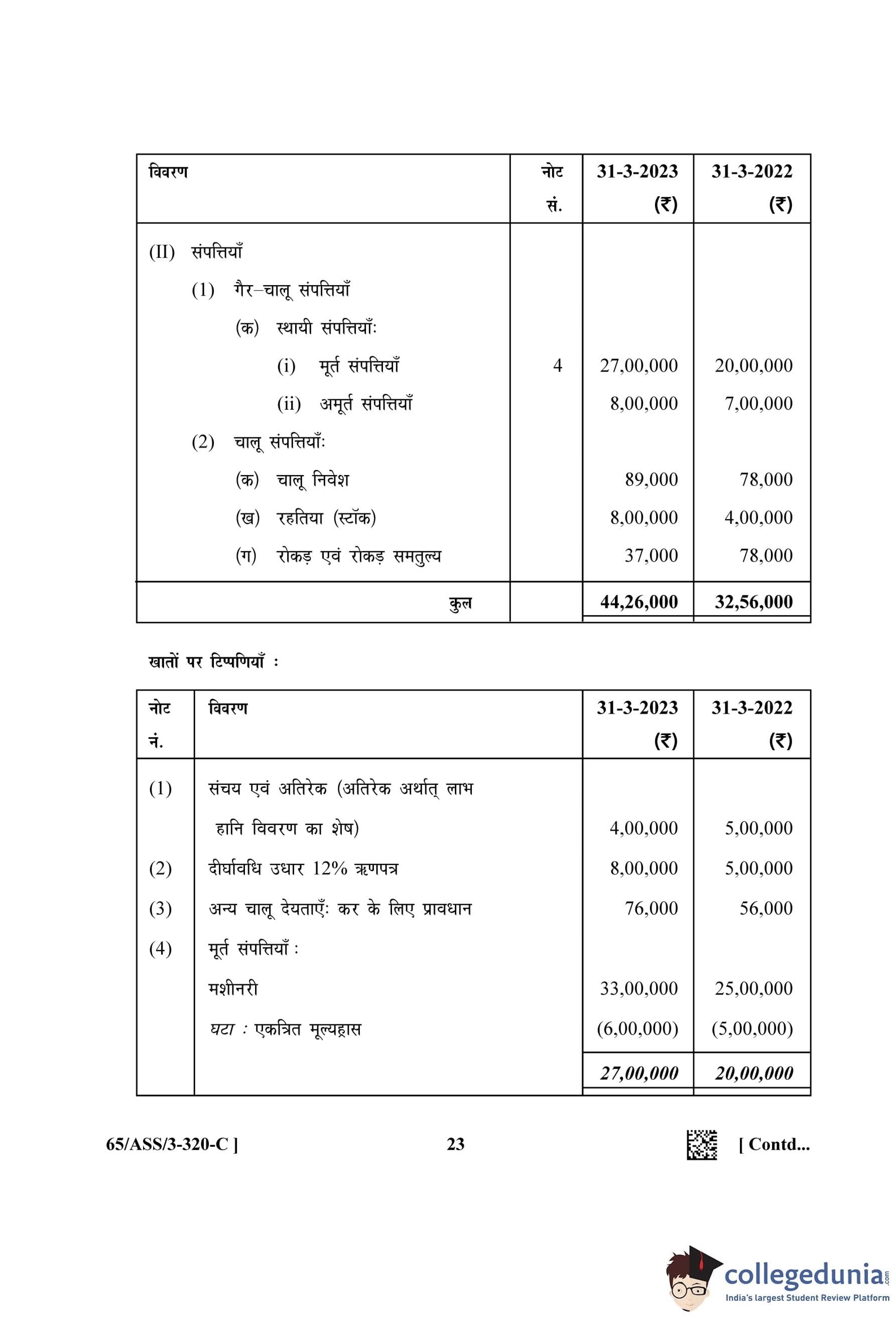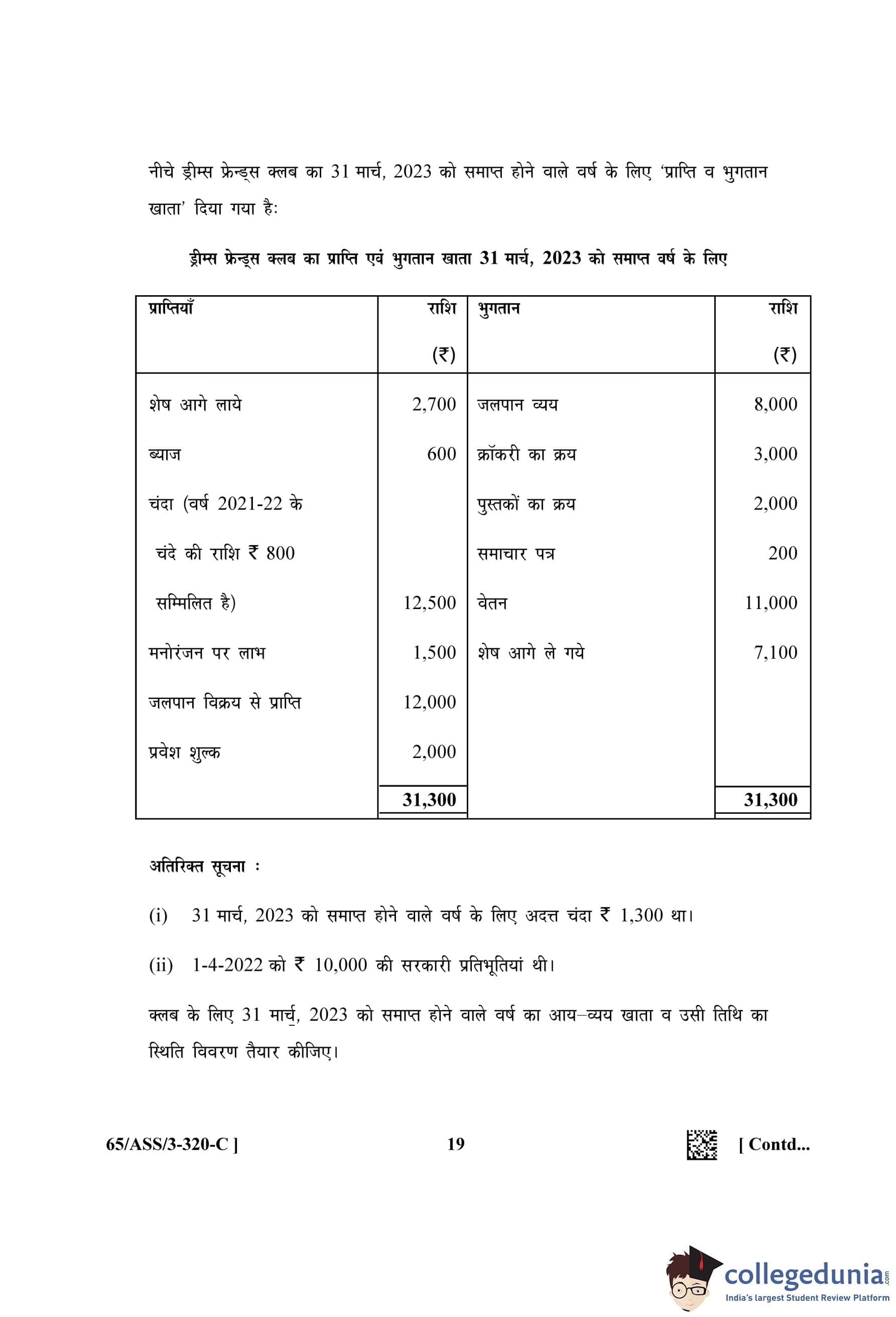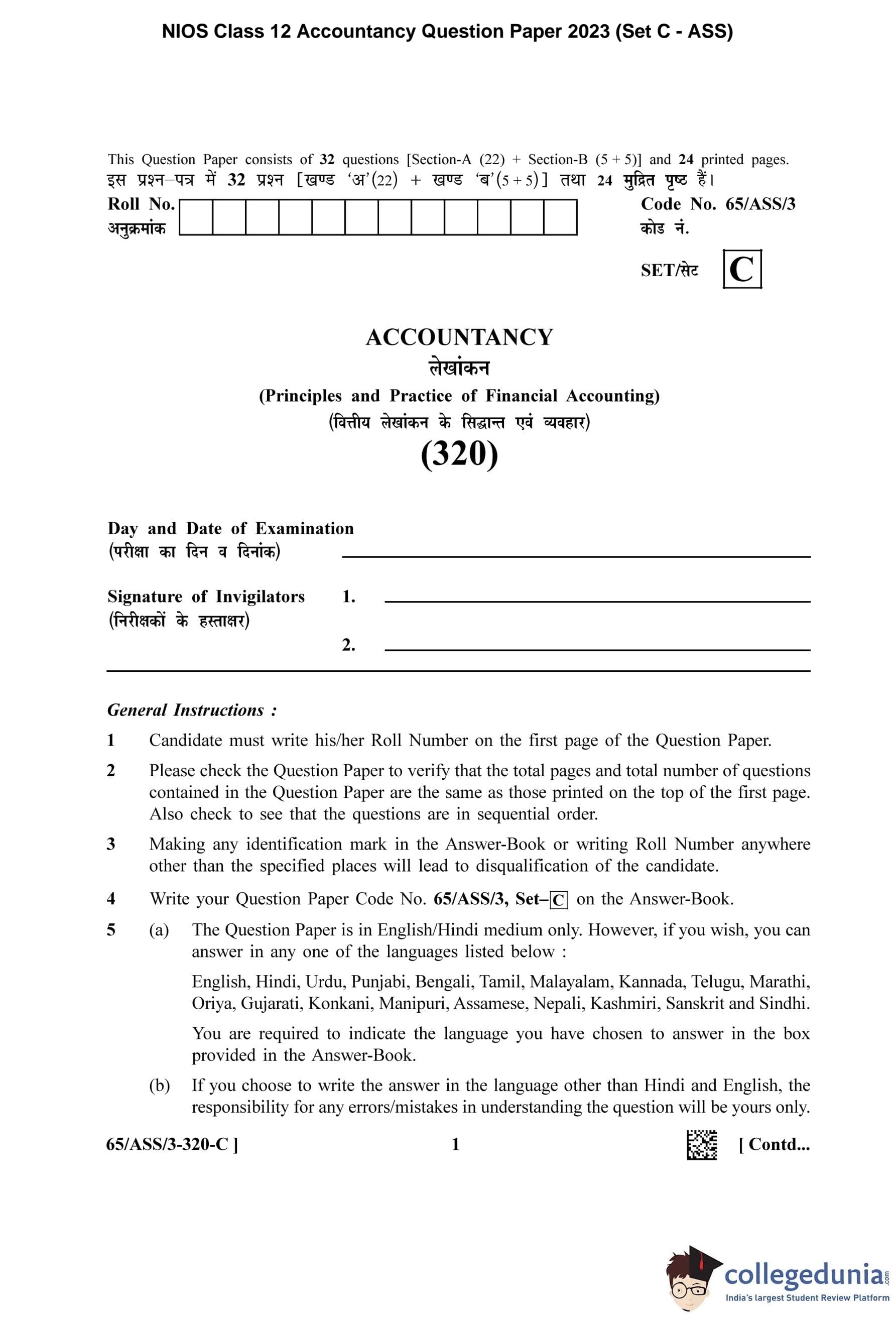 NIOS Class 12 Accountancy Question Paper 2023 with Answer Key pdf (Set C - ASS) is available for download here. The exam was conducted by National Institute of Open Schooling on April 26, 2023 in the Afternoon Session 2.30 PM to 5.30 PM. The question paper comprised a total of 32 questions divided among 2 sections.