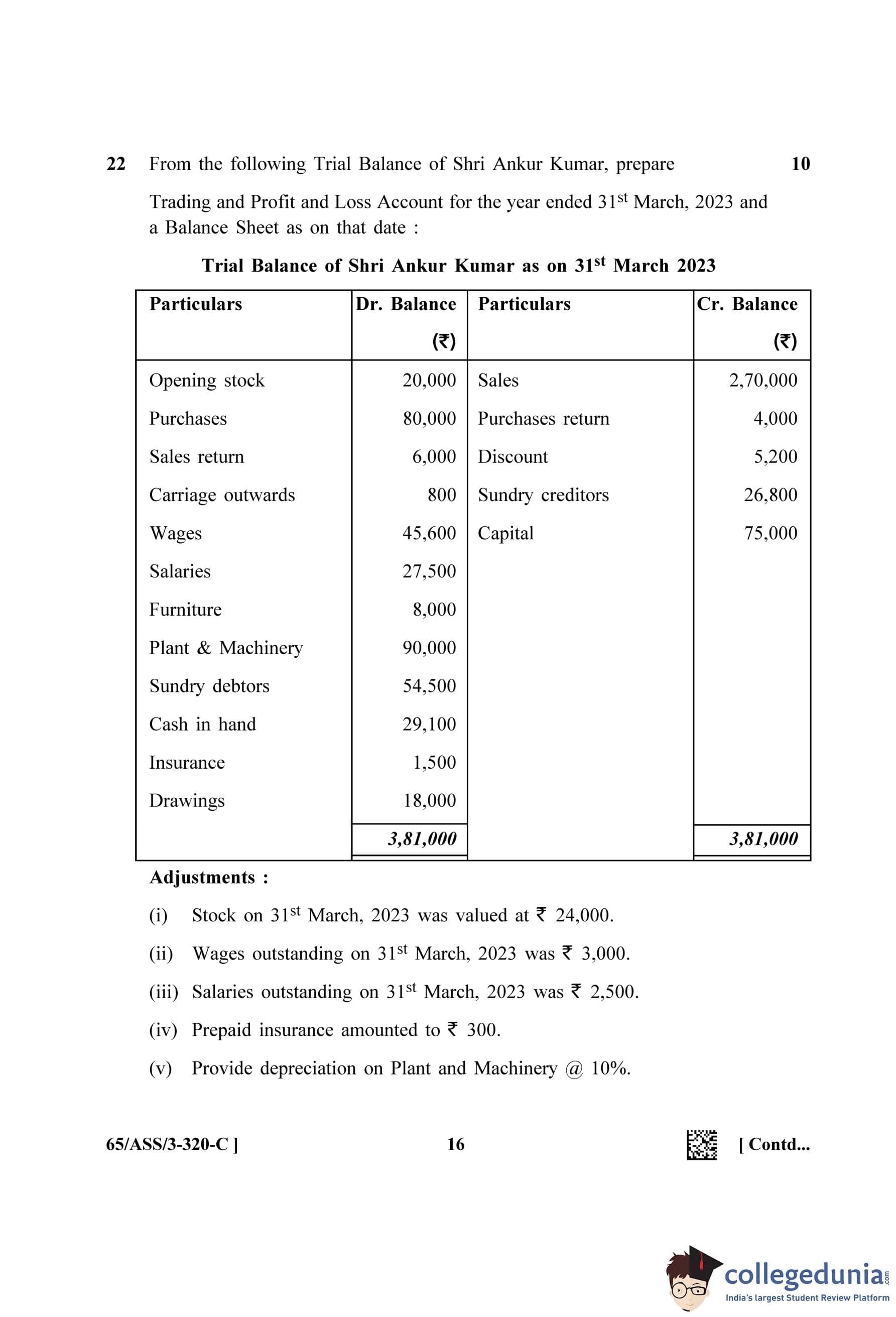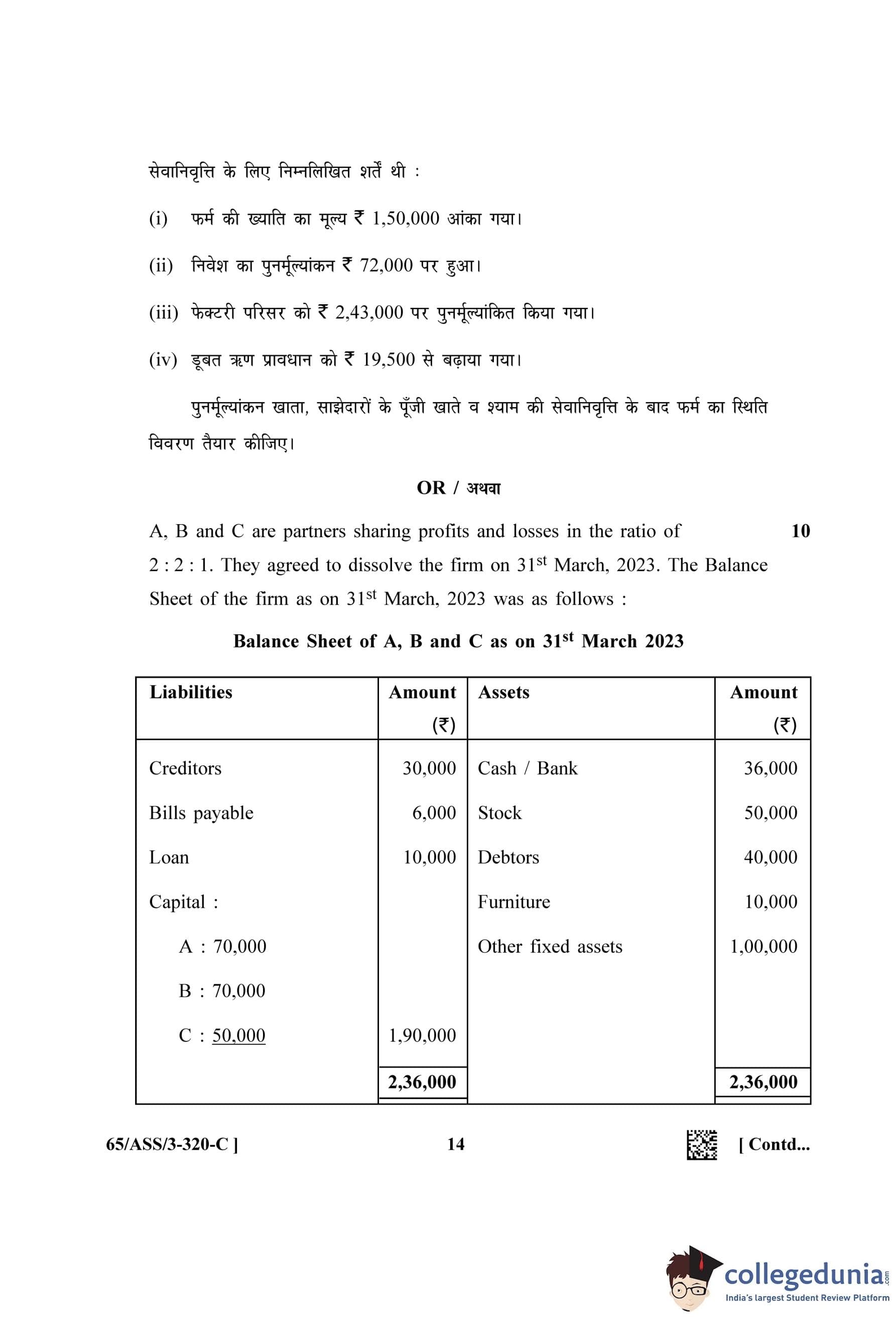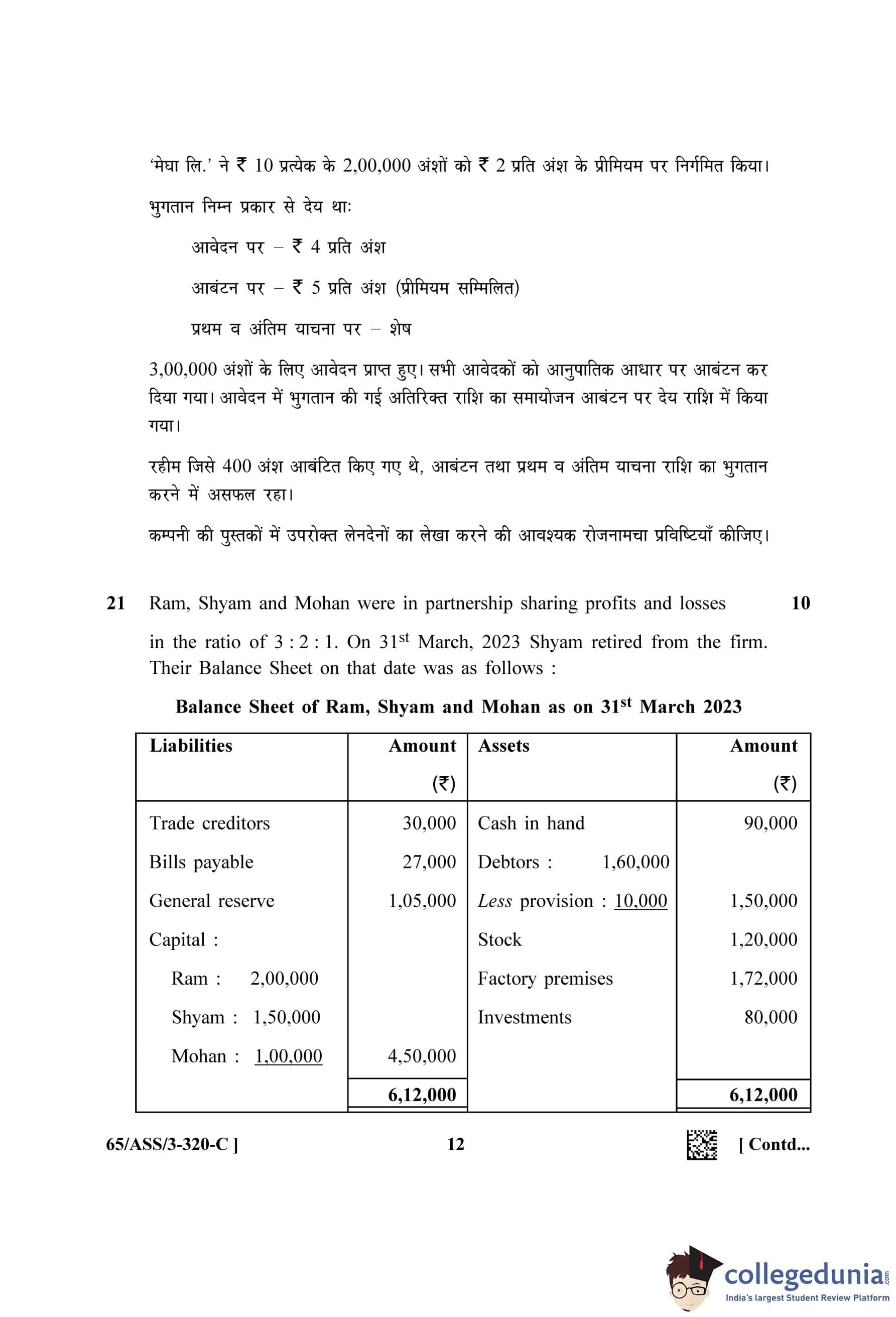 NIOS Class 12 Accountancy (Set C - ASS) Question Paper 2023 with Answer Key