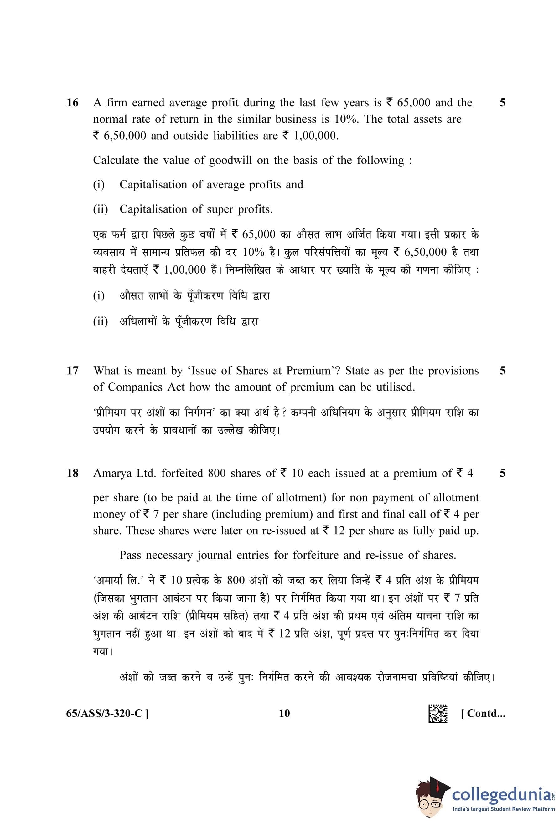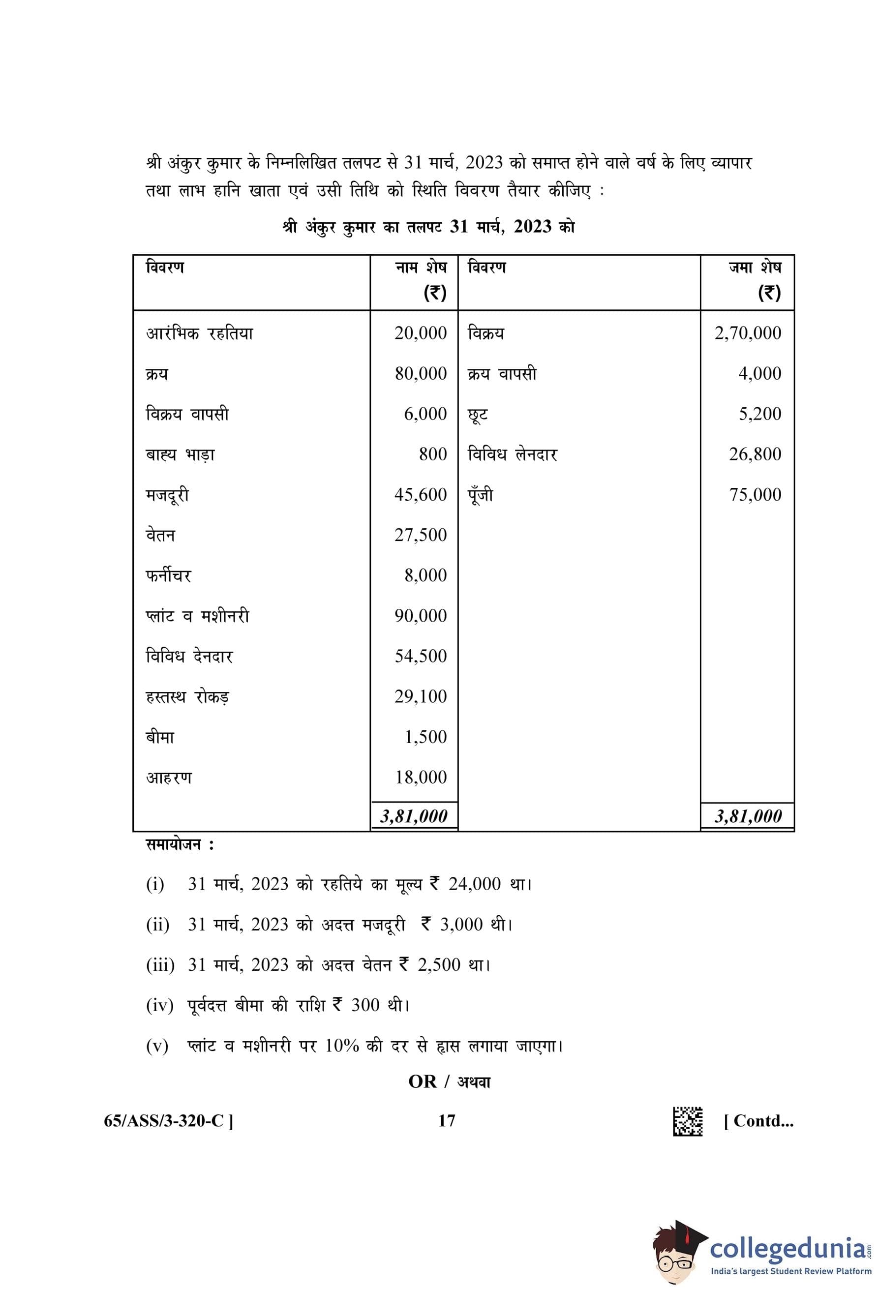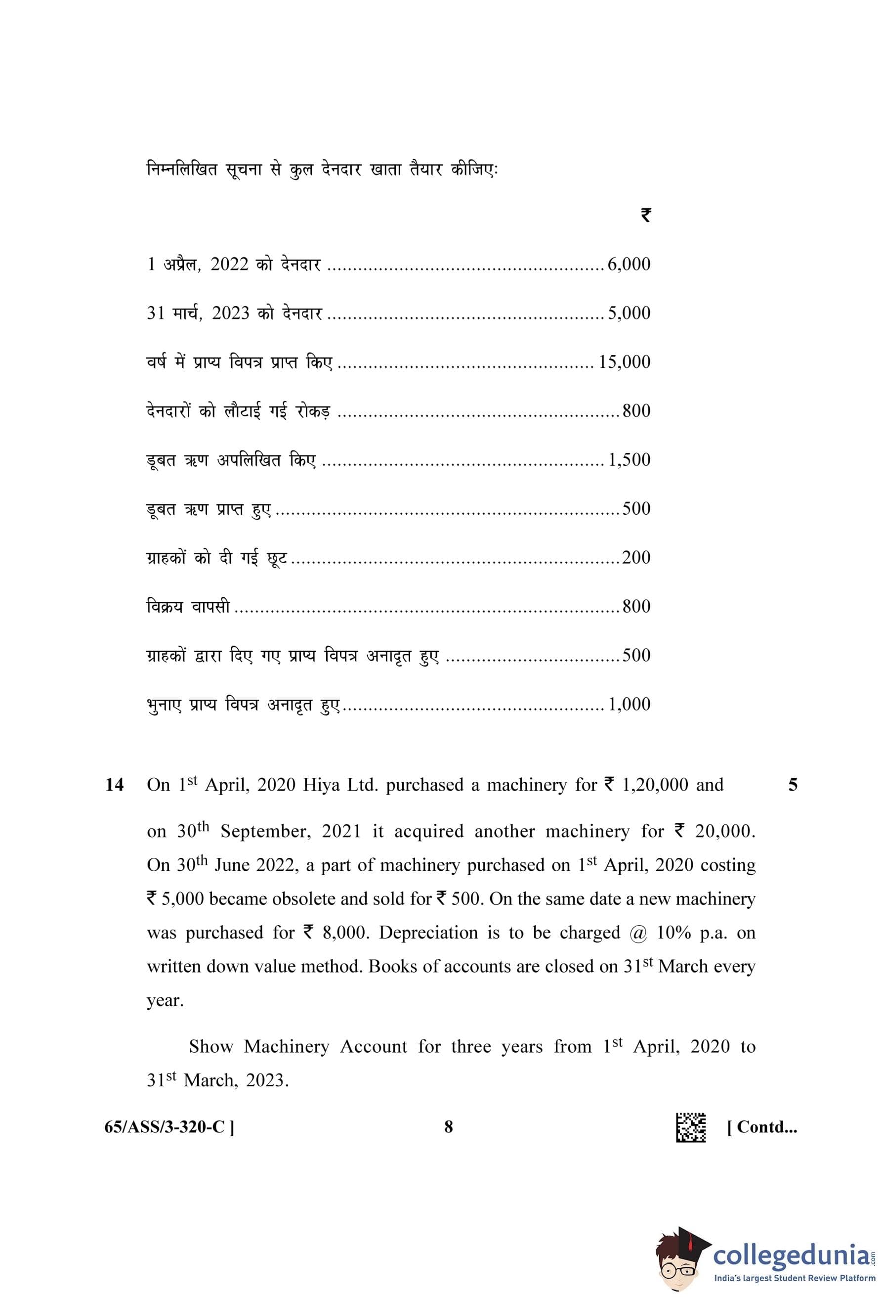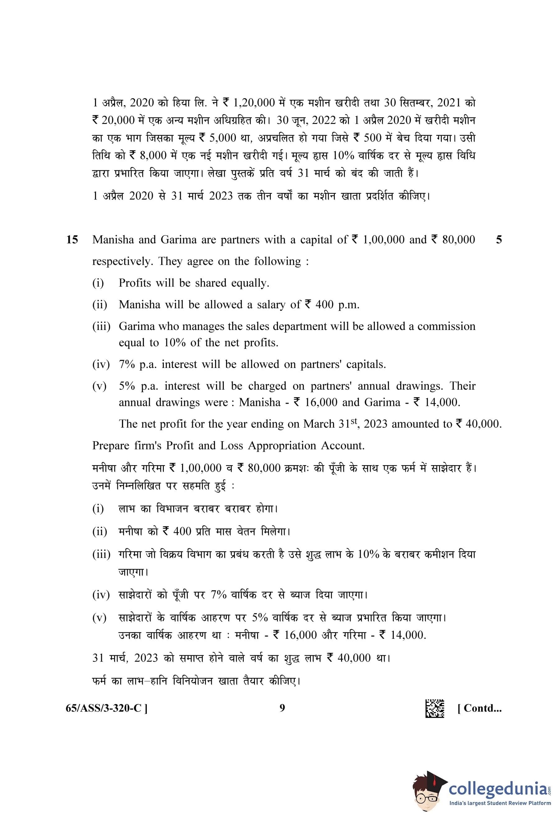 NIOS Class 12 Accountancy (Set C - ASS) Question Paper 2023 with Answer Key