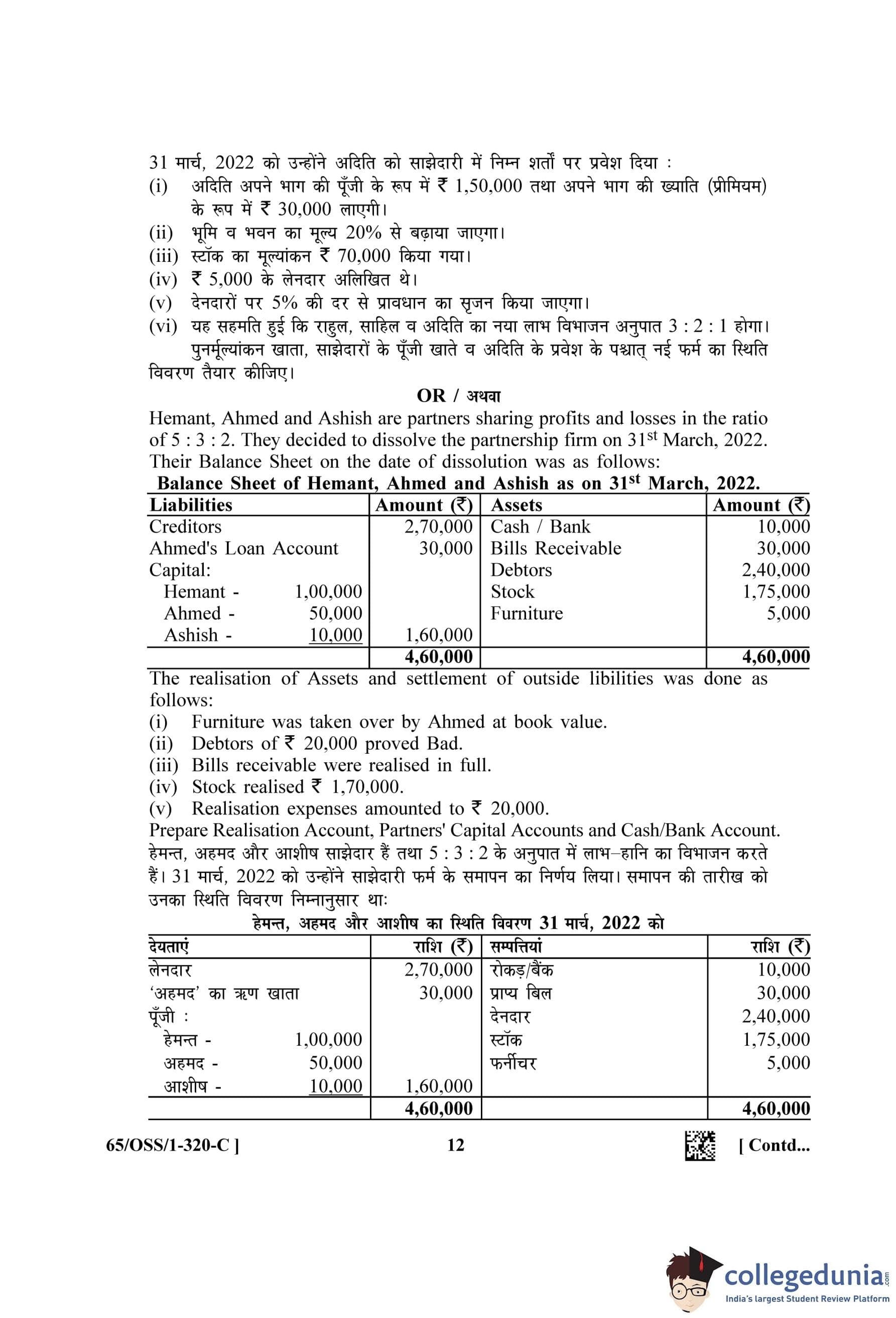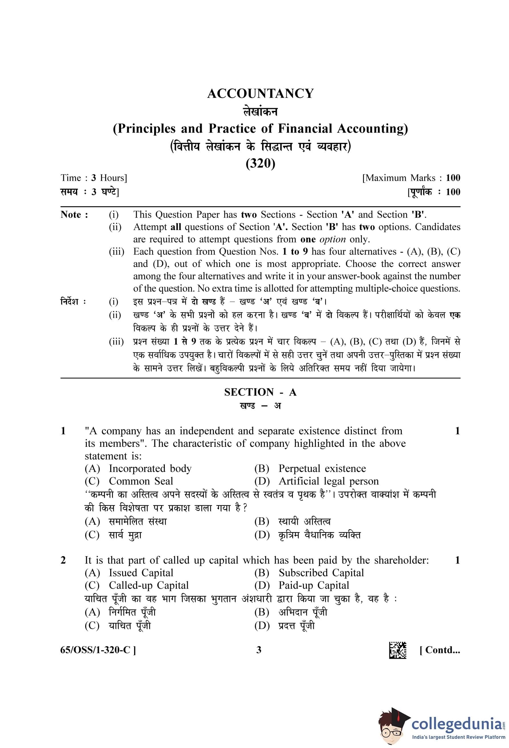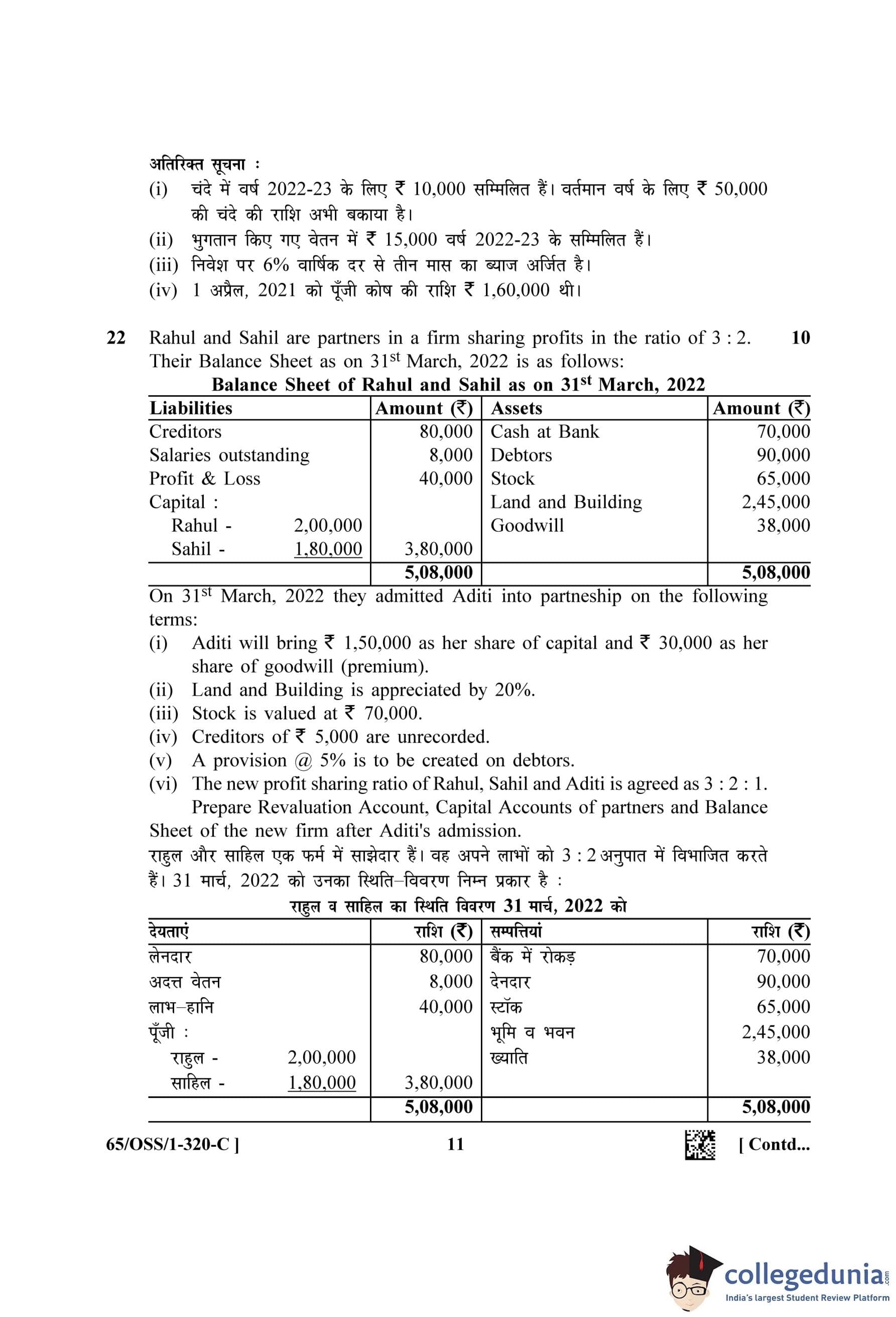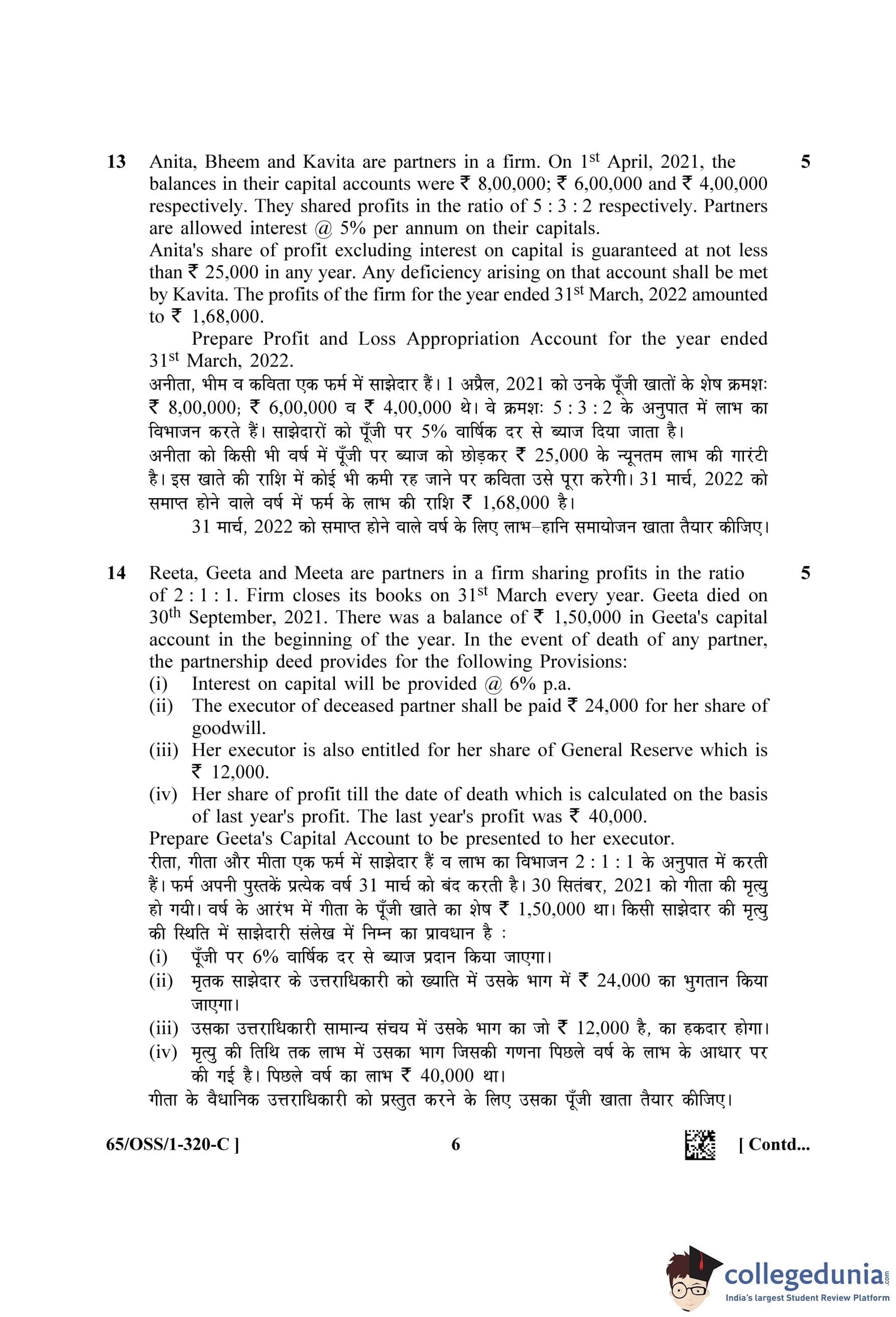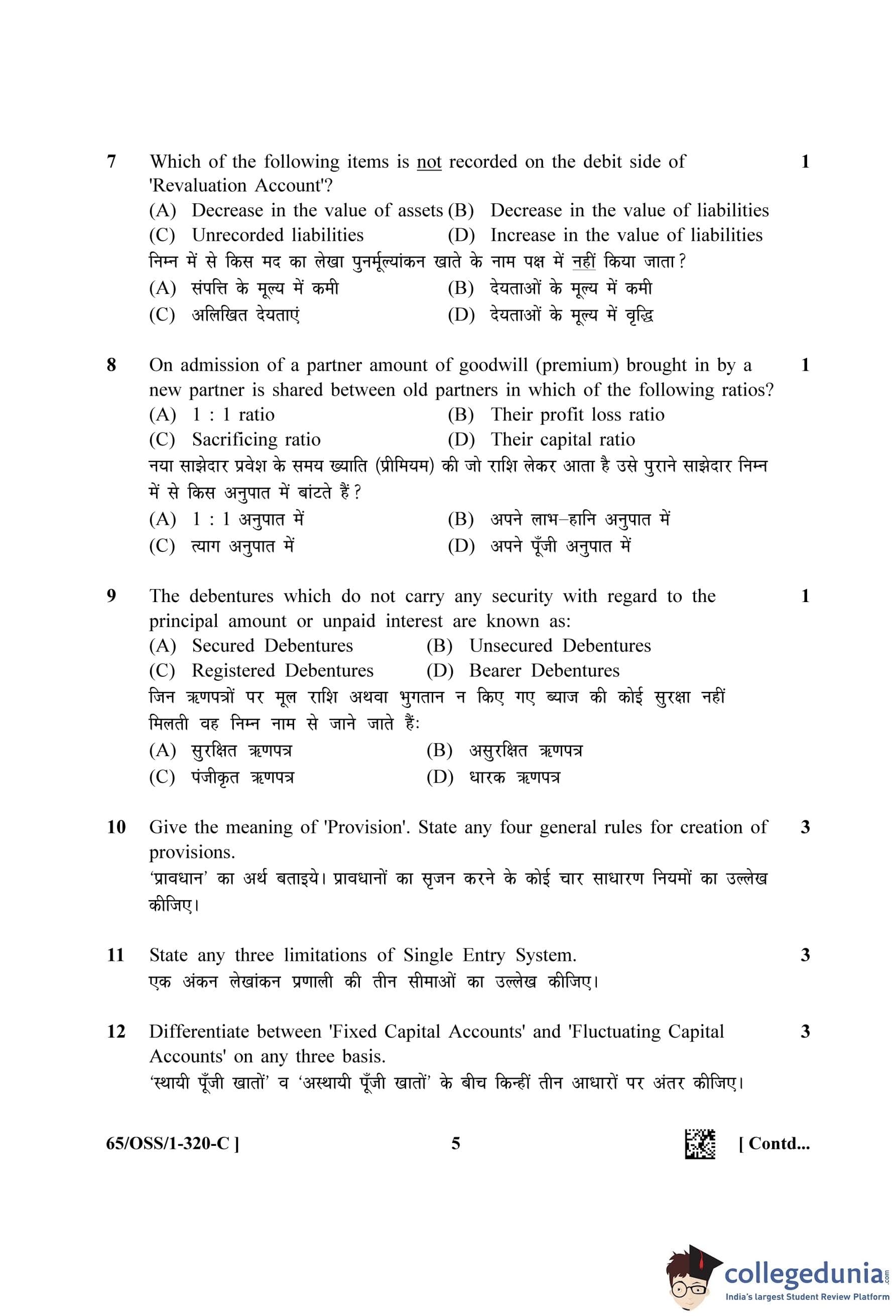 NIOS Class 12 Accountancy (Set C - OSS) Question Paper 2023 with Answer Key
