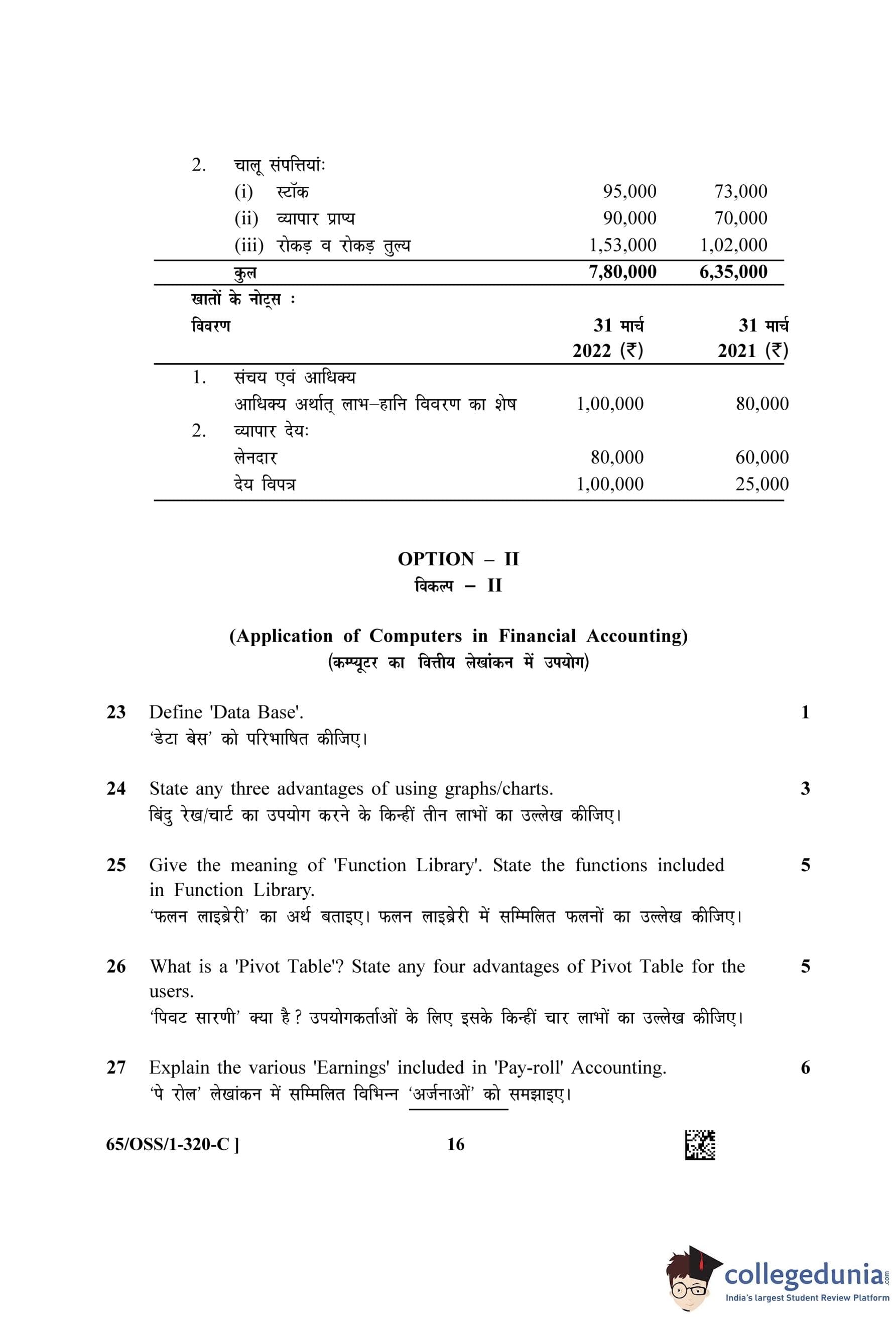 NIOS Class 12 Accountancy Question Paper 2023 with Answer Key pdf (Set C - OSS) is available for download here. The exam was conducted by National Institute of Open Schooling on April 26, 2023 in the Afternoon Session 2.30 PM to 5.30 PM. The question paper comprised a total of 32 questions divided among 2 sections.