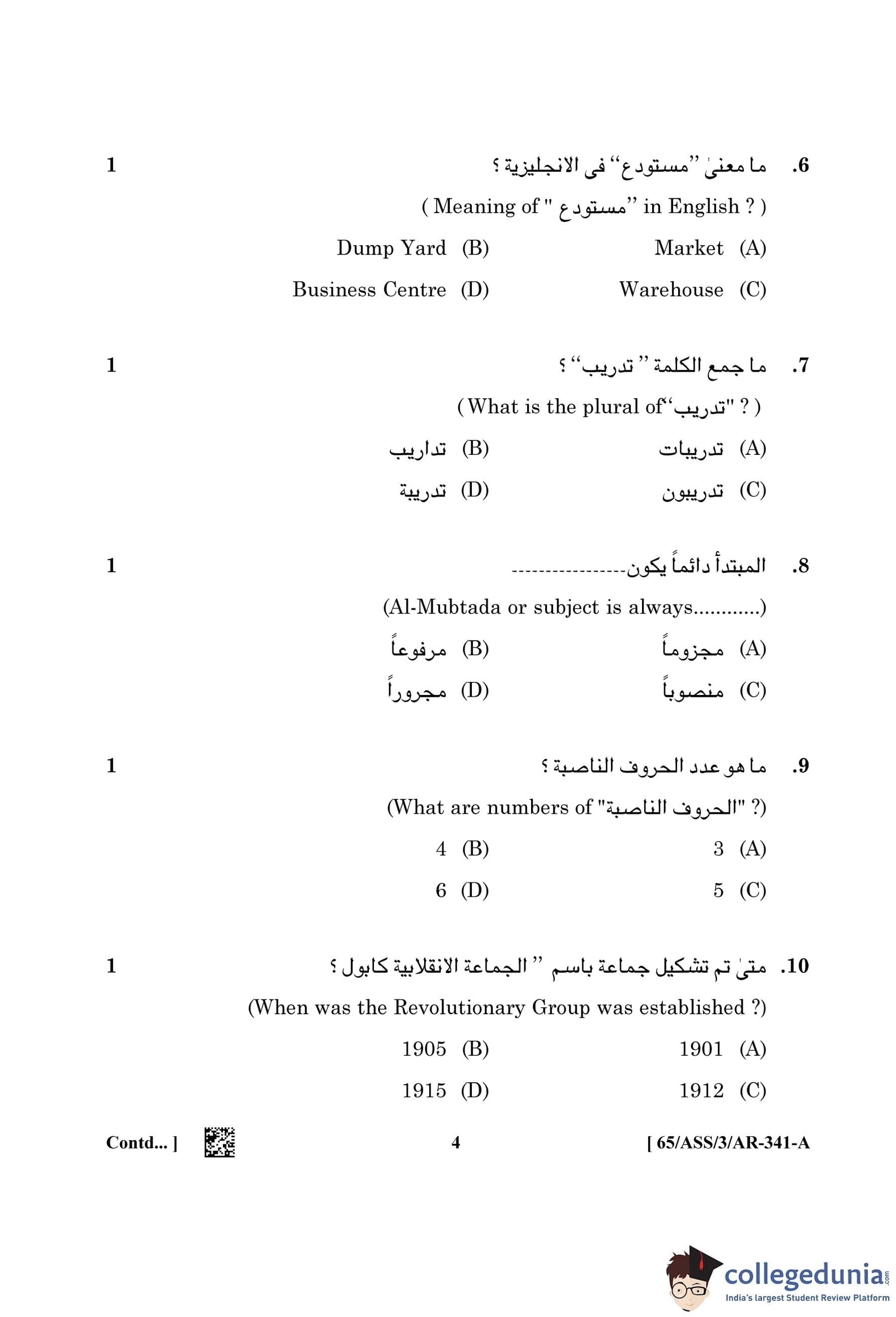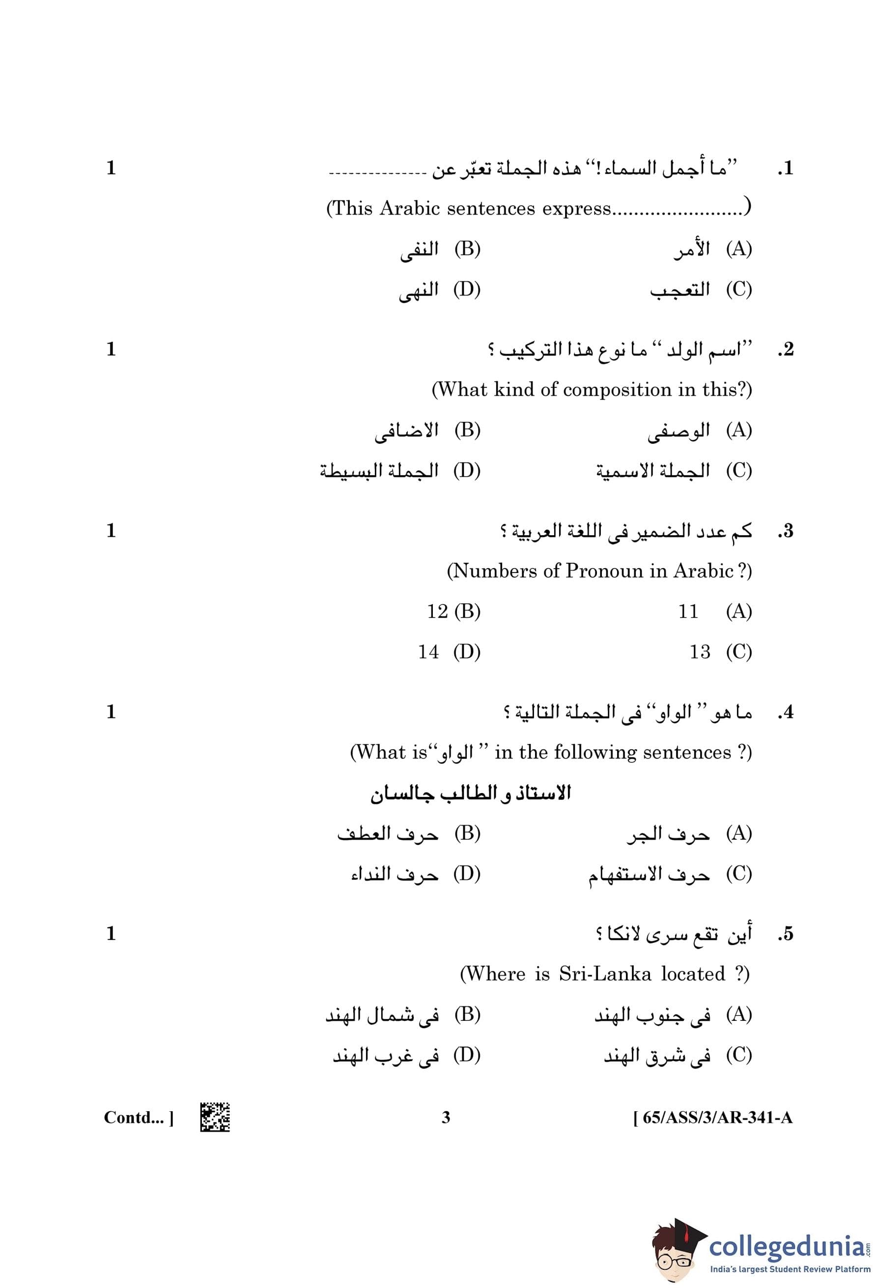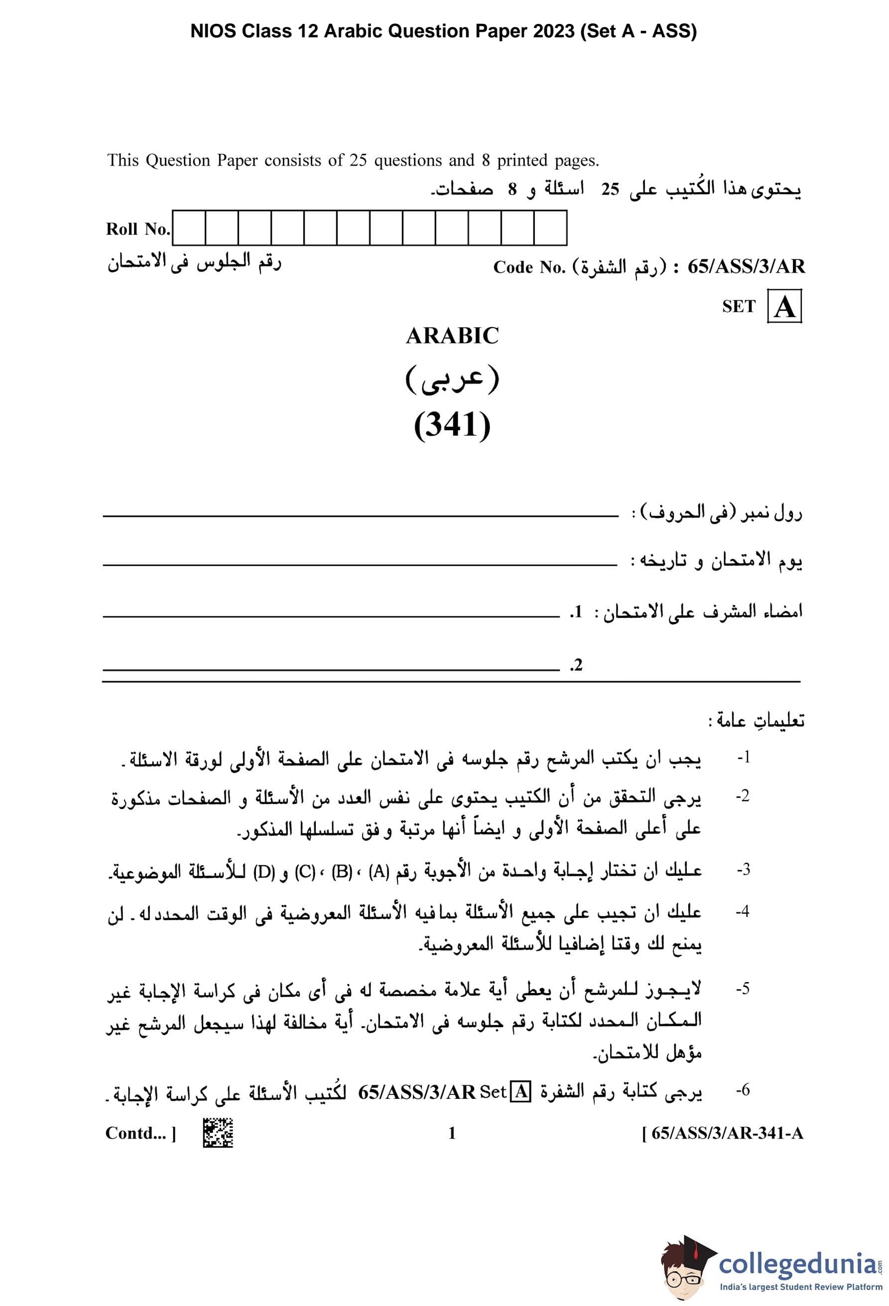 NIOS Class 12 Arabic (Set A - ASS) Question Paper 2023 with Answer Key
