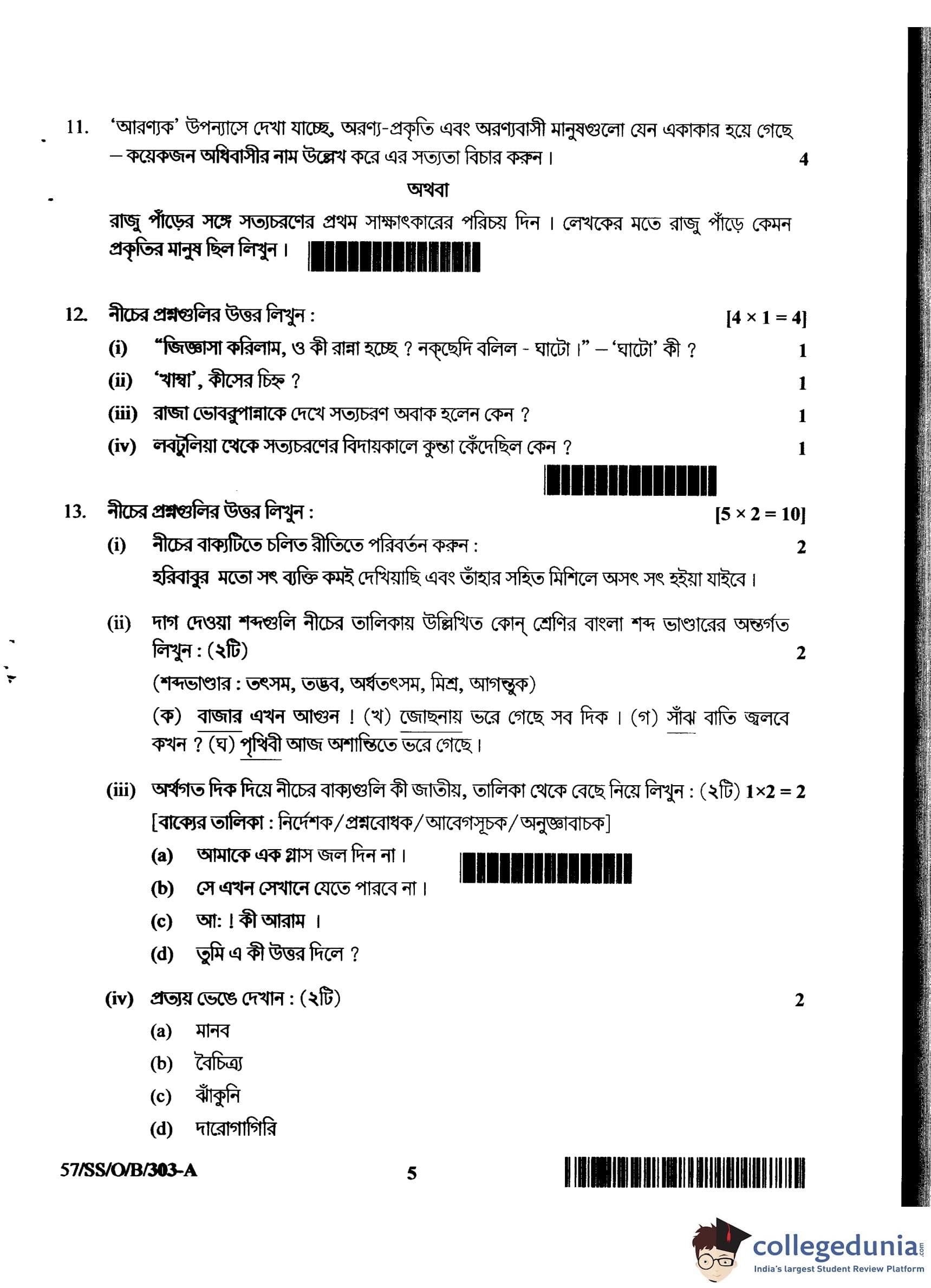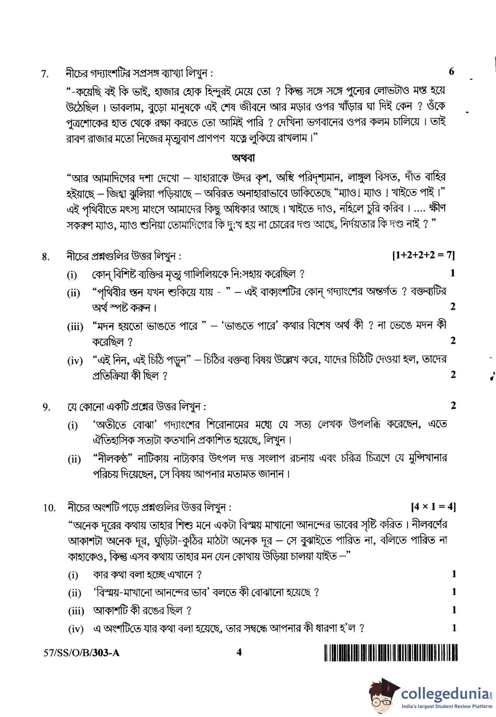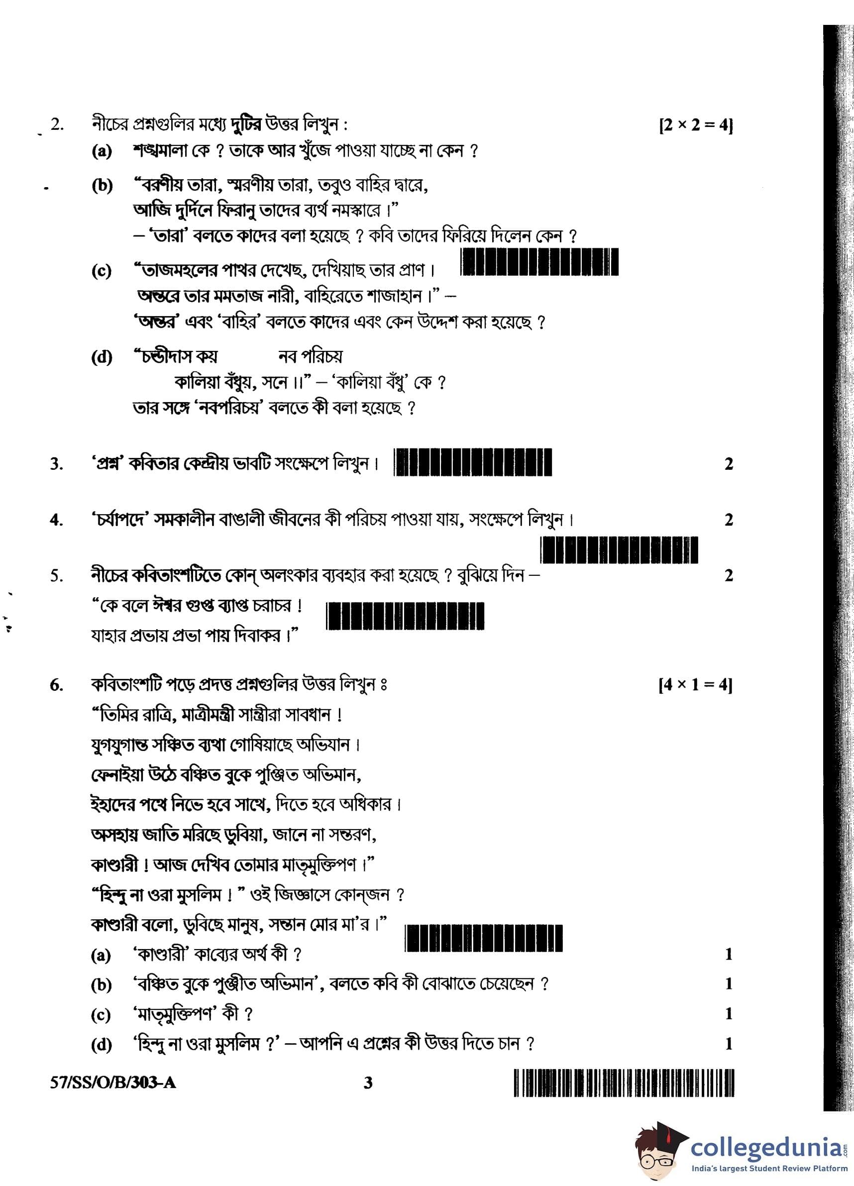 NIOS Class 12 Bengali Compartment Question Paper 2018 with Answer Key