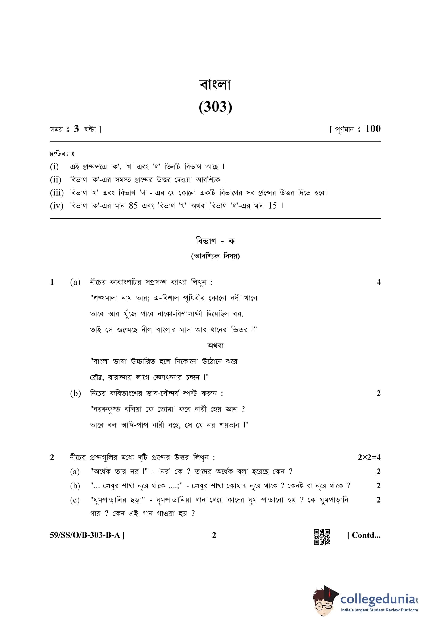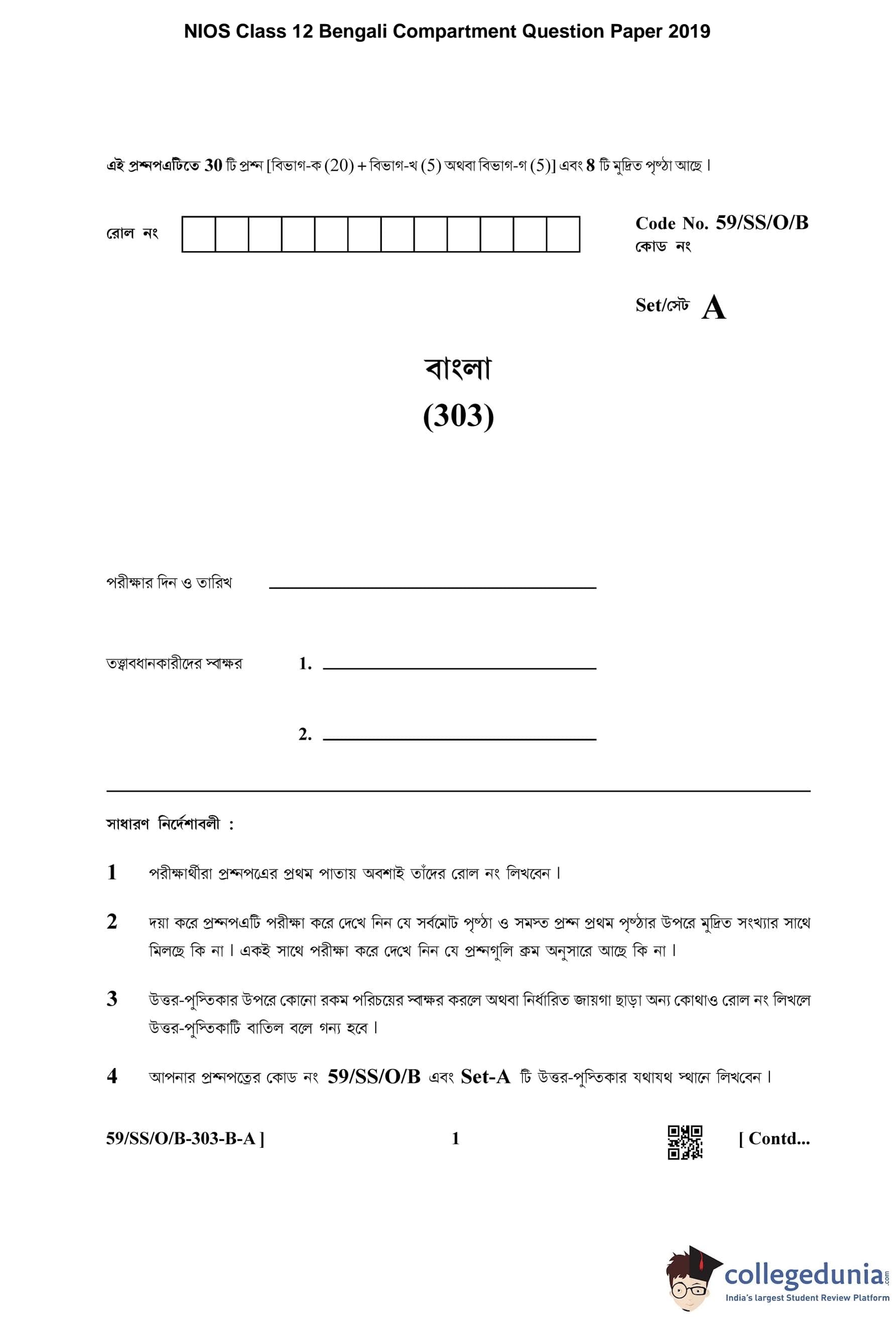 NIOS Class 12 Bengali Compartment Question Paper 2019 with Answer Key pdf is available for download here. The exam was conducted by National Institute of Open Schooling on October 15, 2019 in the Afternoon Session 2:30 PM to 5:30 PM. The question paper comprised a total of 25 questions divided among 2 sections.