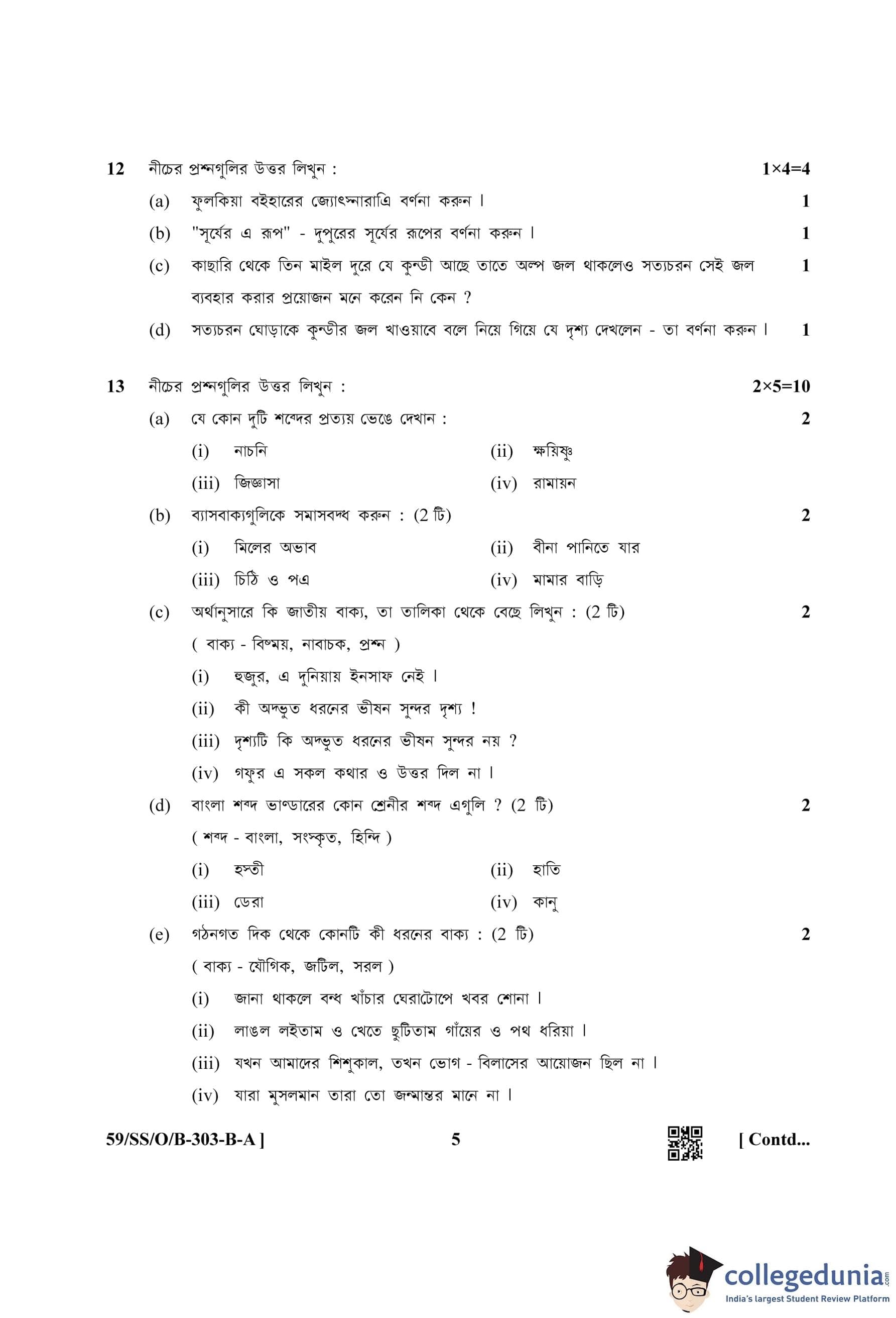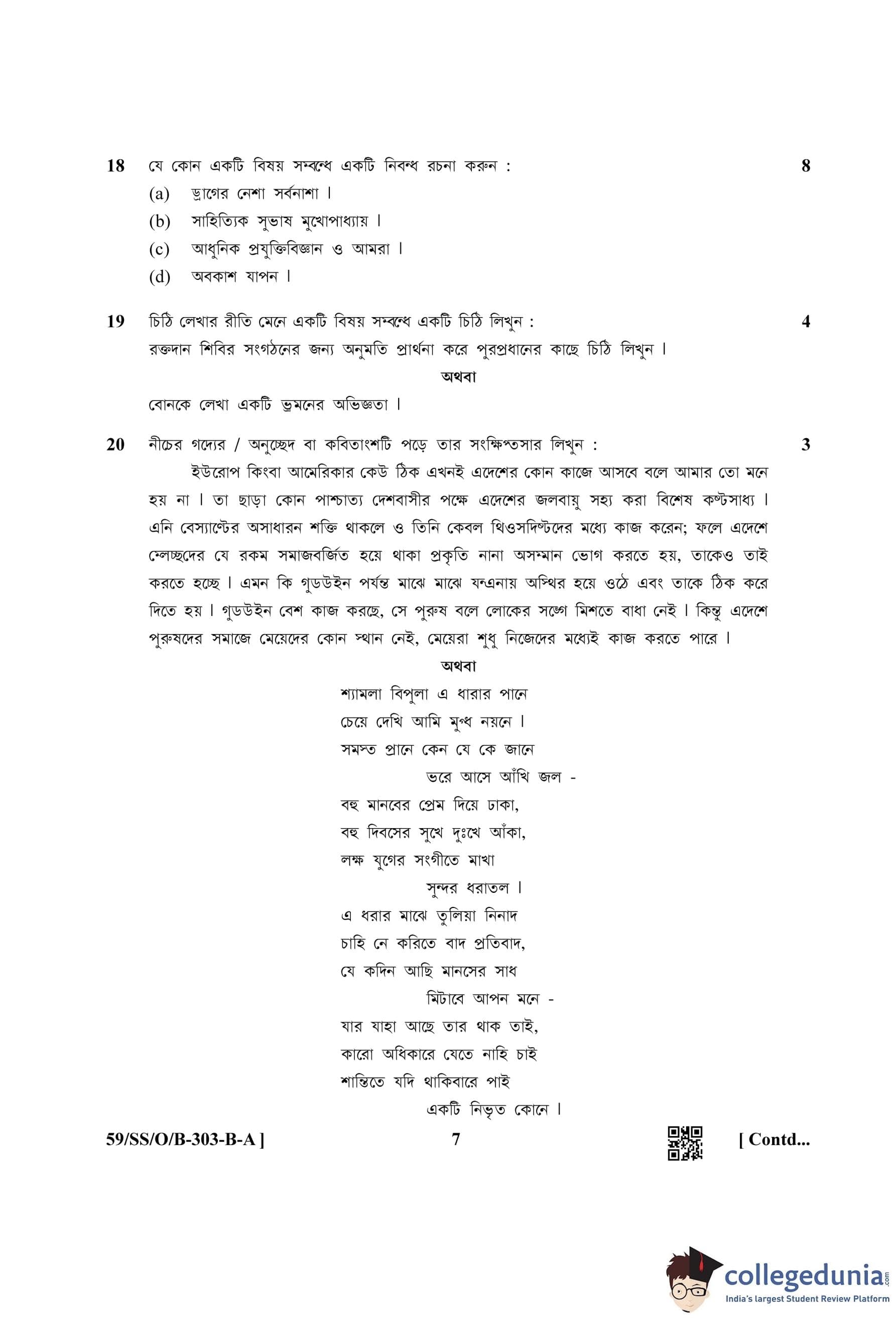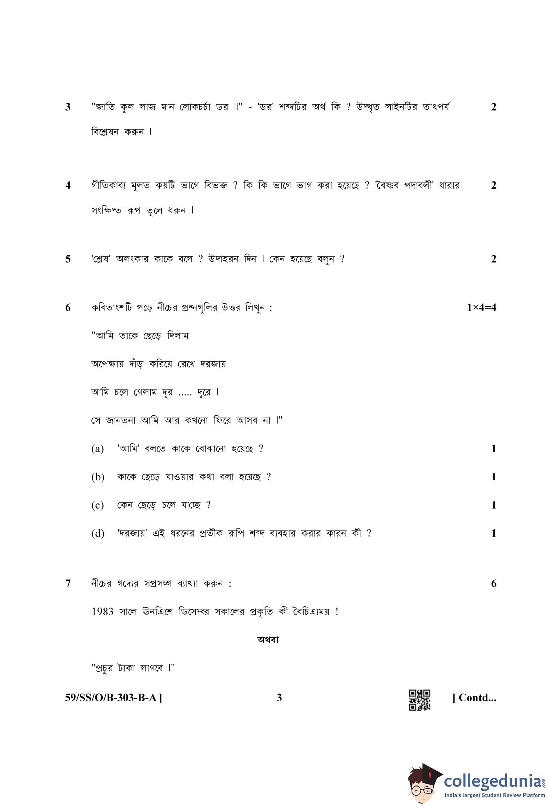NIOS Class 12 Bengali Compartment Question Paper 2019 with Answer Key