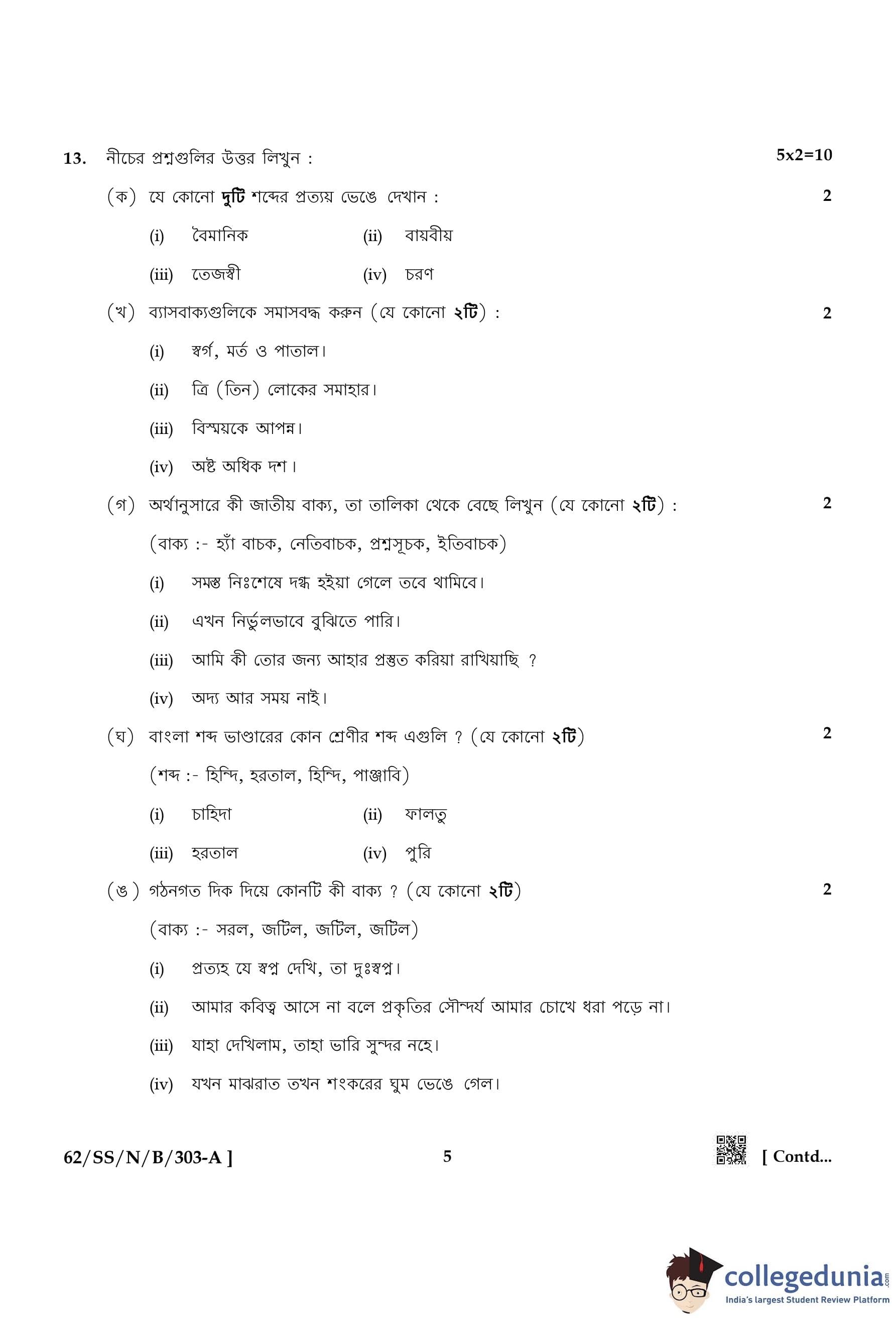 NIOS Class 12 Bengali Compartment Question Paper 2021 with Answer Key