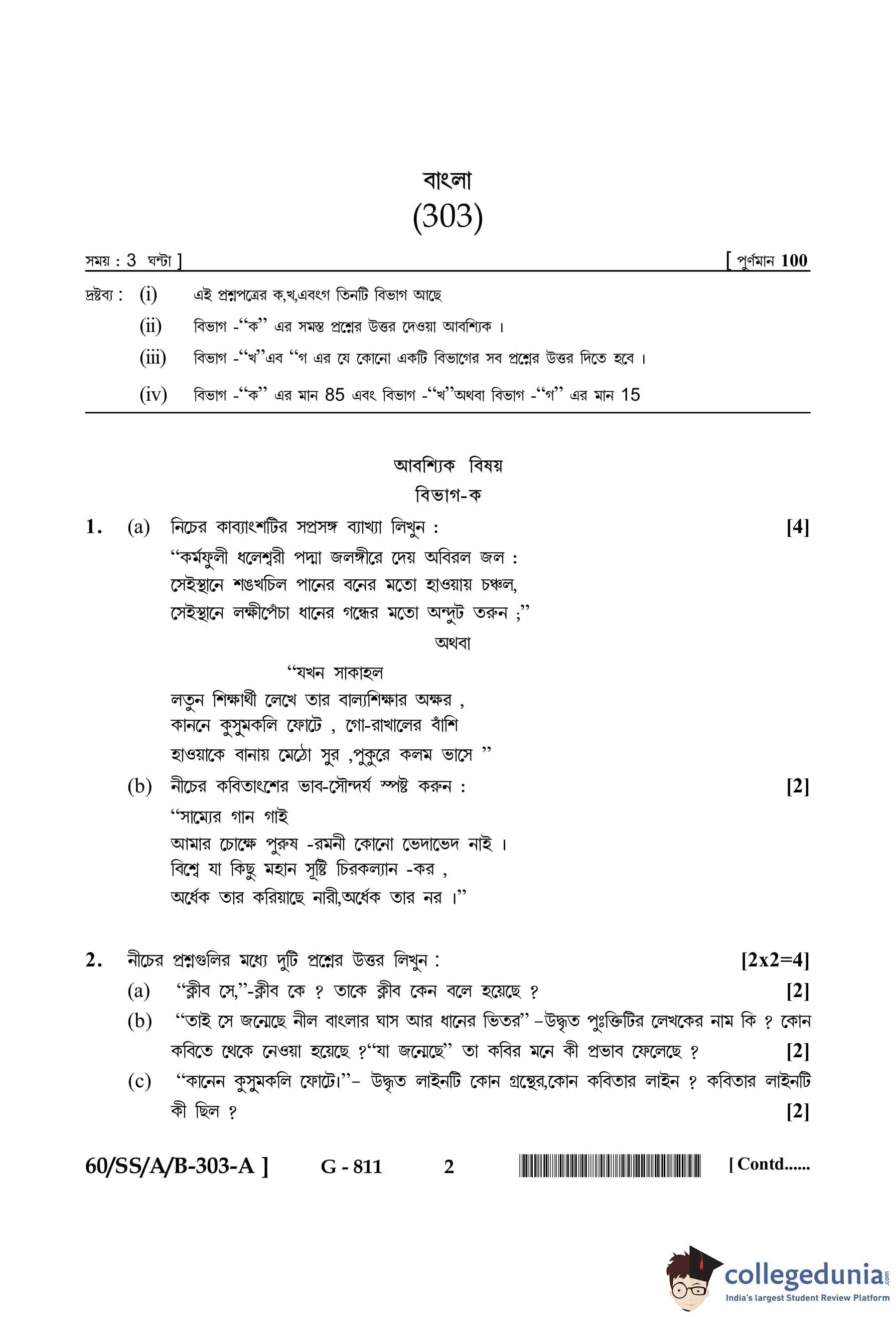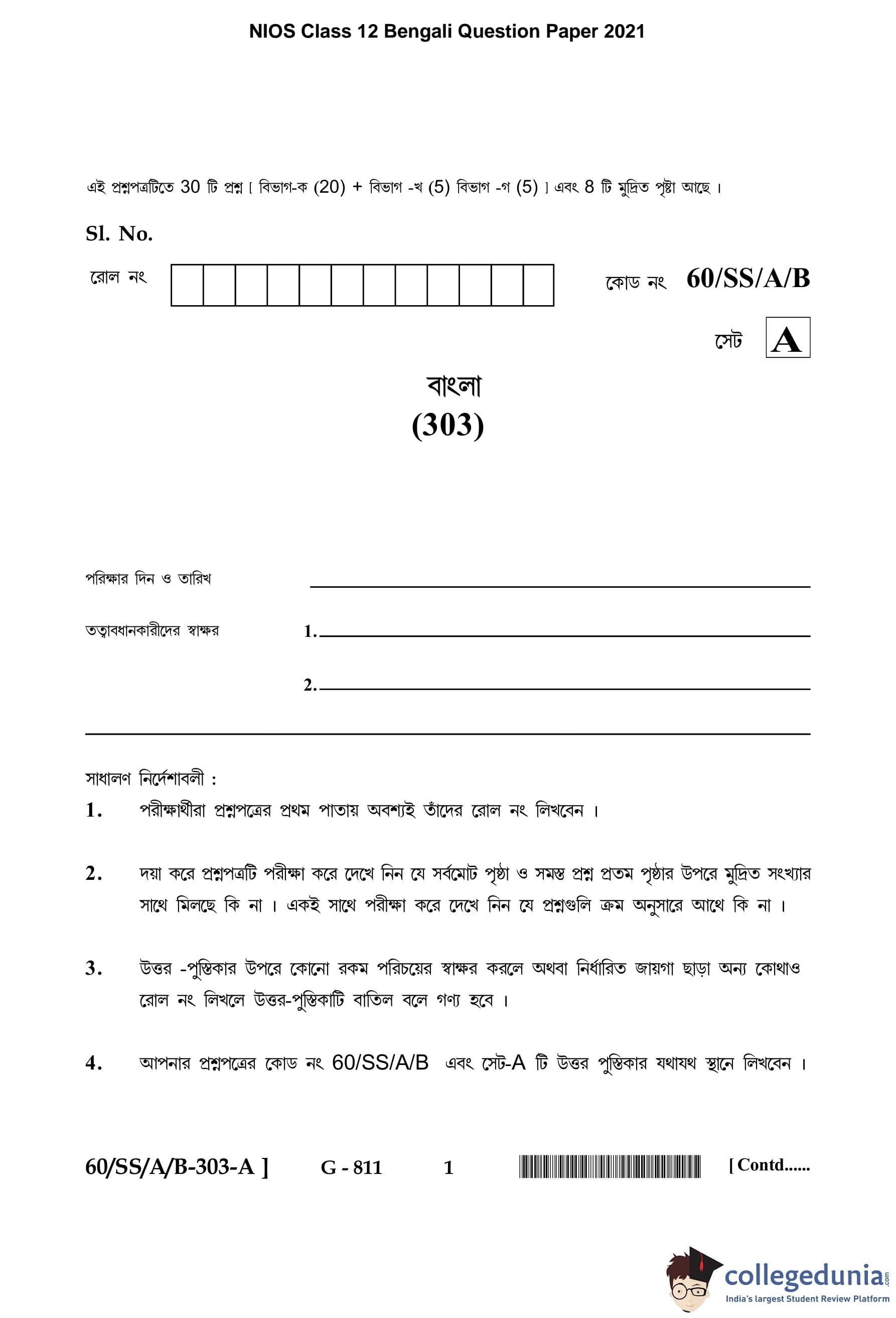 NIOS Class 12 Bengali Question Paper 2021 with Answer Key pdf () is available for download here. The exam was conducted by National Institute of Open Schooling on February 1, 2021 in the Afternoon Session 2:30 PM to 5:30 PM. The question paper comprised a total of 25 questions divided among 3 sections.