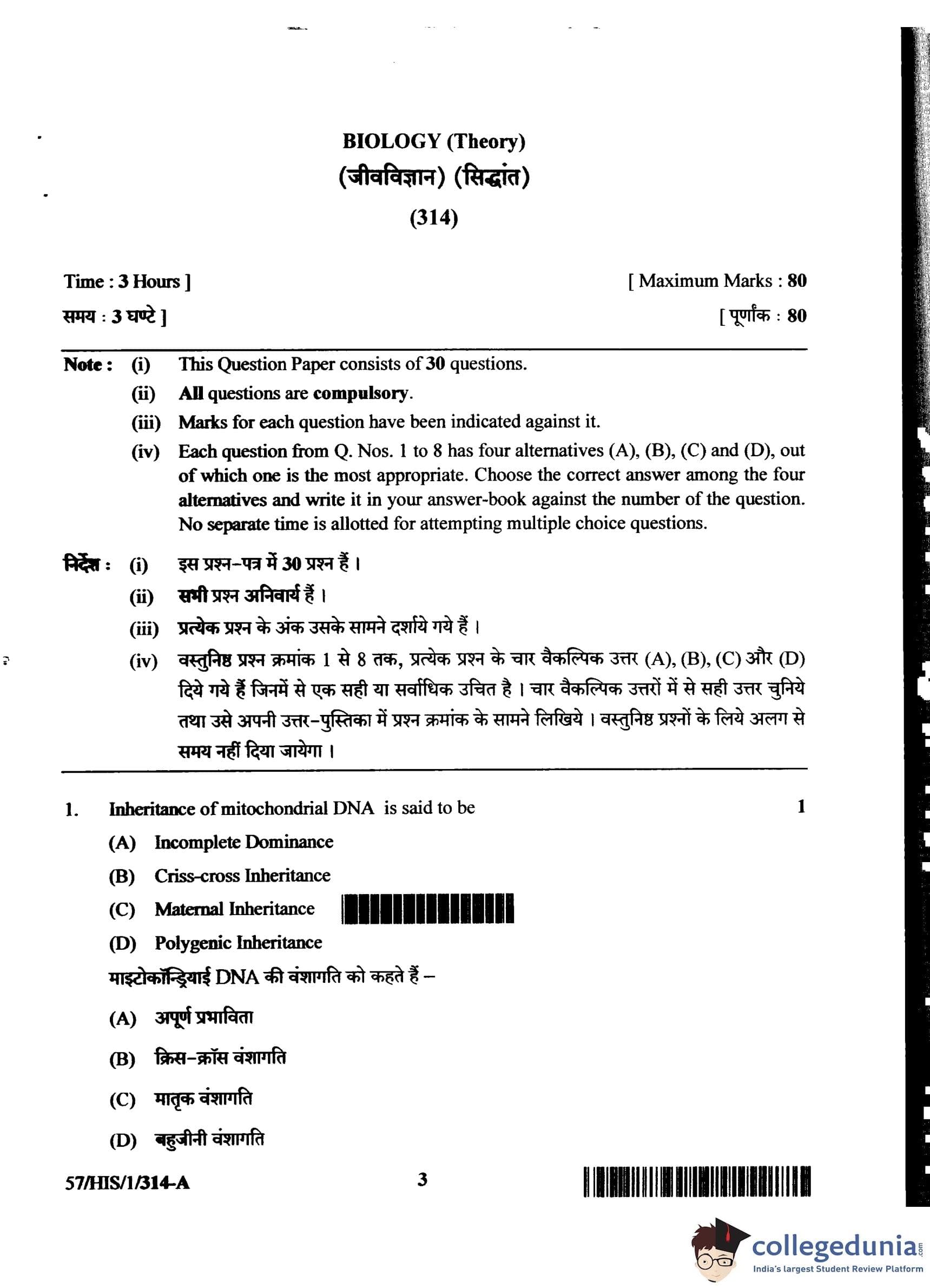 NIOS Class 12 Biology Compartment Question Paper 2018 with Answer Key pdf is available for download here. The exam was conducted by National Institute of Open Schooling on November 1, 2018 in the Afternoon Session 2:30 PM to 5:30 PM. The question paper comprised a total of 30 questions.