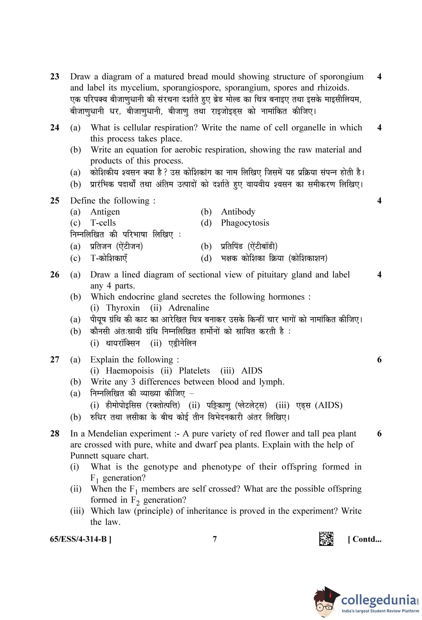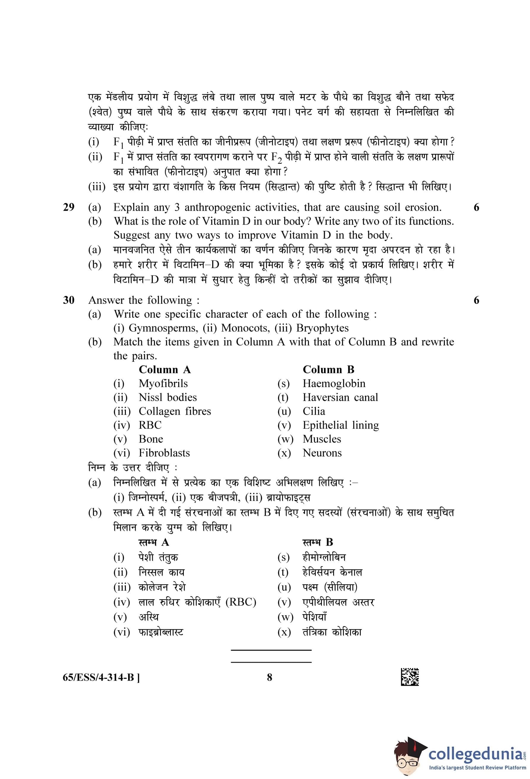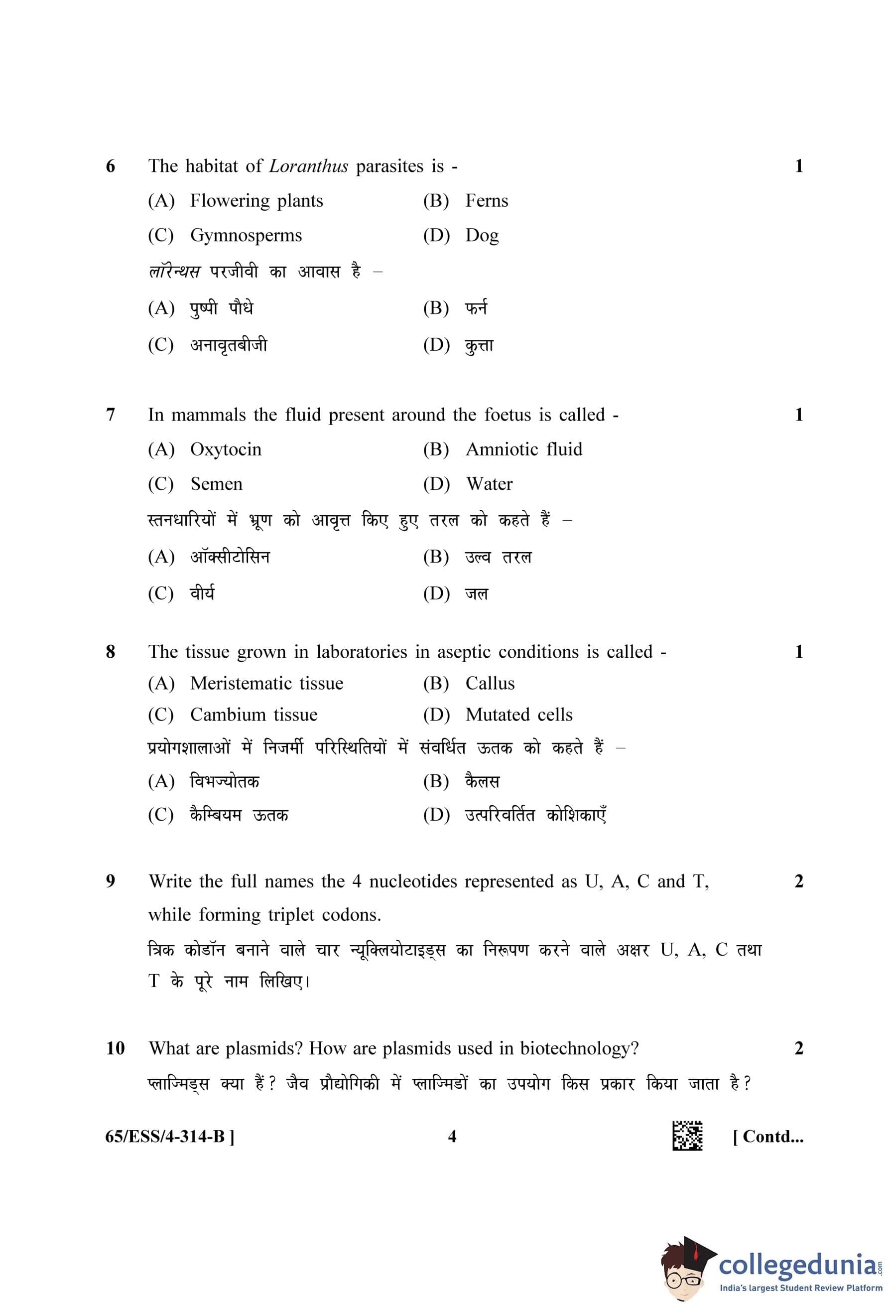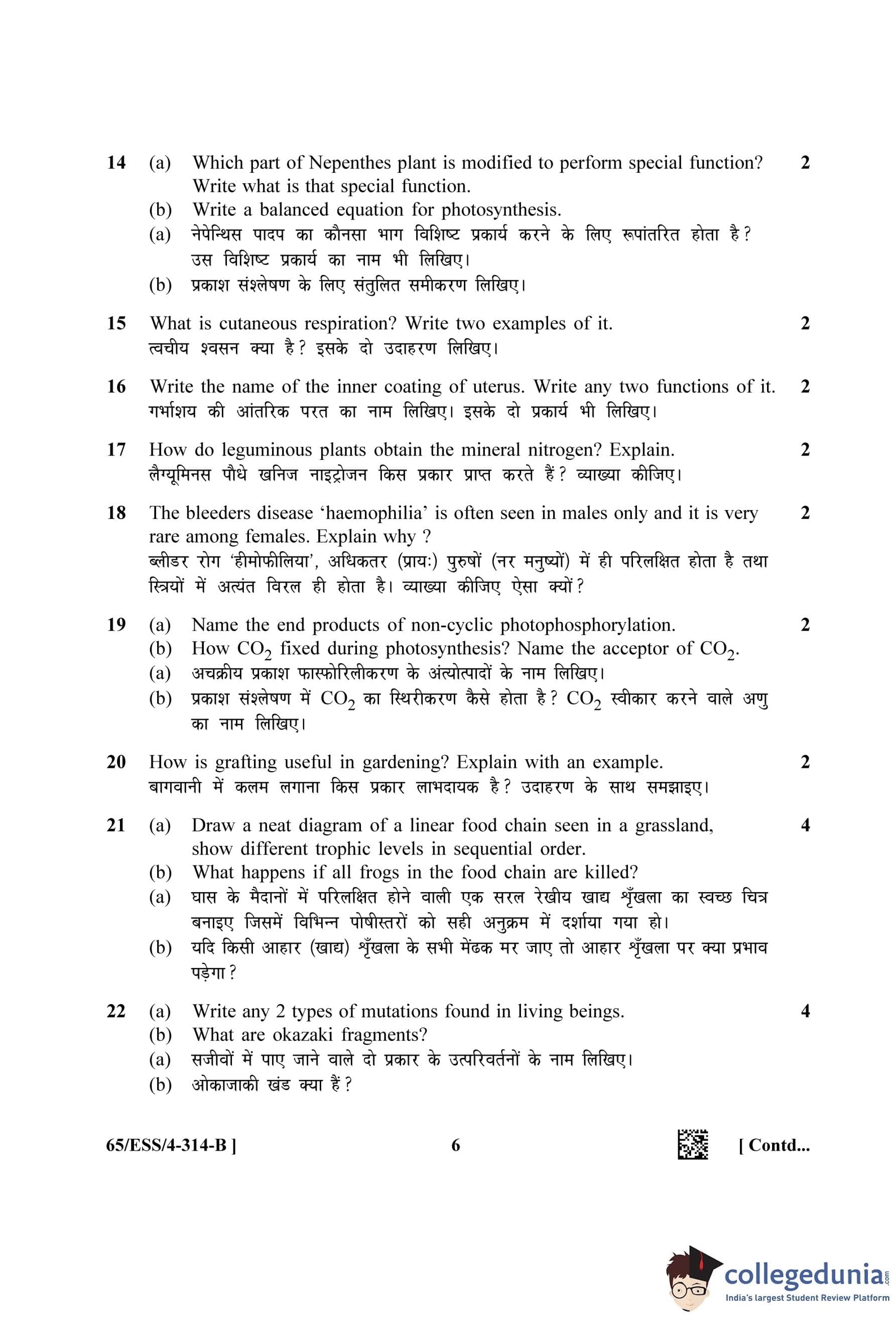 NIOS Class 12 Biology (Set B - ESS) Question Paper 2023 with Answer Key