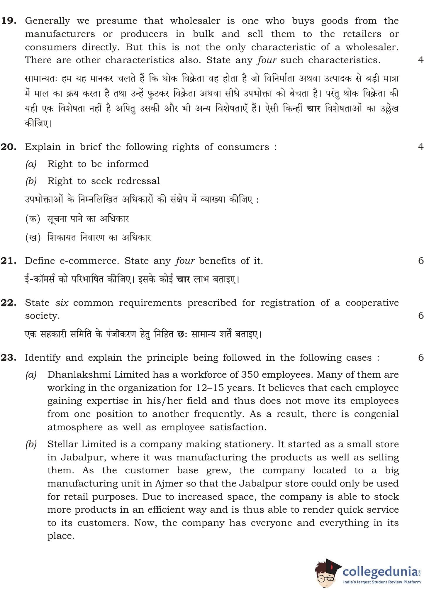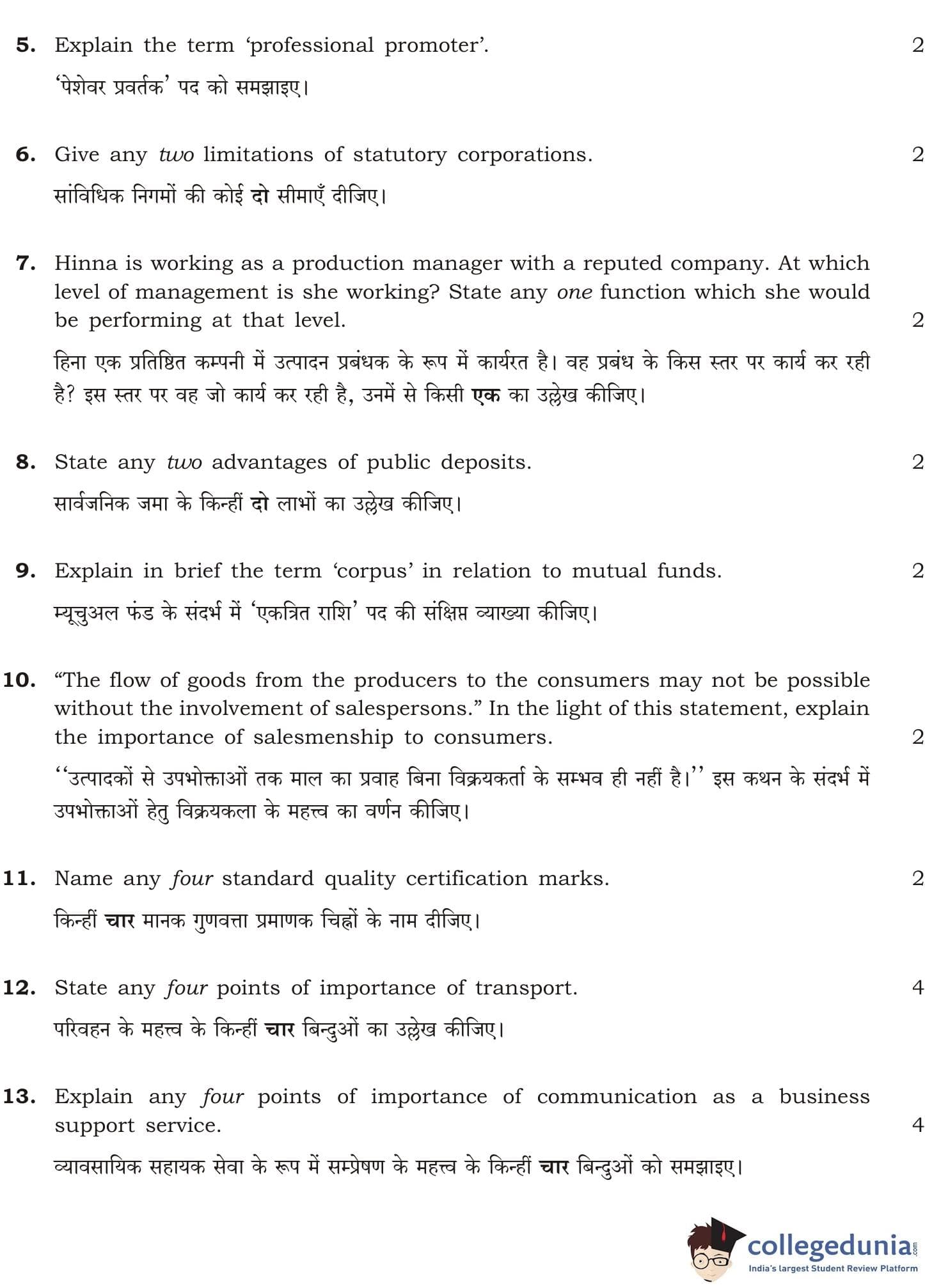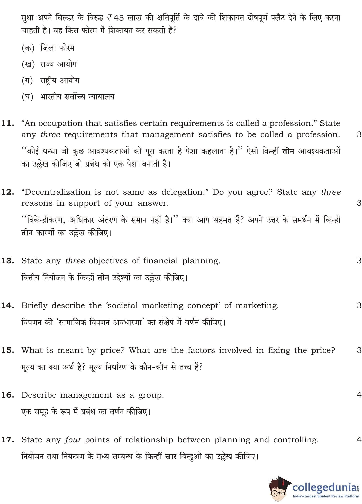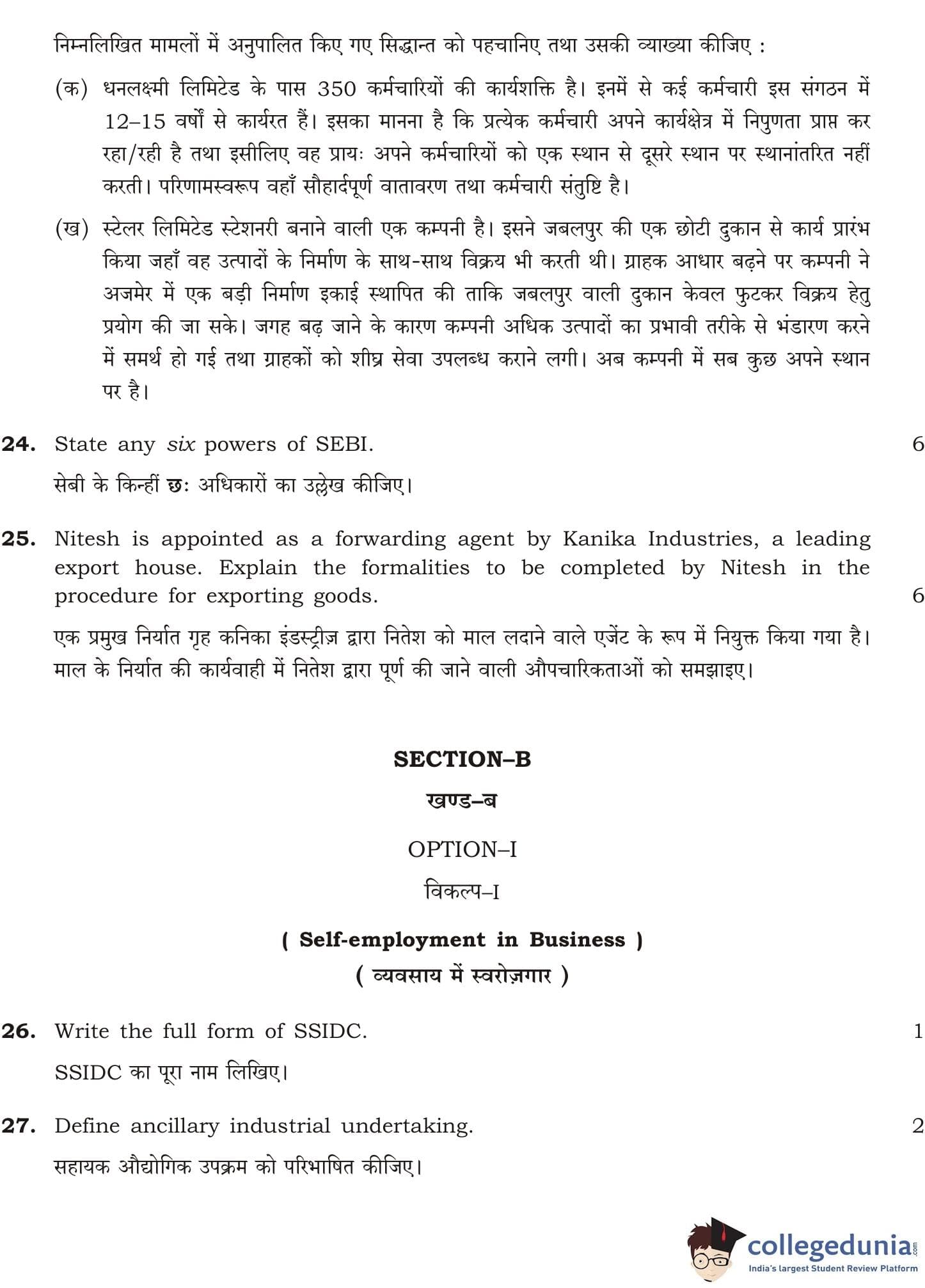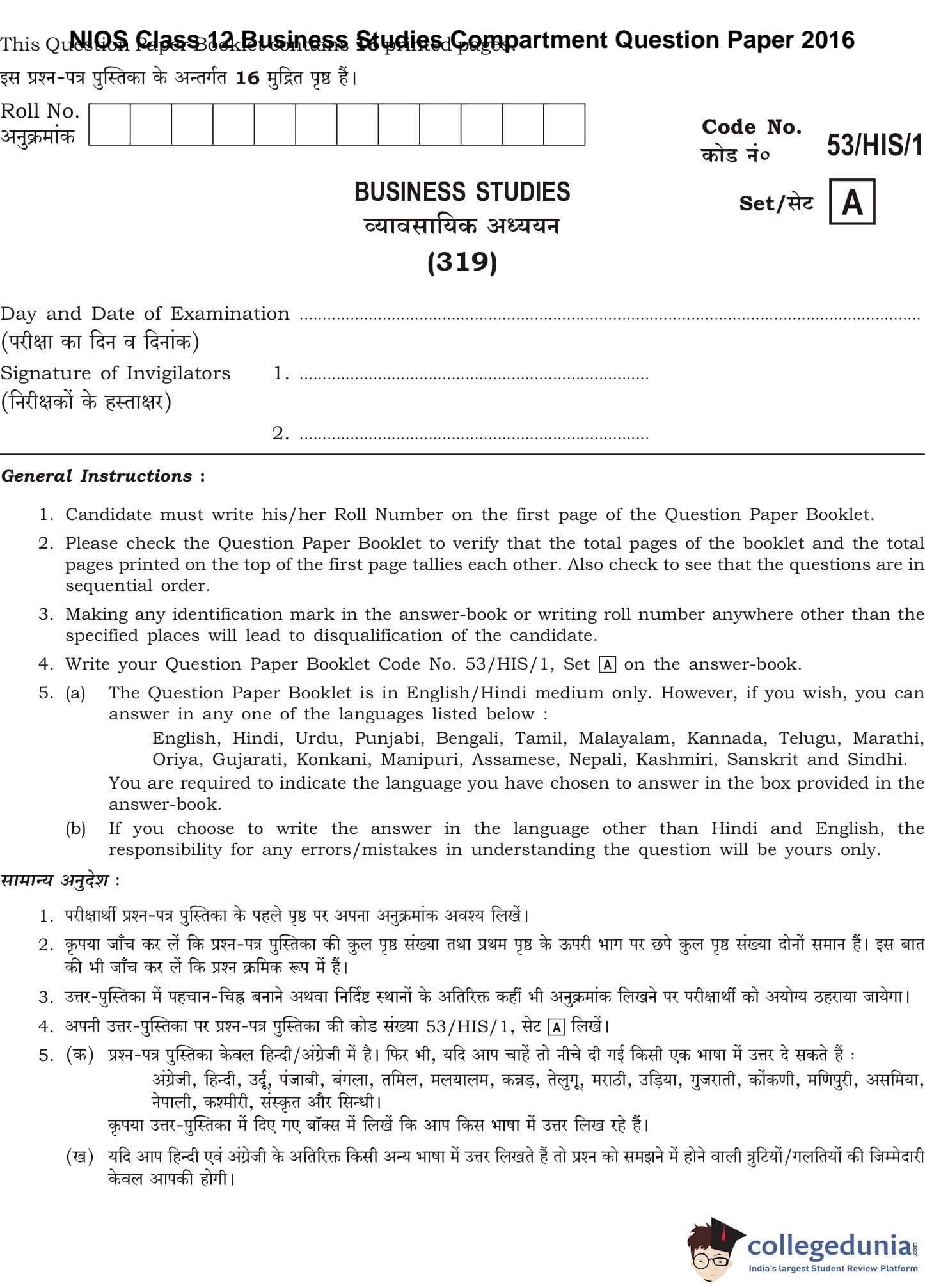 NIOS Class 12 Business Studies Compartment Question Paper 2016 with Answer Key