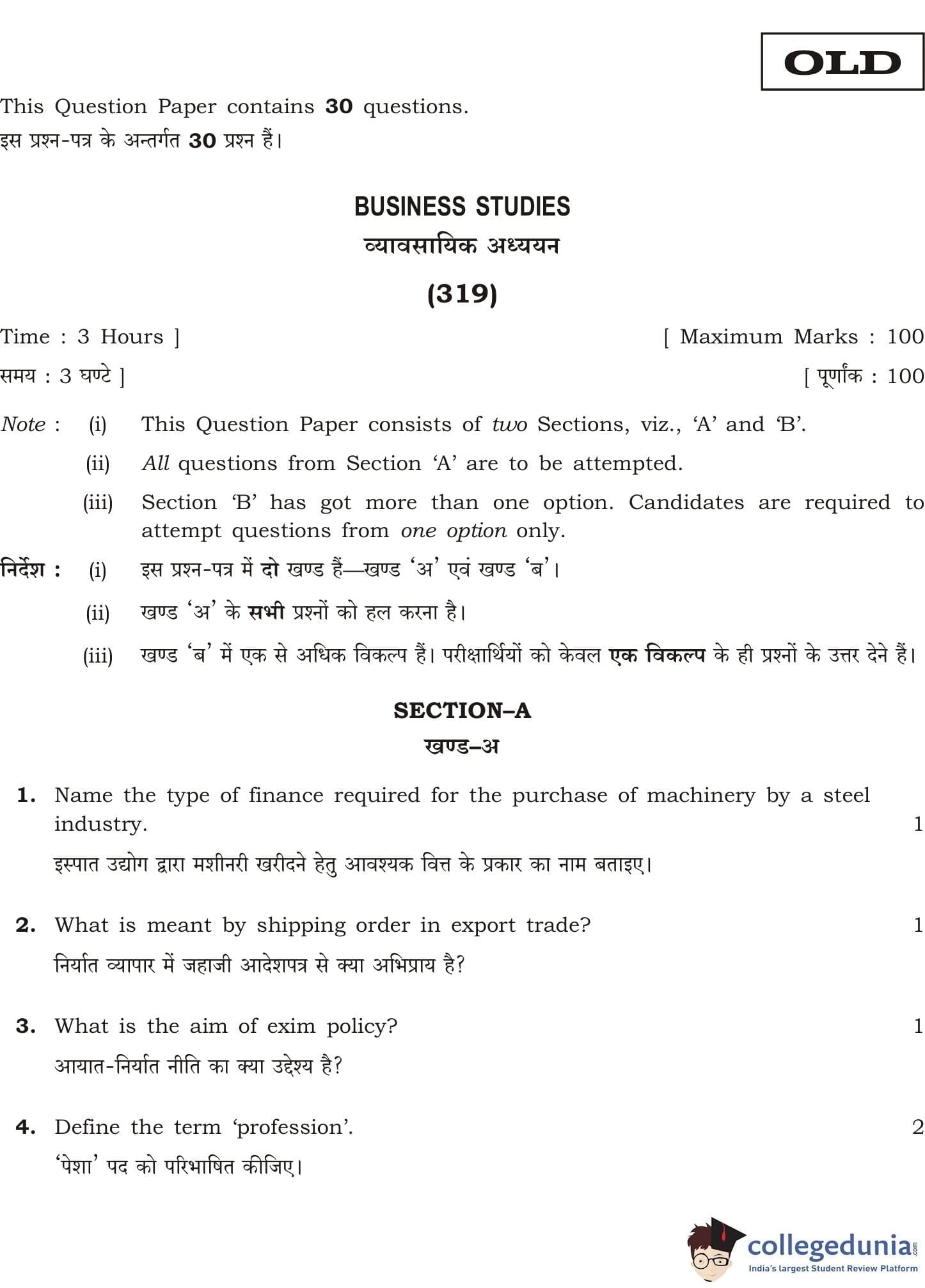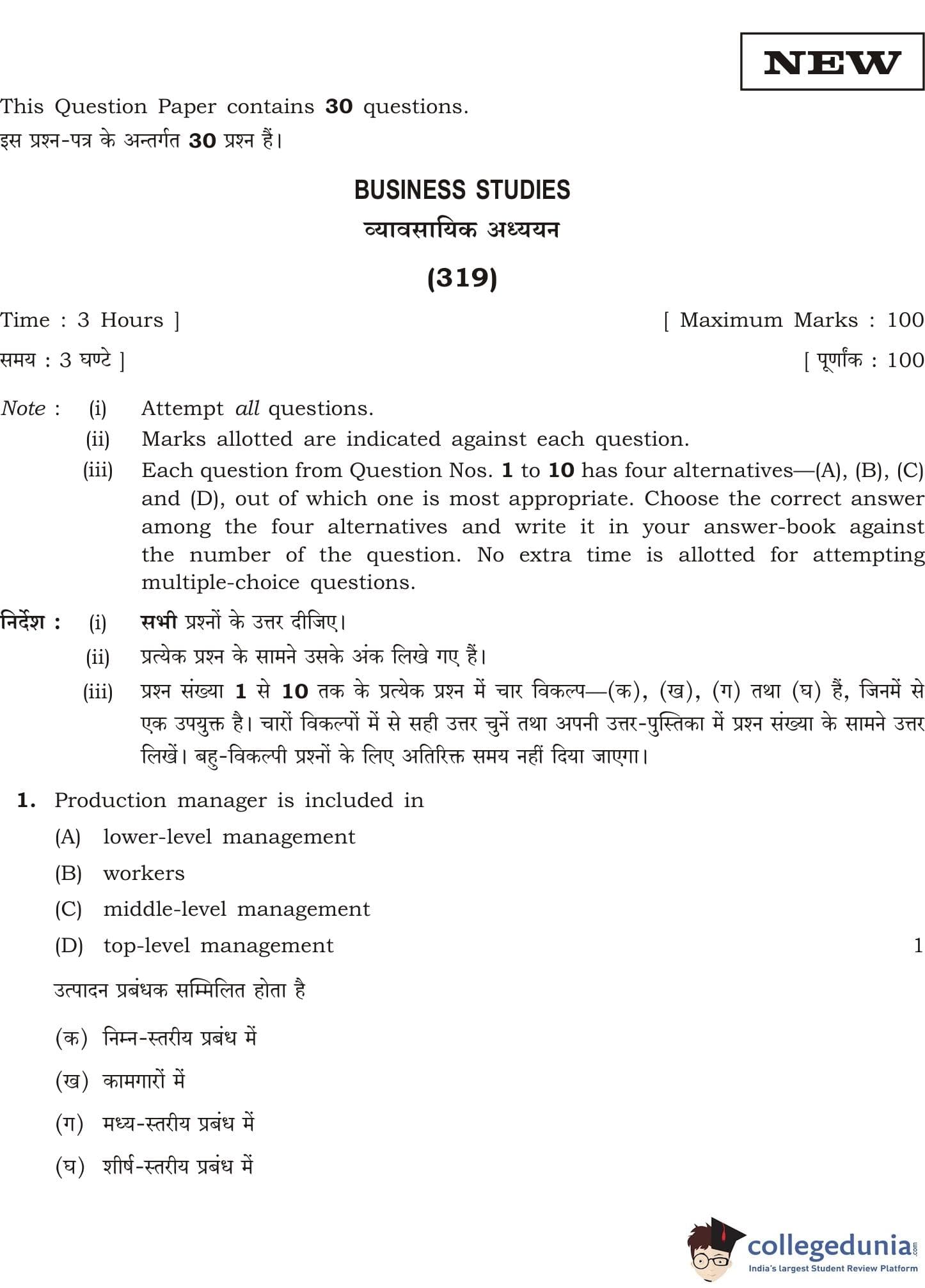 NIOS Class 12 Business Studies Compartment Question Paper 2016 with Answer Key pdf is available for download here. The exam was conducted by National Institute of Open Schooling on October 31, 2016 in the Afternoon Session 3 PM to 6 PM. The question paper comprised a total of 30 questions.