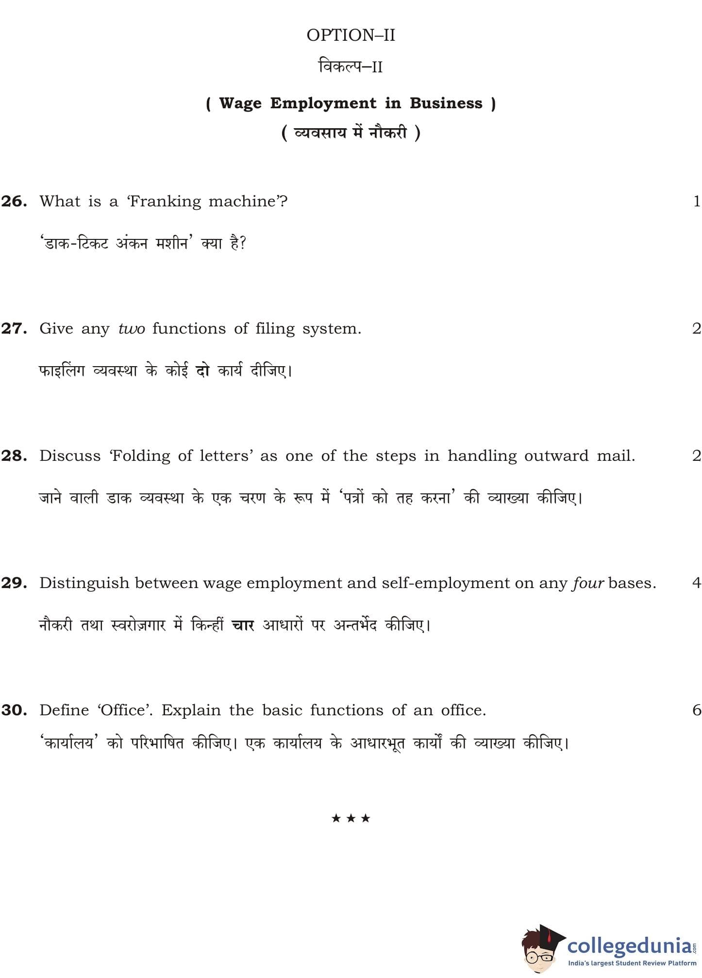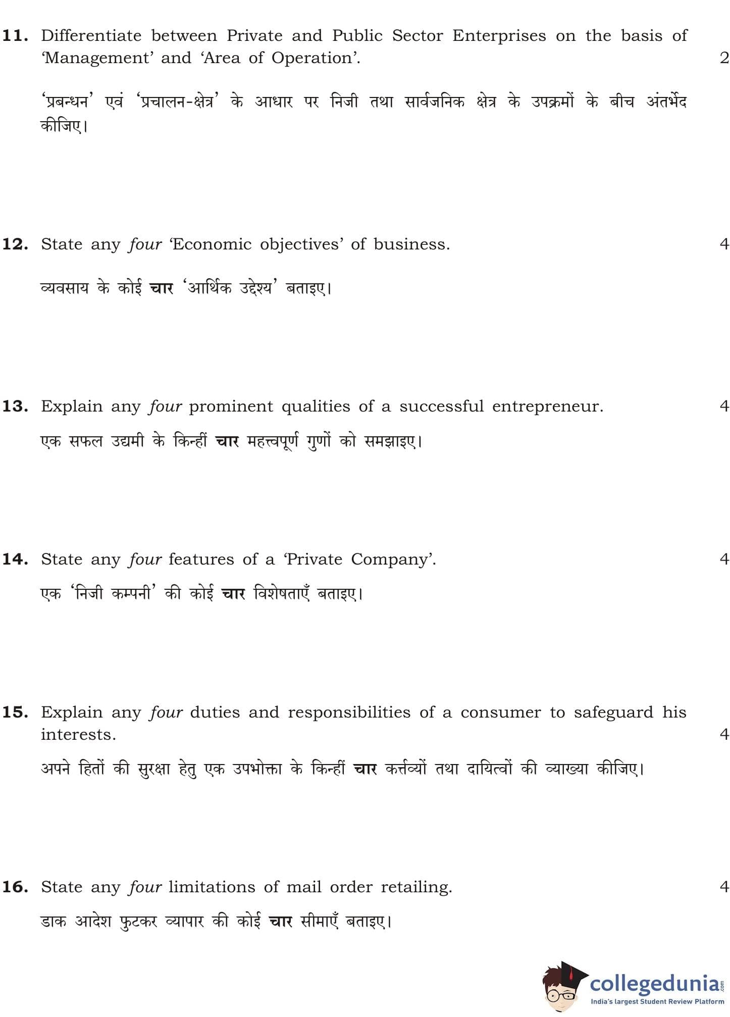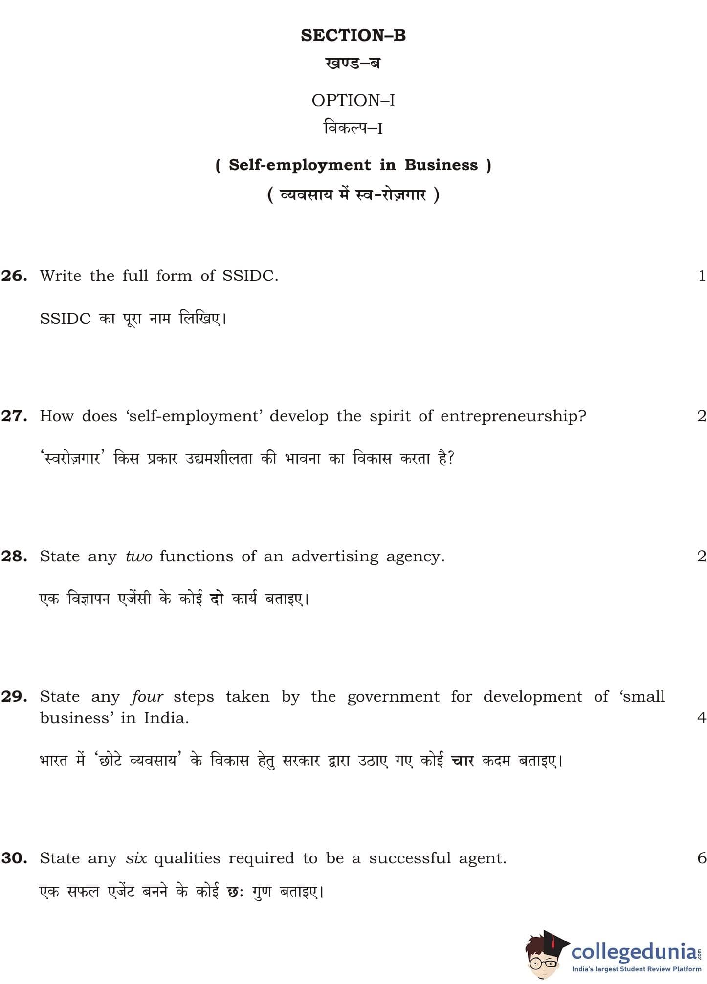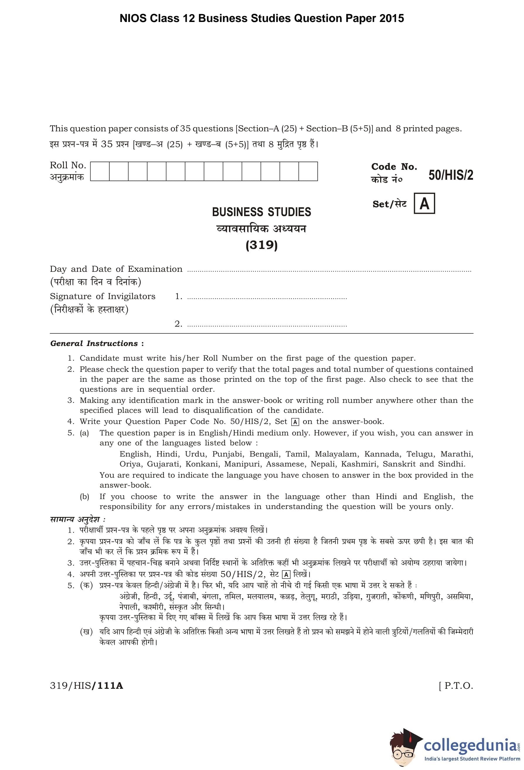 NIOS Class 12 Business Studies Question Paper 2015 with Answer Key