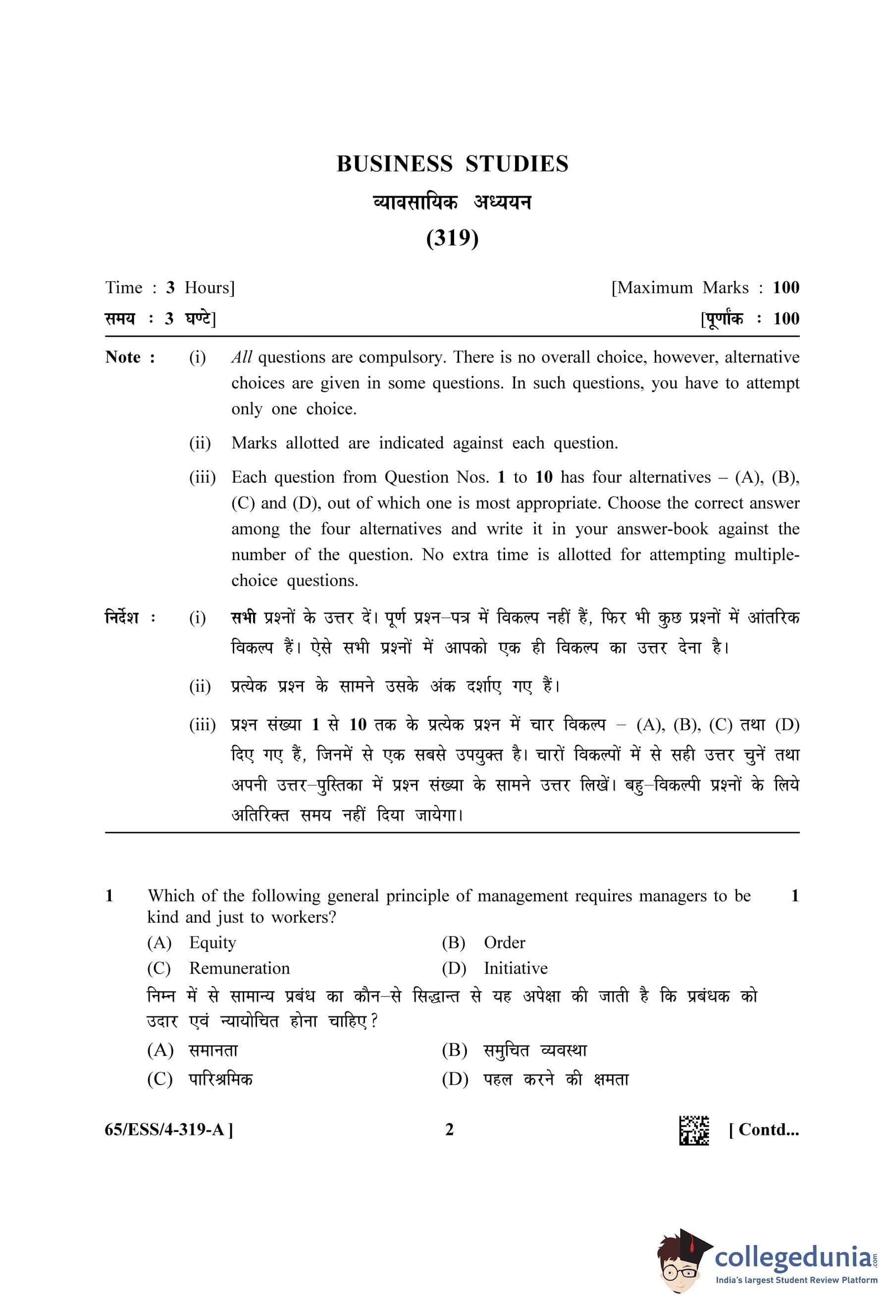 NIOS Class 12 Business Studies Question Paper 2023 with Answer Key pdf (Set A - ESS) is available for download here. The exam was conducted by National Institute of Open Schooling on May 4, 2023 in the Afternoon Session 2.30 PM to 5.30 PM. The question paper comprised a total of 30 questions.