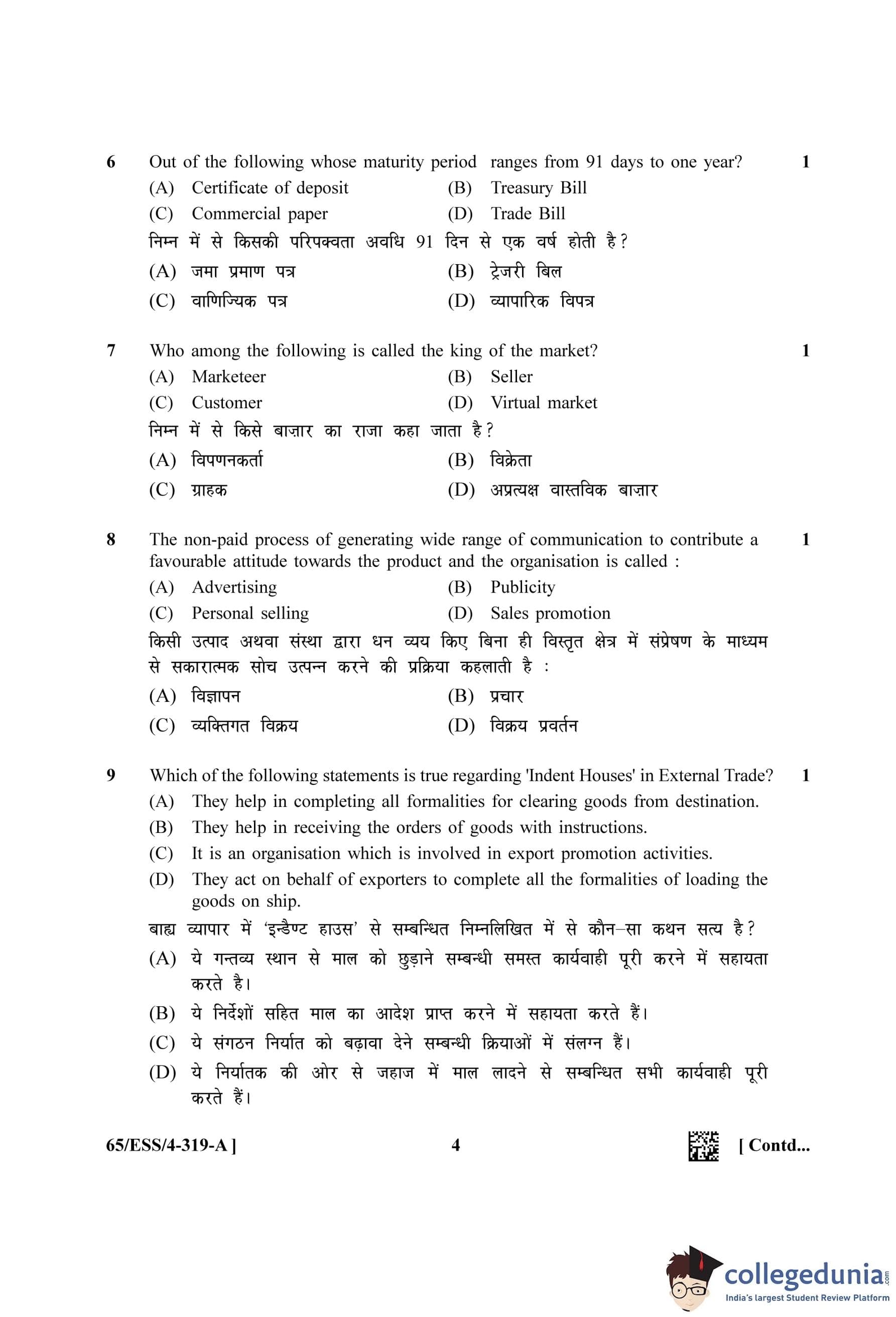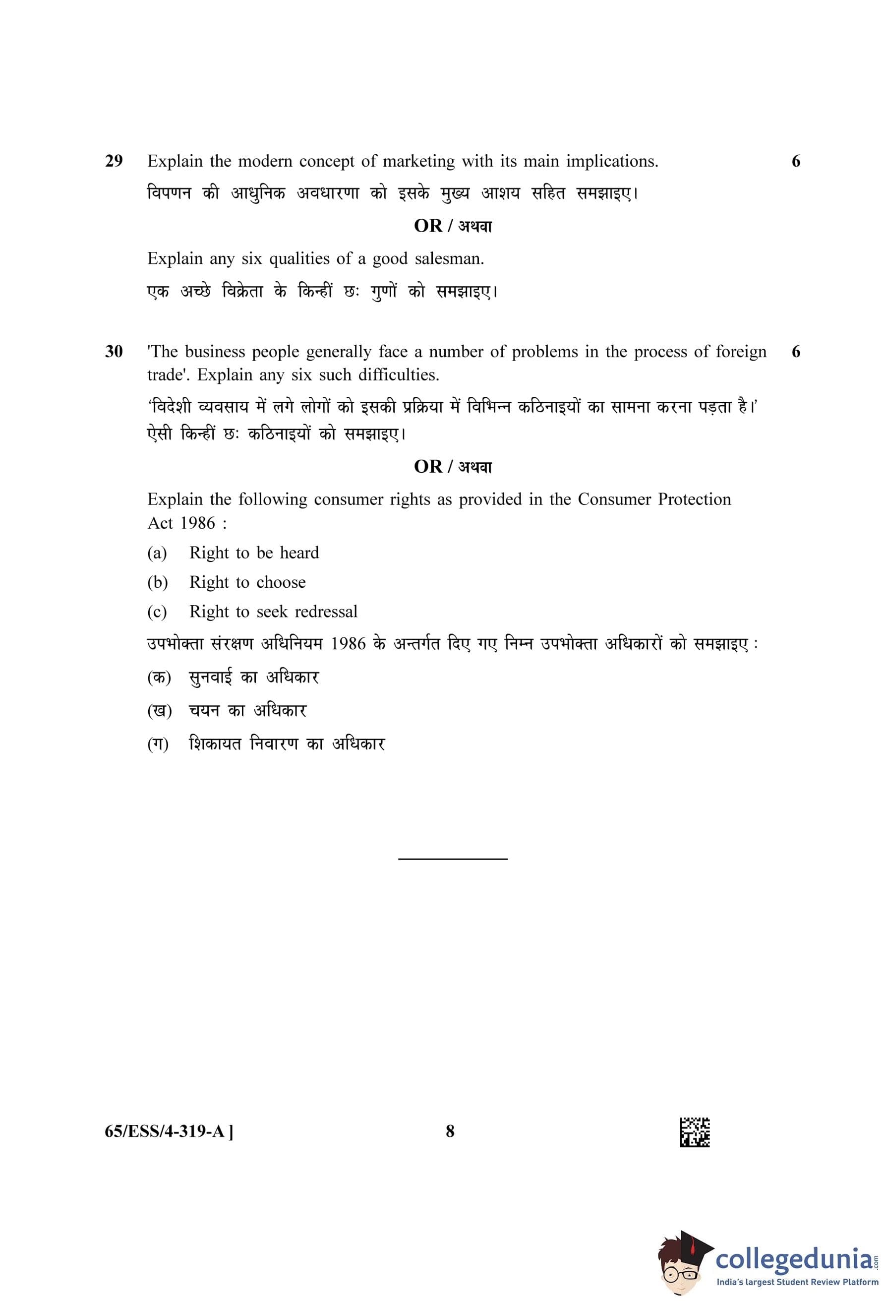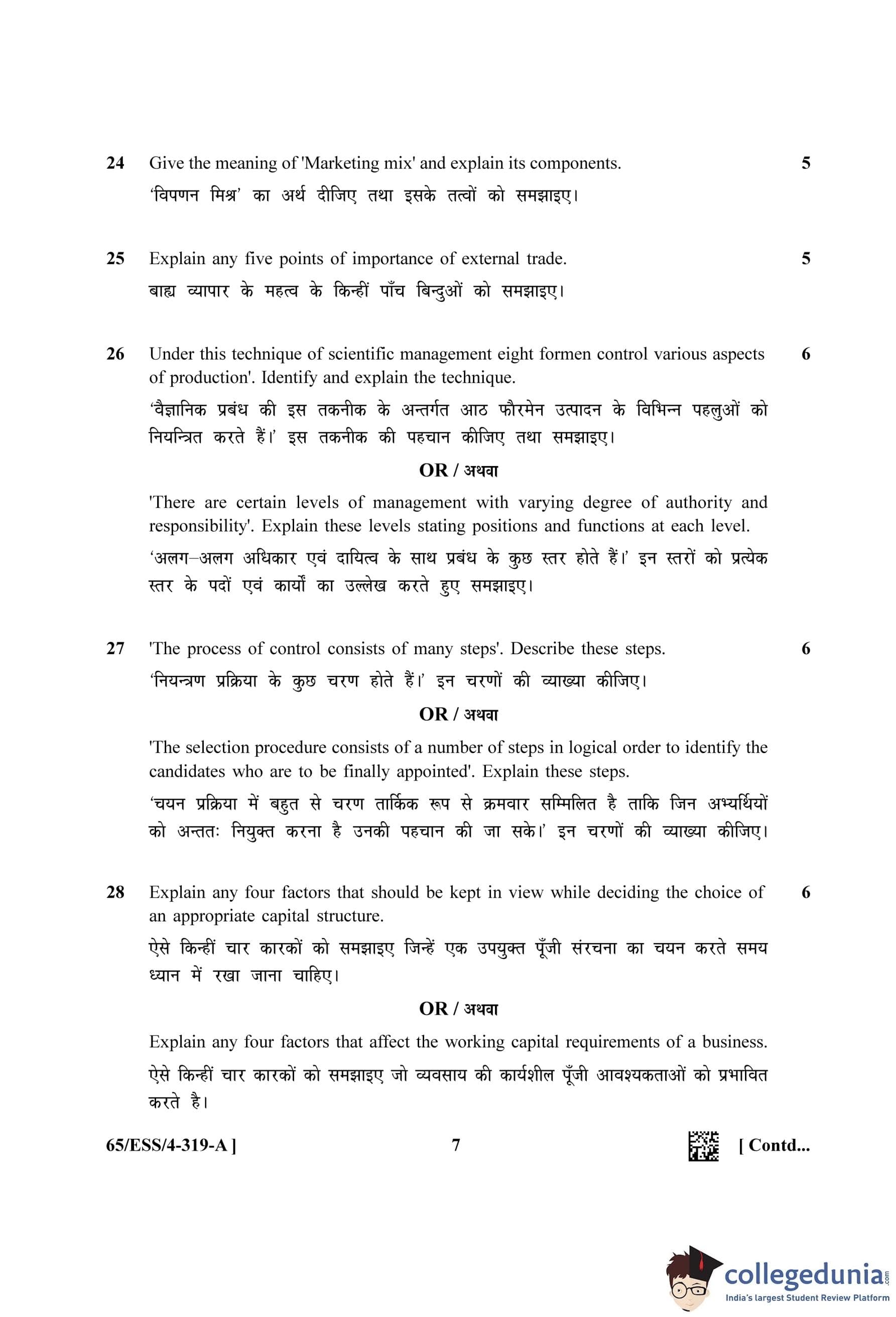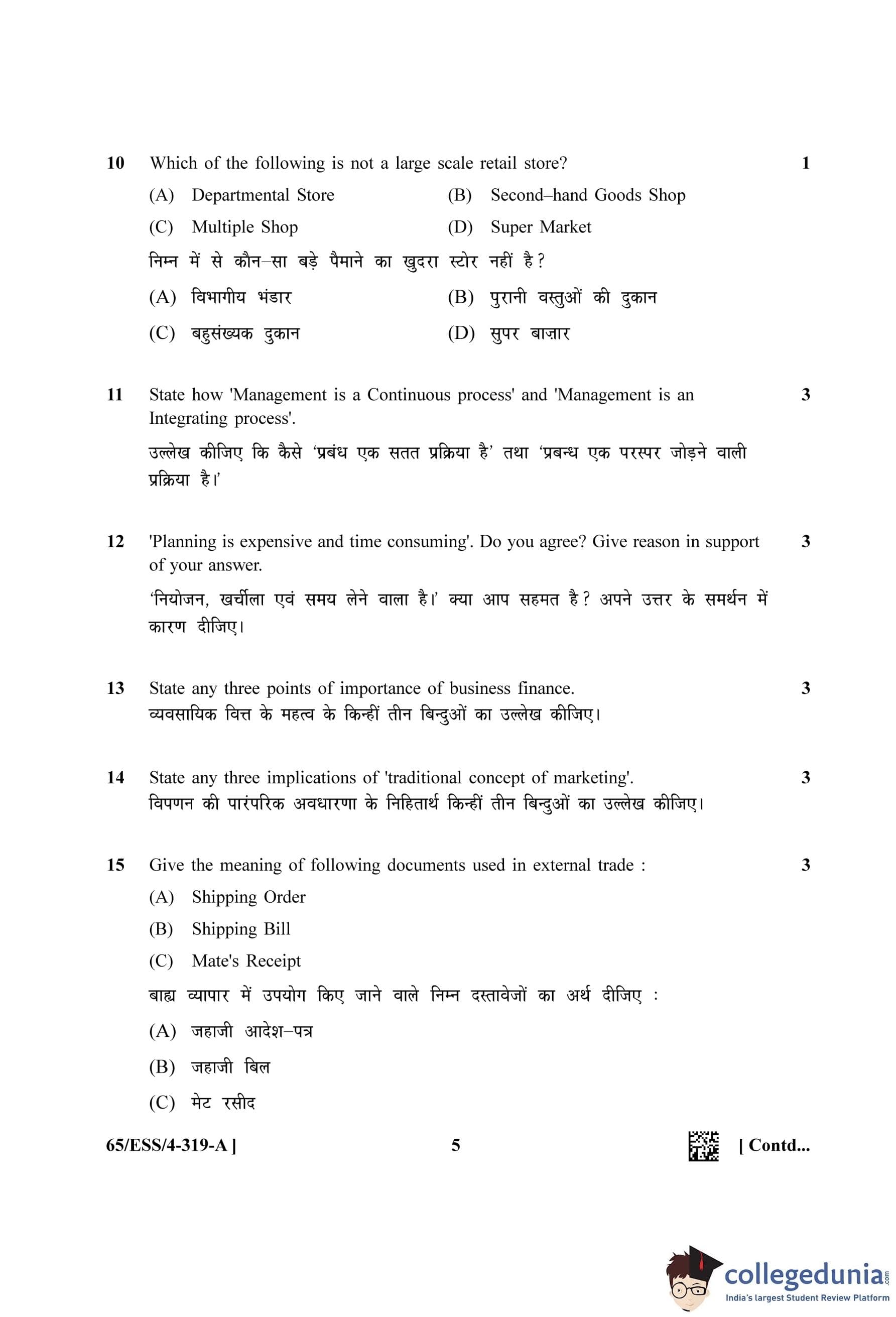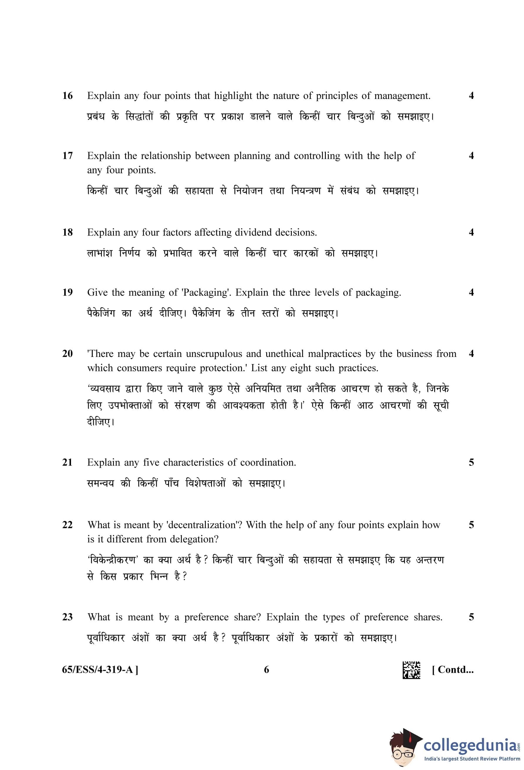 NIOS Class 12 Business Studies (Set A - ESS) Question Paper 2023 with Answer Key