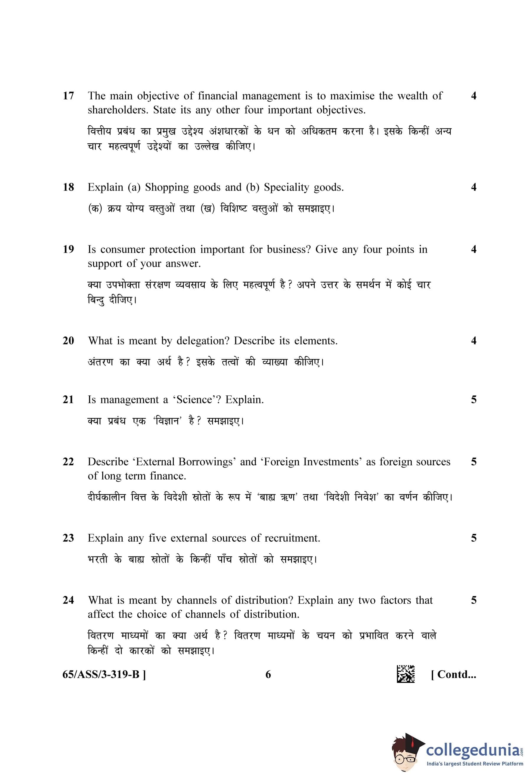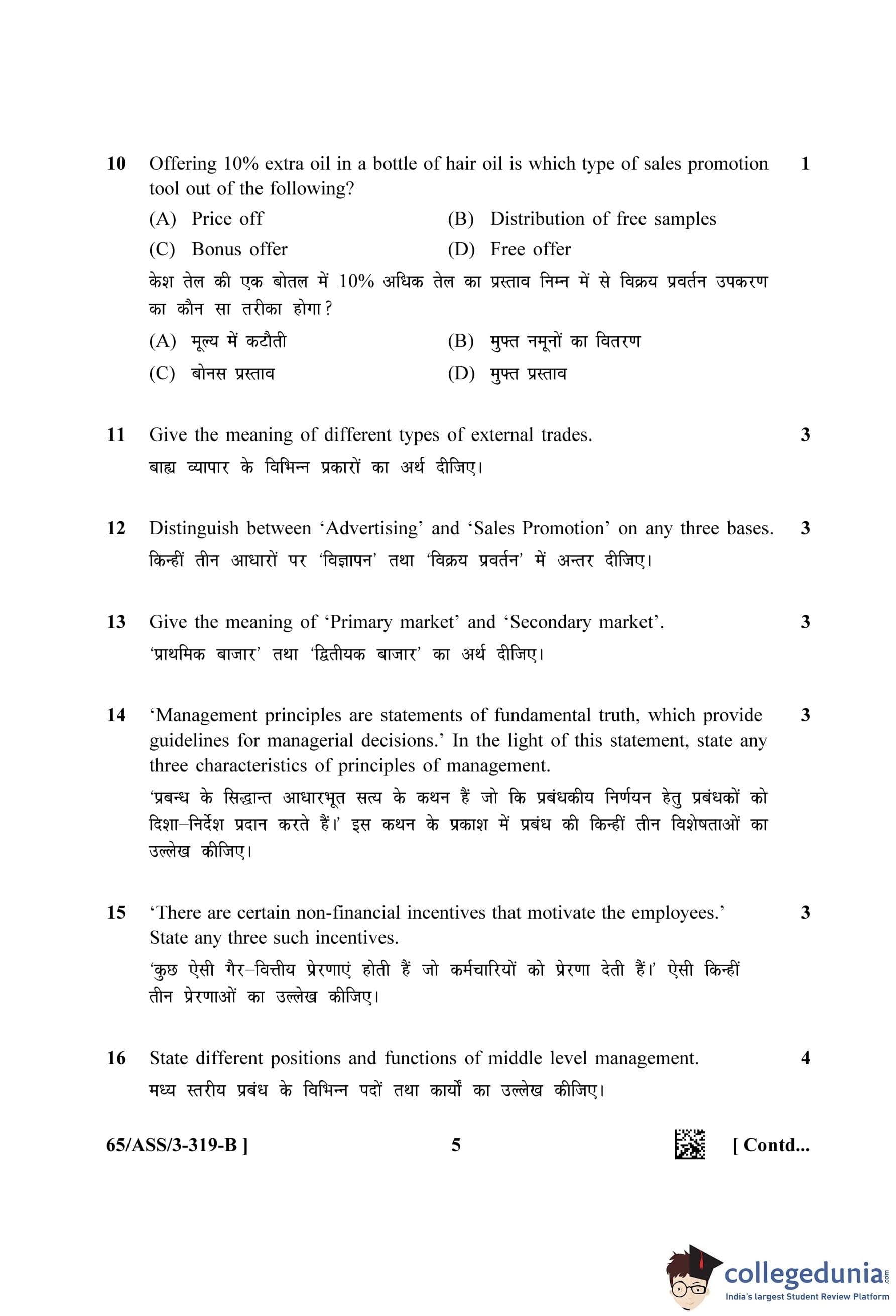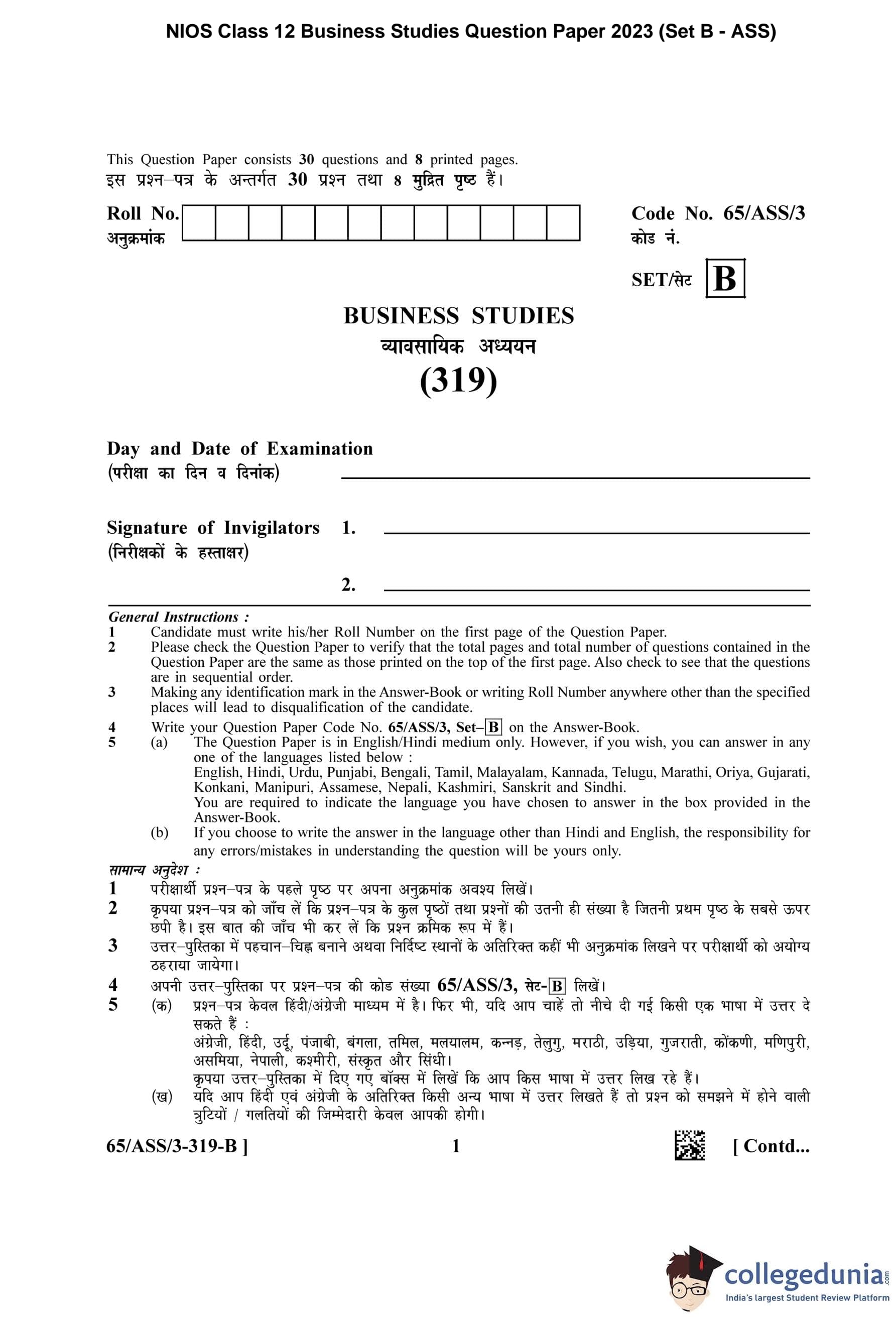 NIOS Class 12 Business Studies (Set B - ASS) Question Paper 2023 with Answer Key
