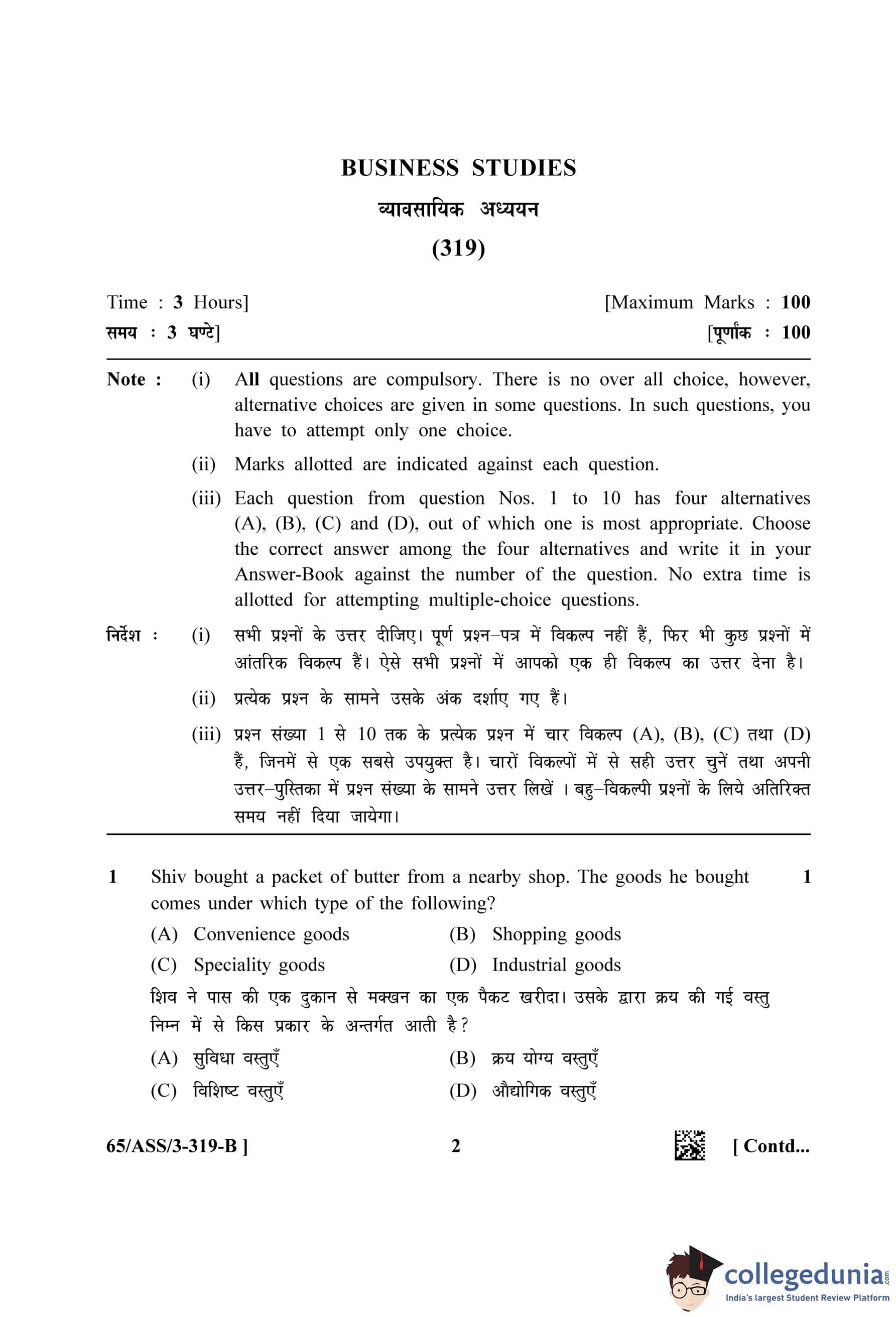 NIOS Class 12 Business Studies Question Paper 2023 with Answer Key pdf (Set B - ASS) is available for download here. The exam was conducted by National Institute of Open Schooling on May 4, 2023 in the Afternoon Session 2.30 PM to 5.30 PM. The question paper comprised a total of 30 questions.