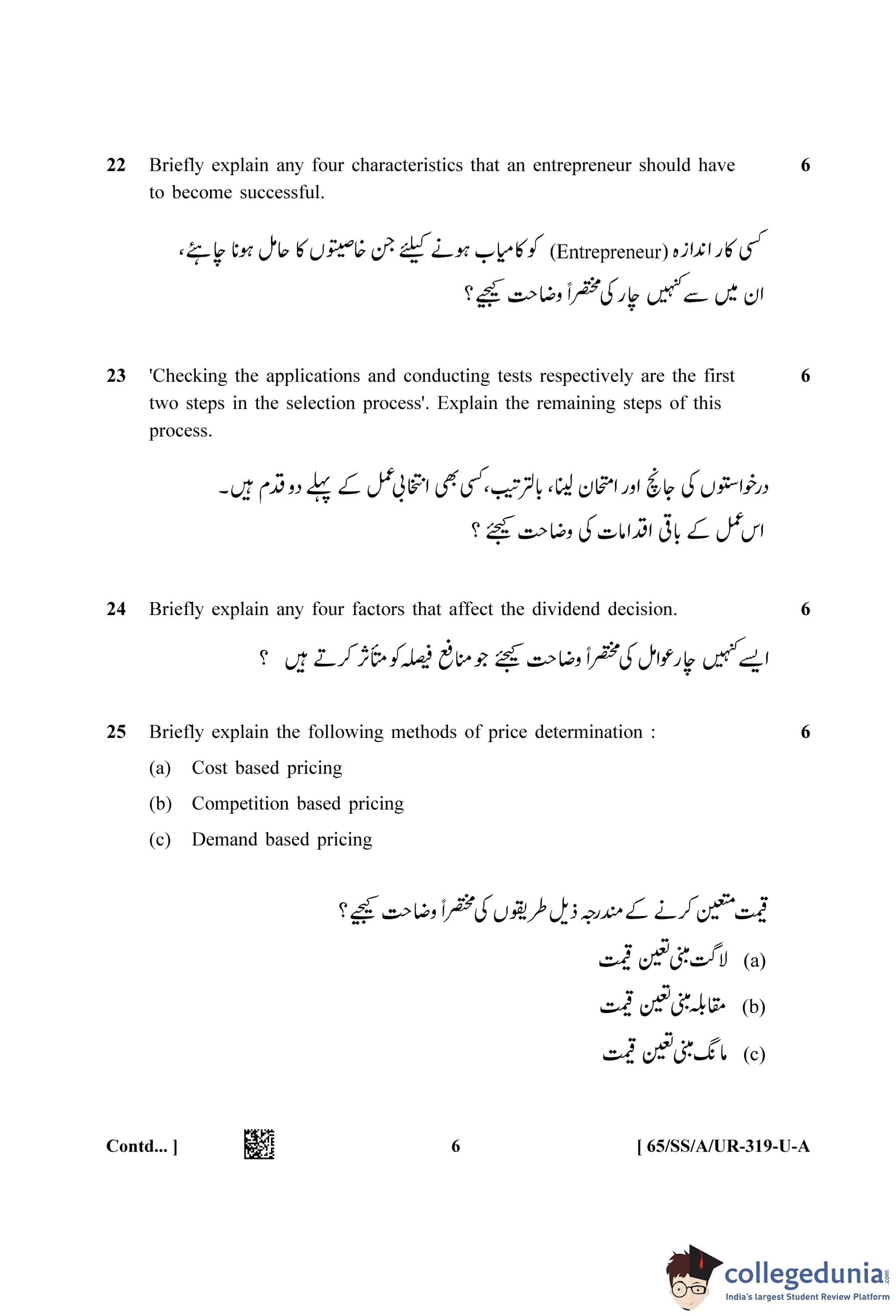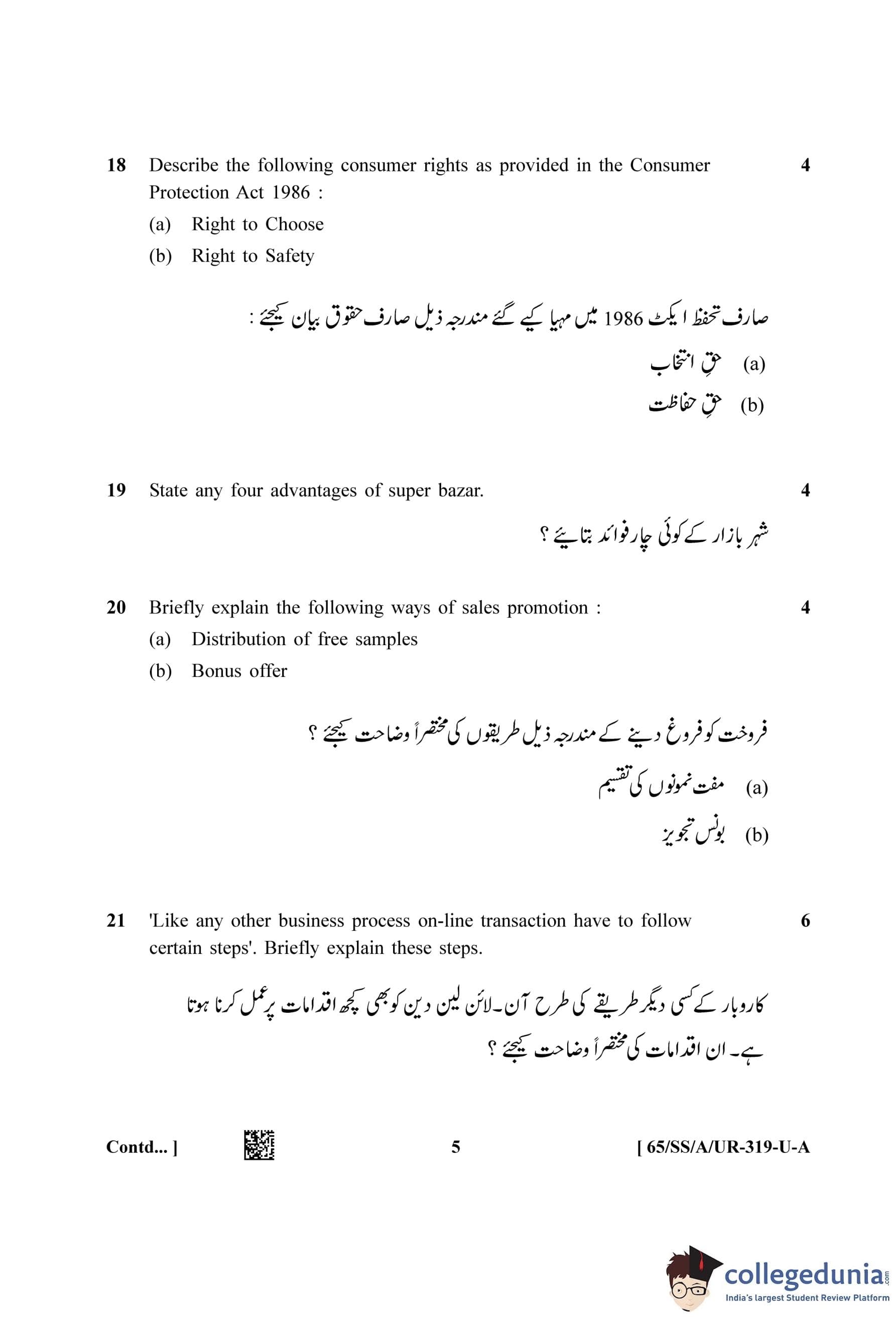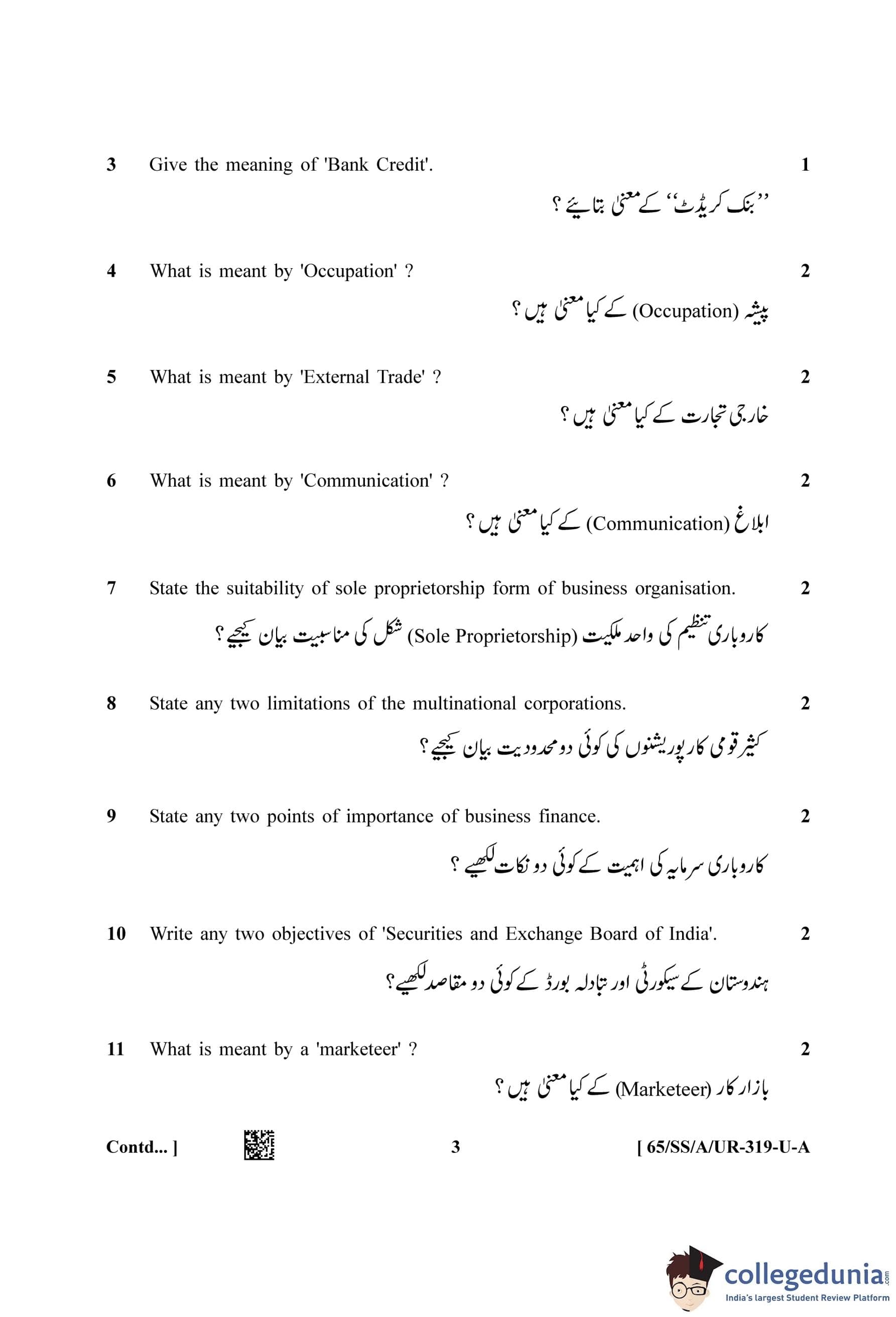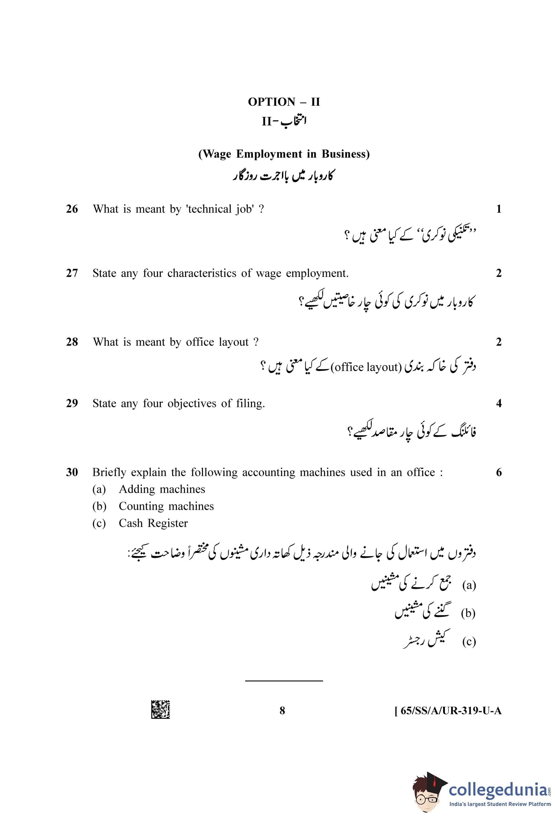 NIOS Class 12 Business Studies Urdu (Set A) Question Paper 2023 with Answer Key
