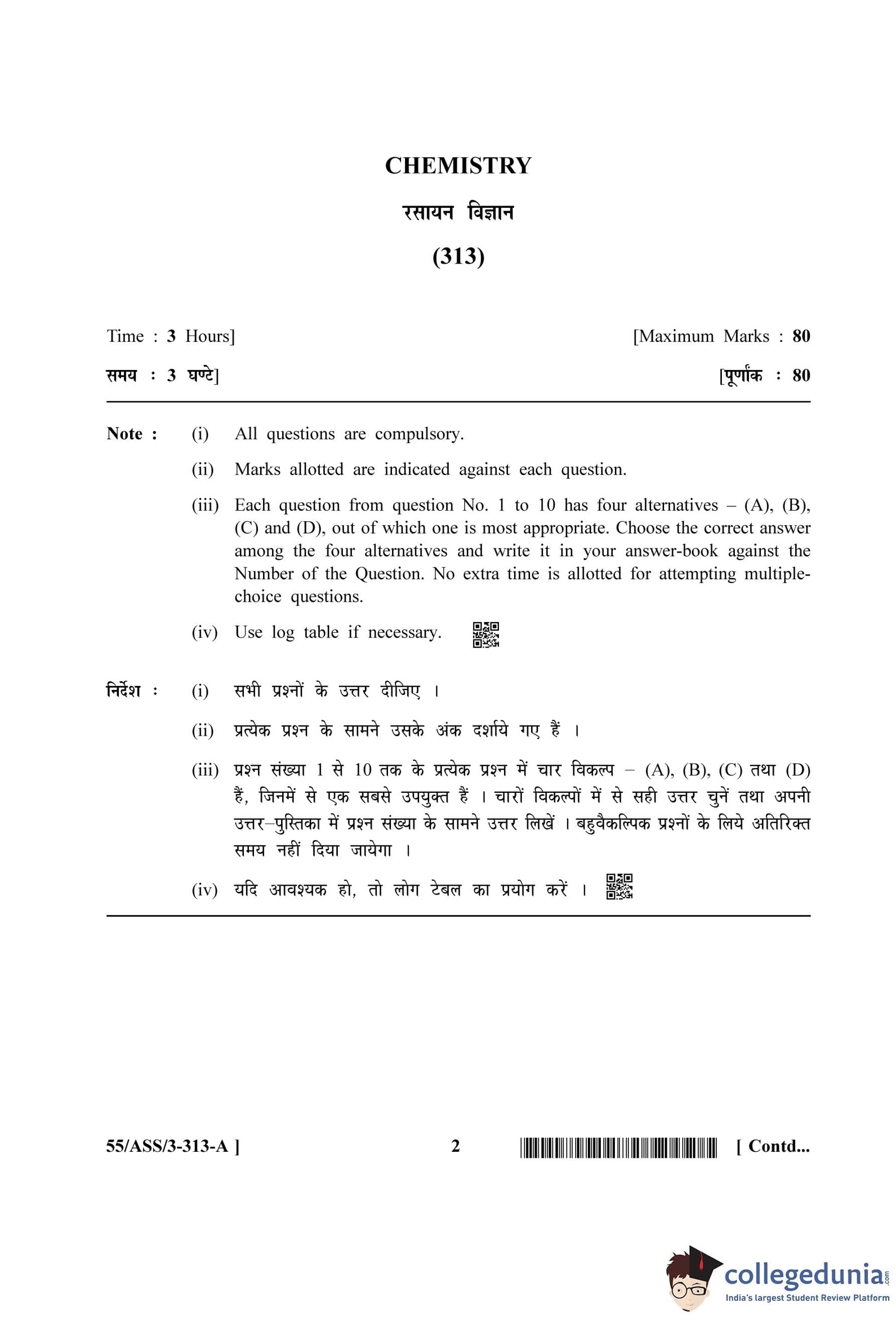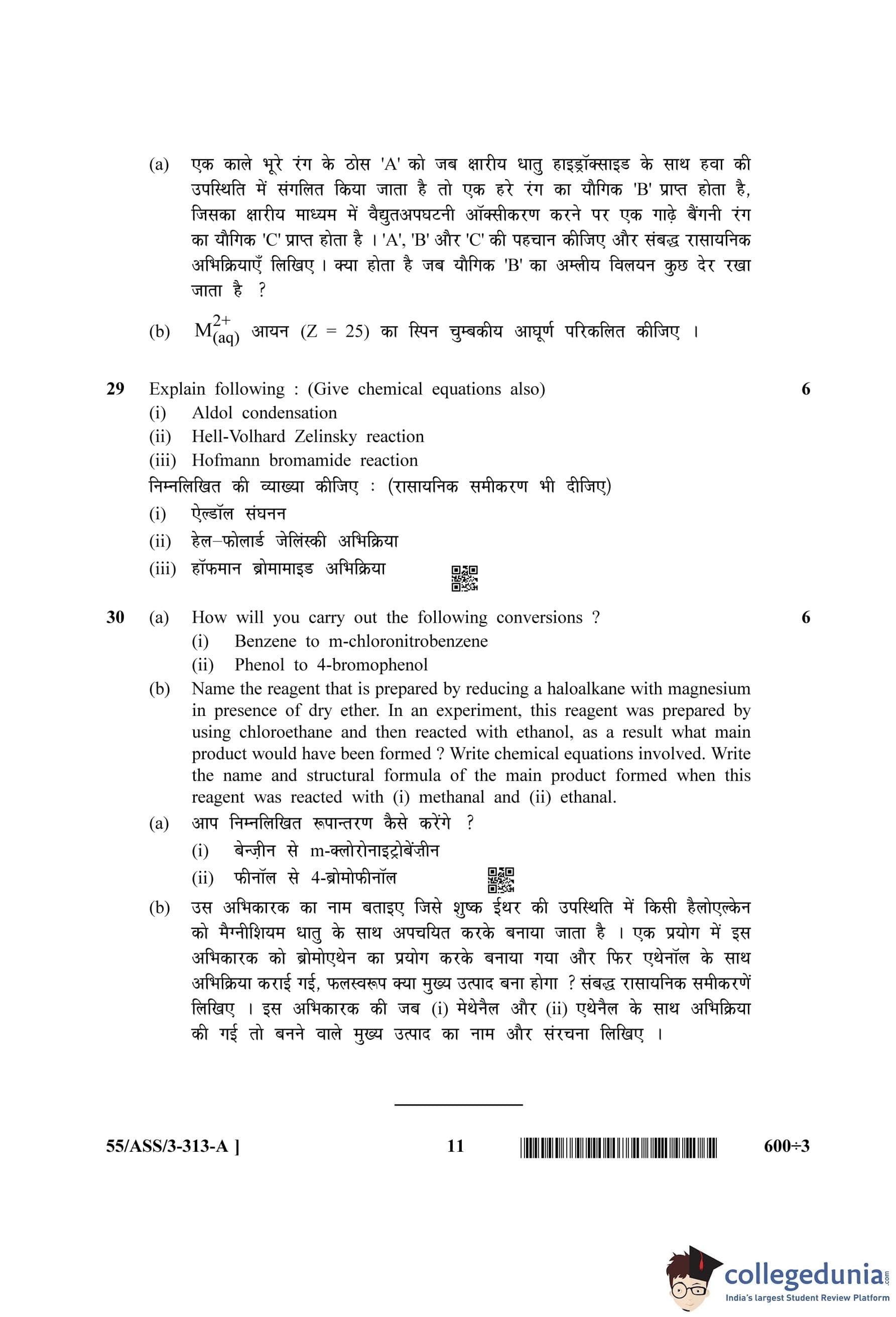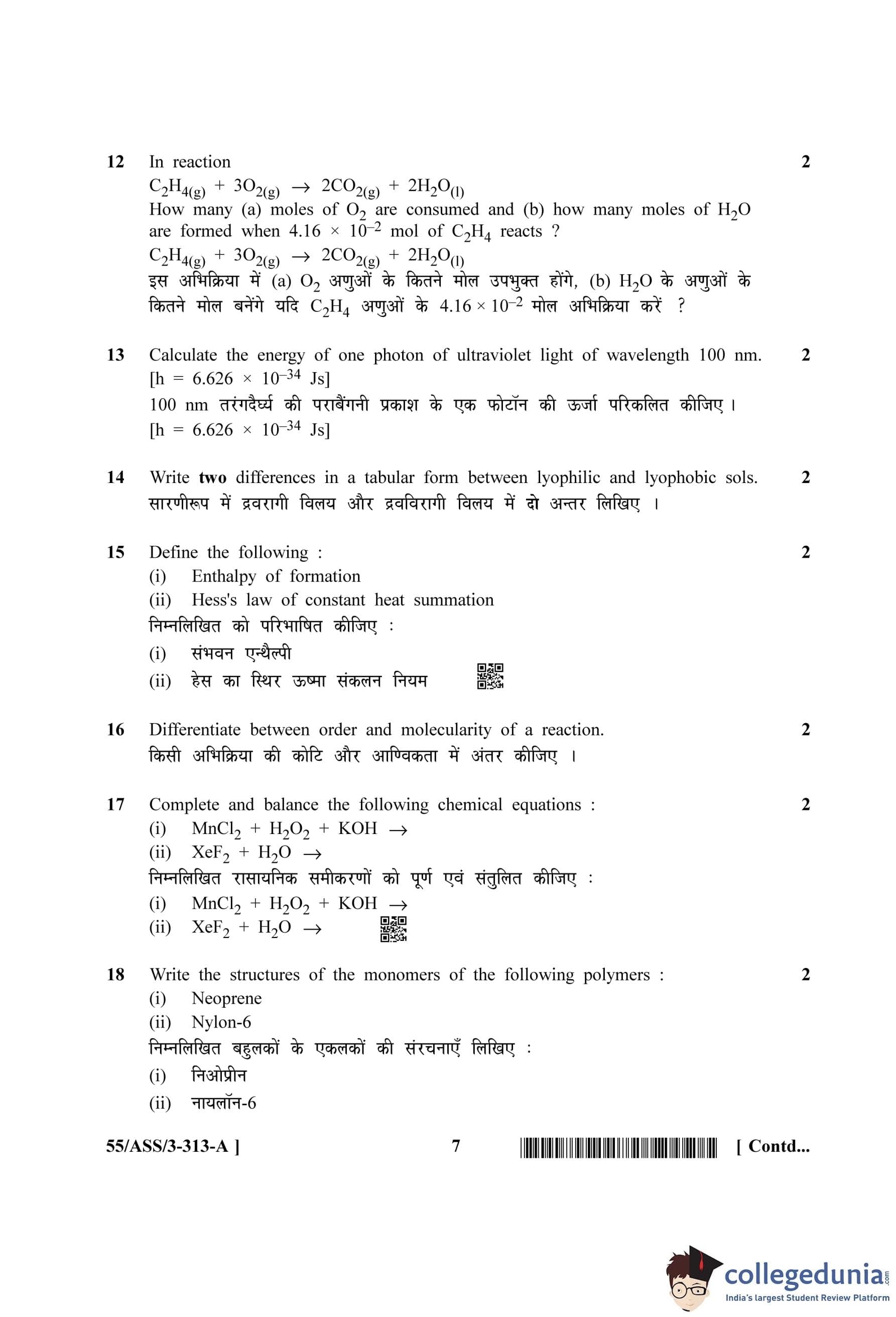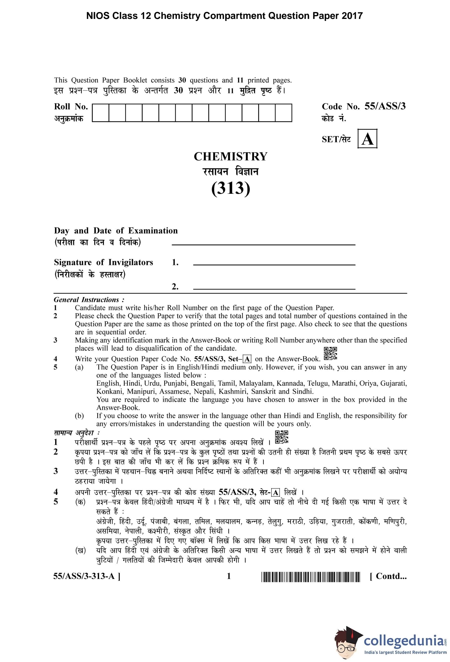 NIOS Class 12 Chemistry Compartment Question Paper 2017 with Answer Key