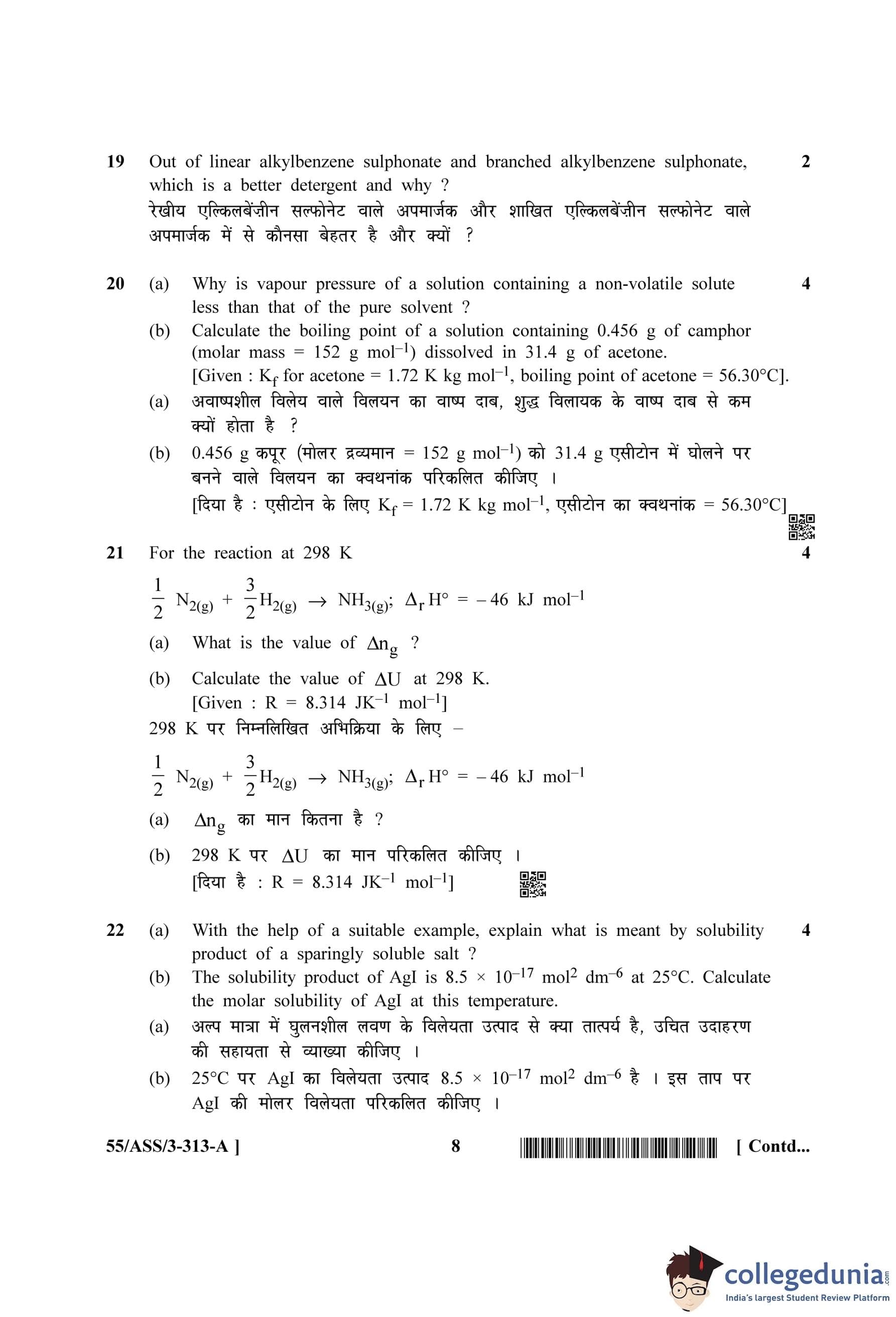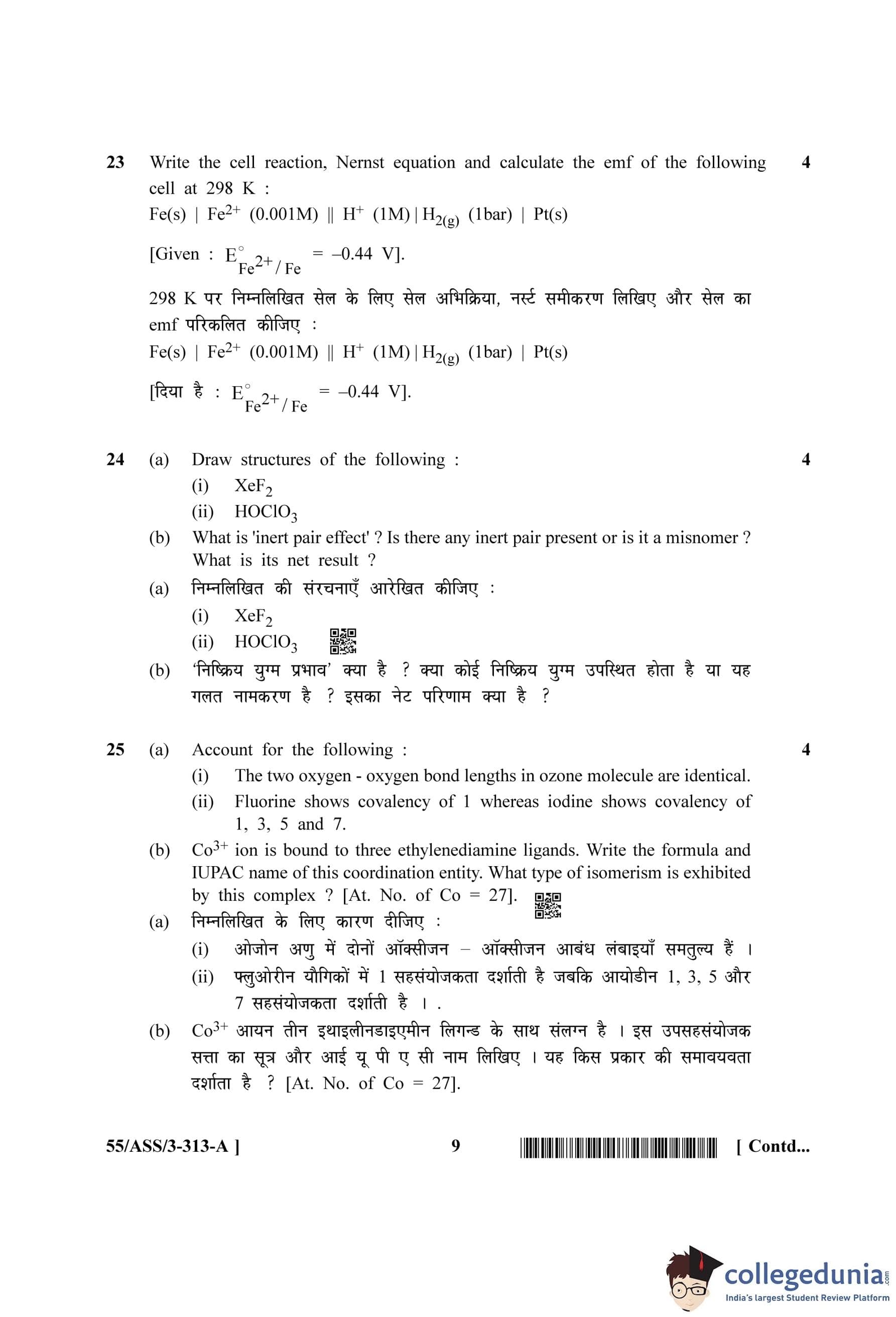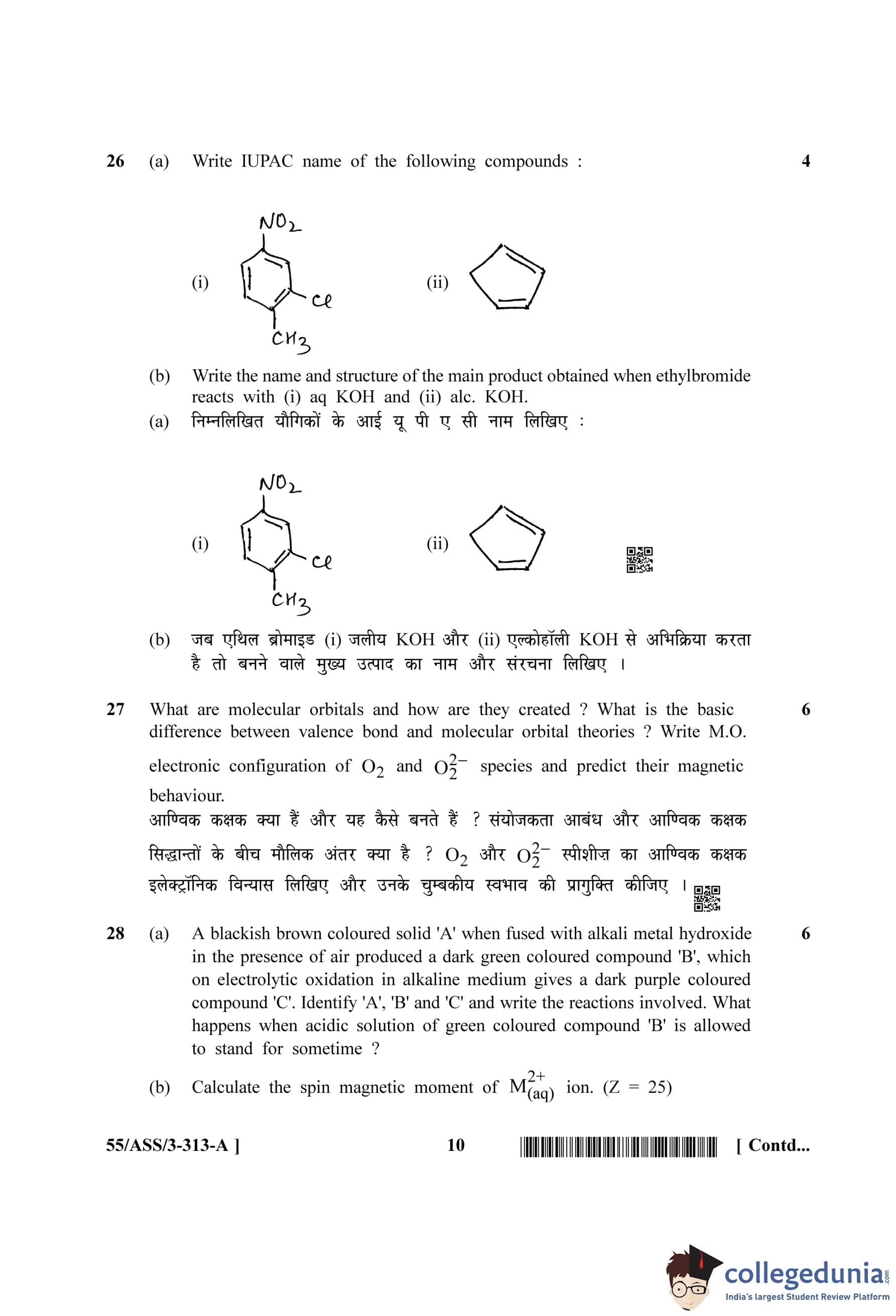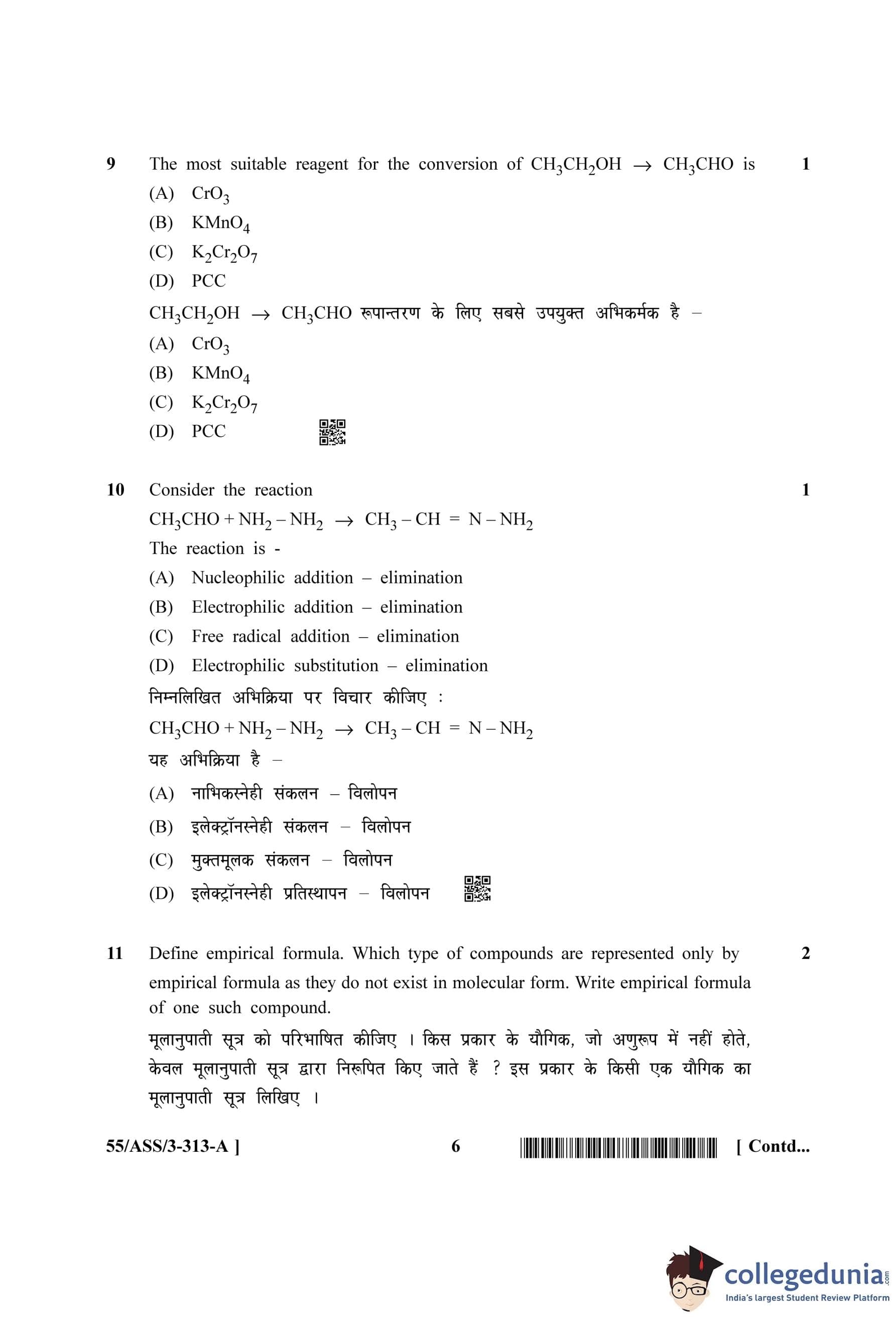 NIOS Class 12 Chemistry Compartment Question Paper 2017 with Answer Key