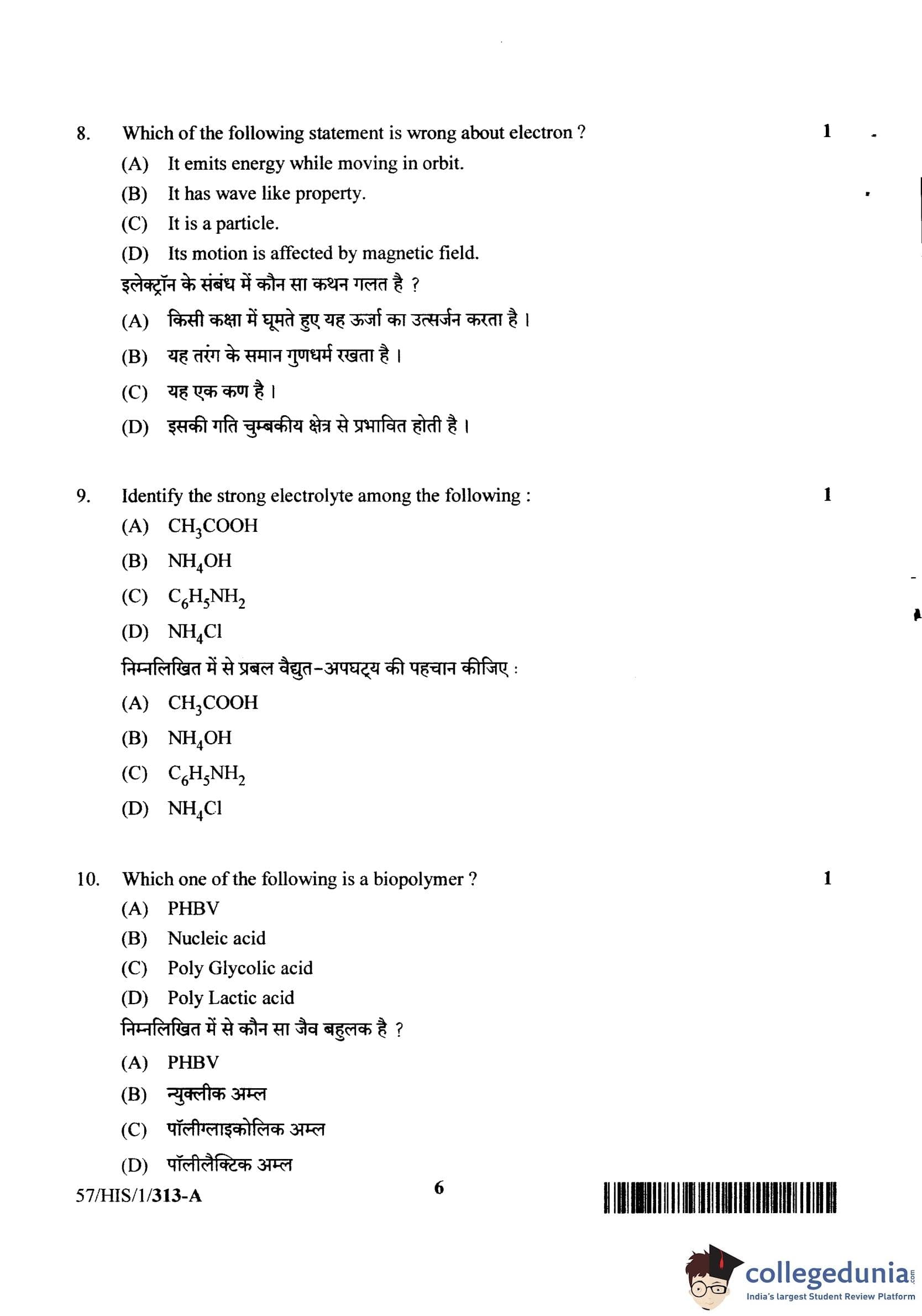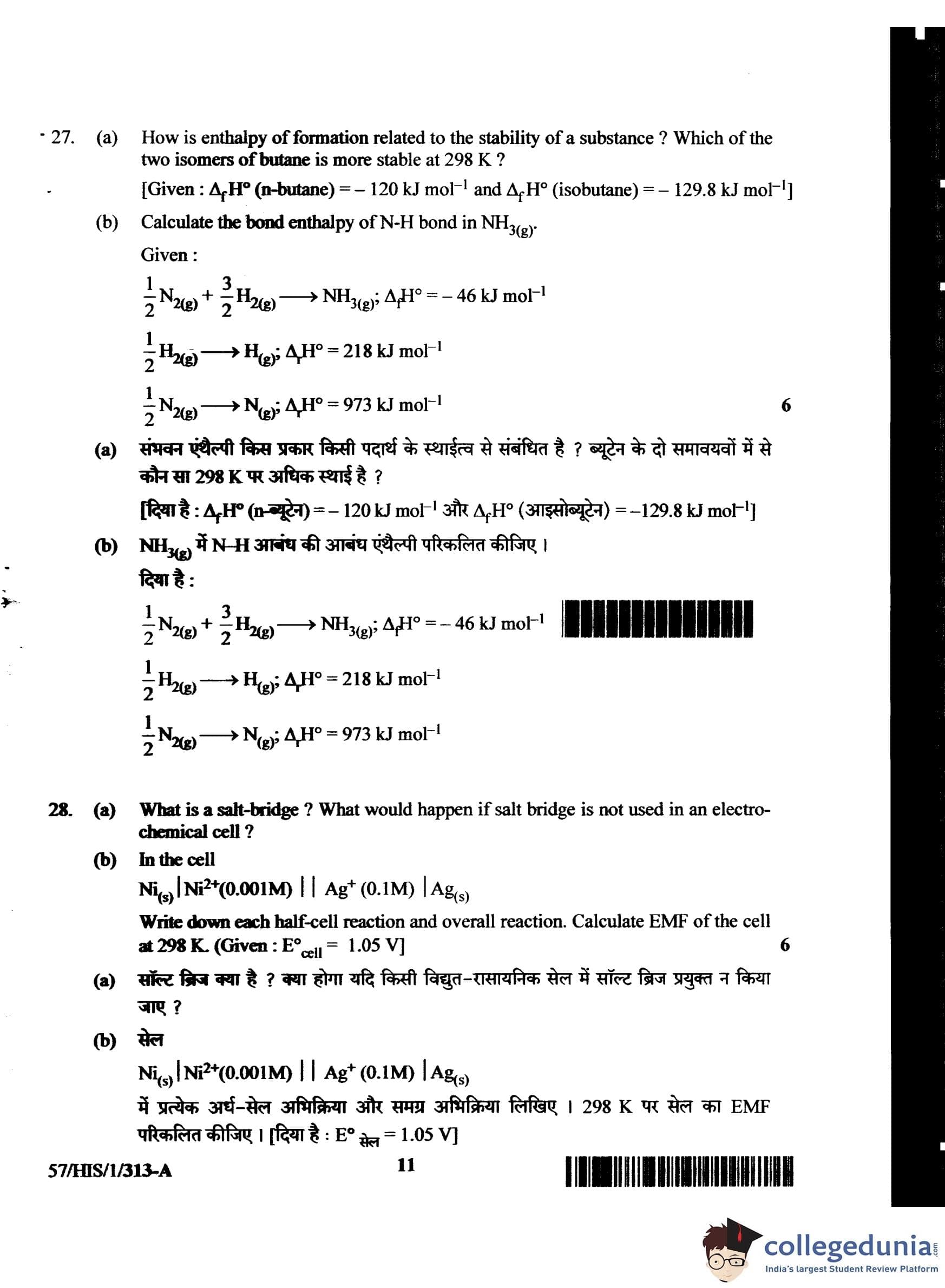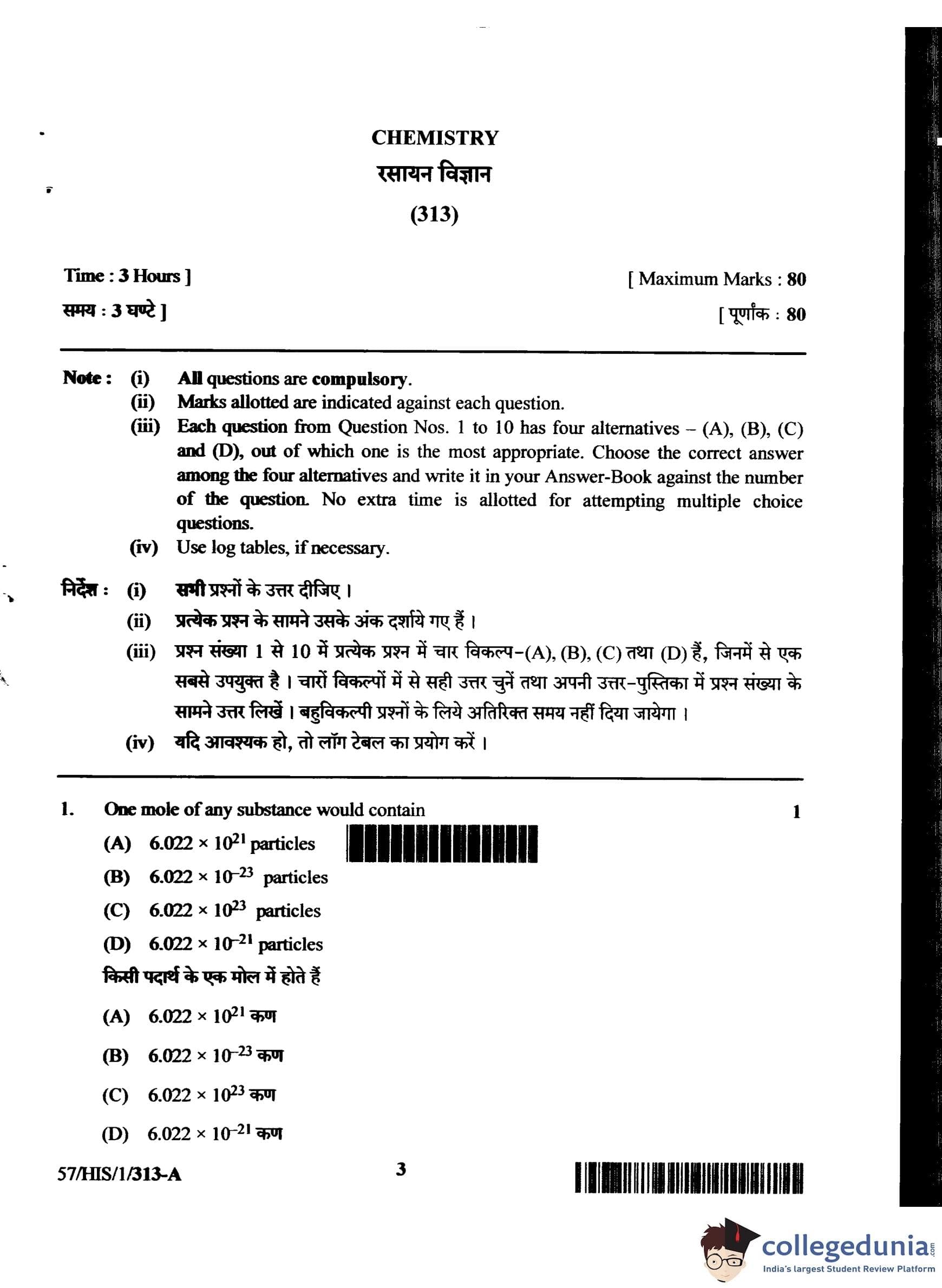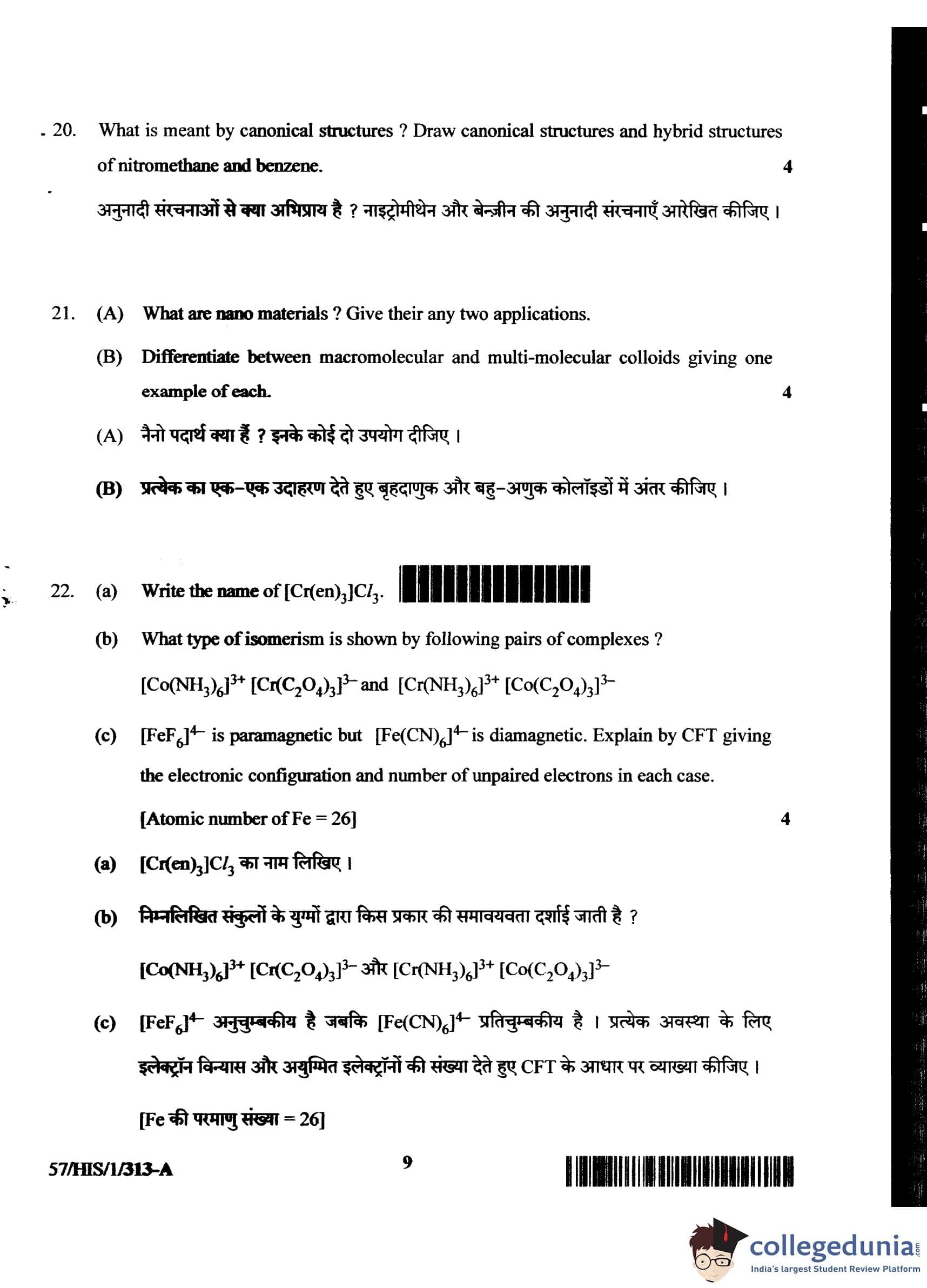 NIOS Class 12 Chemistry Compartment Question Paper 2018 with Answer Key
