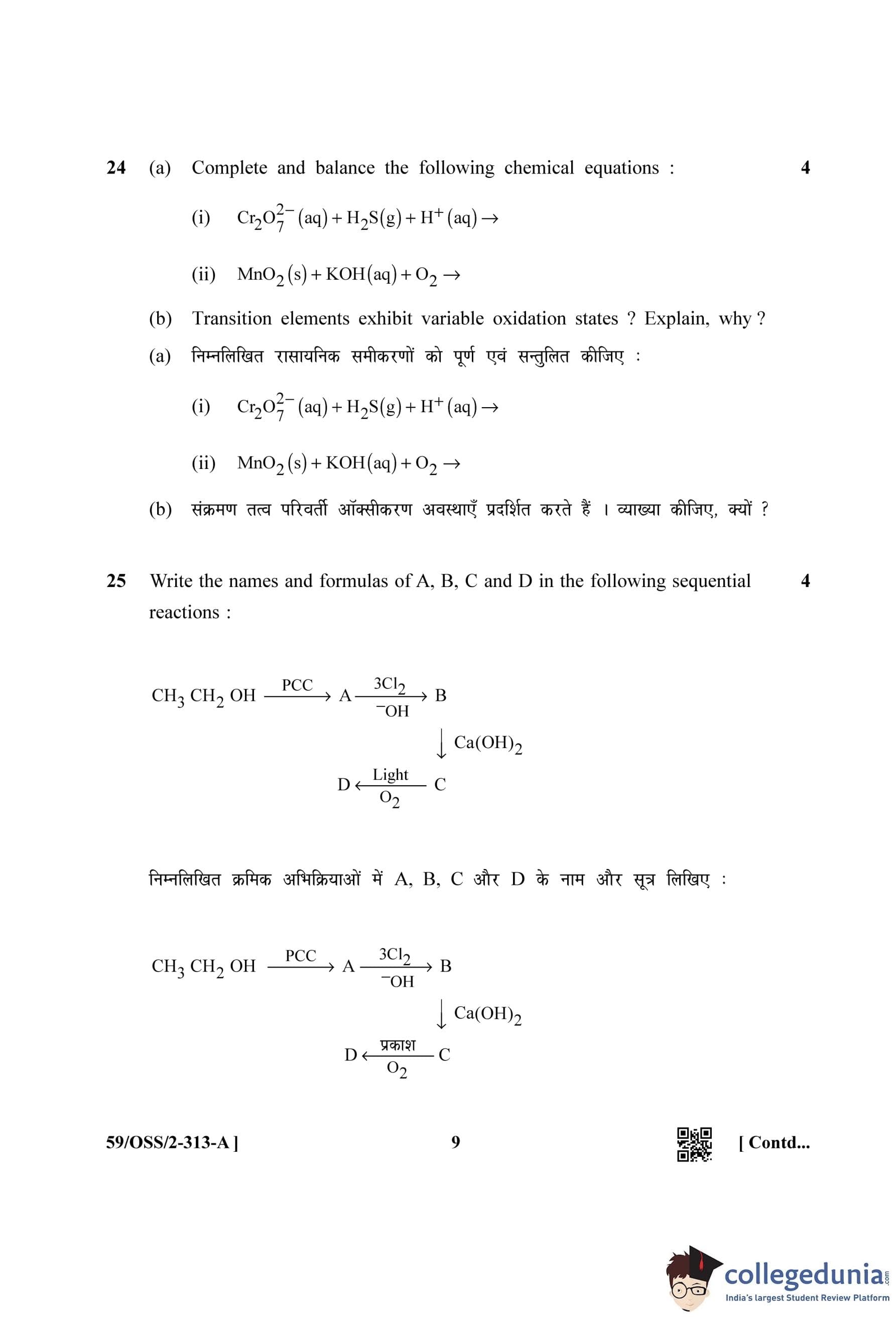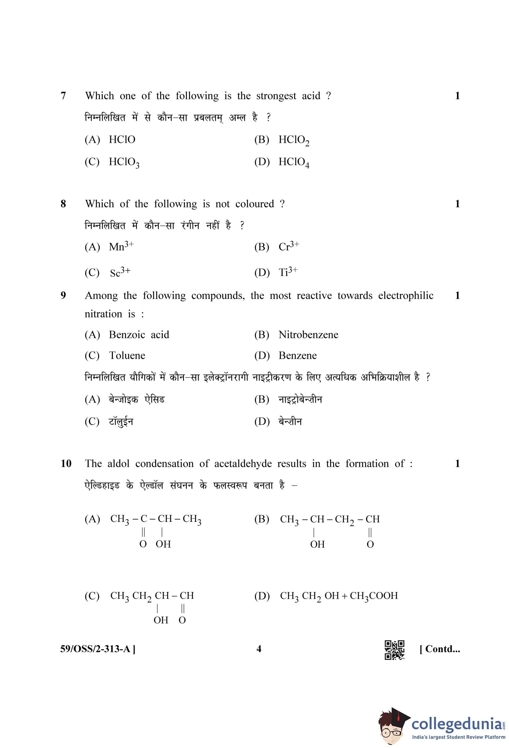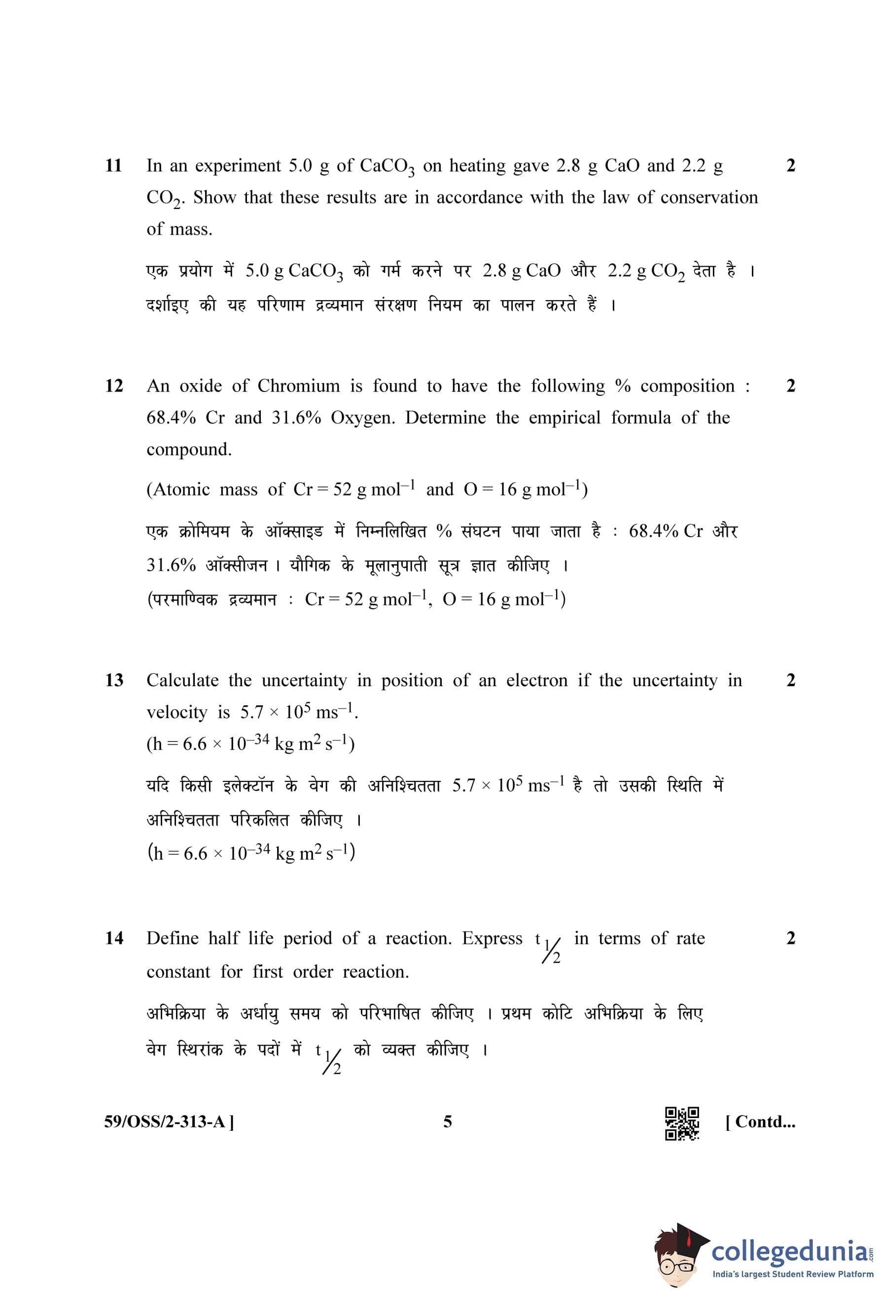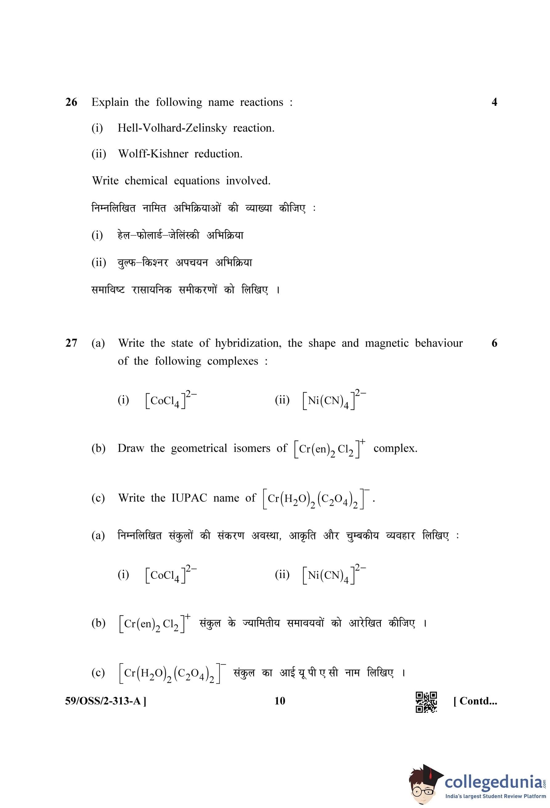 NIOS Class 12 Chemistry (Set A) Compartment Question Paper 2019 with Answer Key