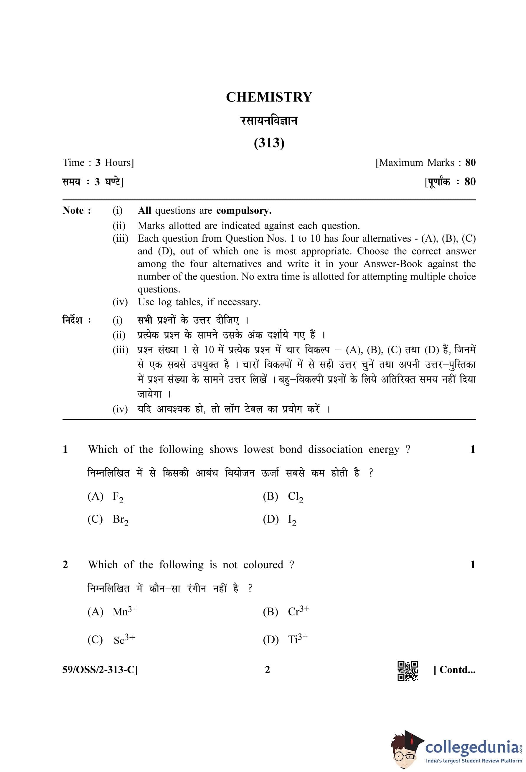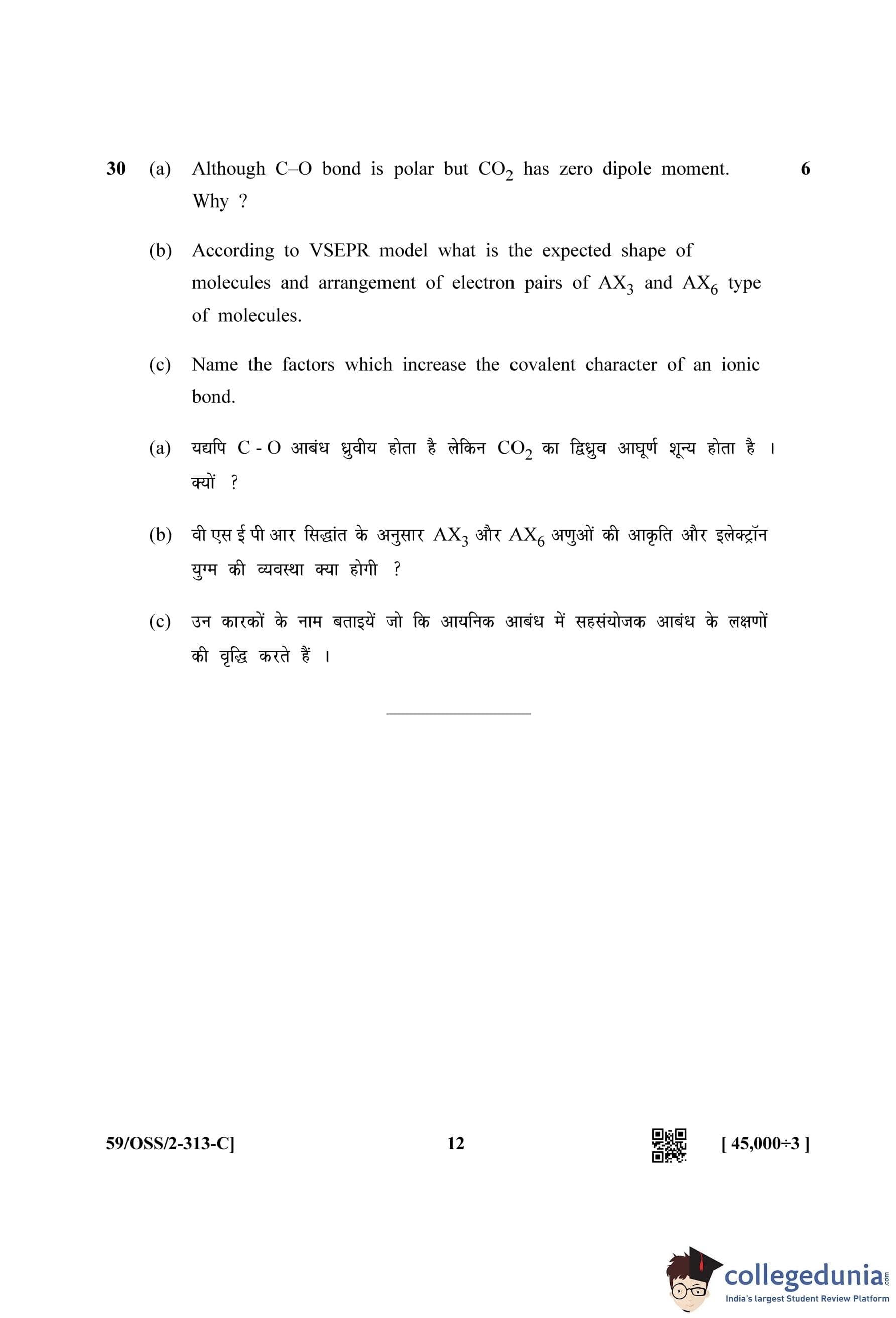 NIOS Class 12 Chemistry Compartment Question Paper 2019 with Answer Key pdf (Set C) is available for download here. The exam was conducted by National Institute of Open Schooling on October 22, 2019 in the Afternoon Session 2:30 PM to 5:30 PM. The question paper comprised a total of 30 questions.
