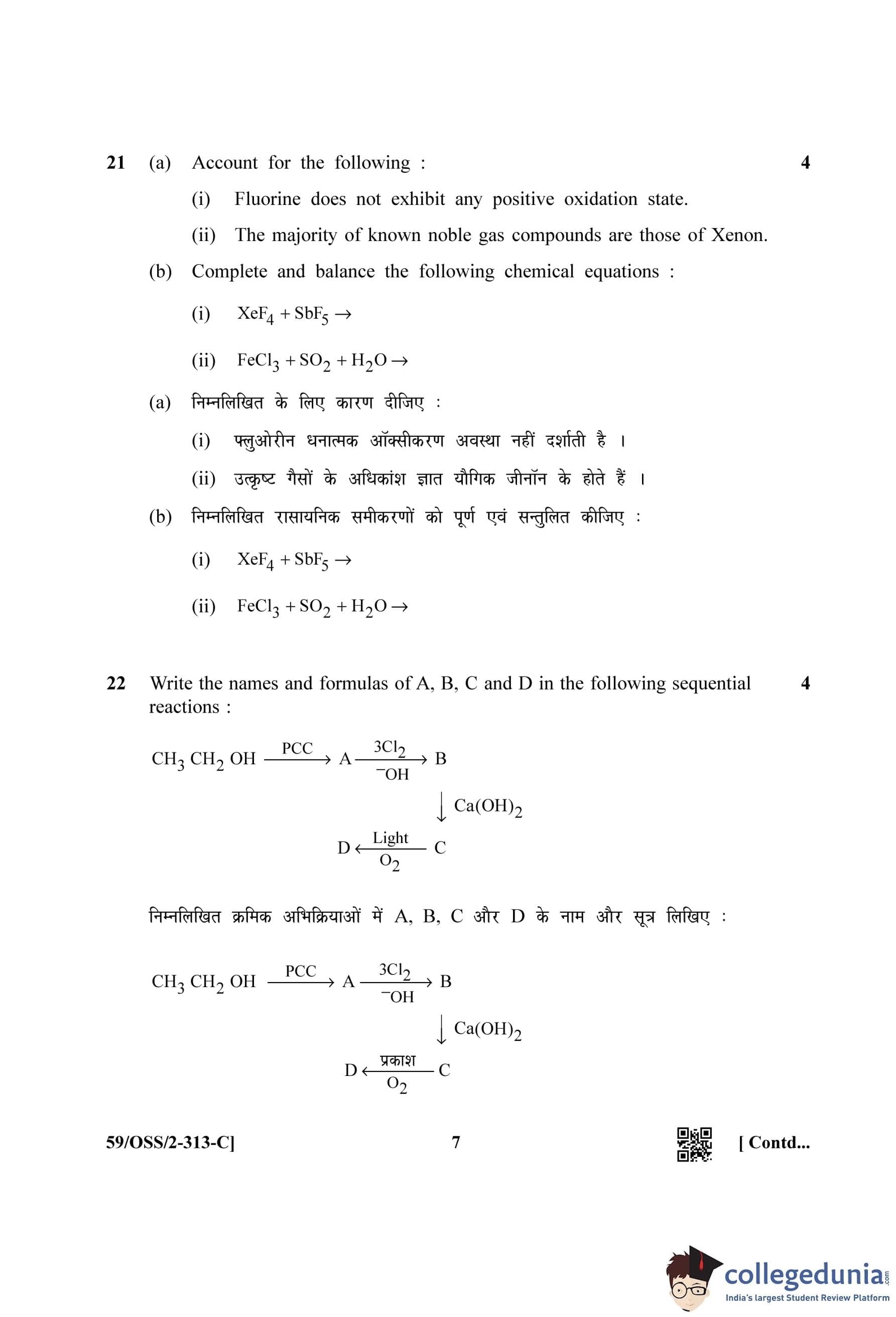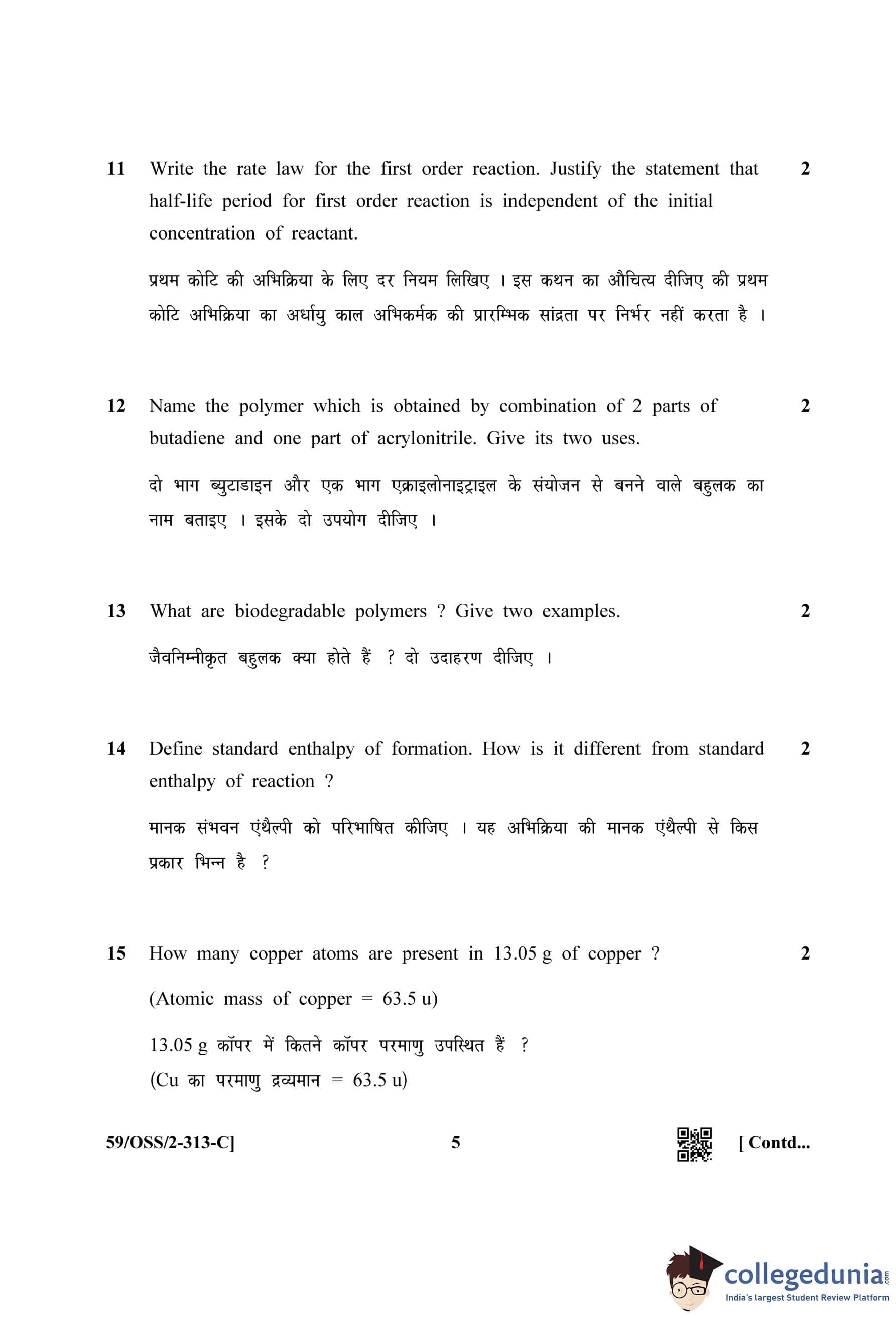 NIOS Class 12 Chemistry (Set C) Compartment Question Paper 2019 with Answer Key