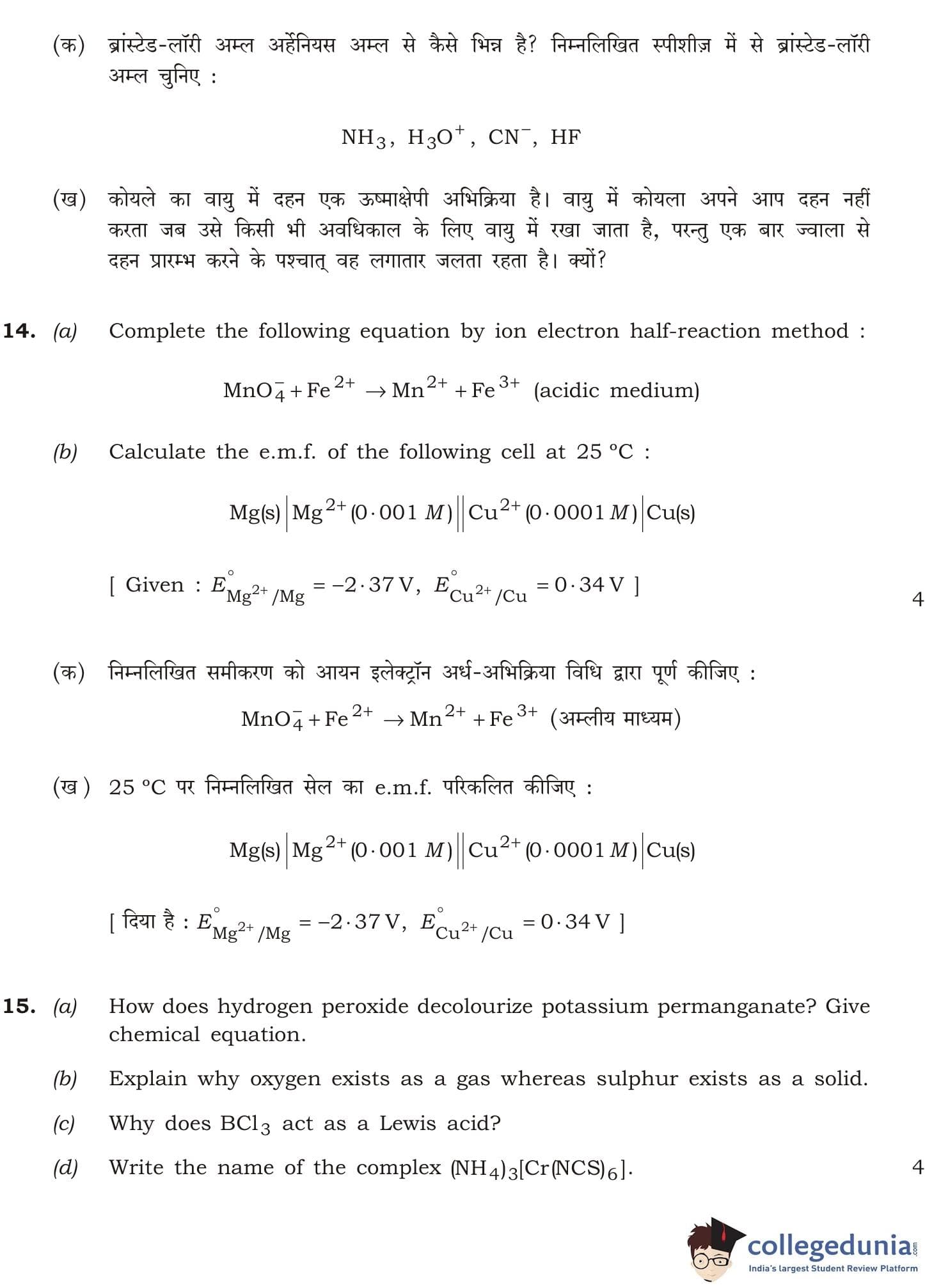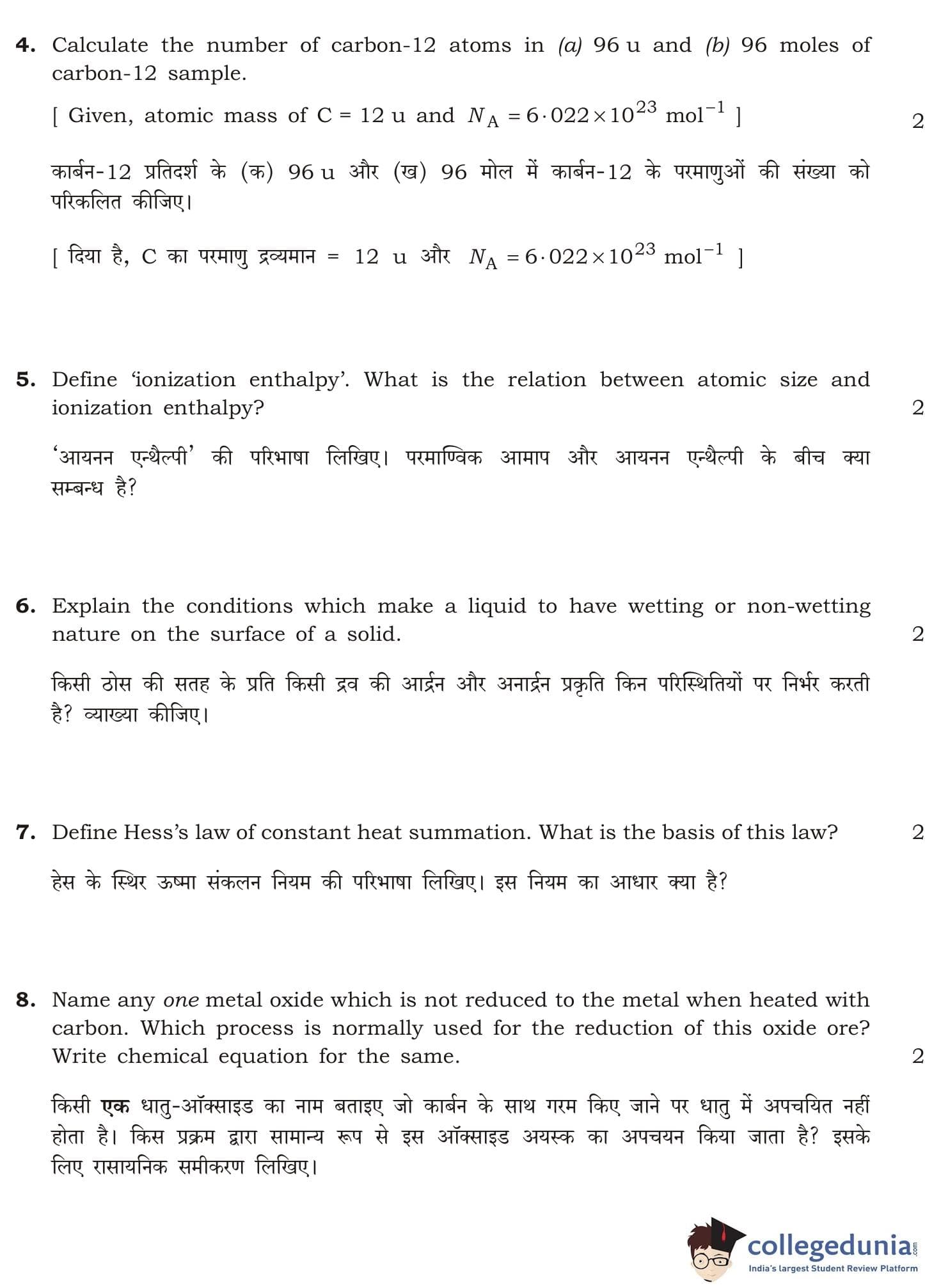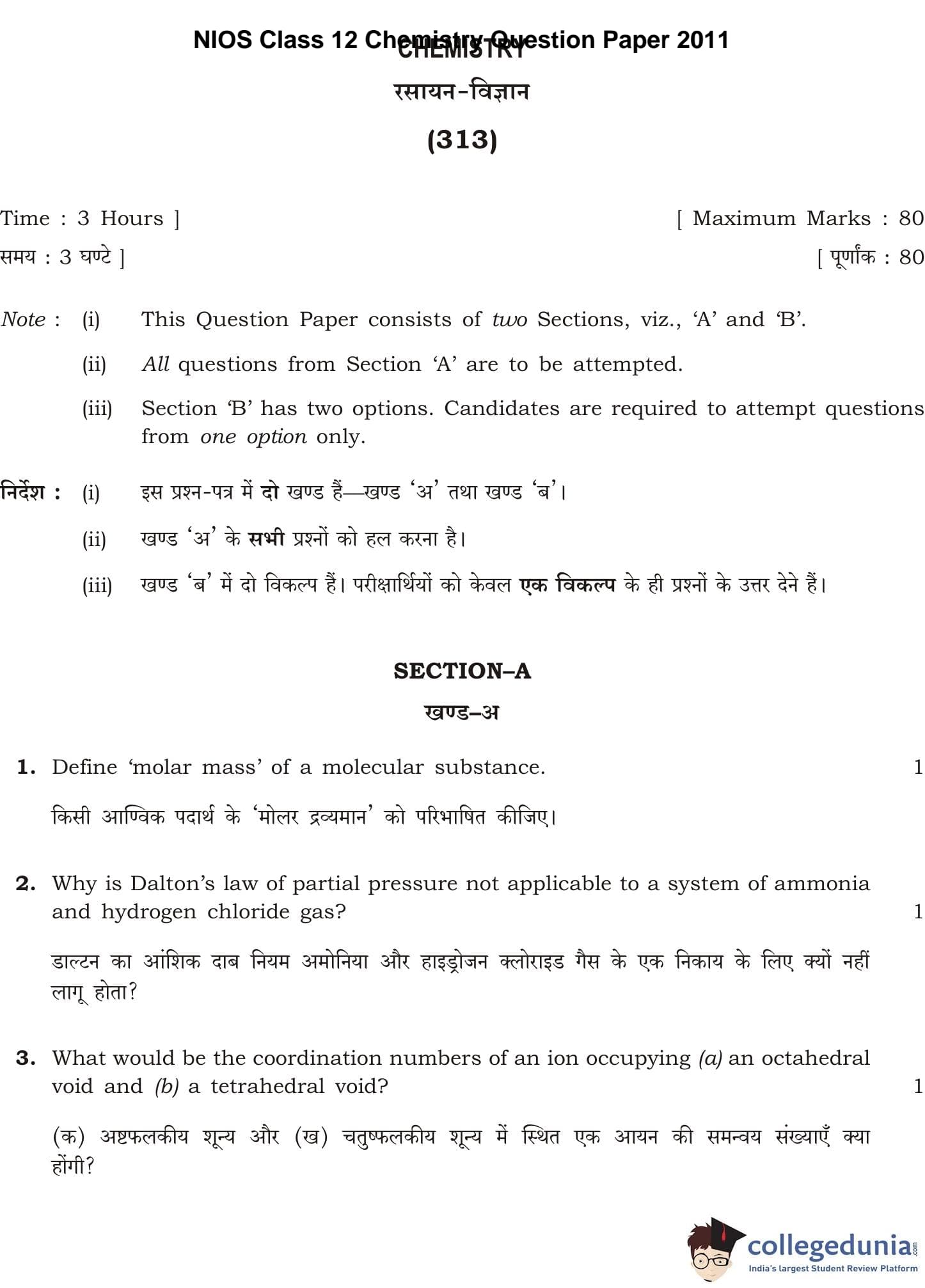 NIOS Class 12 Chemistry Question Paper 2011 with Answer Key