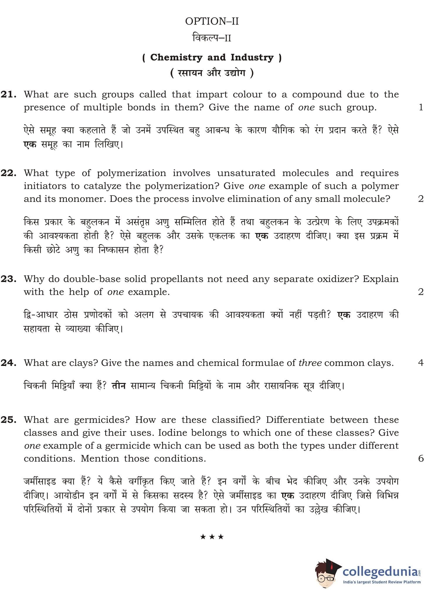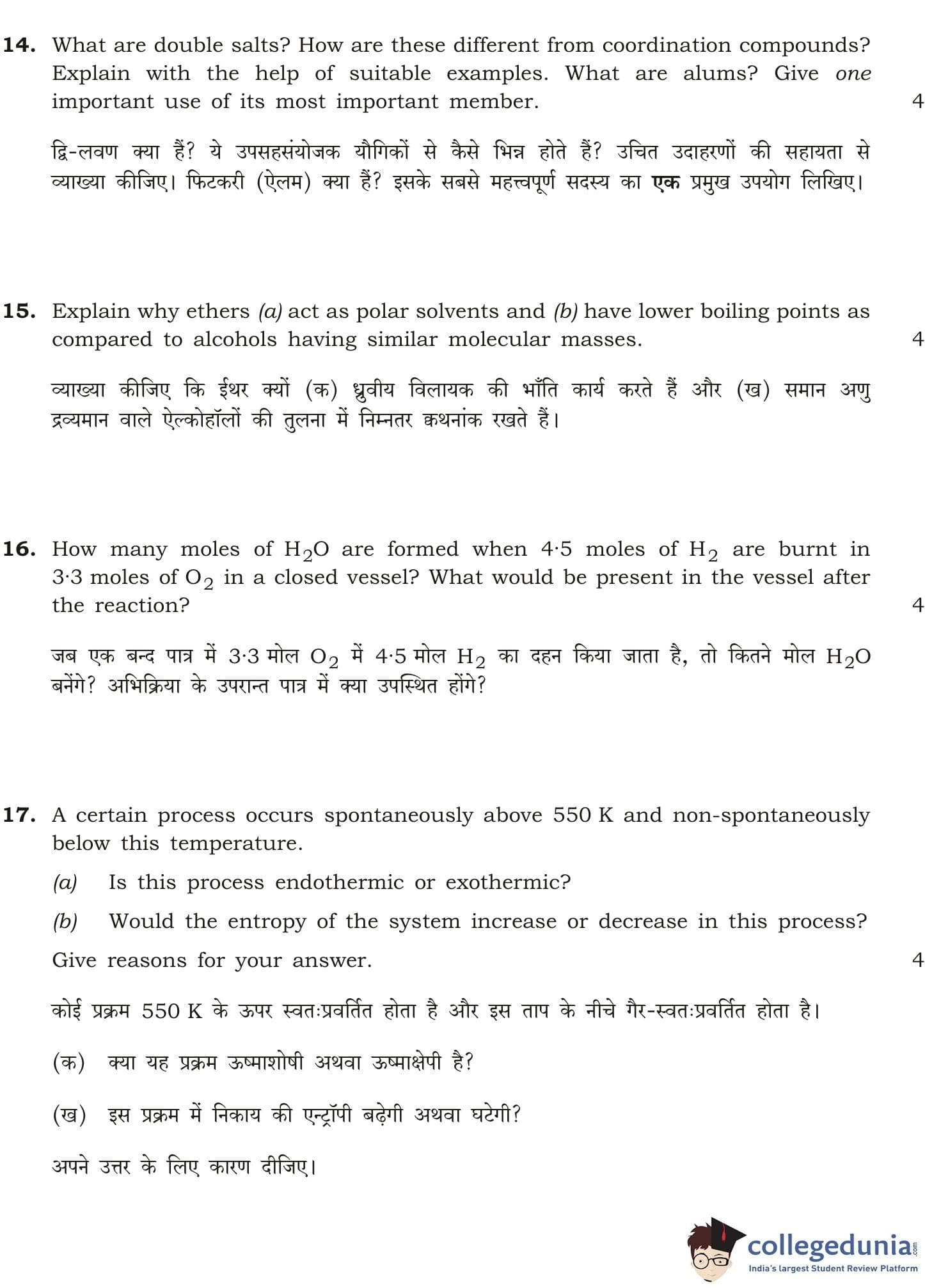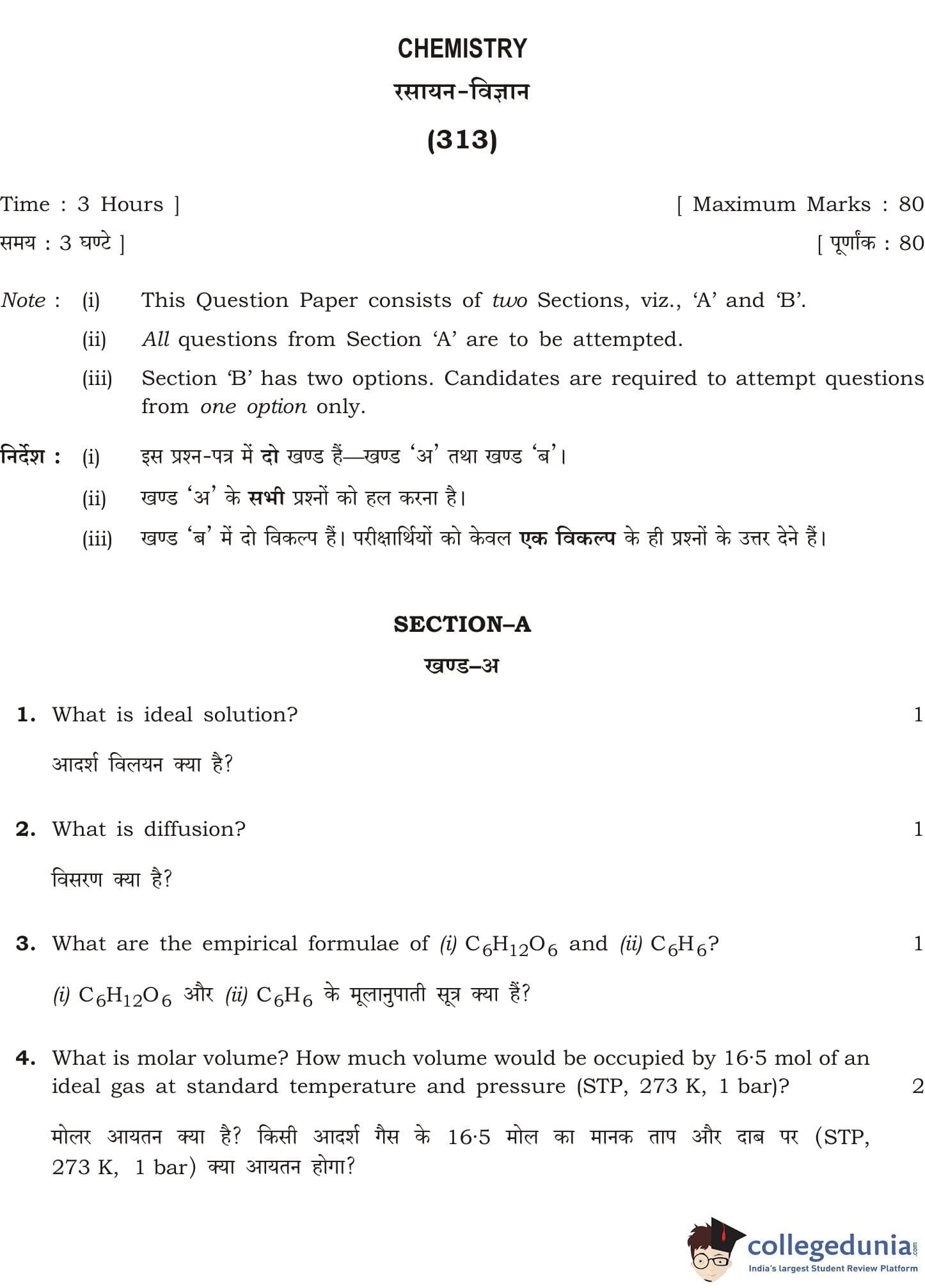 NIOS Class 12 Chemistry Question Paper 2015 with Answer Key