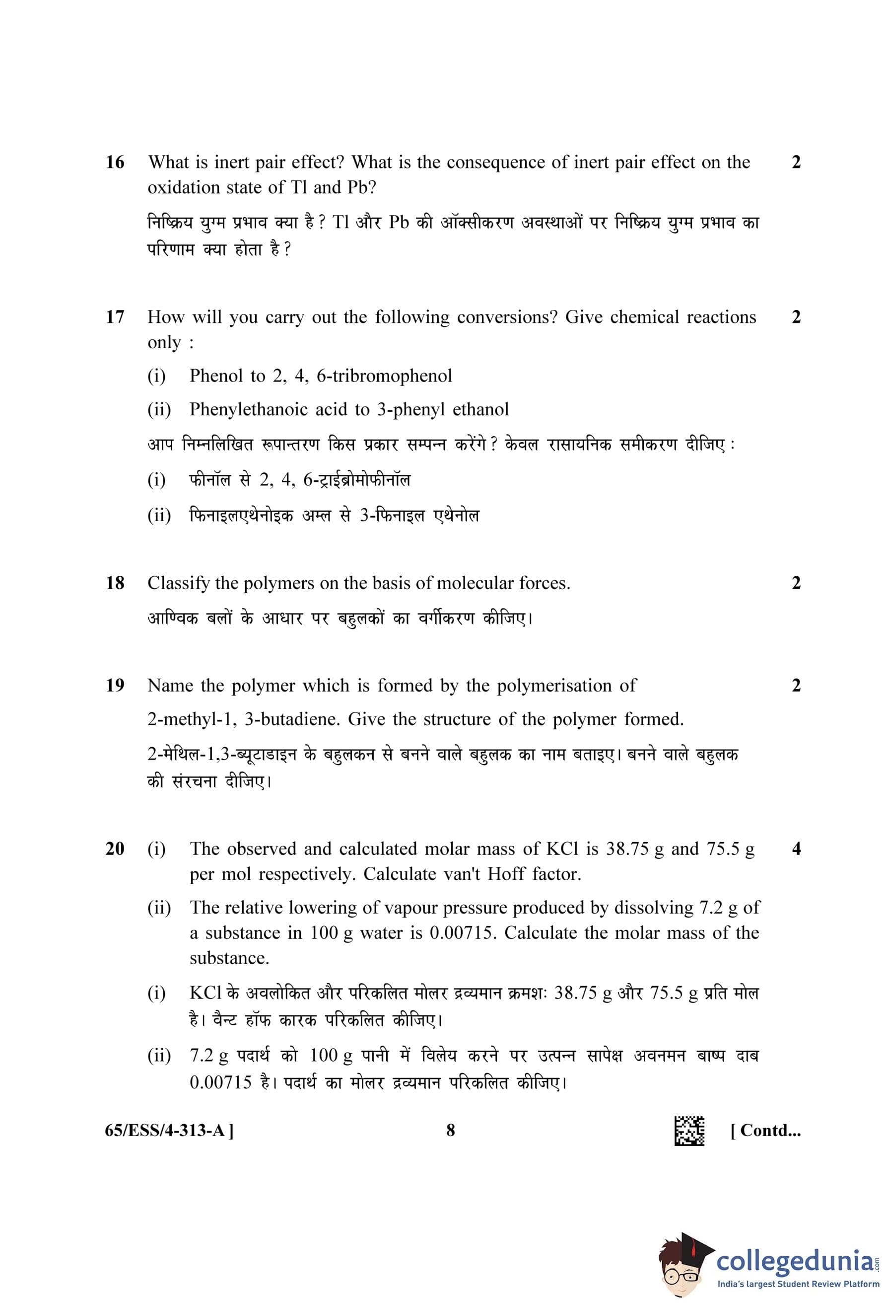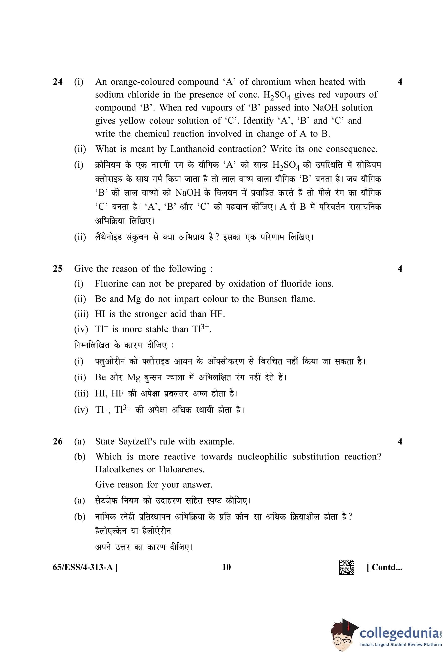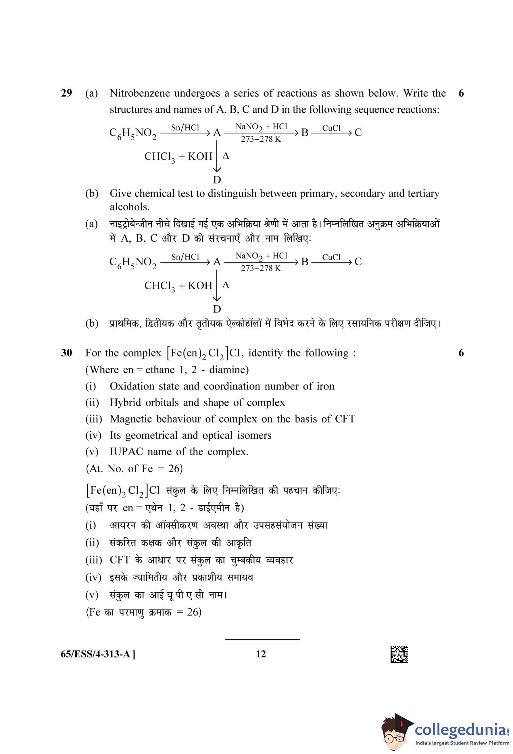 NIOS Class 12 Chemistry Question Paper 2023 with Answer Key (Set A - ESS)