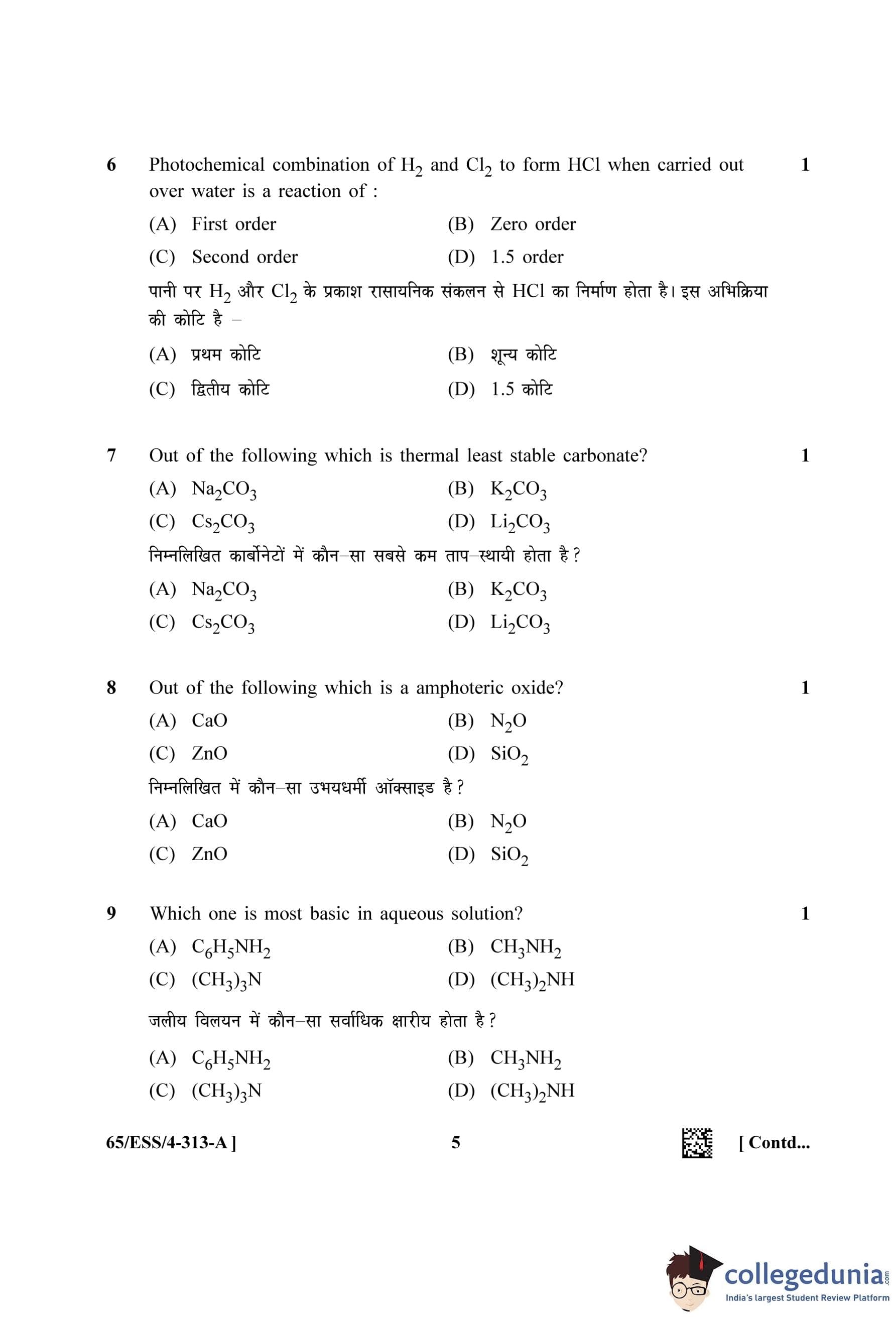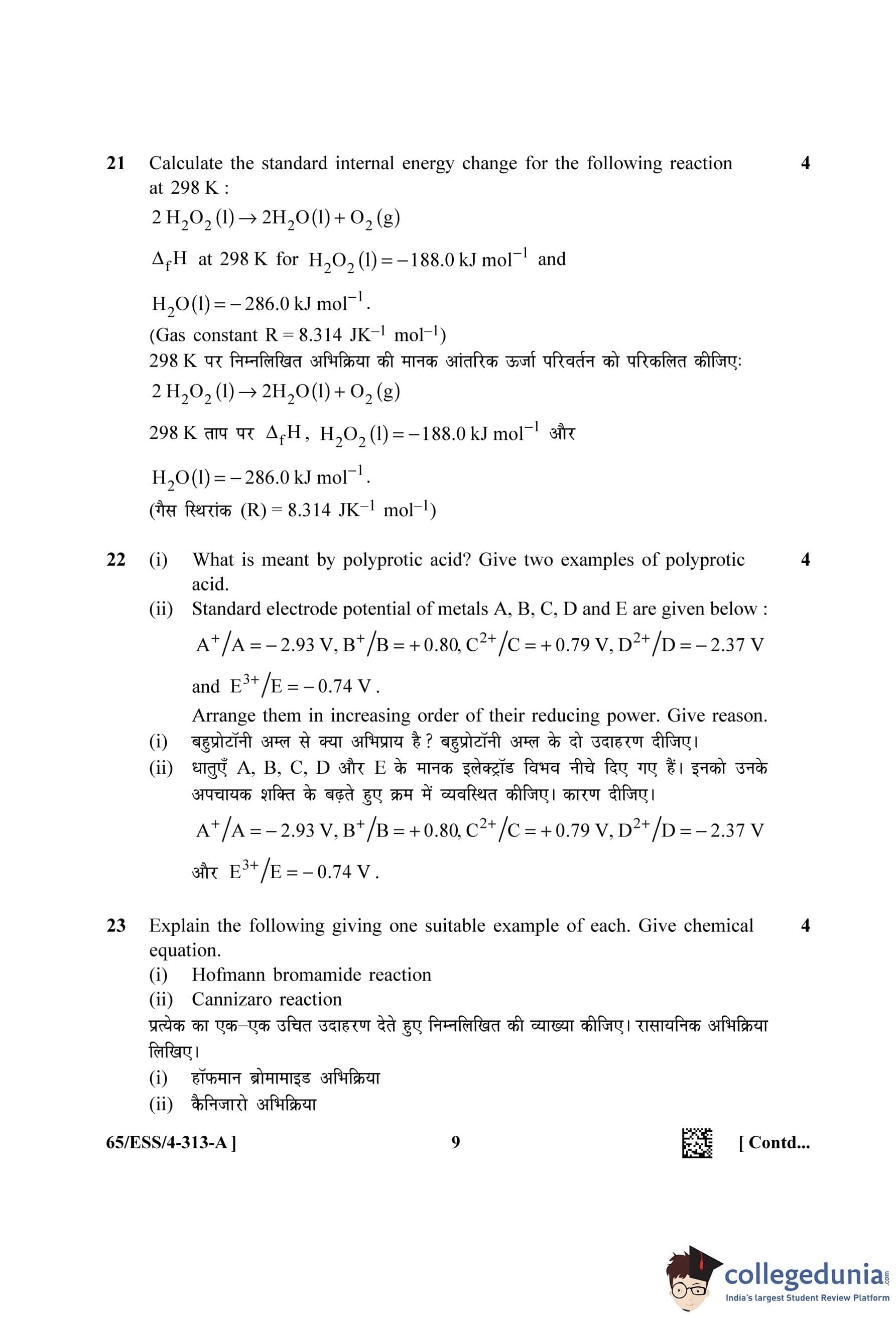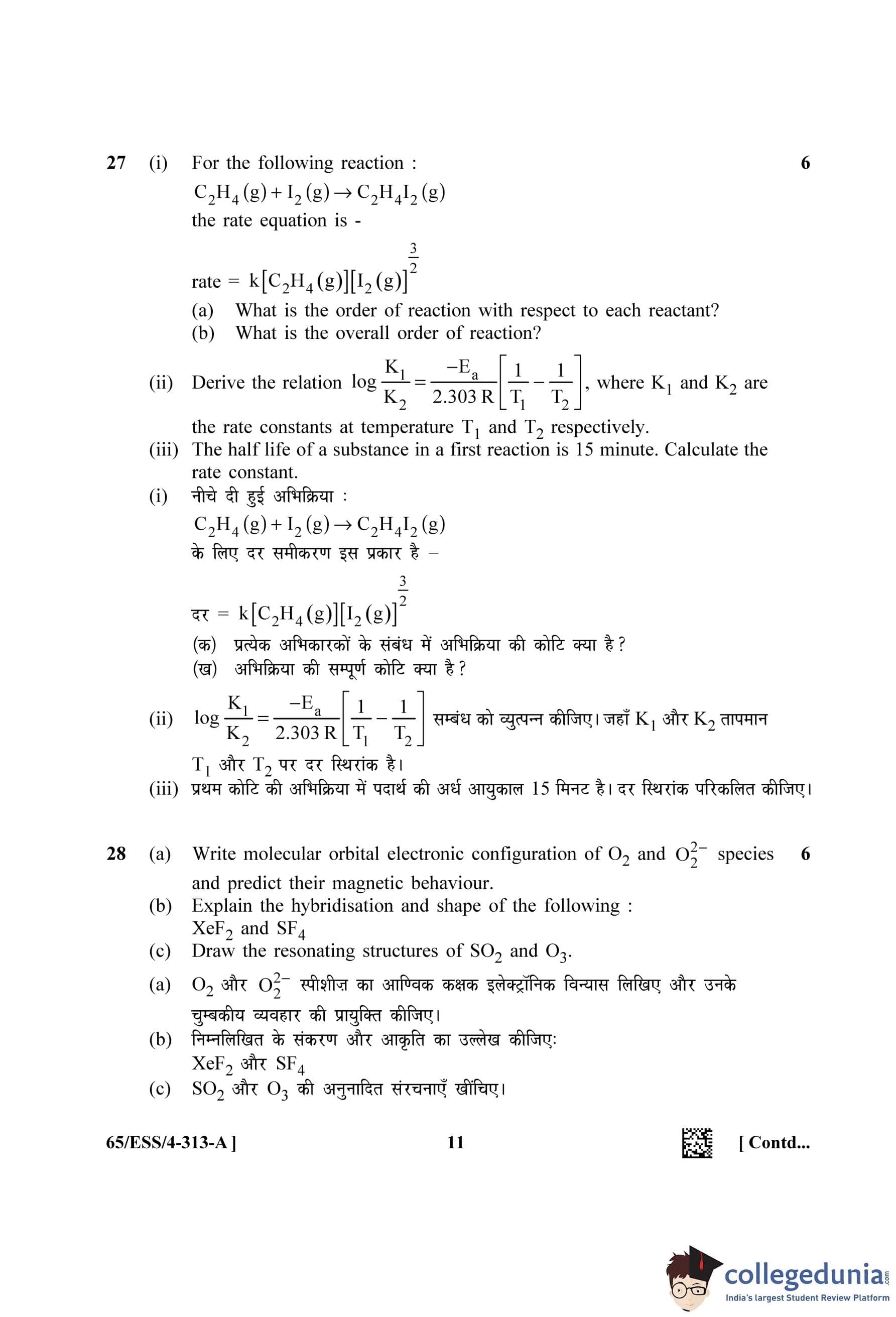 NIOS Class 12 Chemistry Question Paper 2023 with Answer Key (Set A - ESS)