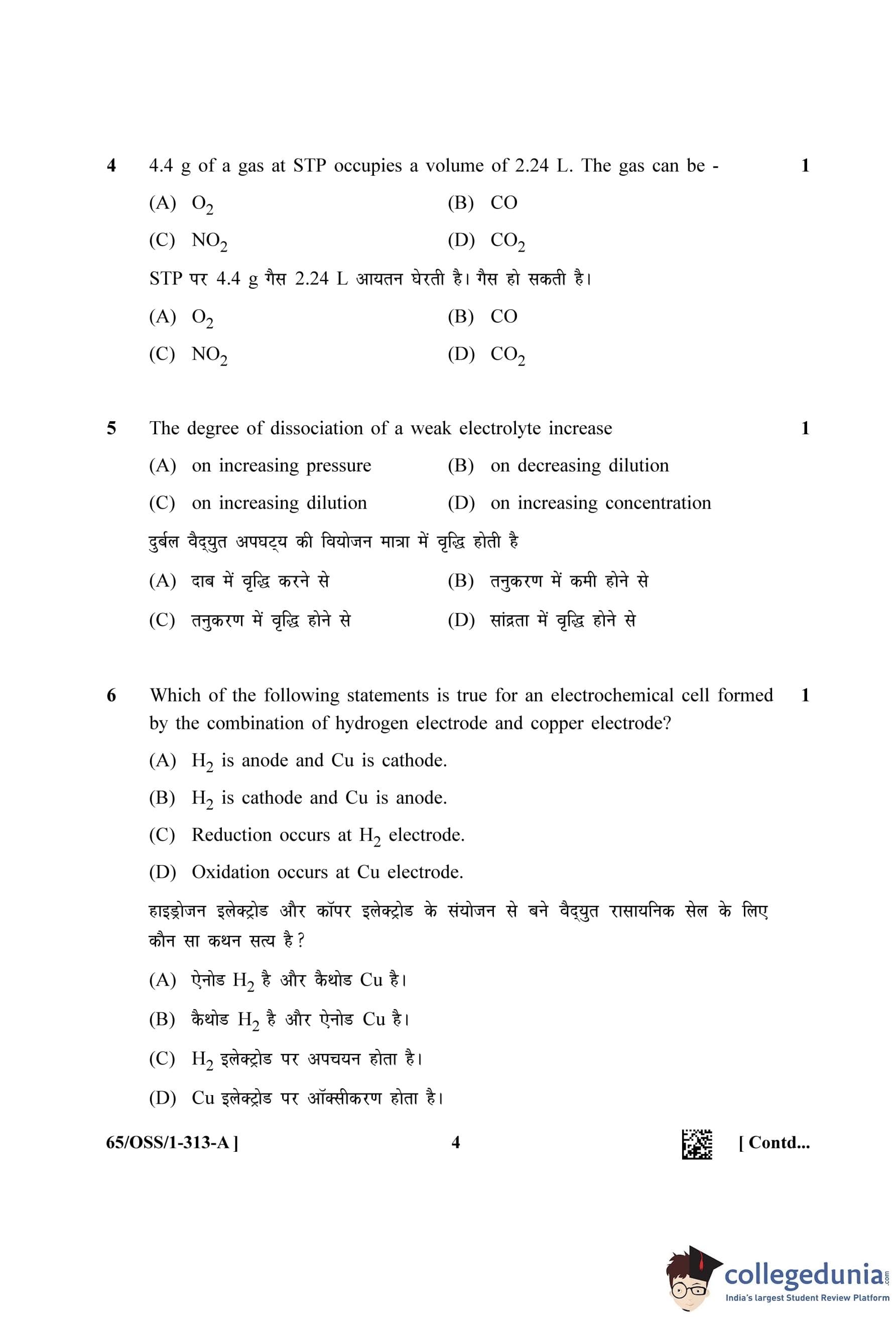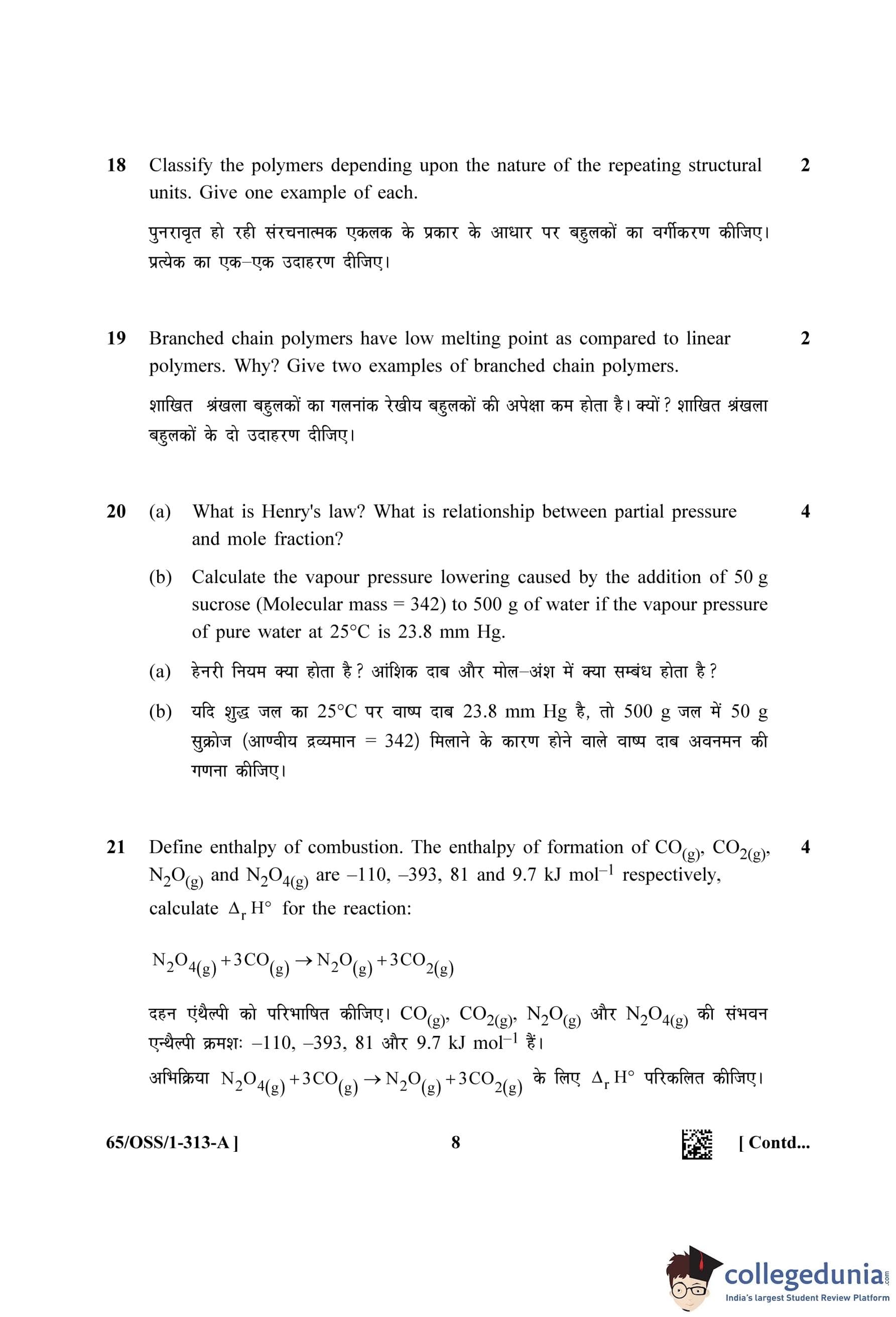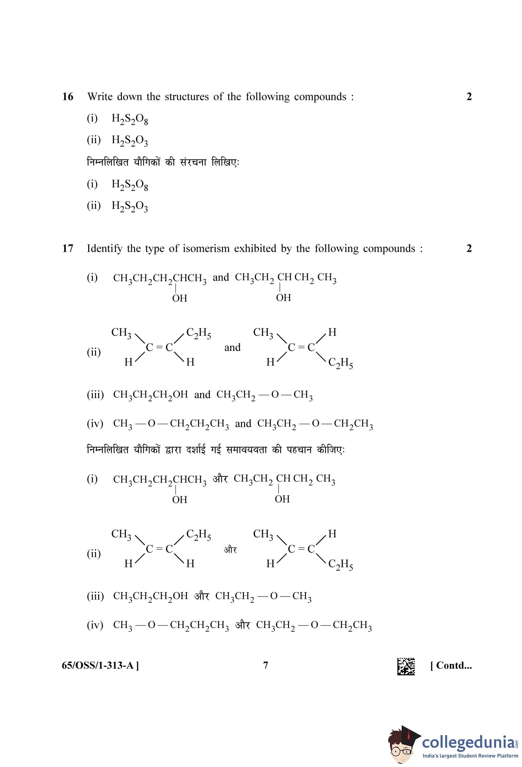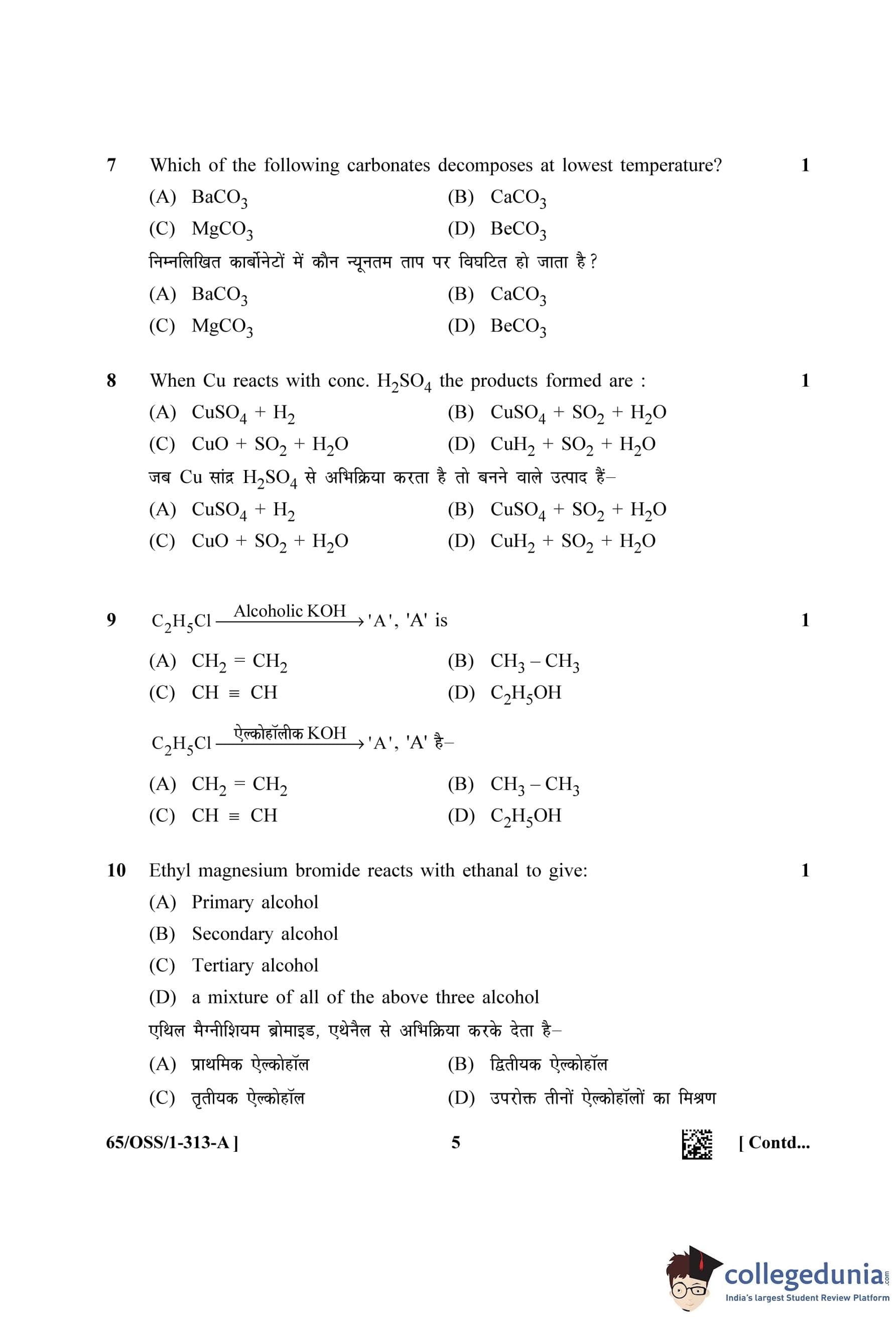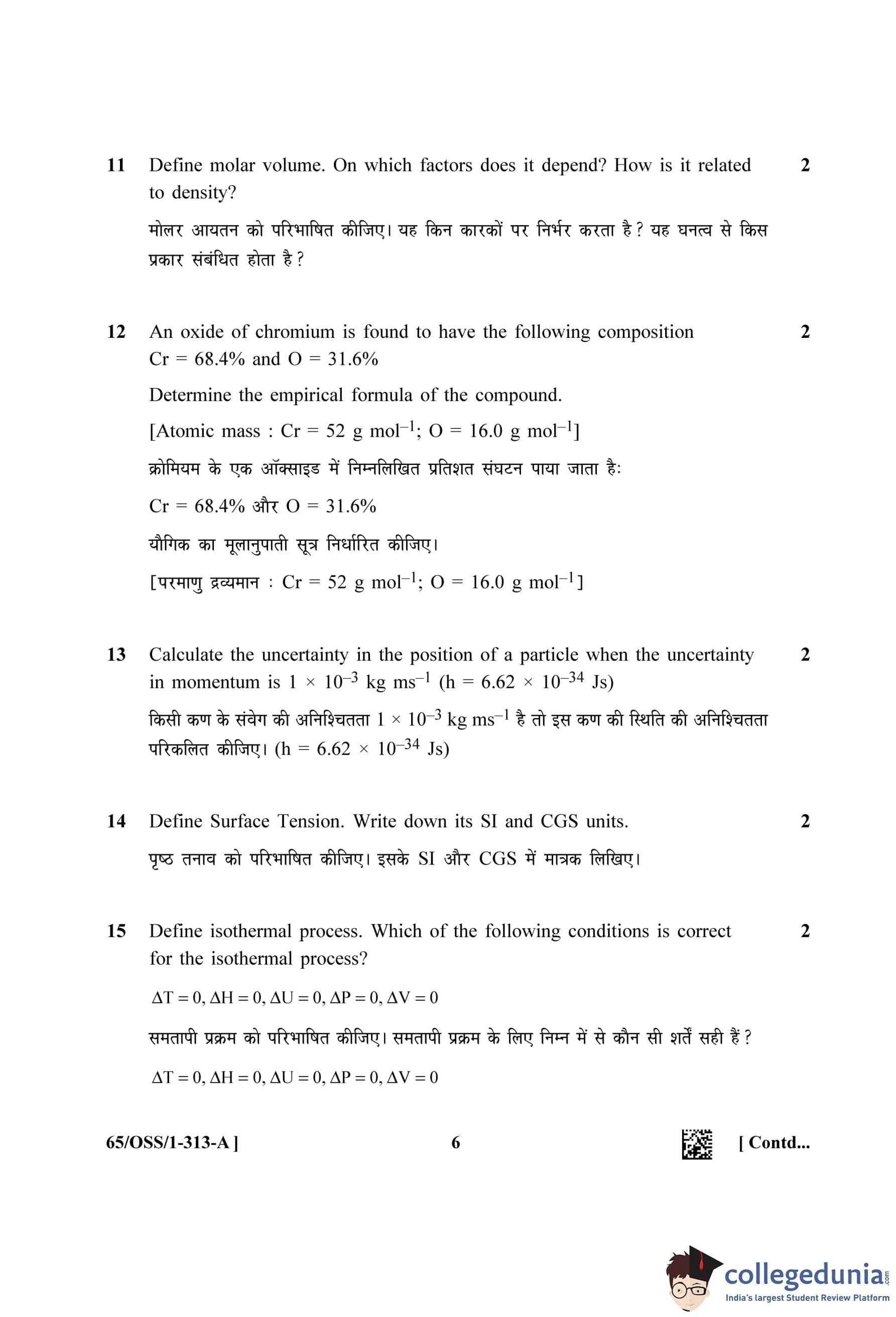 NIOS Class 12 Chemistry Question Paper 2023 with Answer Key (Set A - OSS)