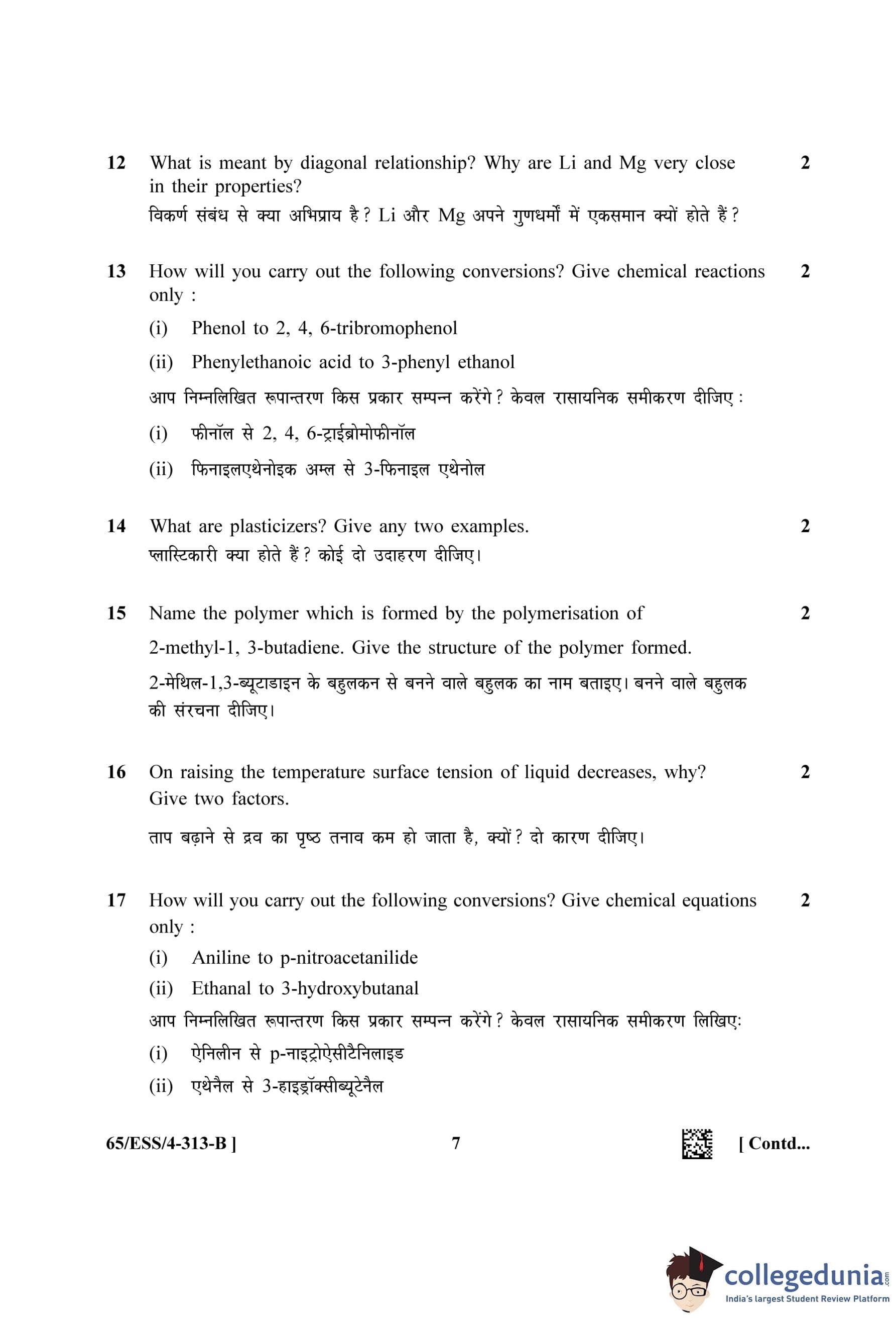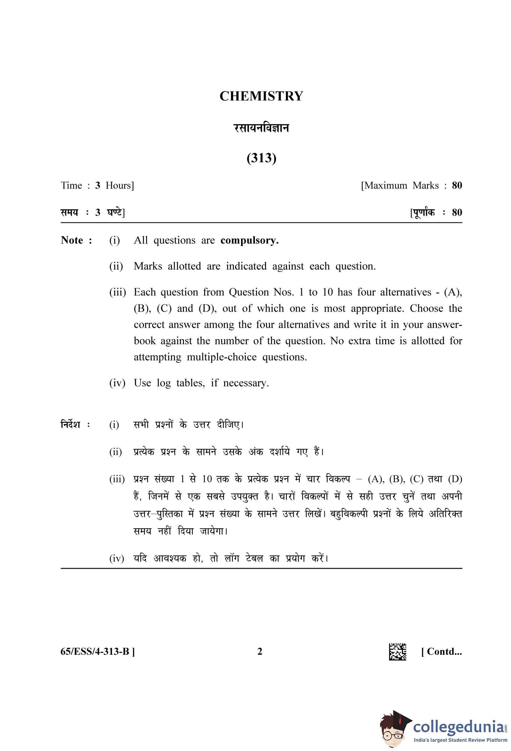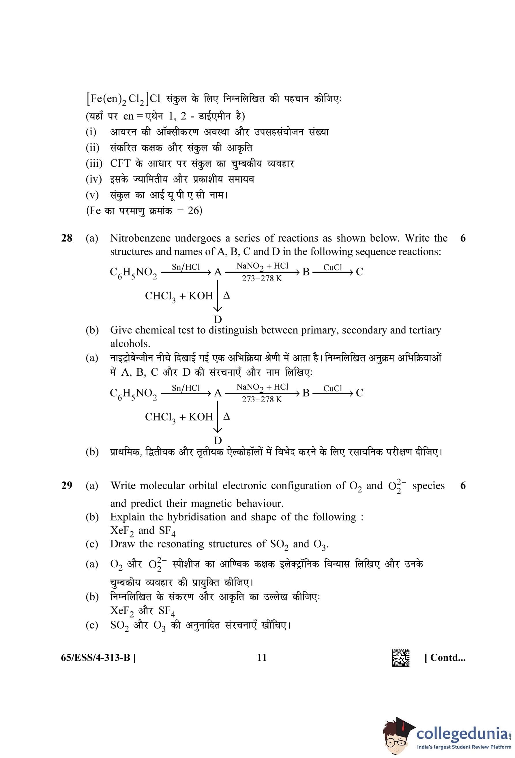 NIOS Class 12 Chemistry Question Paper 2023 with Answer Key (Set B - ESS)