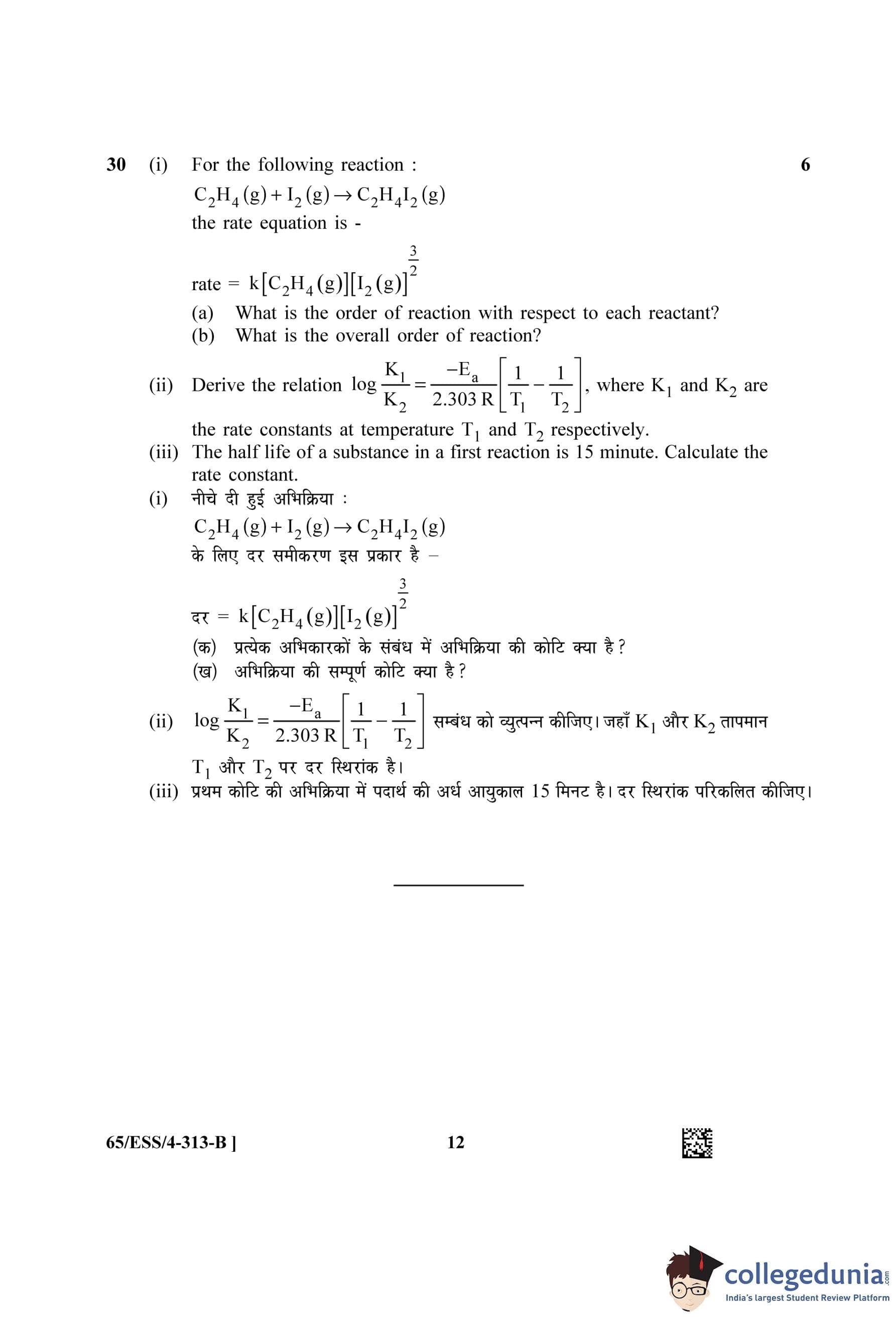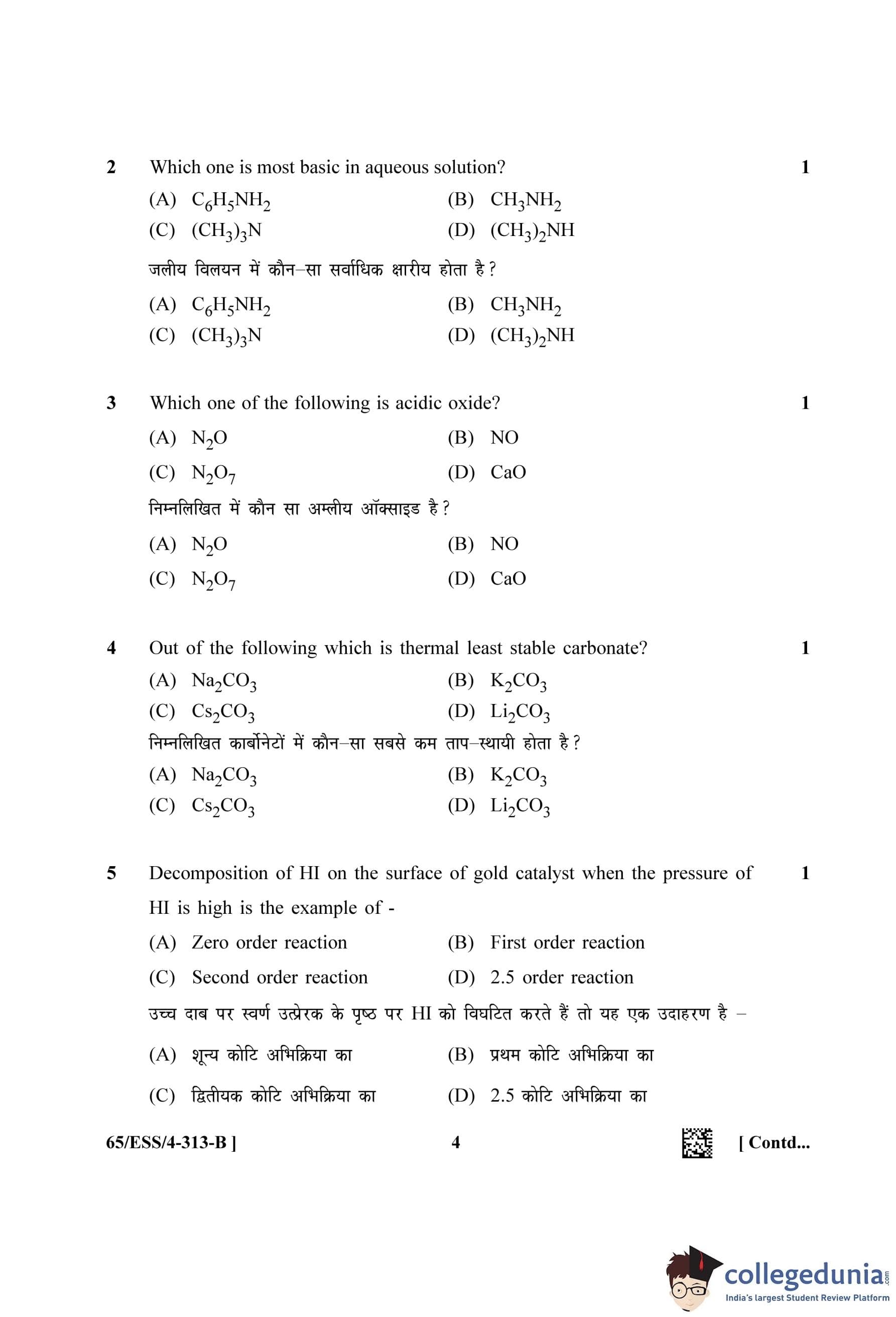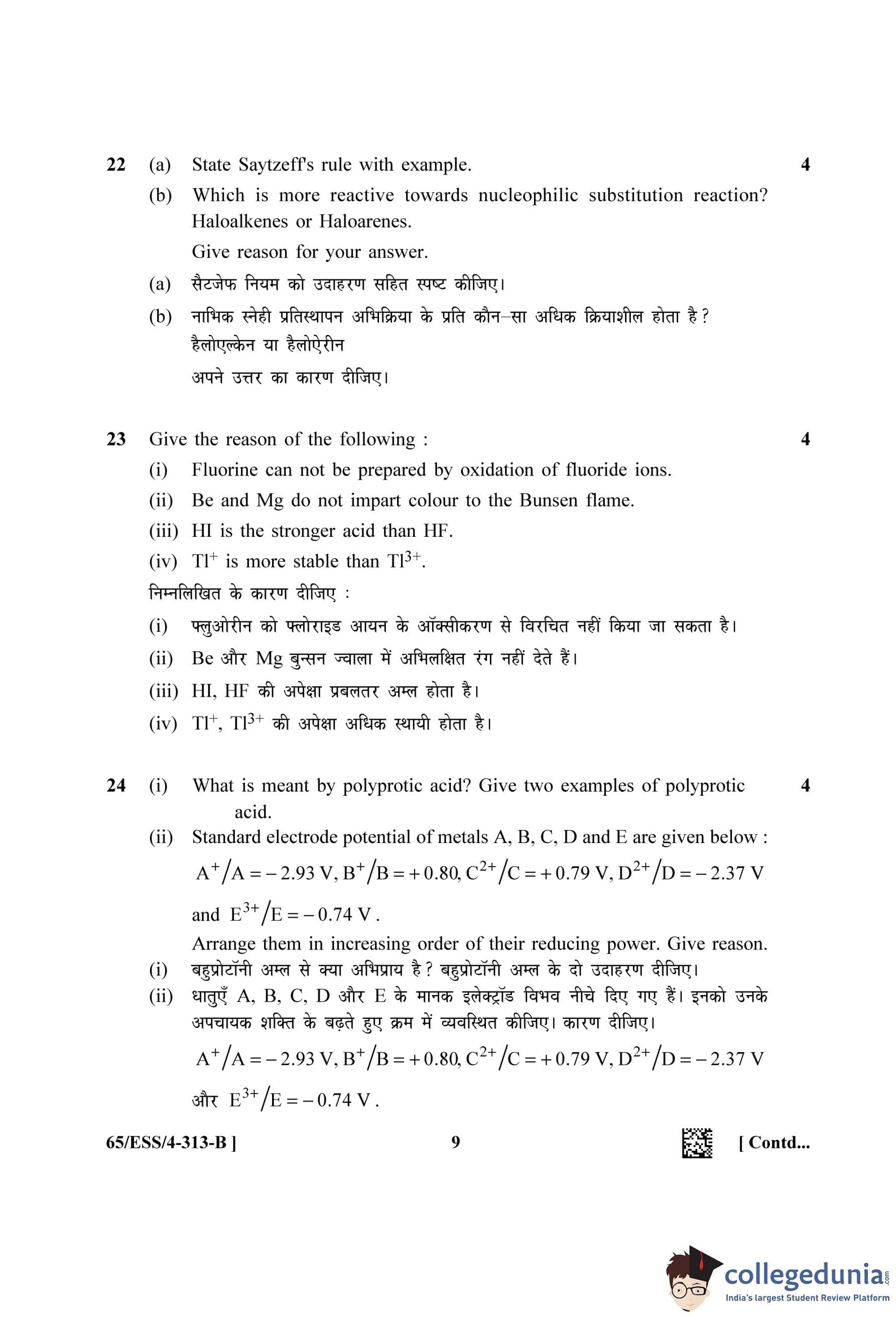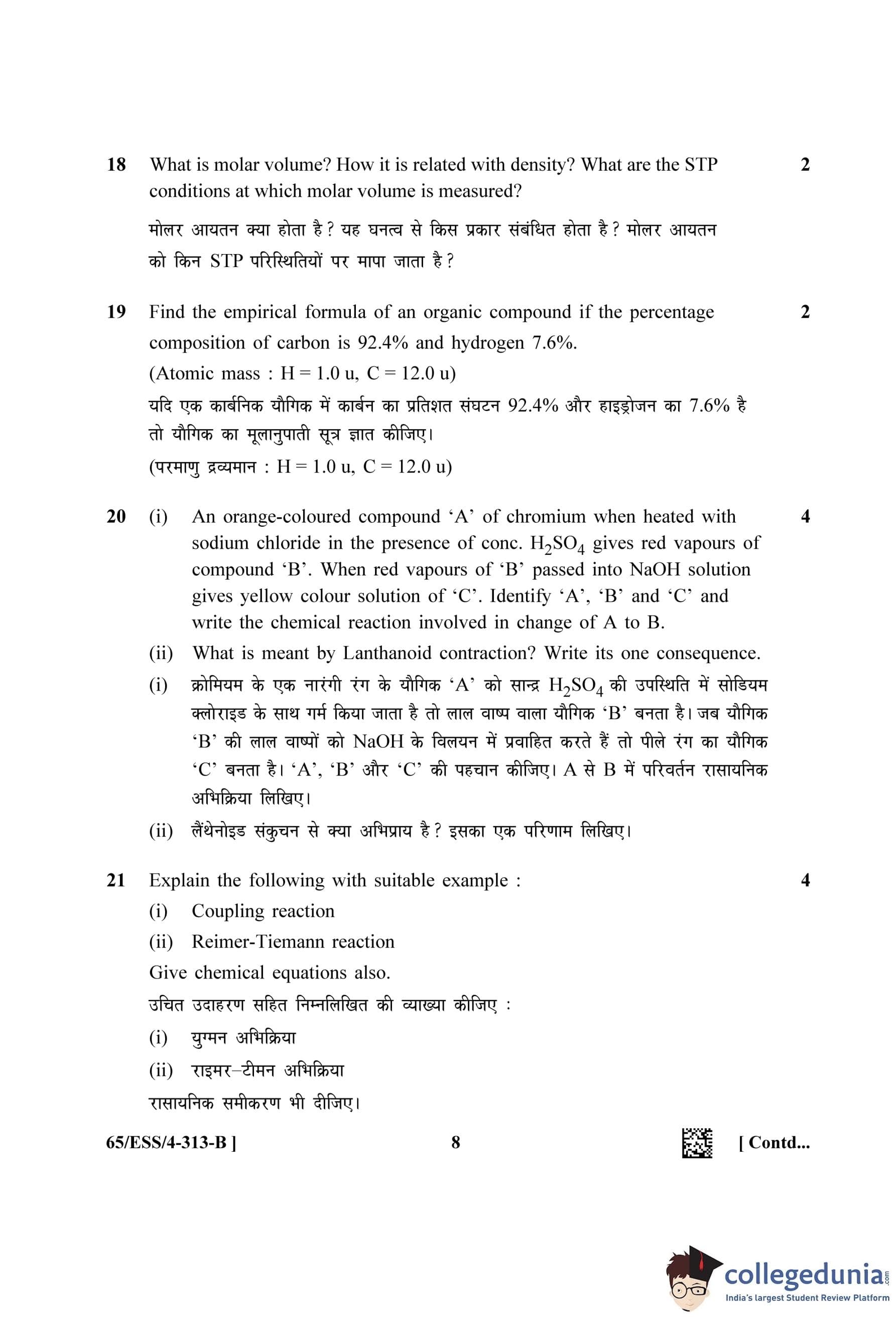 NIOS Class 12 Chemistry Question Paper 2023 with Answer Key (Set B - ESS)