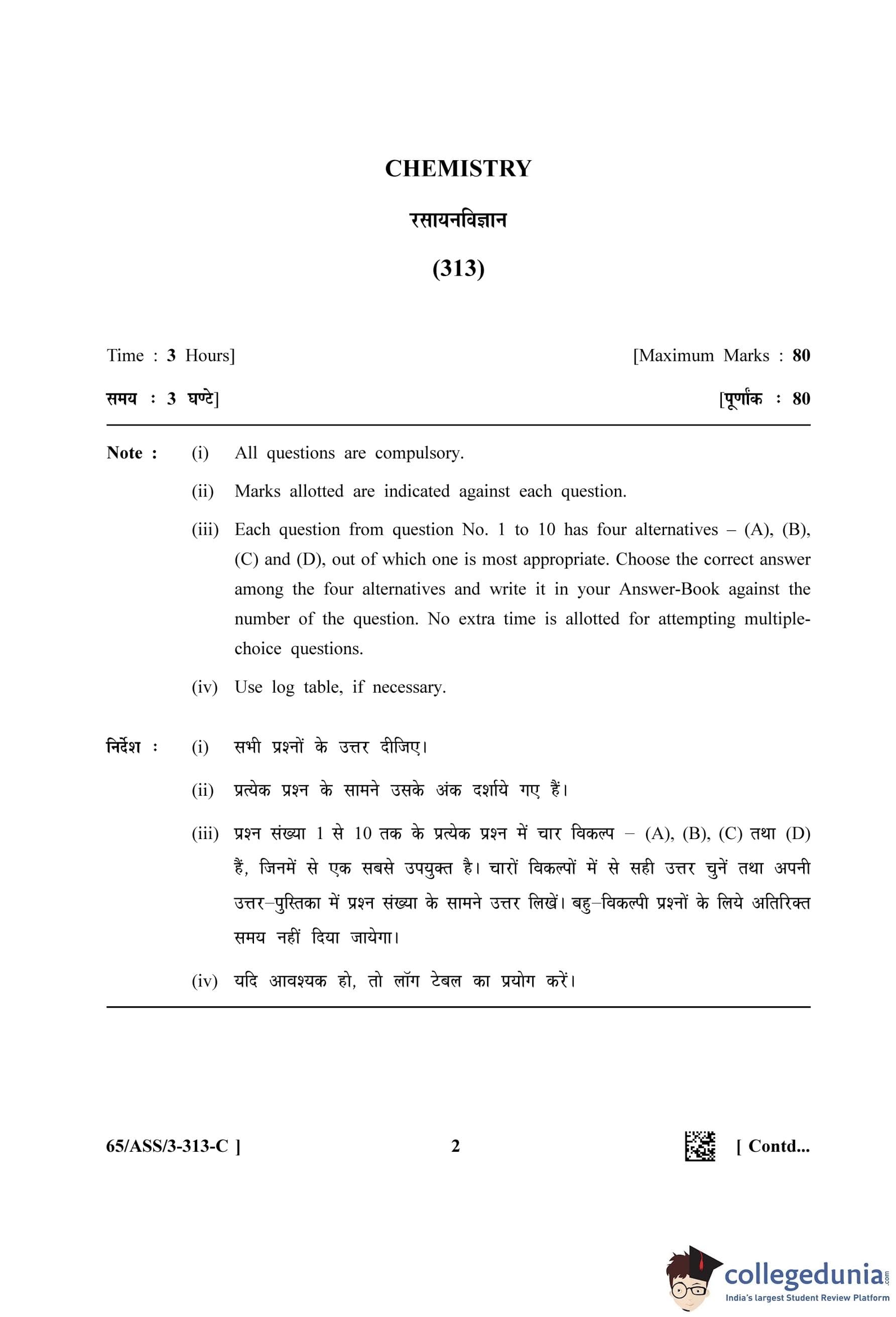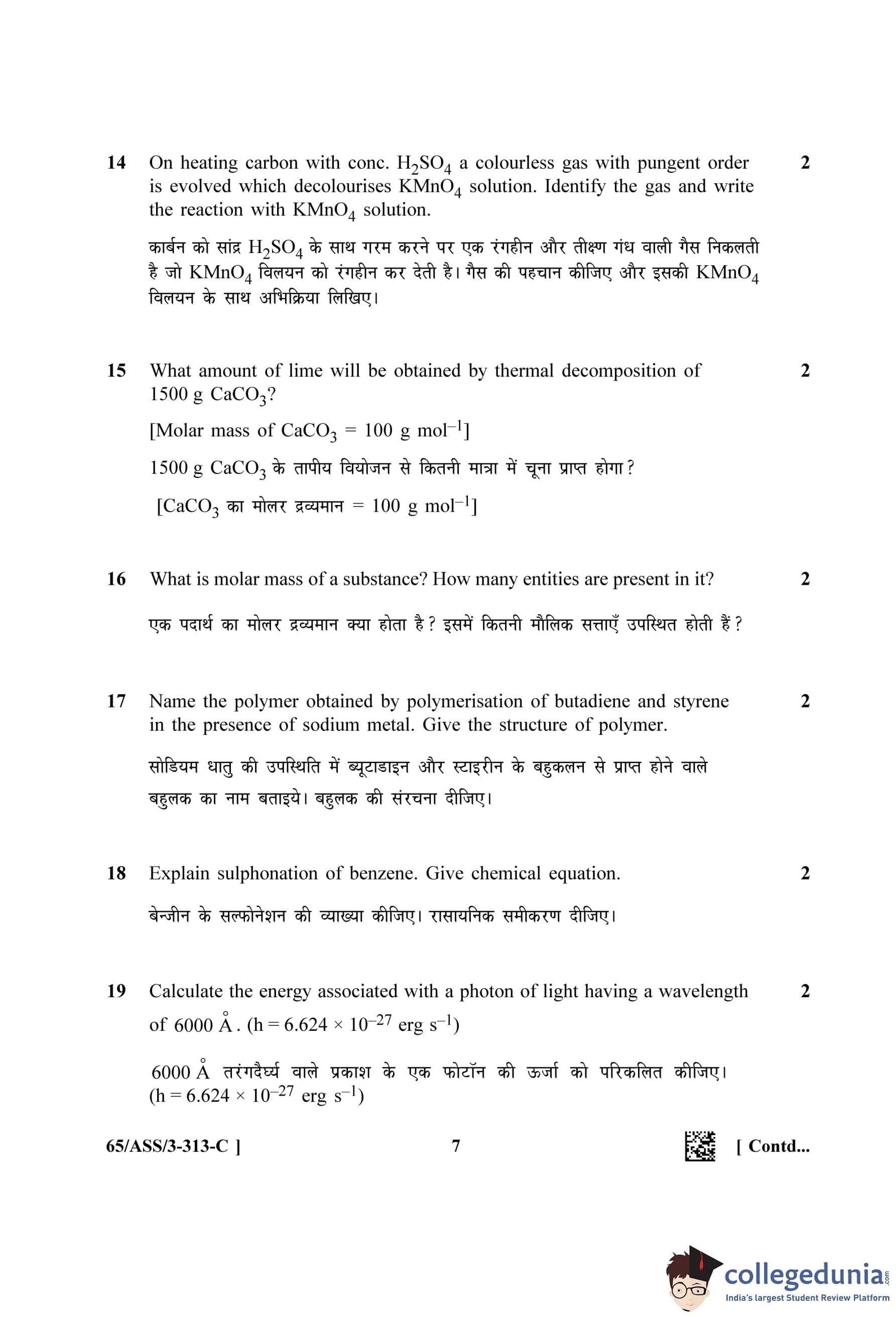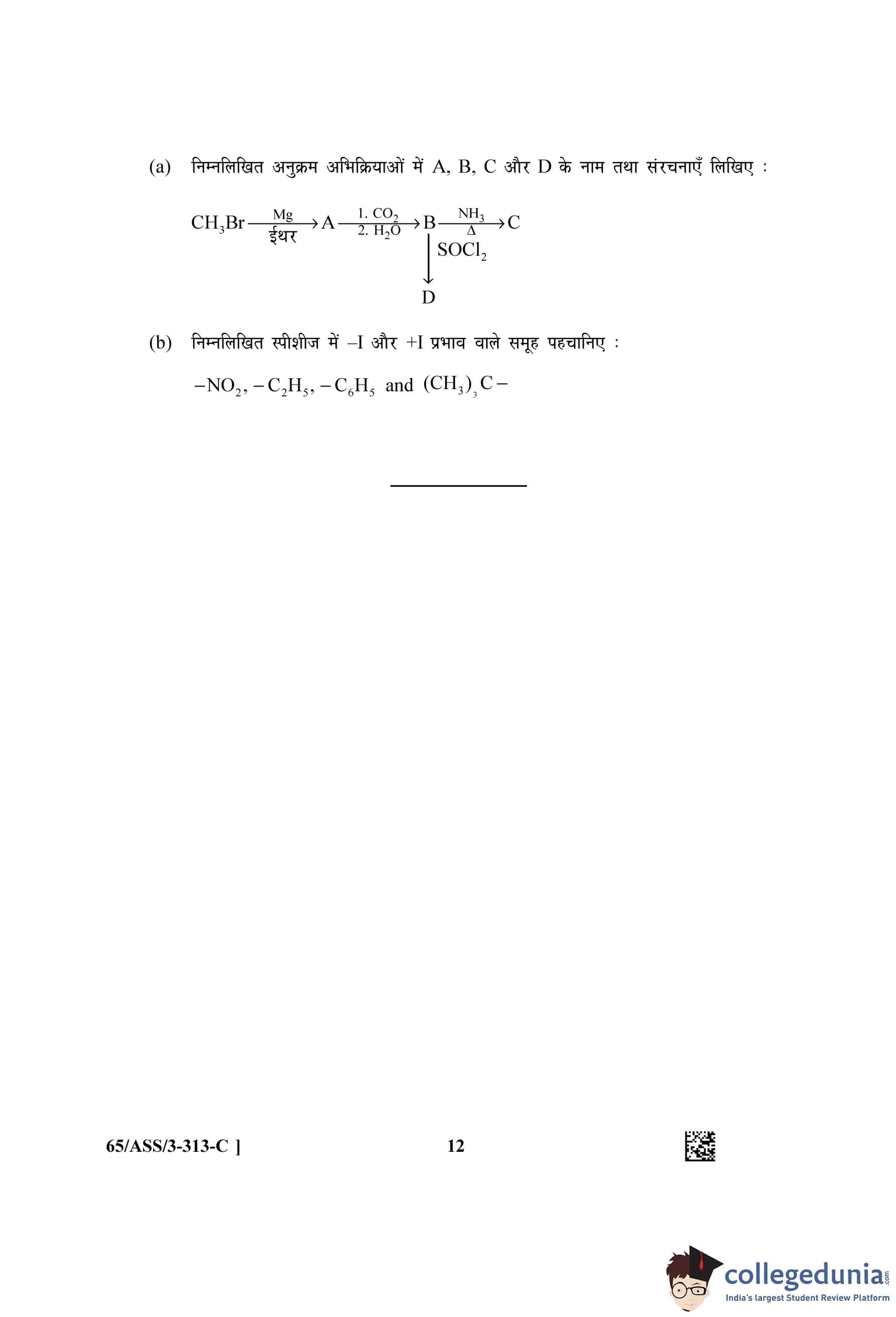 NIOS Class 12 Chemistry Question Paper 2023 with Answer Key (Set C - ASS)