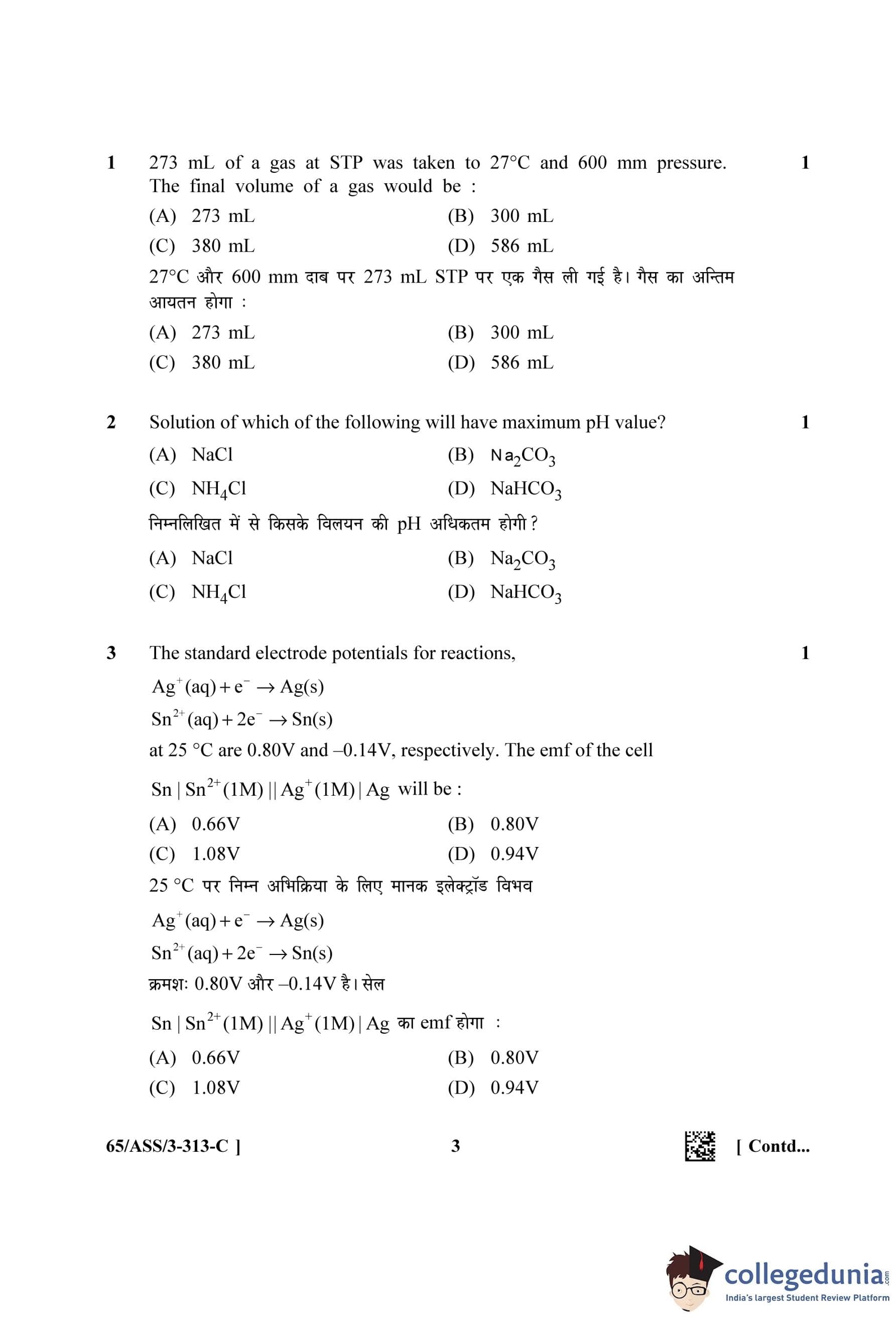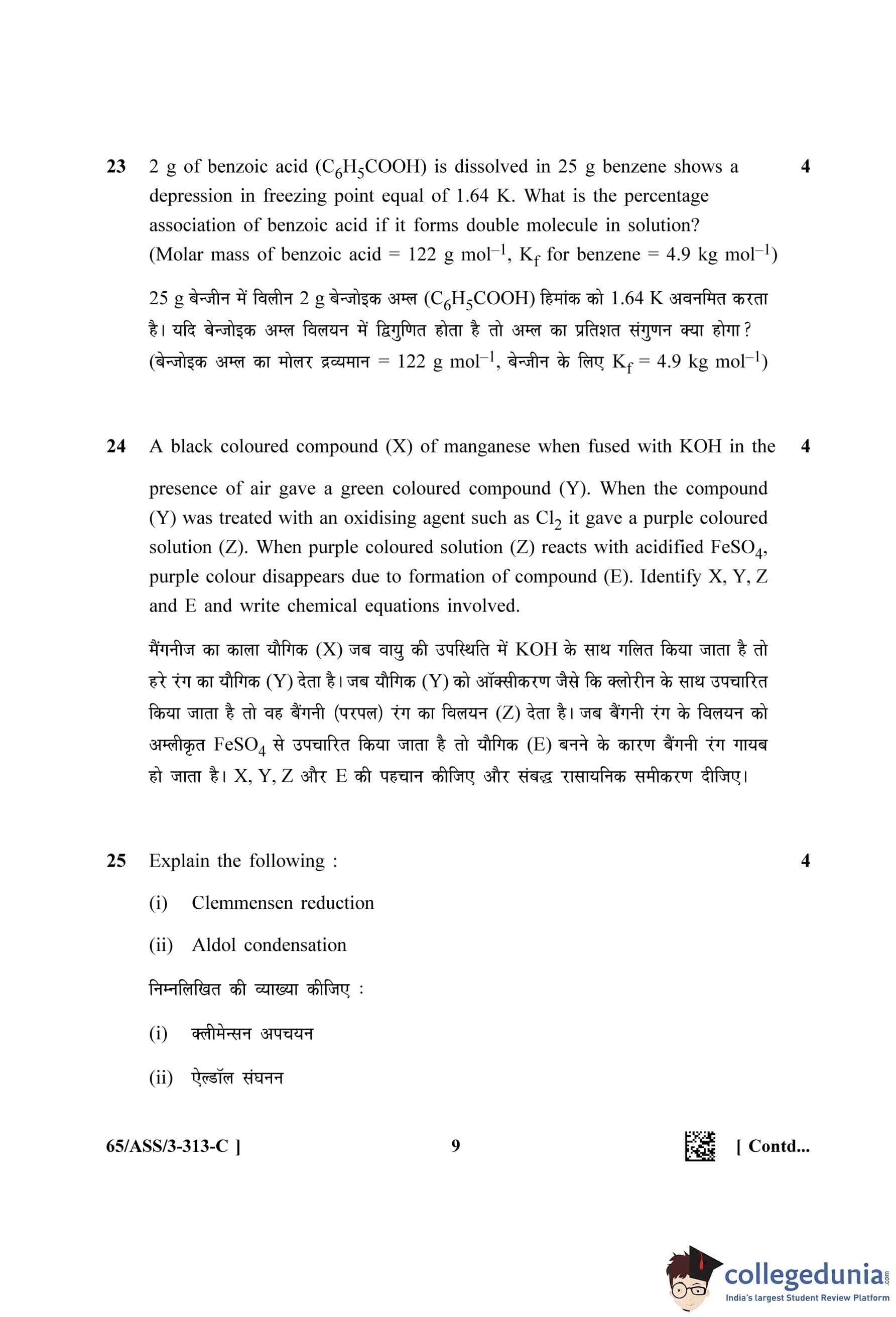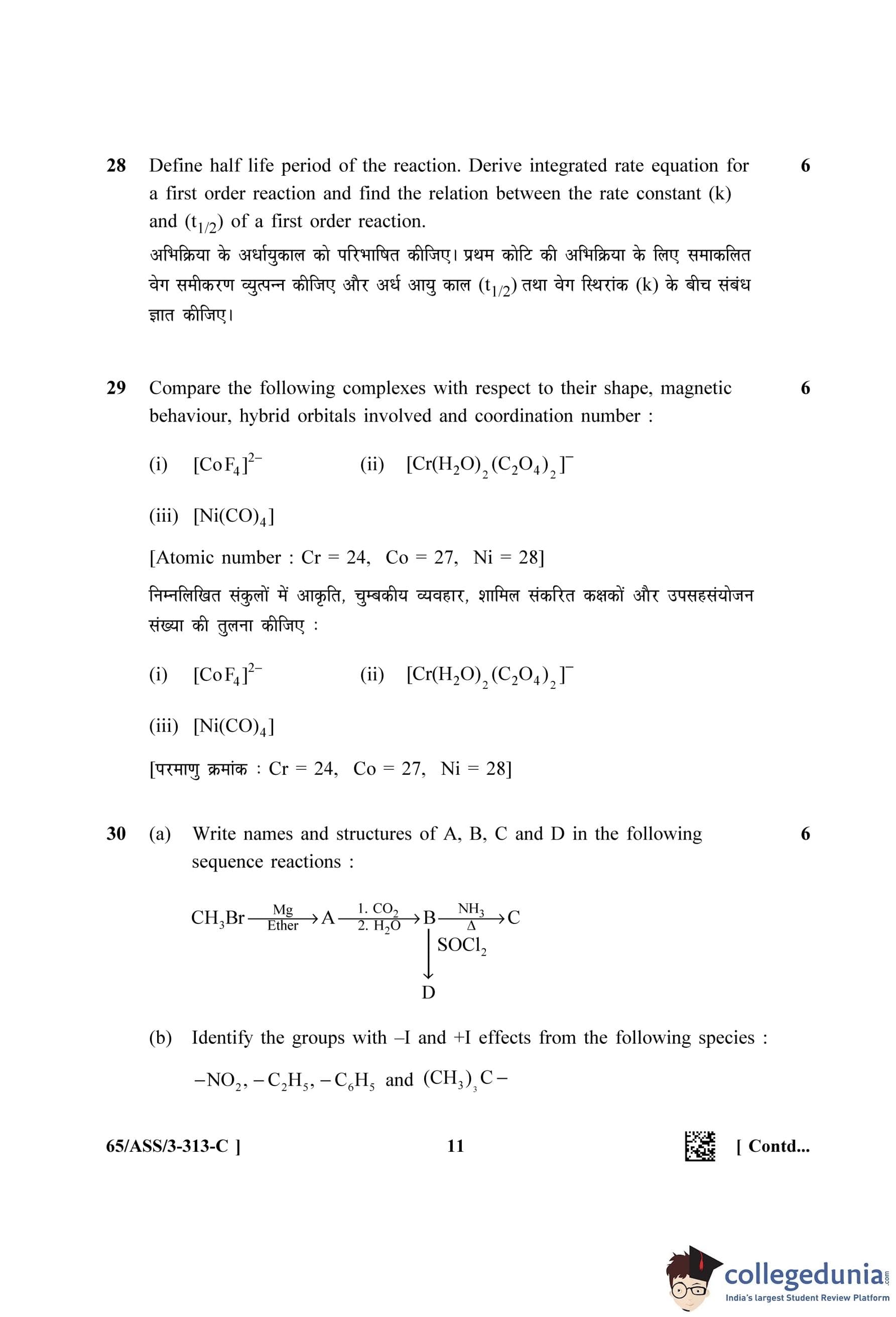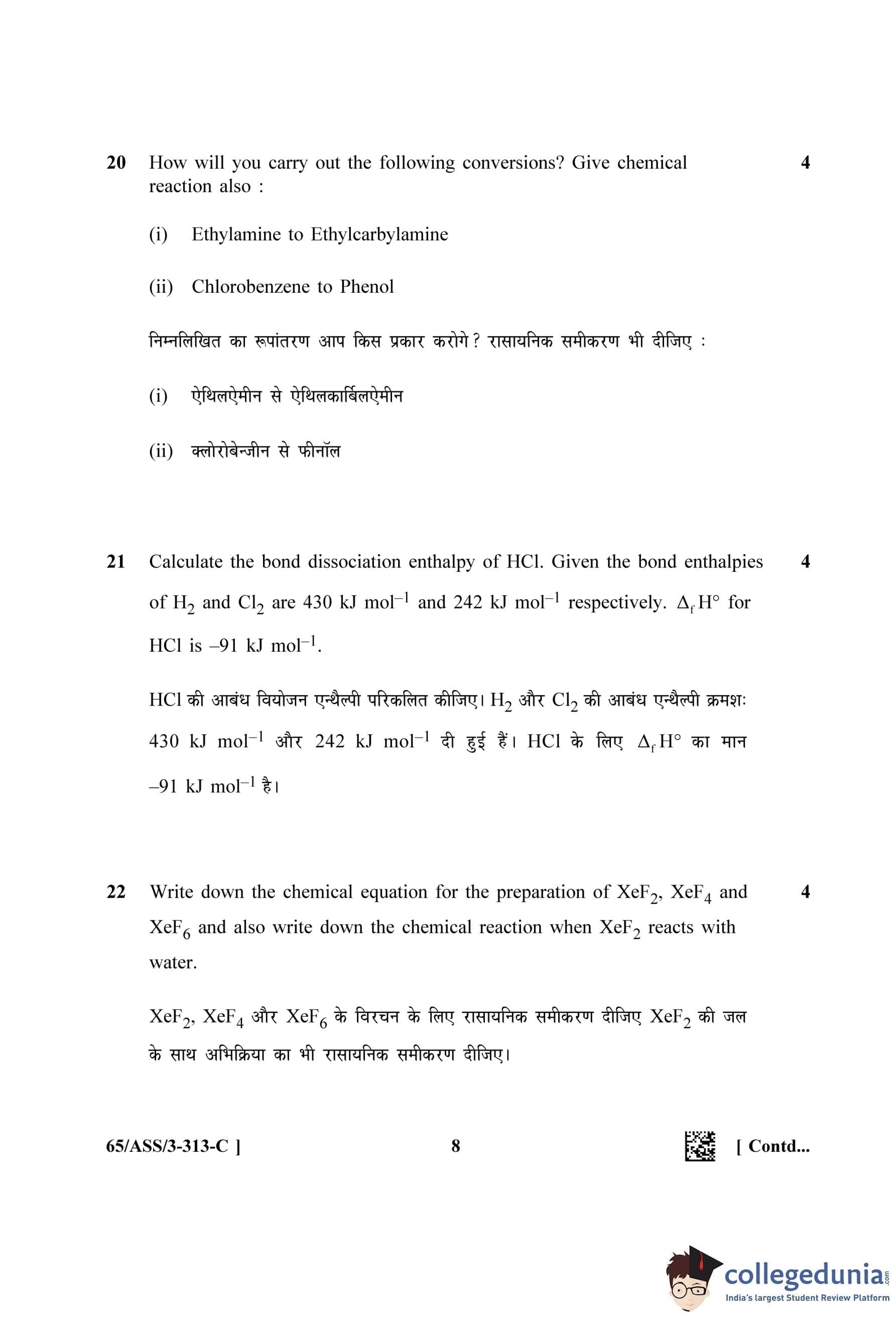 NIOS Class 12 Chemistry Question Paper 2023 with Answer Key (Set C - ASS)
