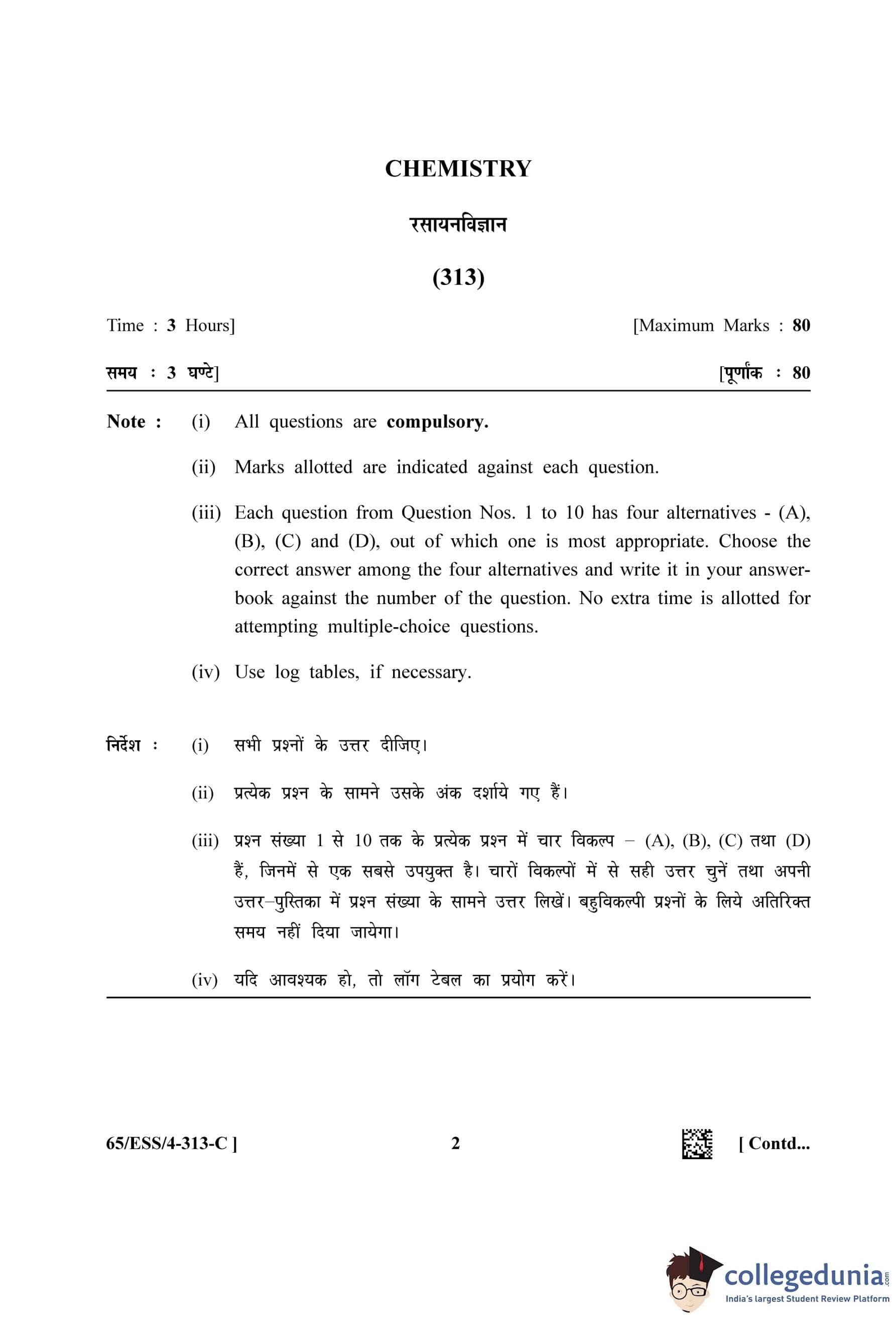 NIOS Class 12 Chemistry Question Paper 2023 with Answer Key (Set C - ESS)