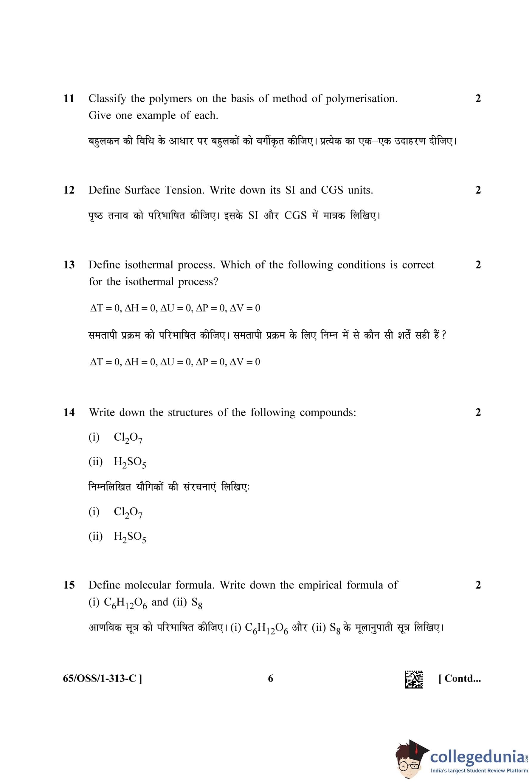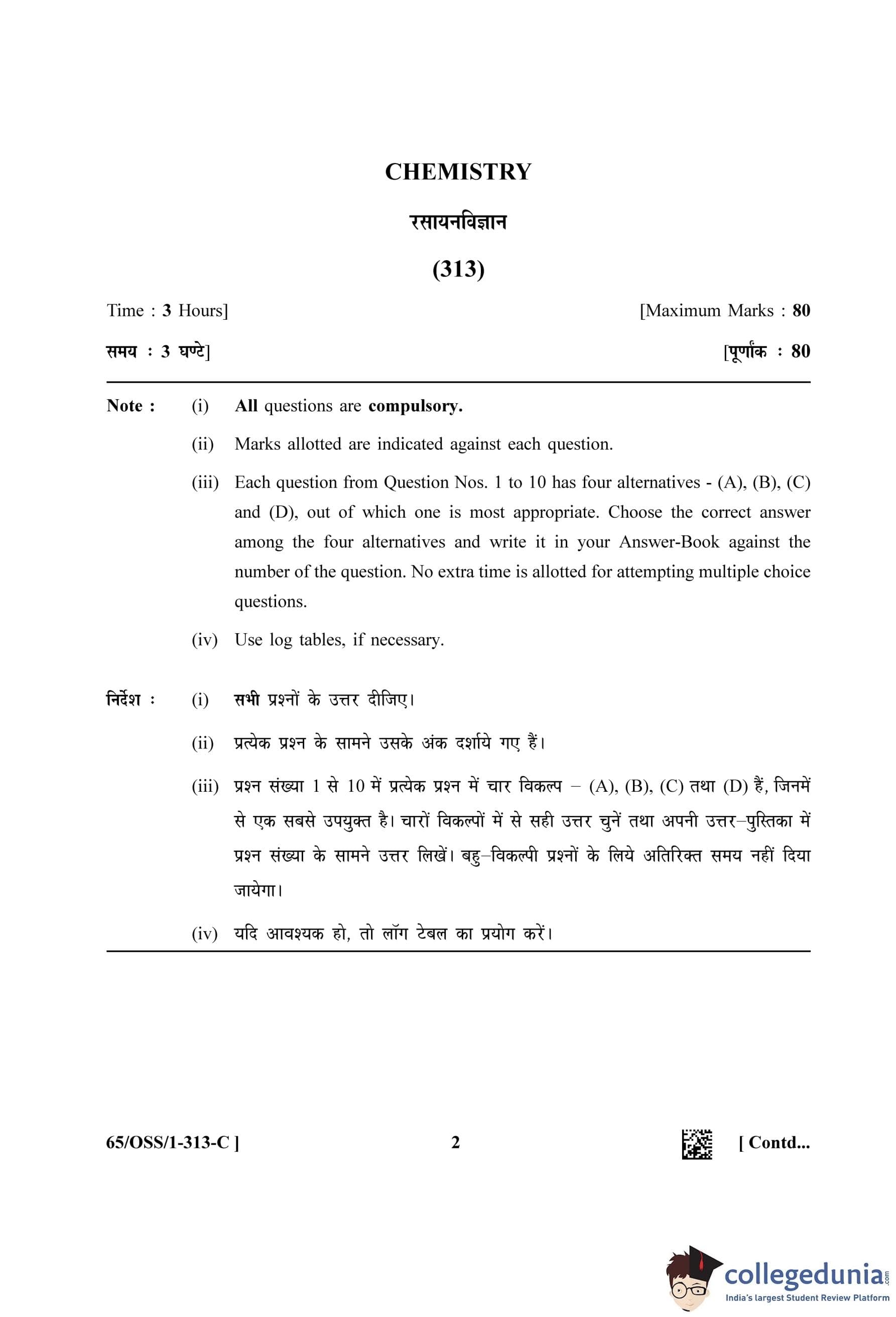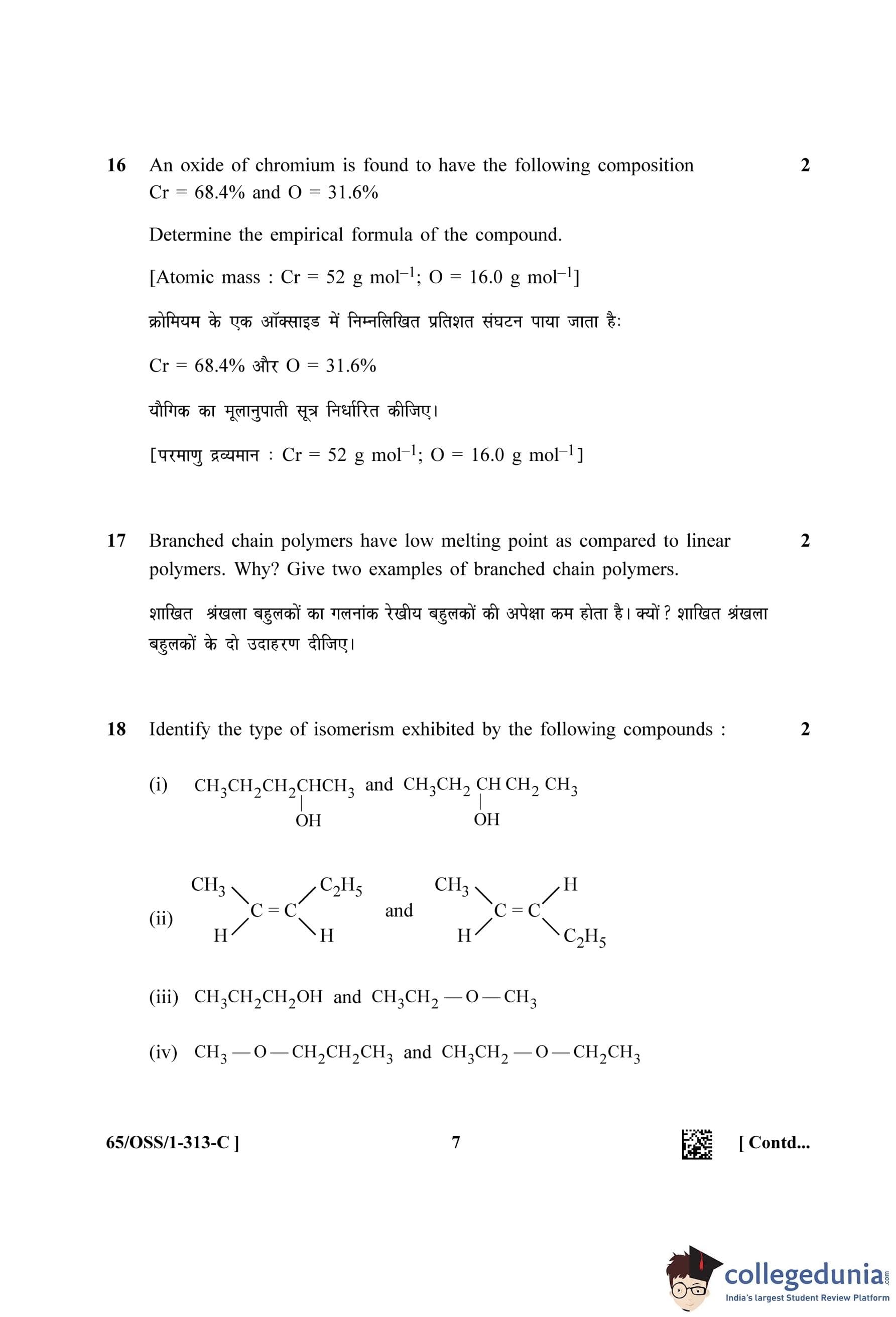 NIOS Class 12 Chemistry Question Paper 2023 with Answer Key (Set C - OSS)