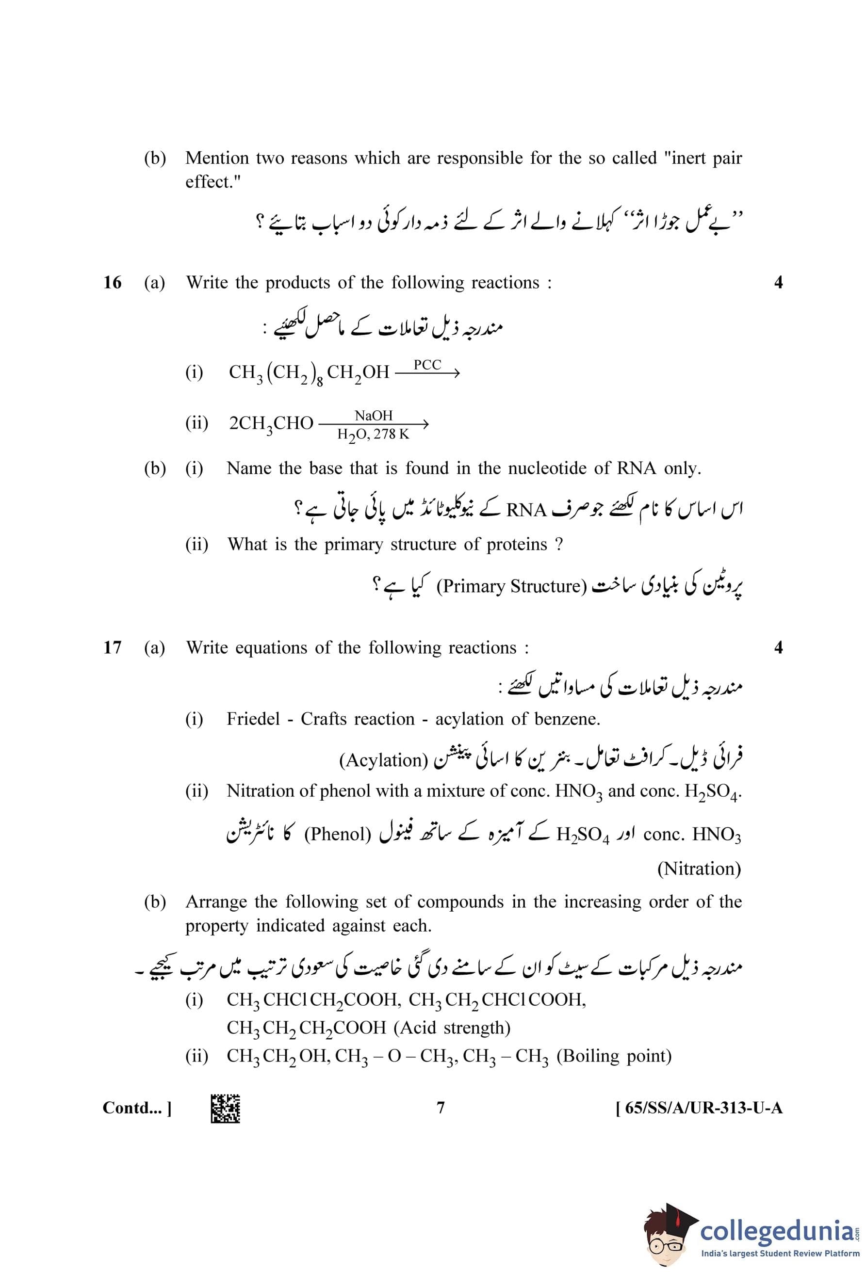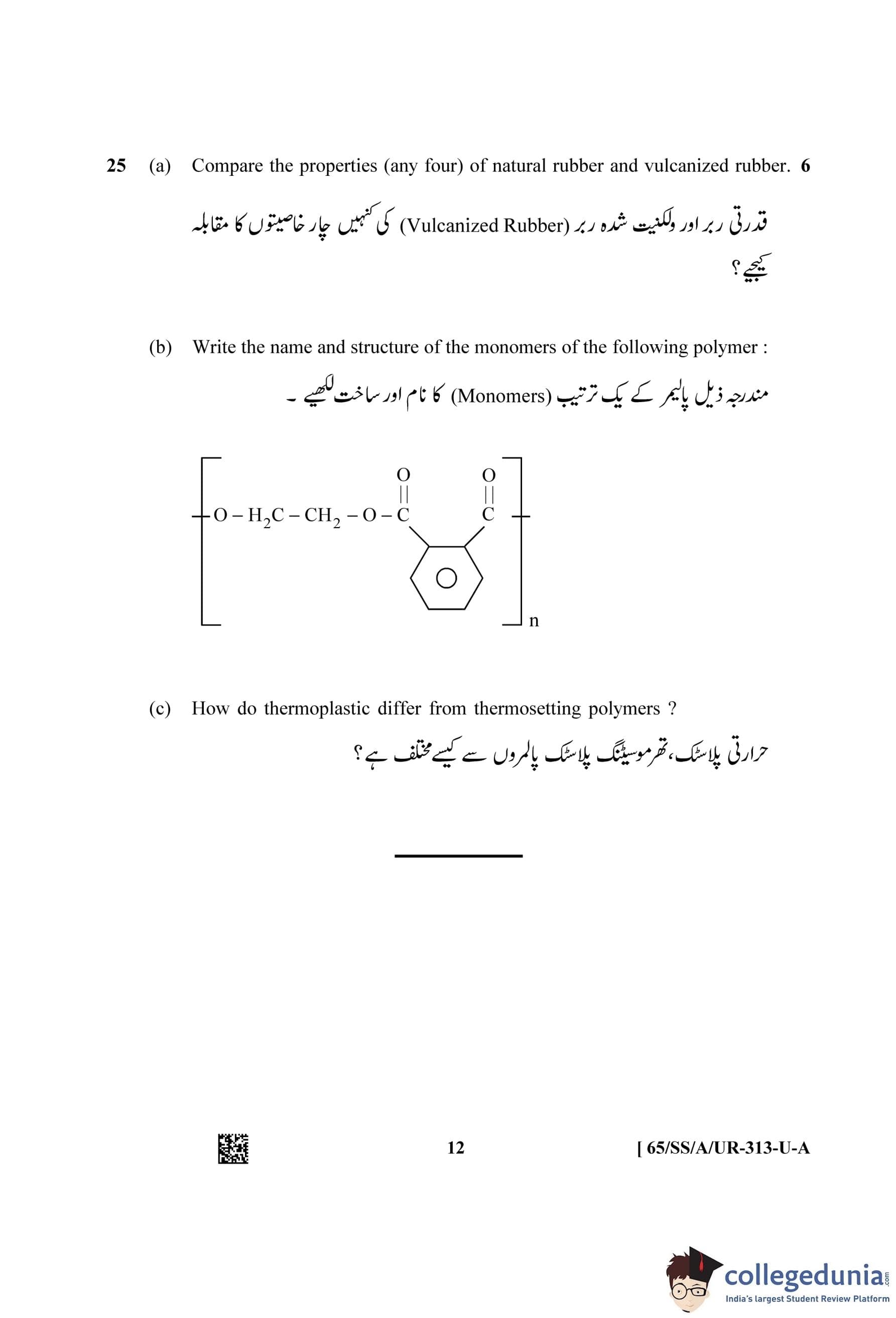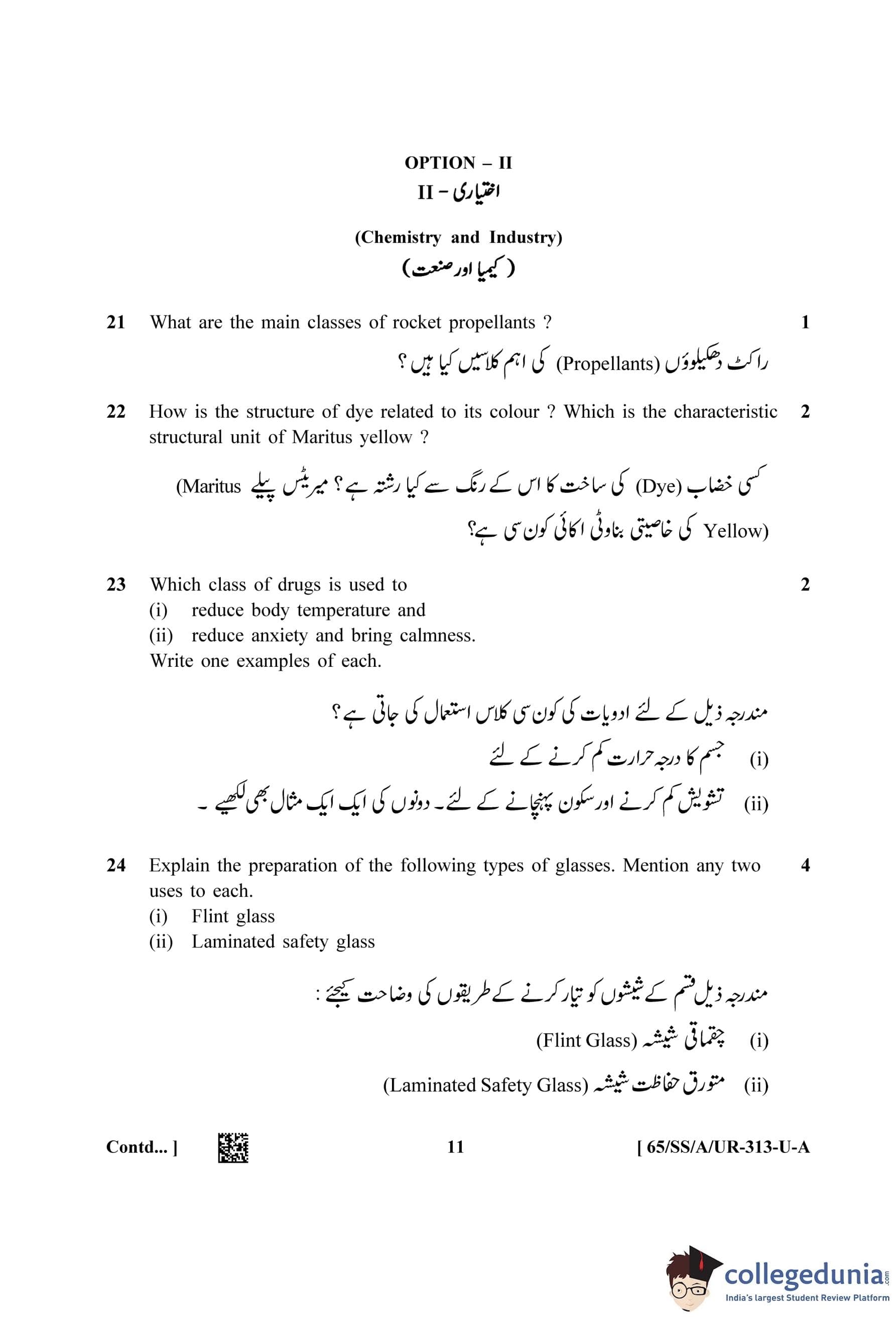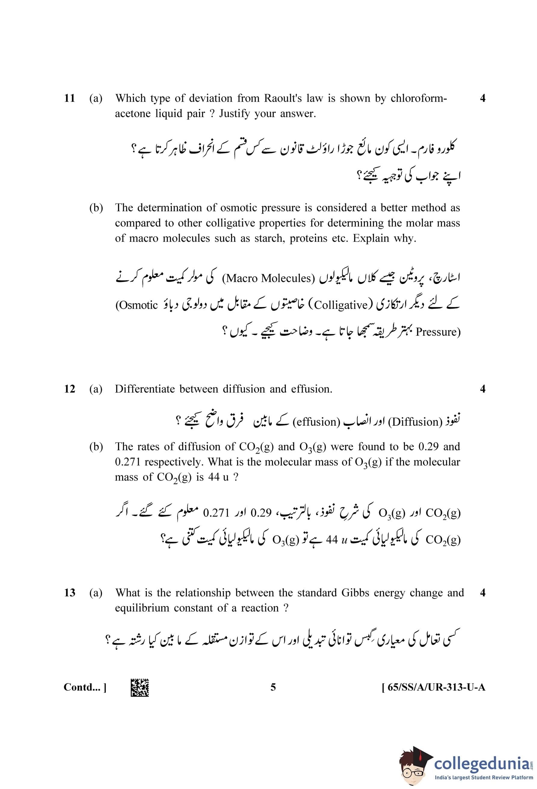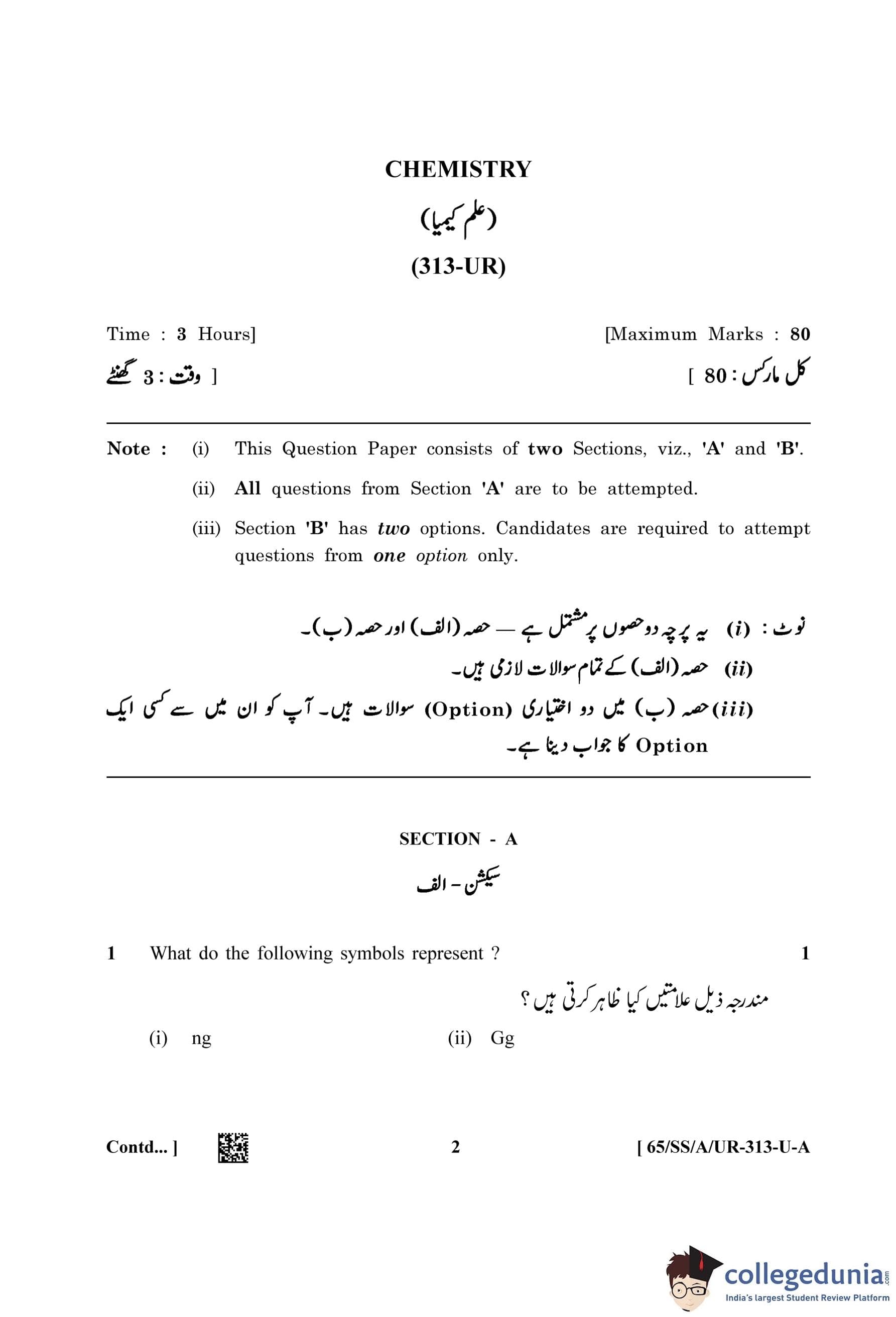 NIOS Class 12 Chemistry Urdu (Set A) Question Paper 2023 with Answer Key