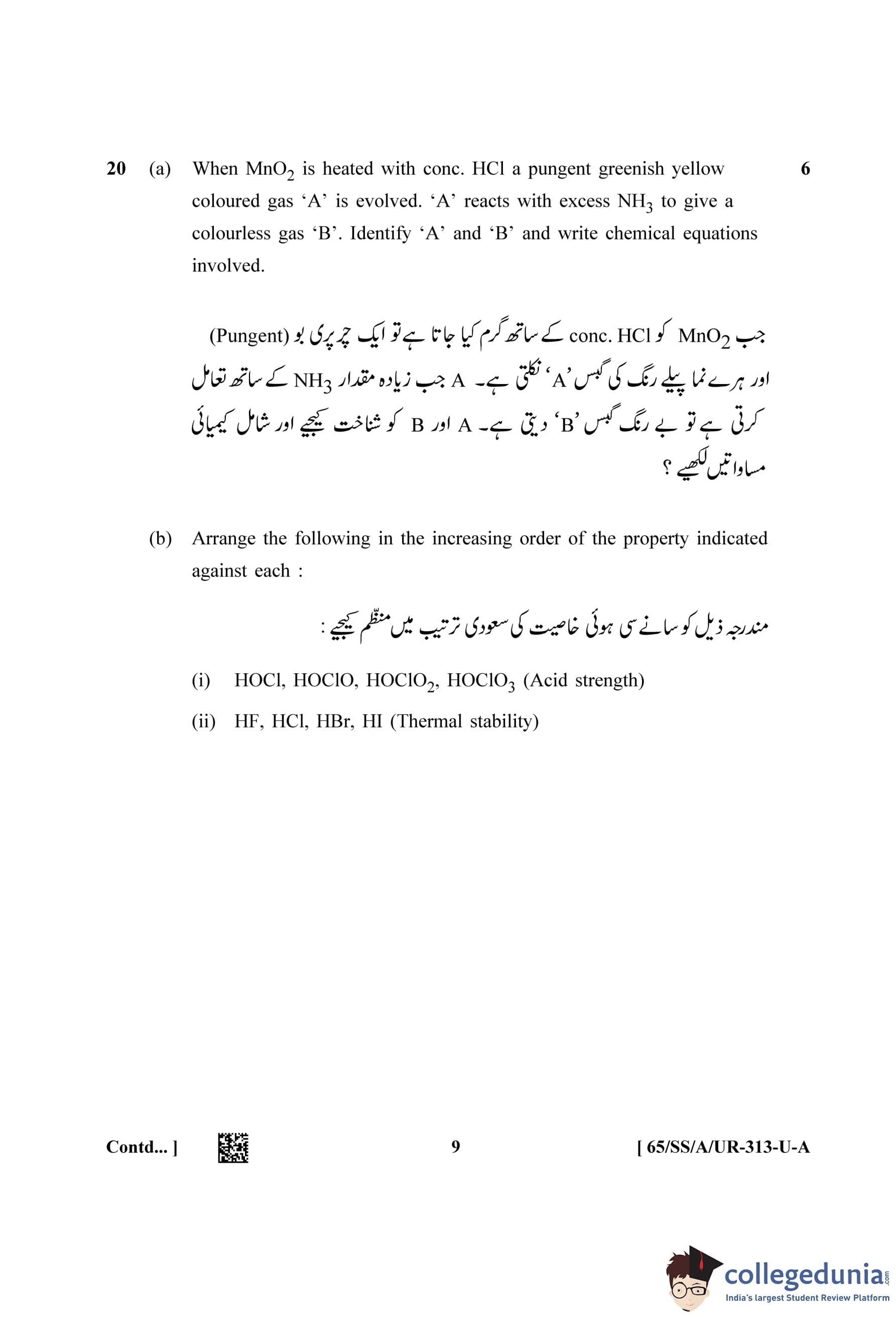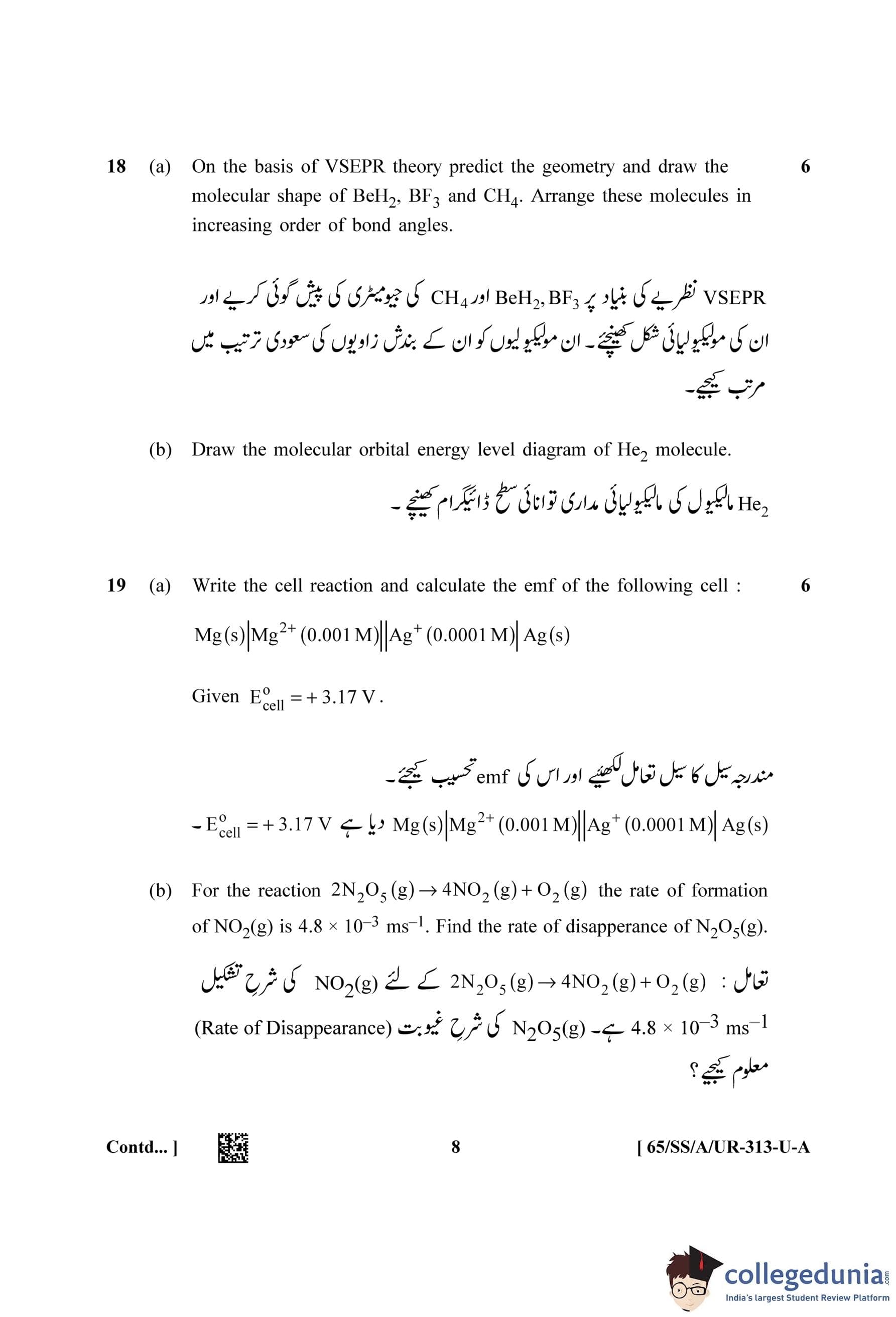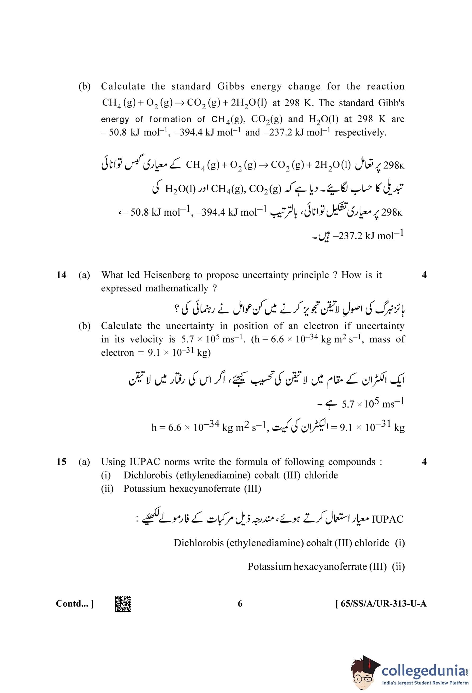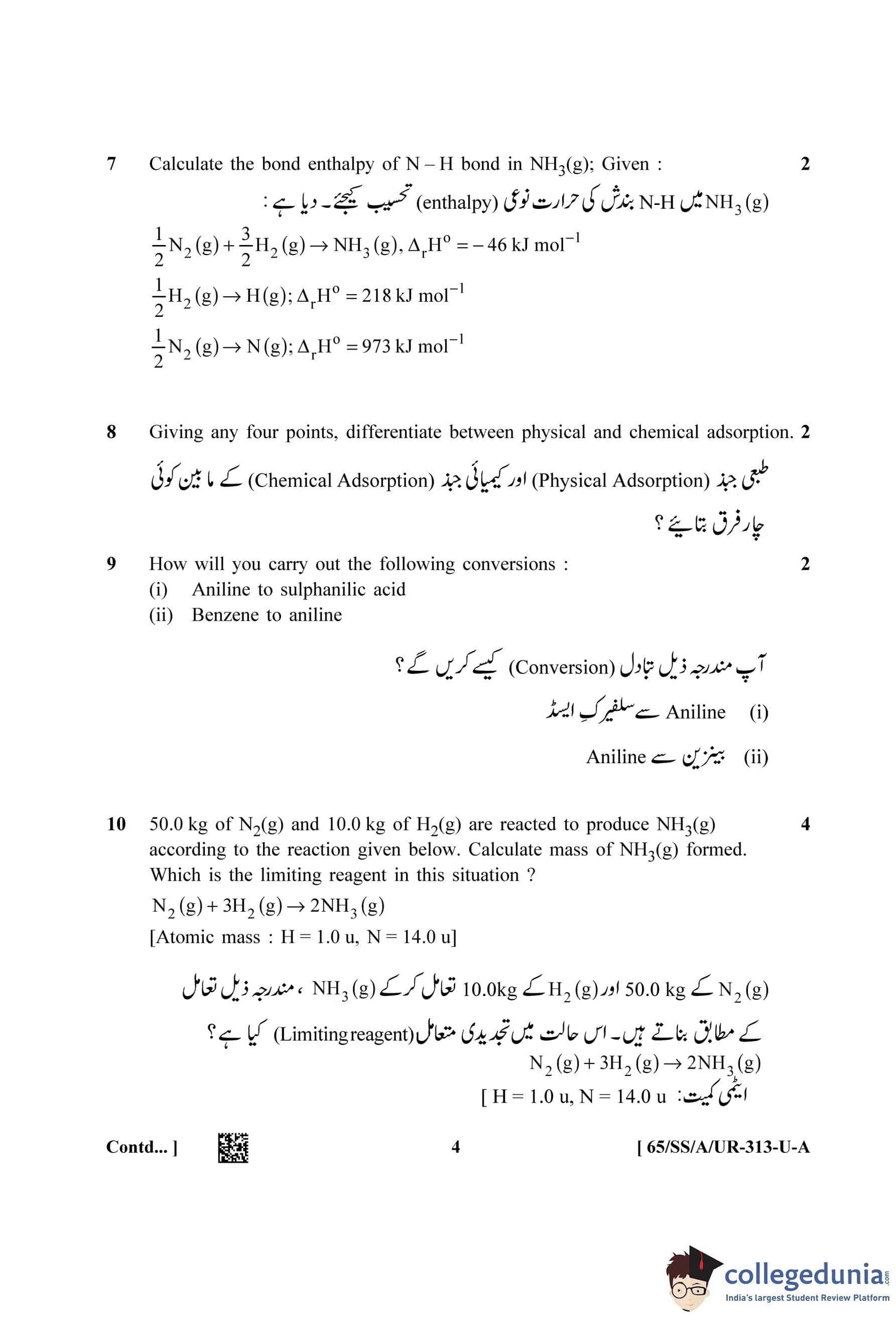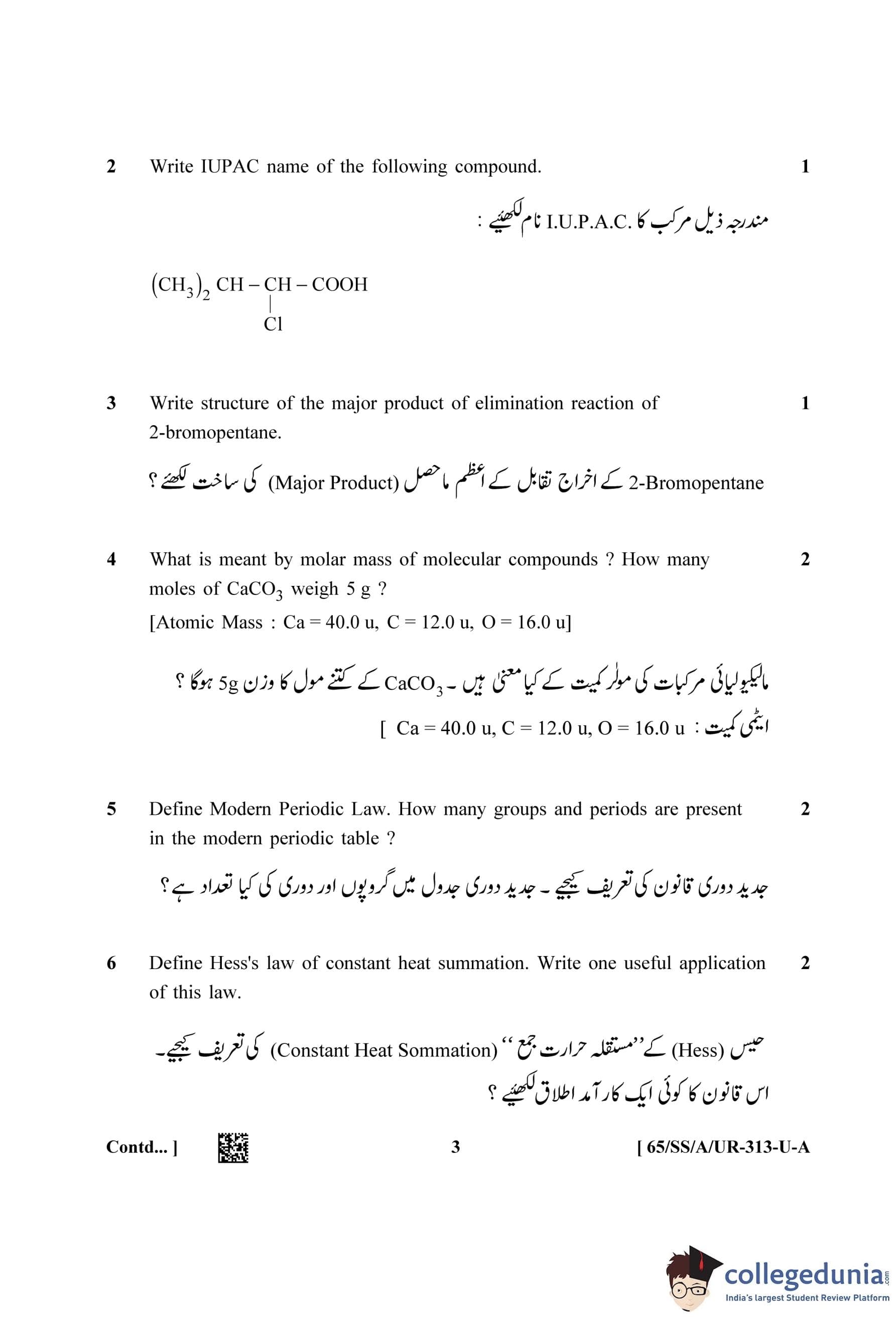 NIOS Class 12 Chemistry Urdu (Set A) Question Paper 2023 with Answer Key