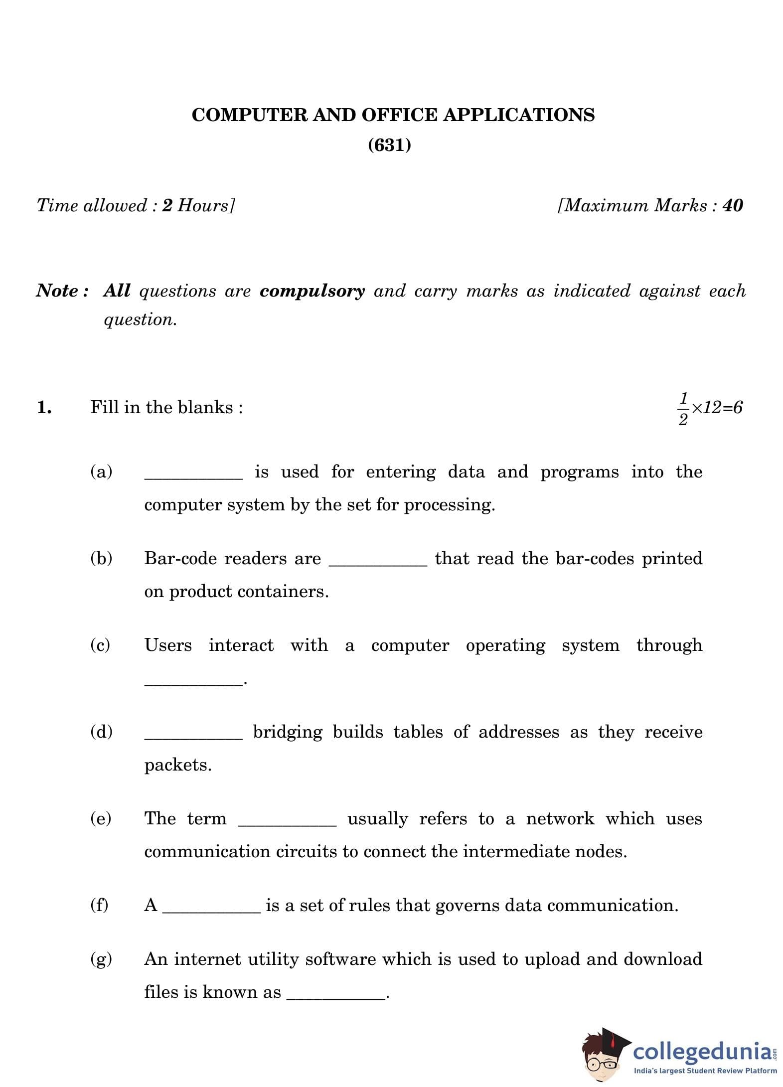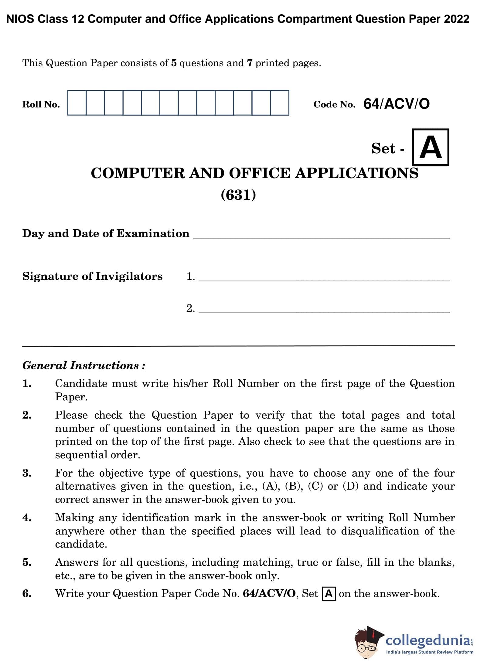 | NIOS Class 12 Computer and Office Applications Question Paper 2022 PDF | NIOS Class 12 Computer and Office Applications Answer Key 2022 PDF |