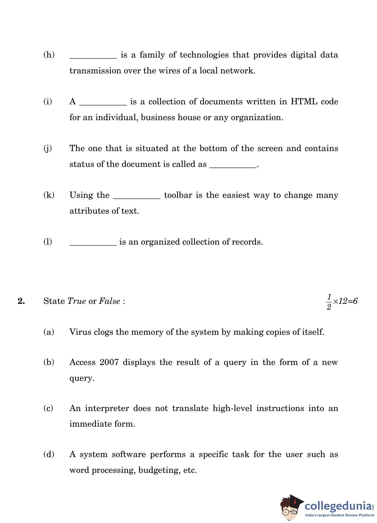 NIOS Class 12 Computer and Office Applications Compartment Question Paper 2022 with Answer Key