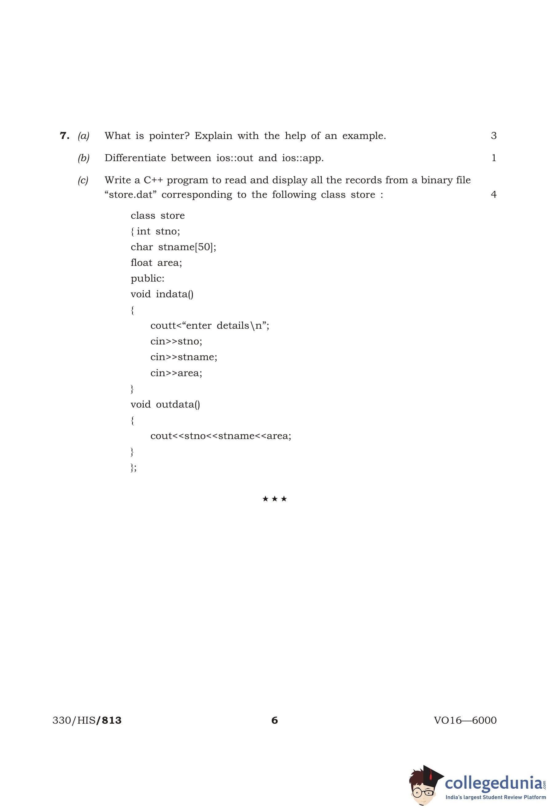 NIOS Class 12 Computer Science Compartment Question Paper 2016 with Answer Key pdf is available for download here. The exam was conducted by National Institute of Open Schooling on October 27, 2016 in the Morning Session 11 AM to 2 PM. The question paper comprised a total of 7 questions.