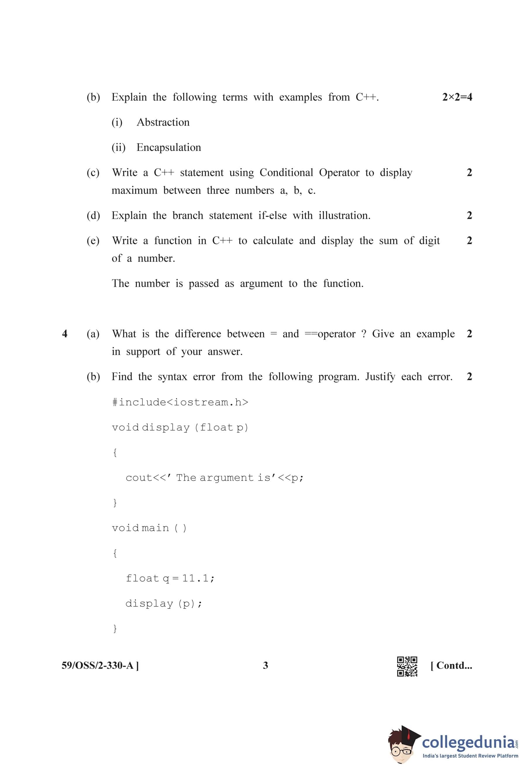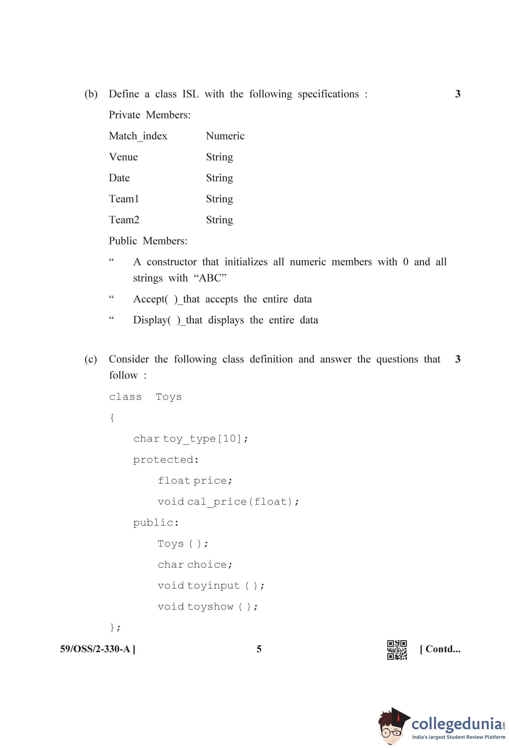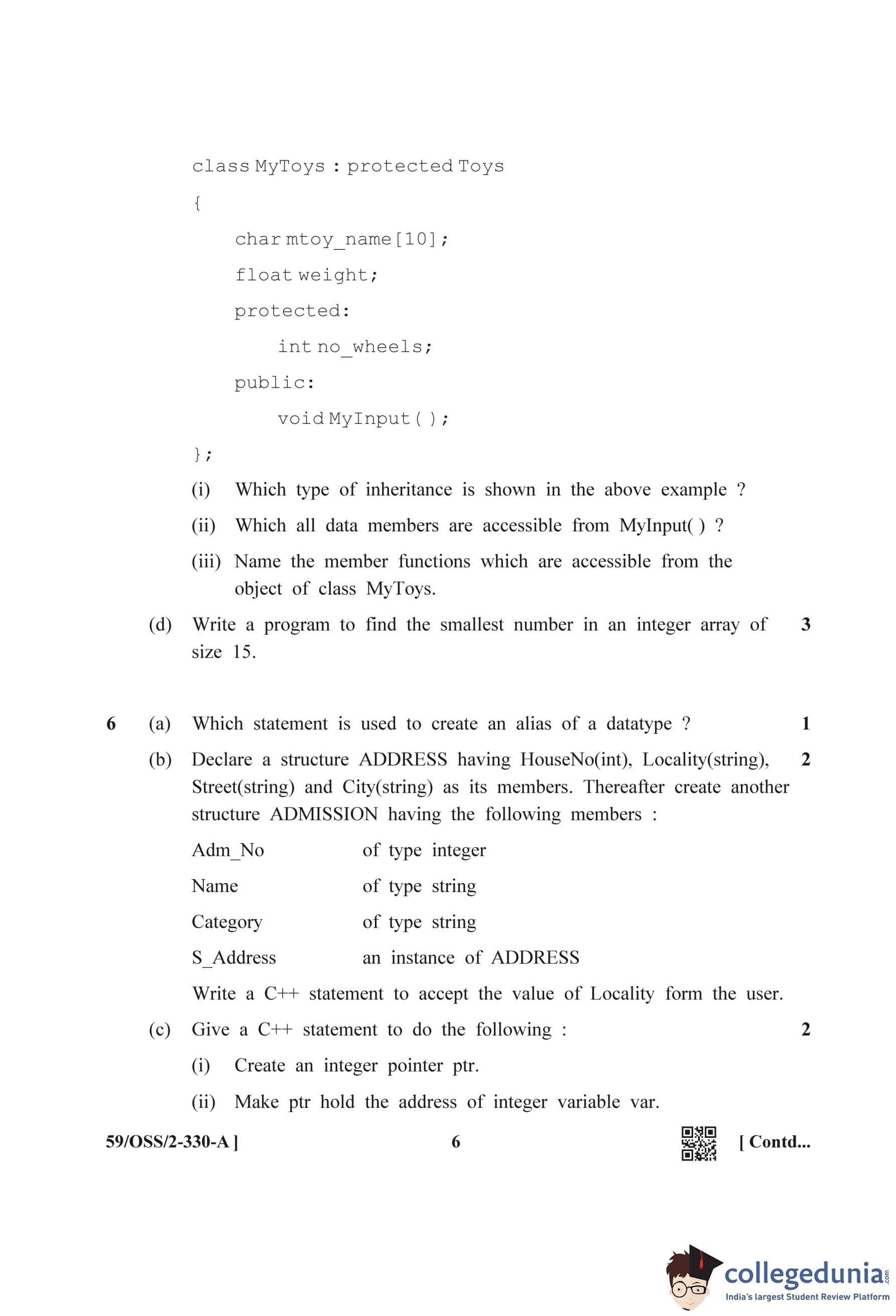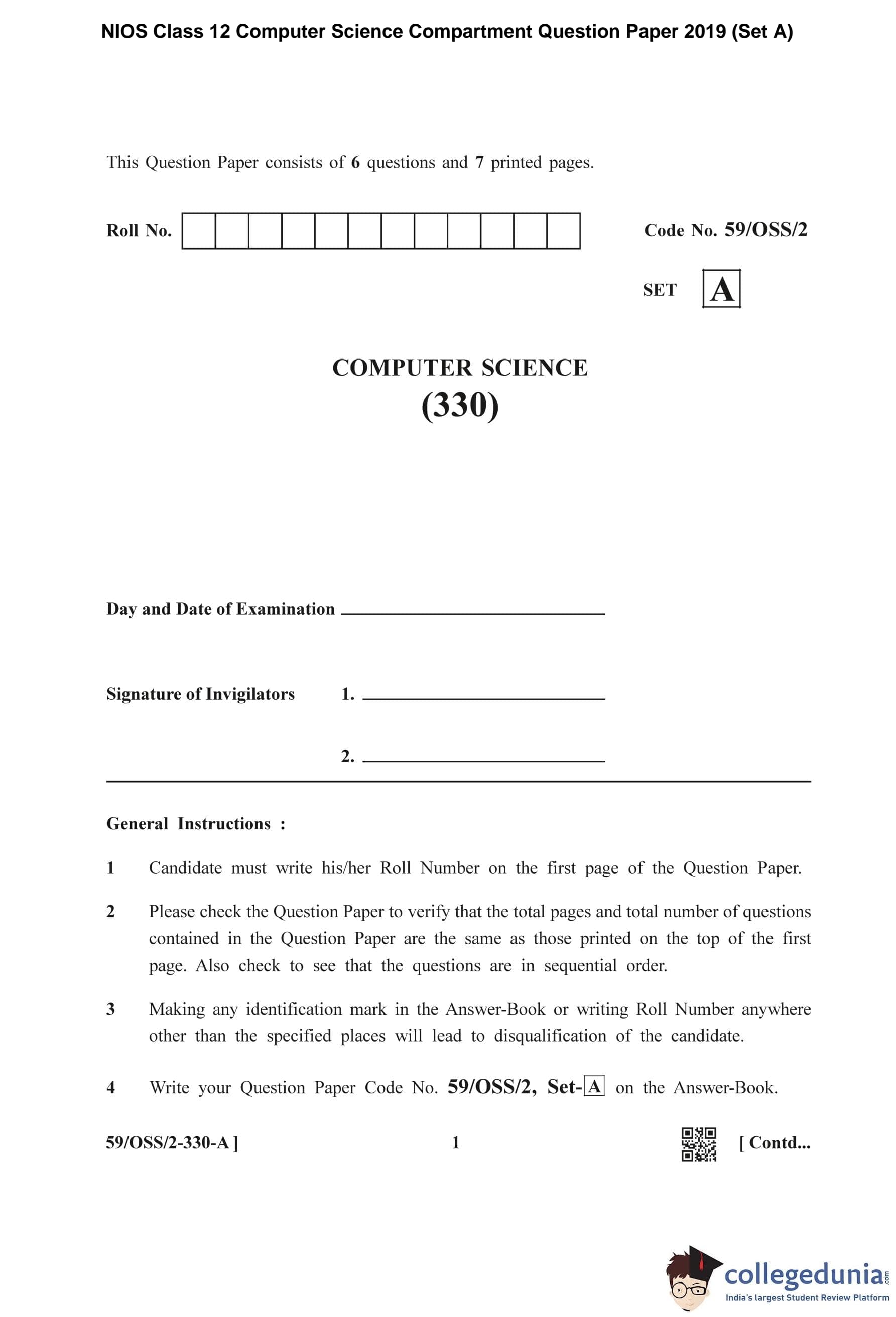 NIOS Class 12 Computer Science (Set A) Compartment Question Paper 2019 with Answer Key