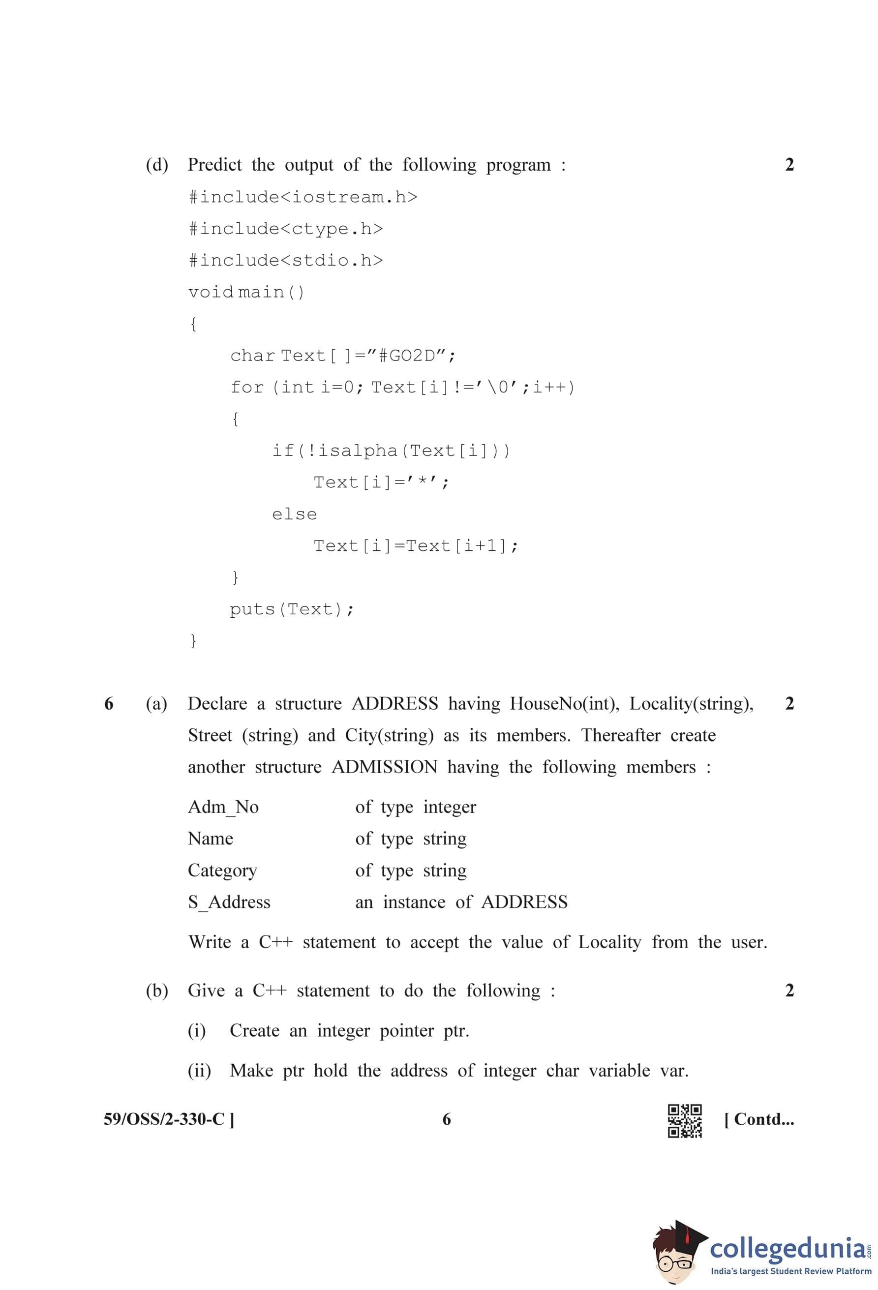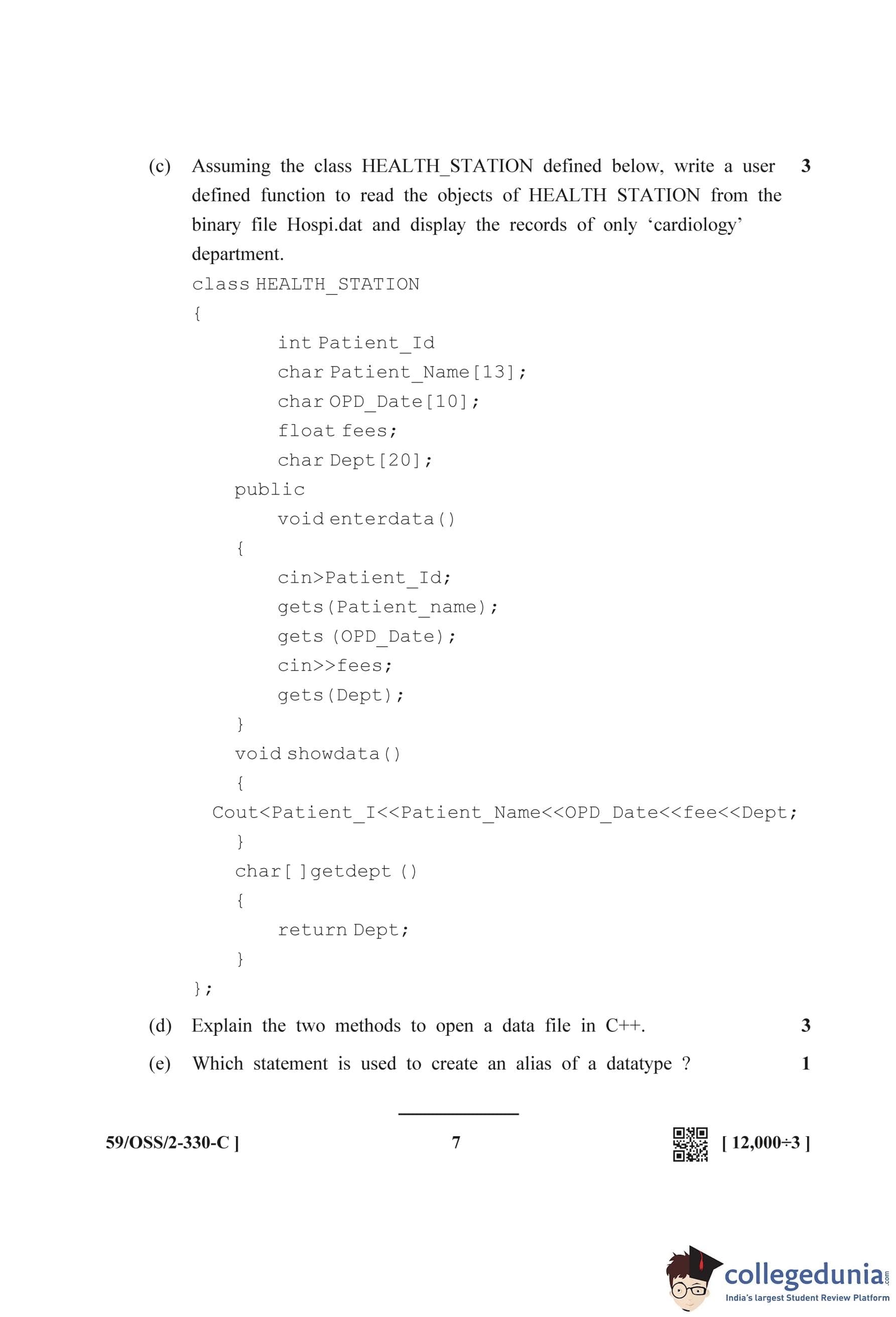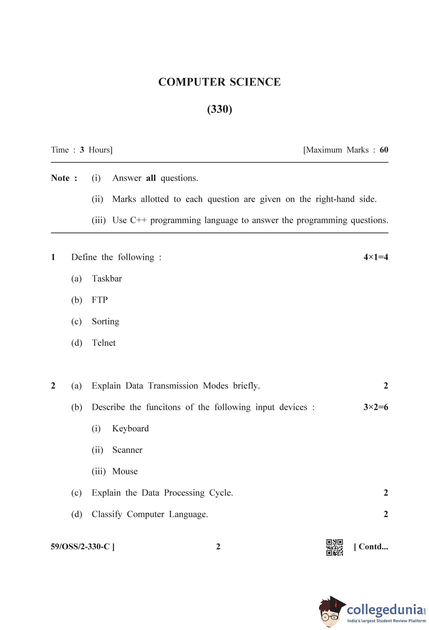 NIOS Class 12 Computer Science Compartment Question Paper 2019 with Answer Key pdf (Set C) is available for download here. The exam was conducted by National Institute of Open Schooling on October 30, 2019 in the Afternoon Session 2:30 PM to 5:30 PM. The question paper comprised a total of 6 questions.