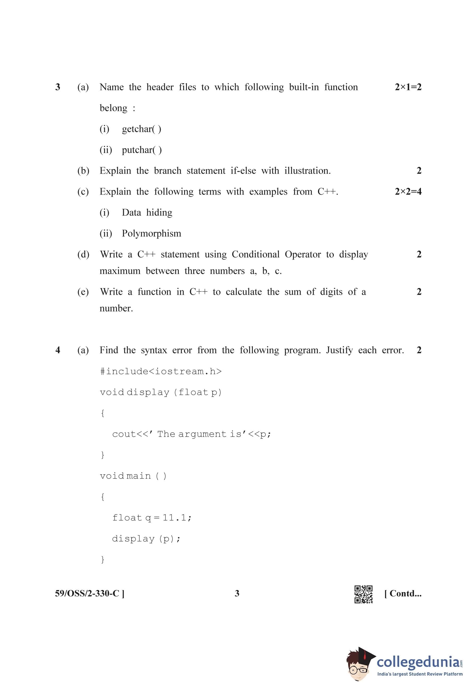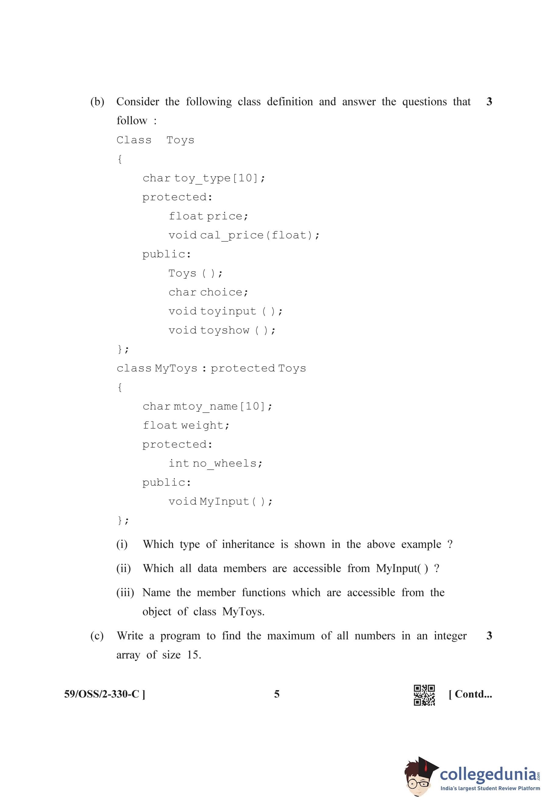 NIOS Class 12 Computer Science (Set C) Compartment Question Paper 2019 with Answer Key